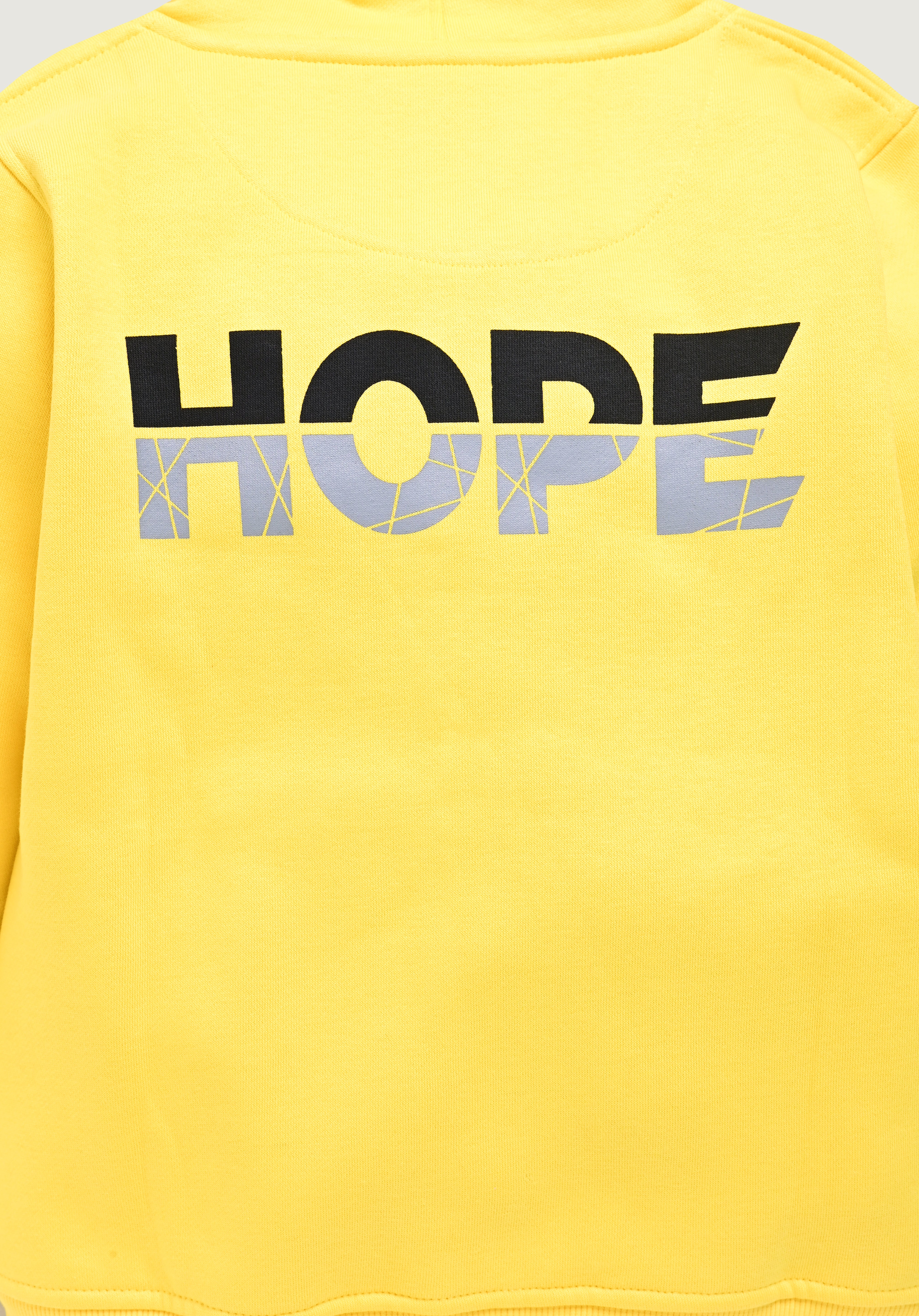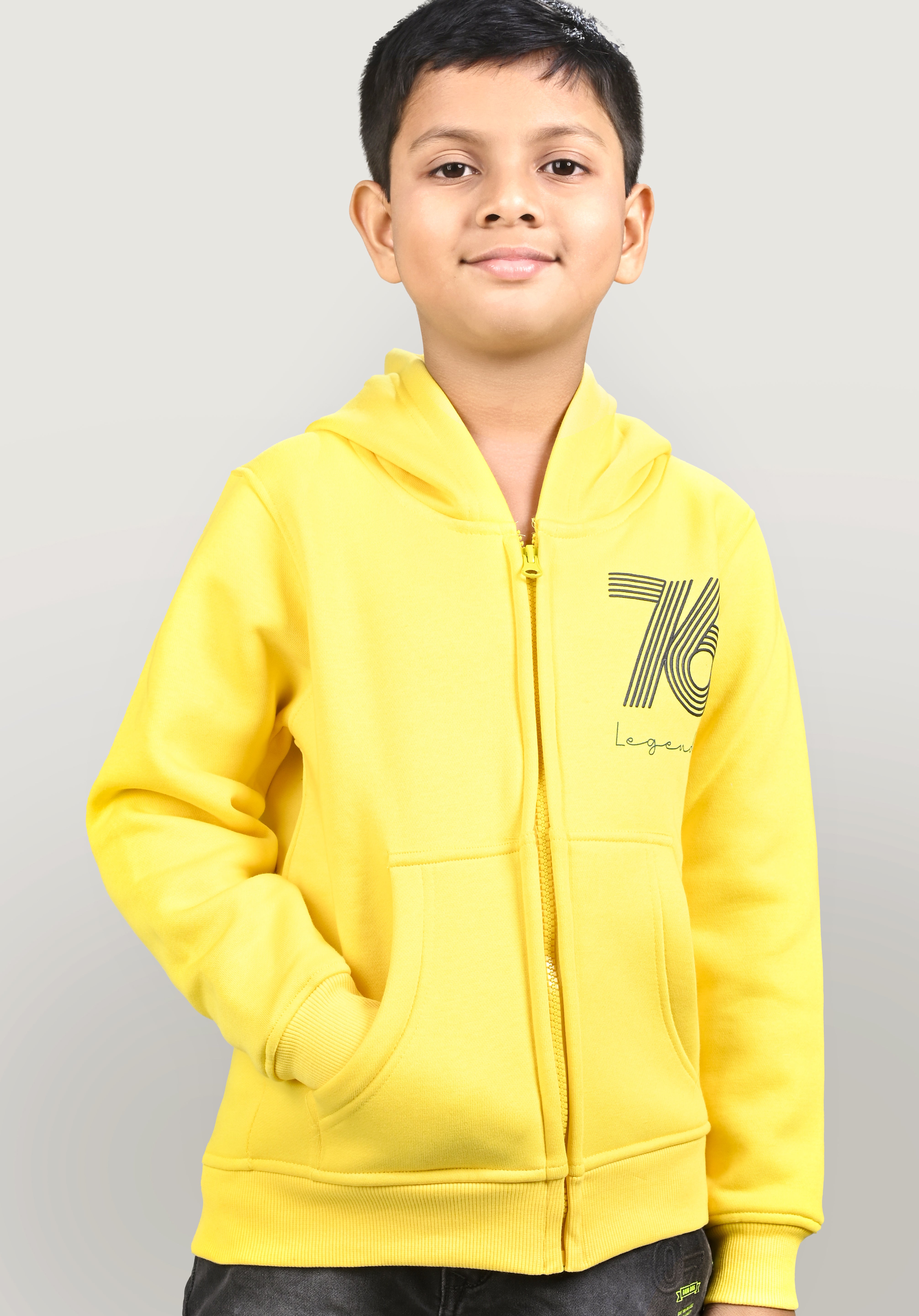 Youmaa 100% Cotton Full Sleeves Cut Pockets Chest Print Sproty Hoodie Yellow
