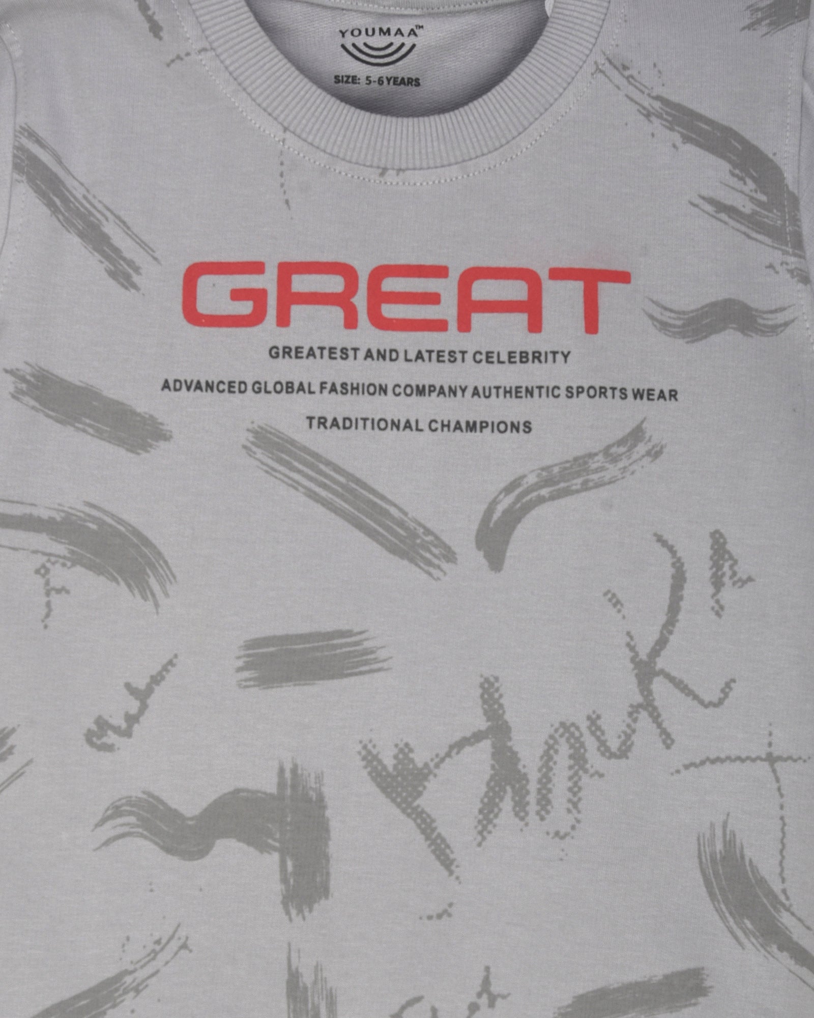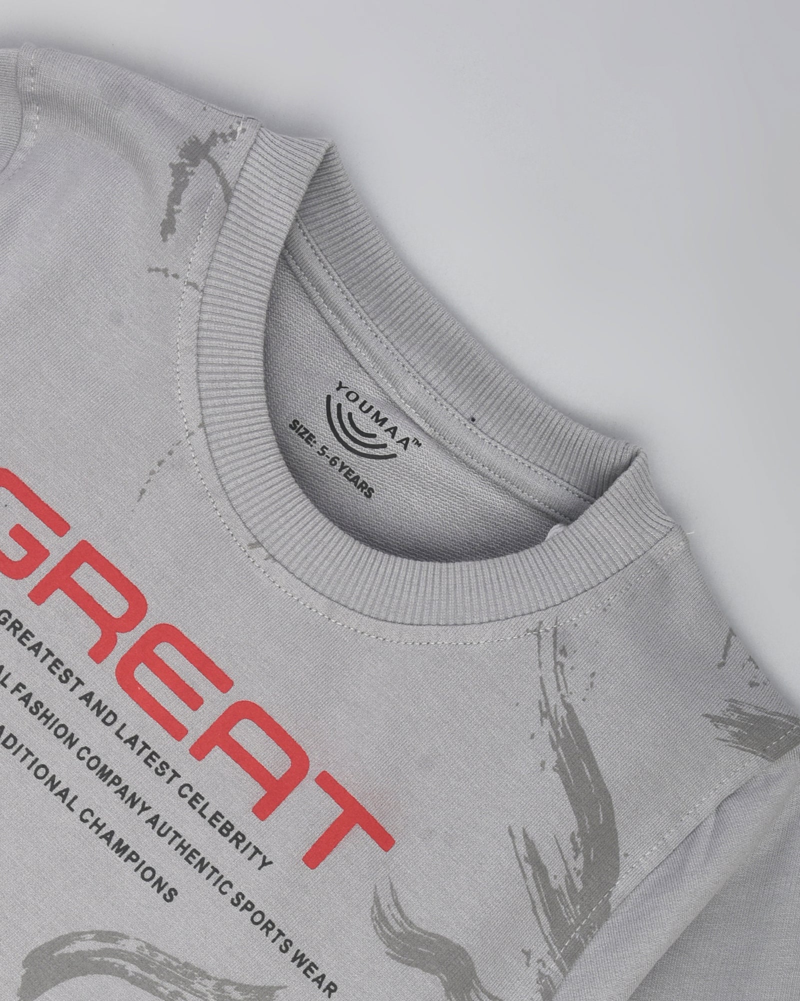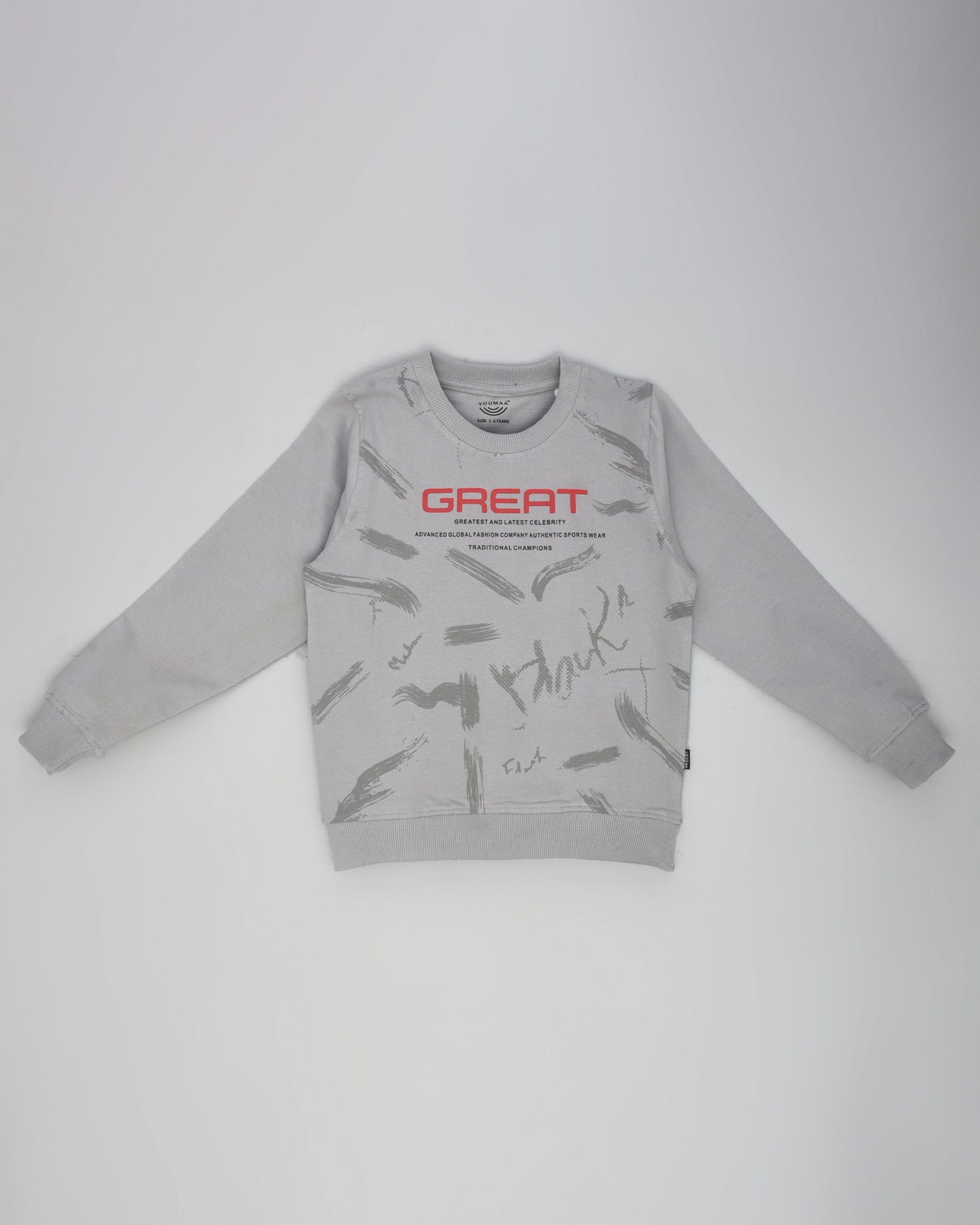 Youmaa 100% Cotton Full Sleeves Round Neck Abstract Printed Sweatshirt Grey