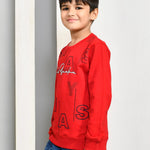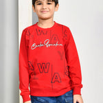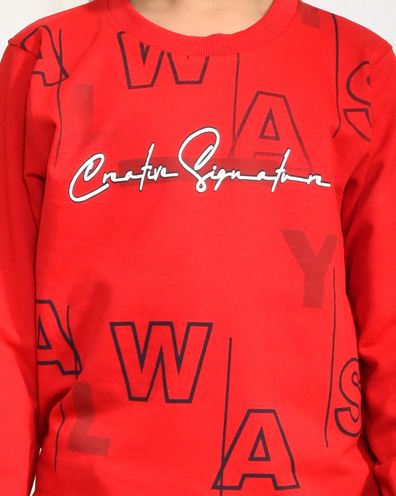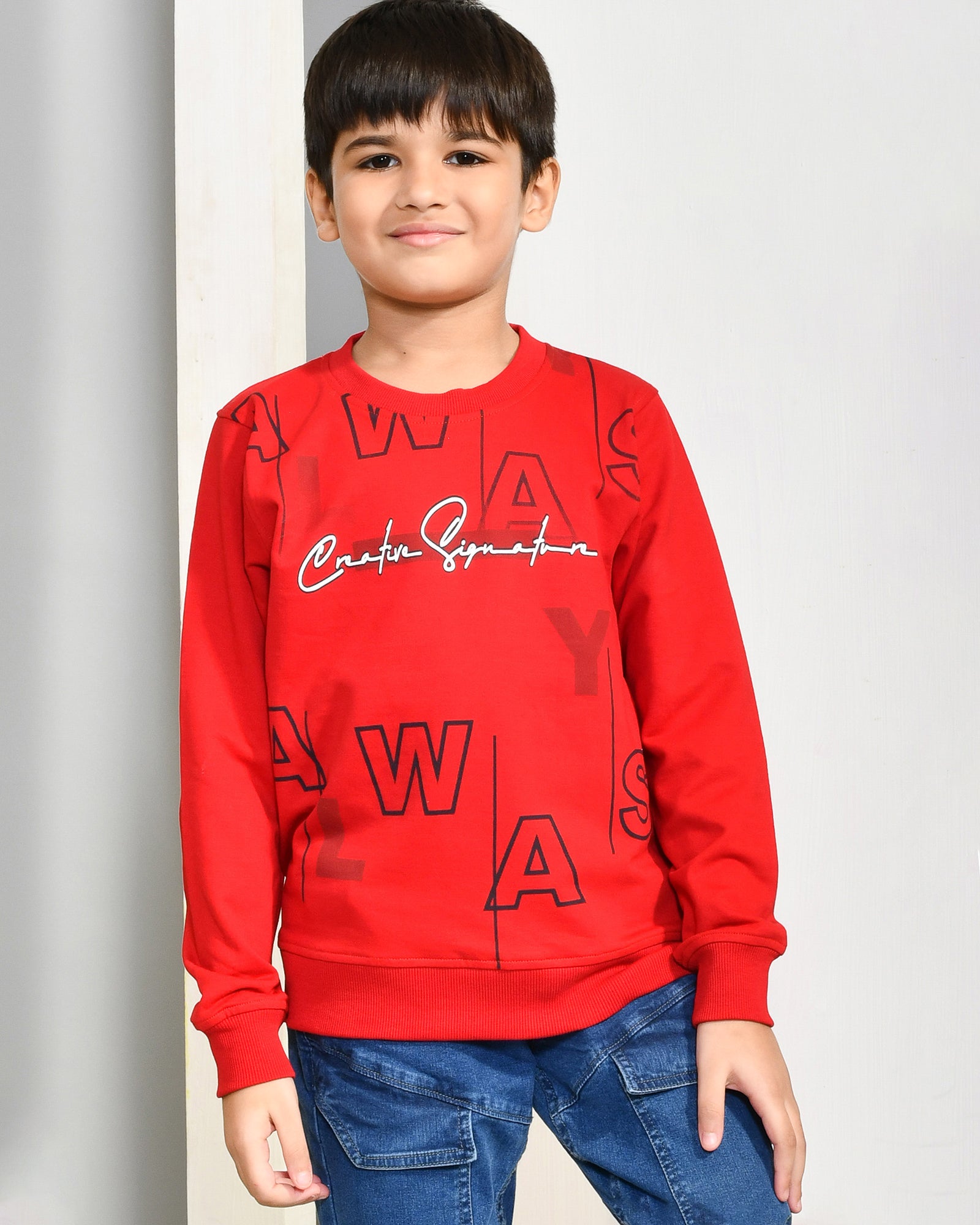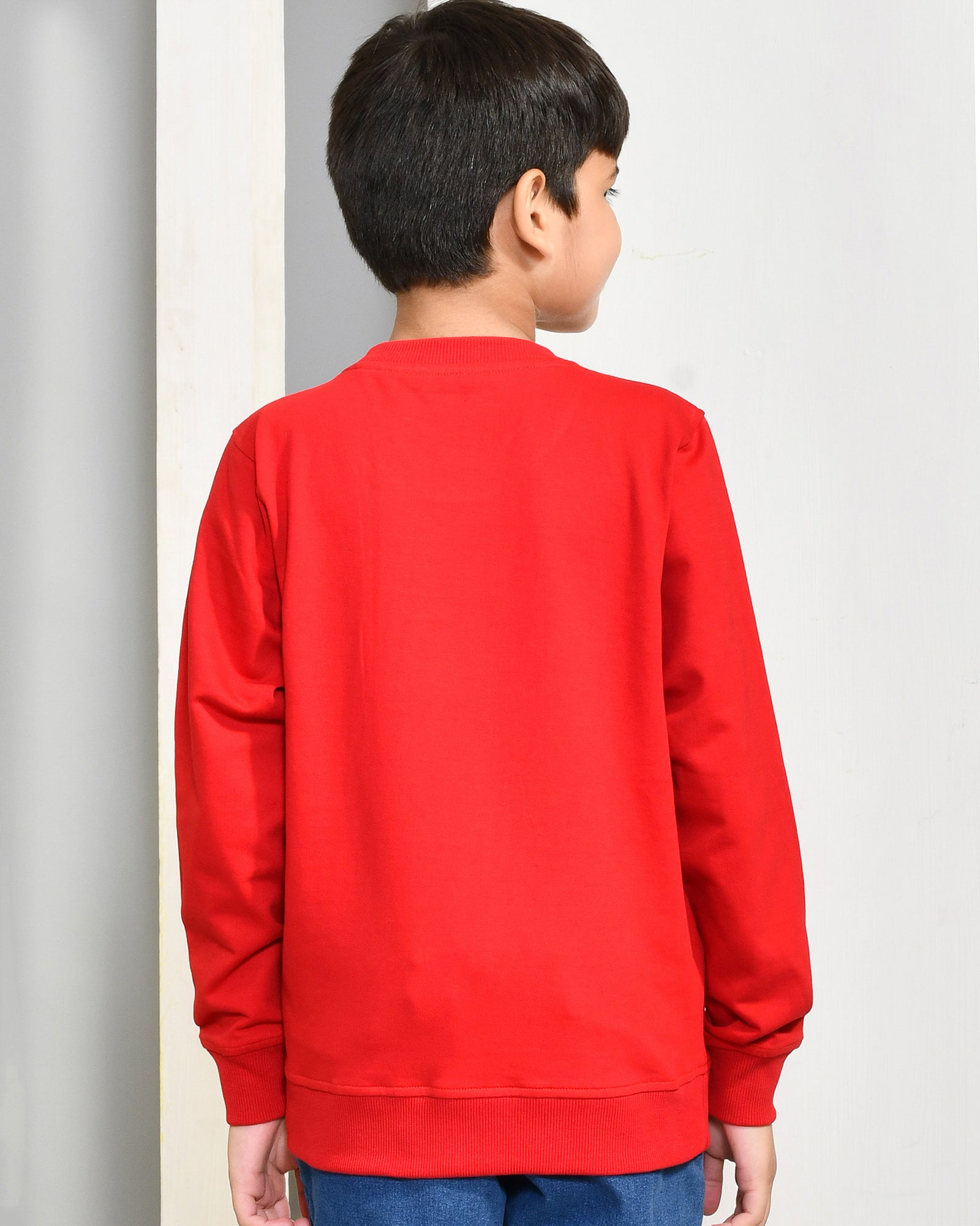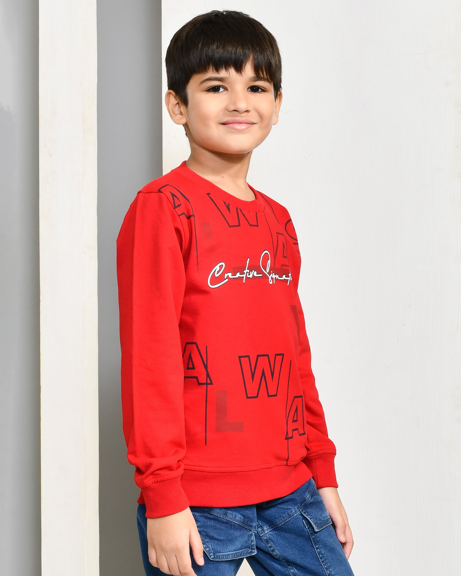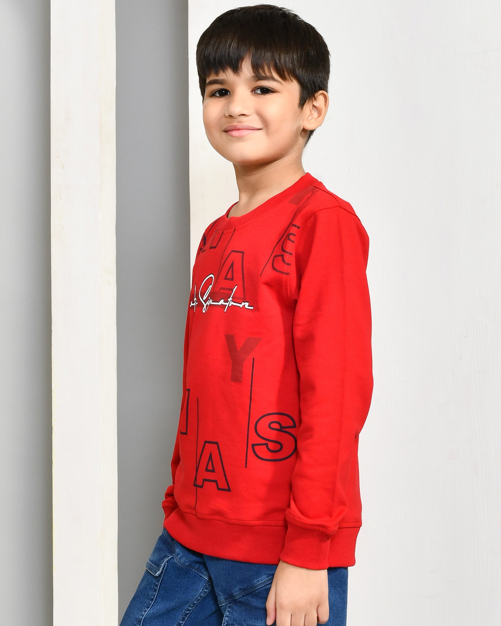 Youmaa 100% Cotton Full Sleeves Round Neck Alphabet Printed Sweatshirt Red