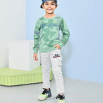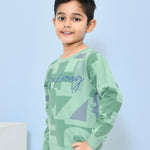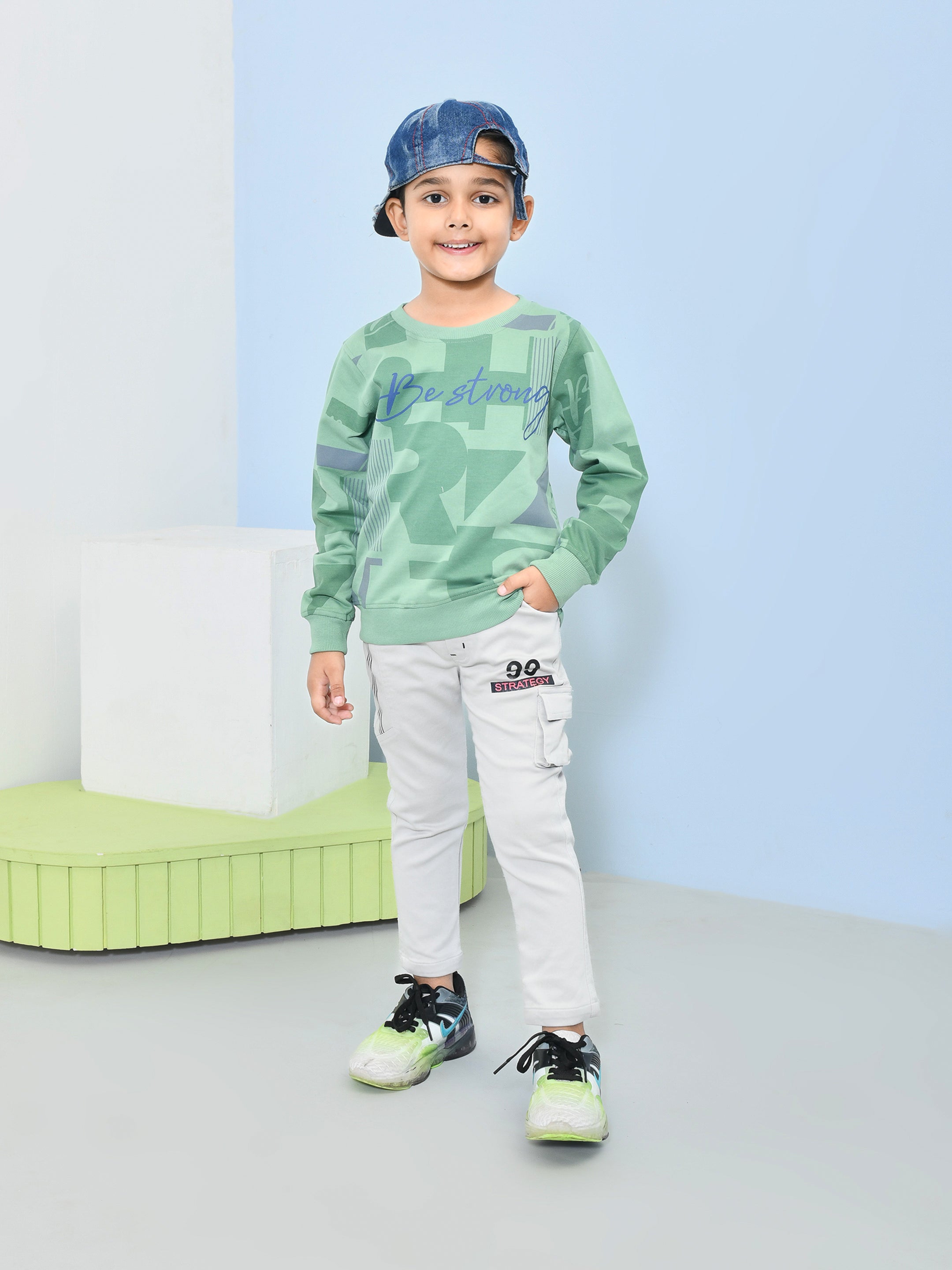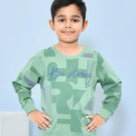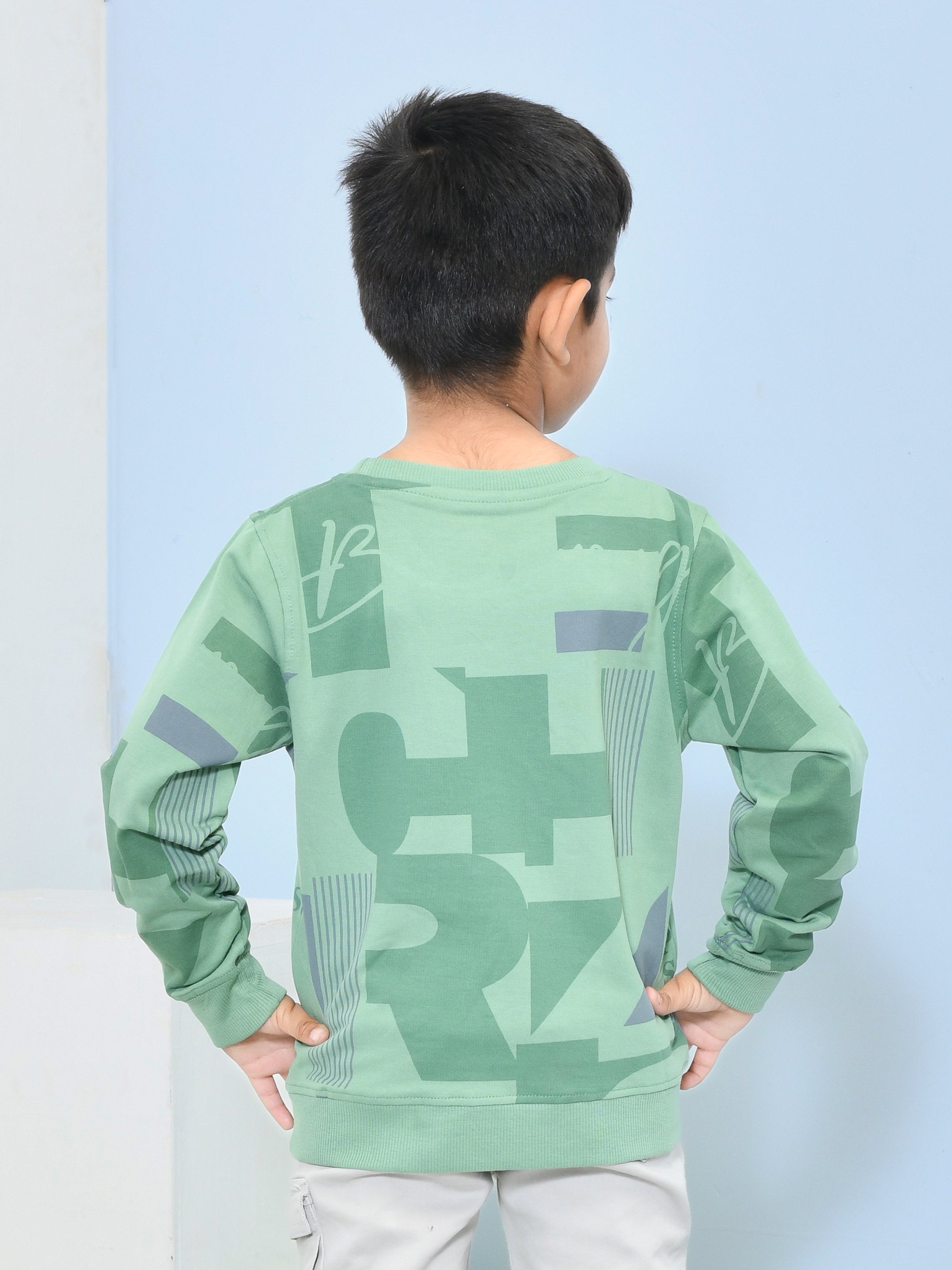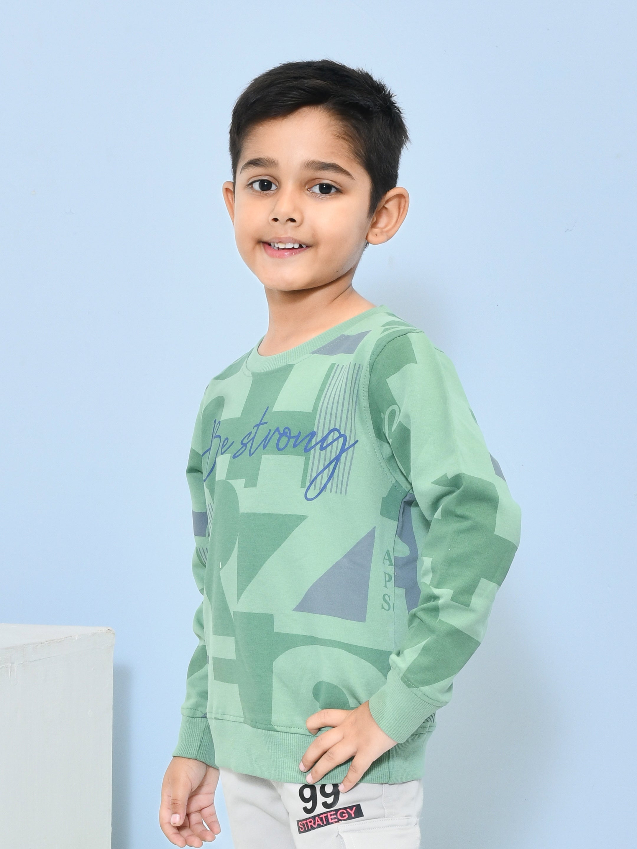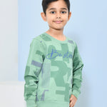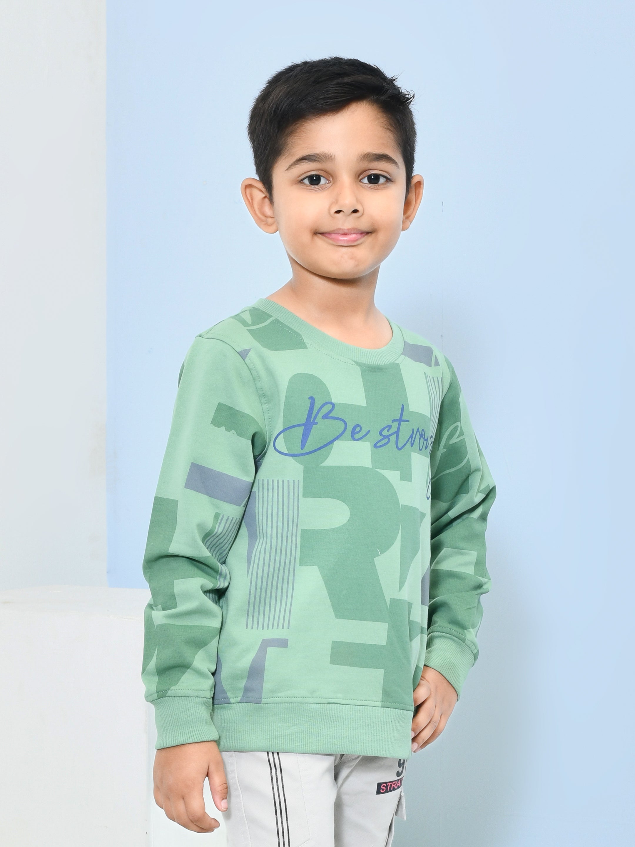 Youmaa 100% Cotton Full Sleeves Round Rib Neck Chest Print Sweatshirt Green