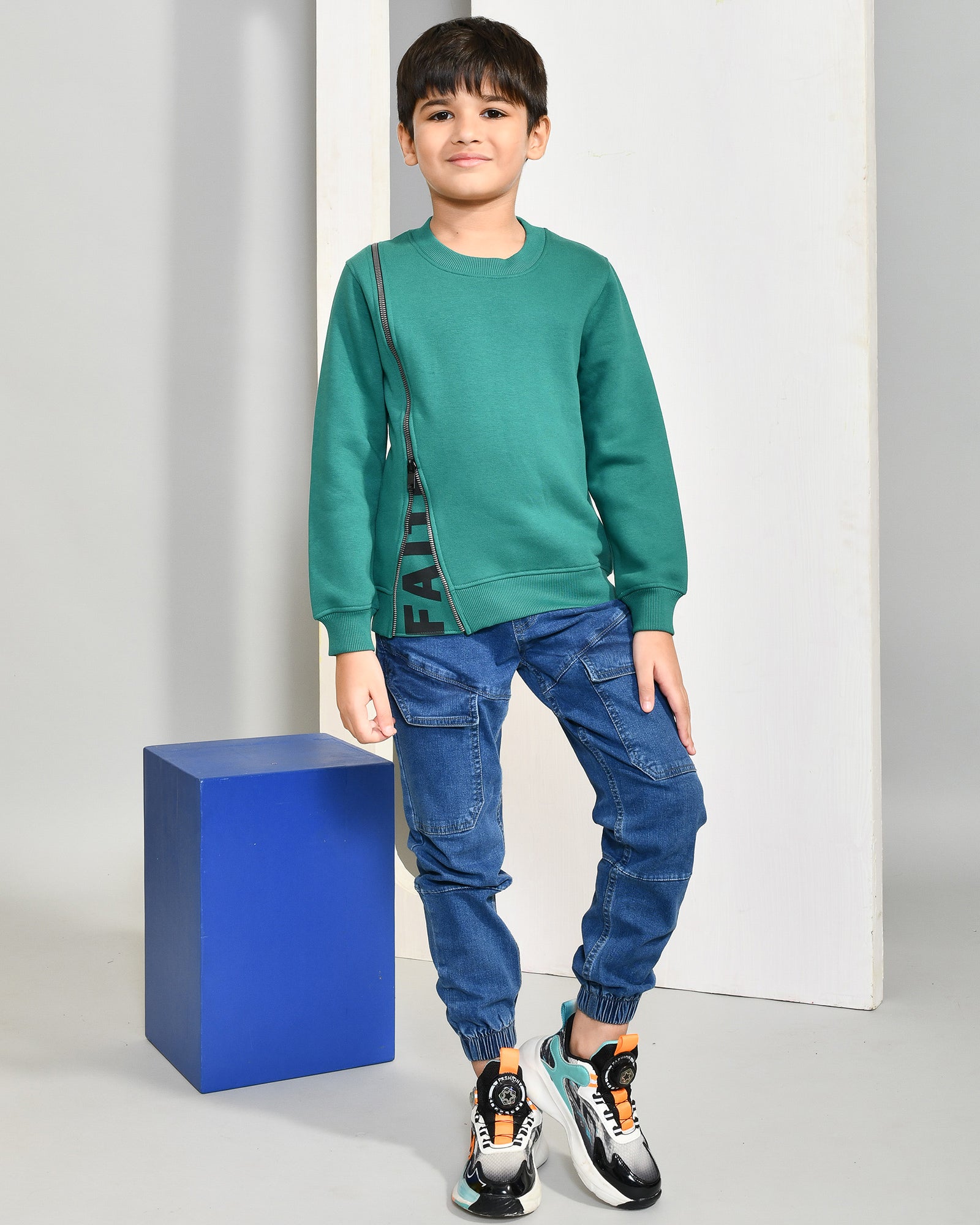 Youmaa 100% Cotton Full Sleeves Round Rib Neck Solid Color Sweatshirt Green