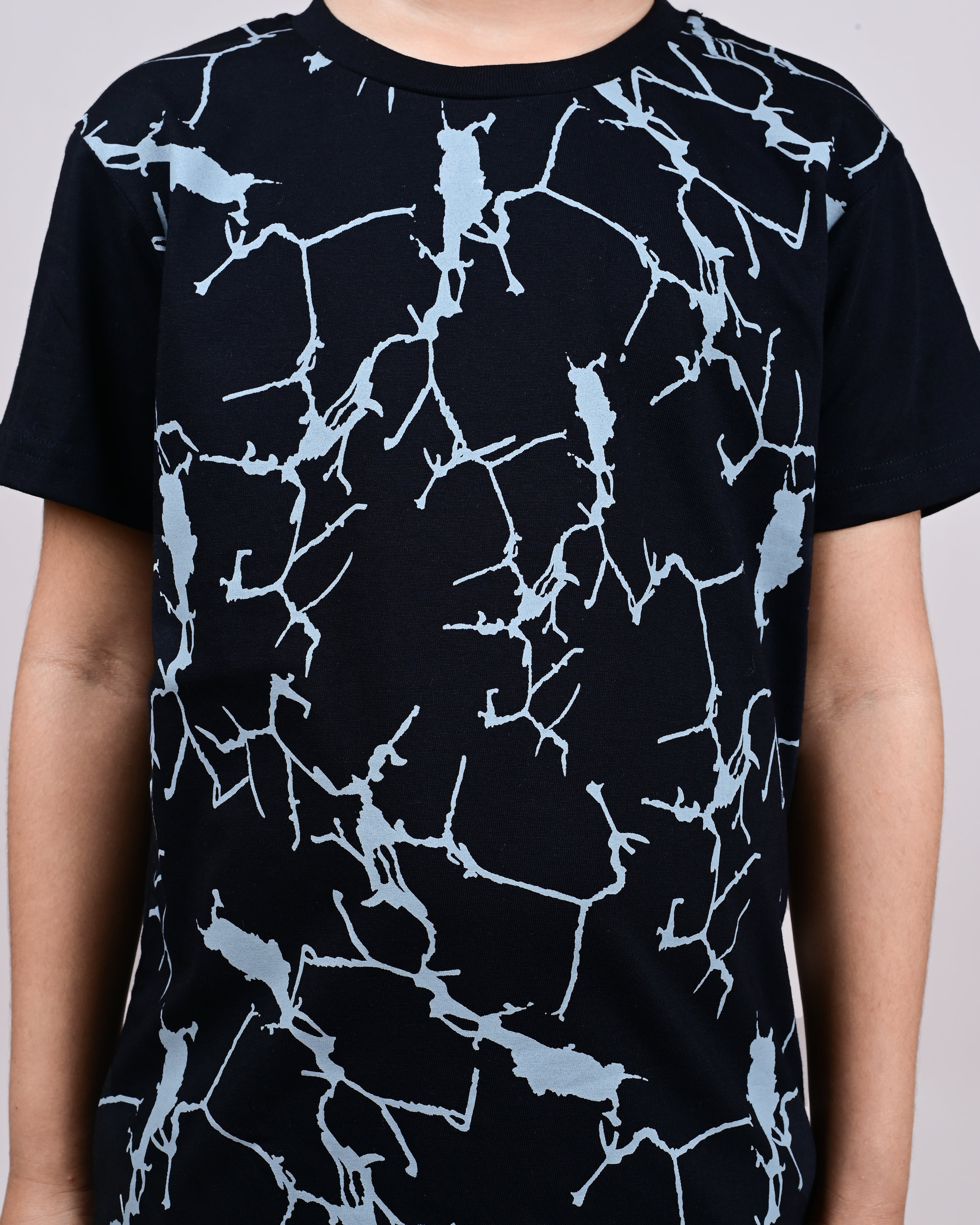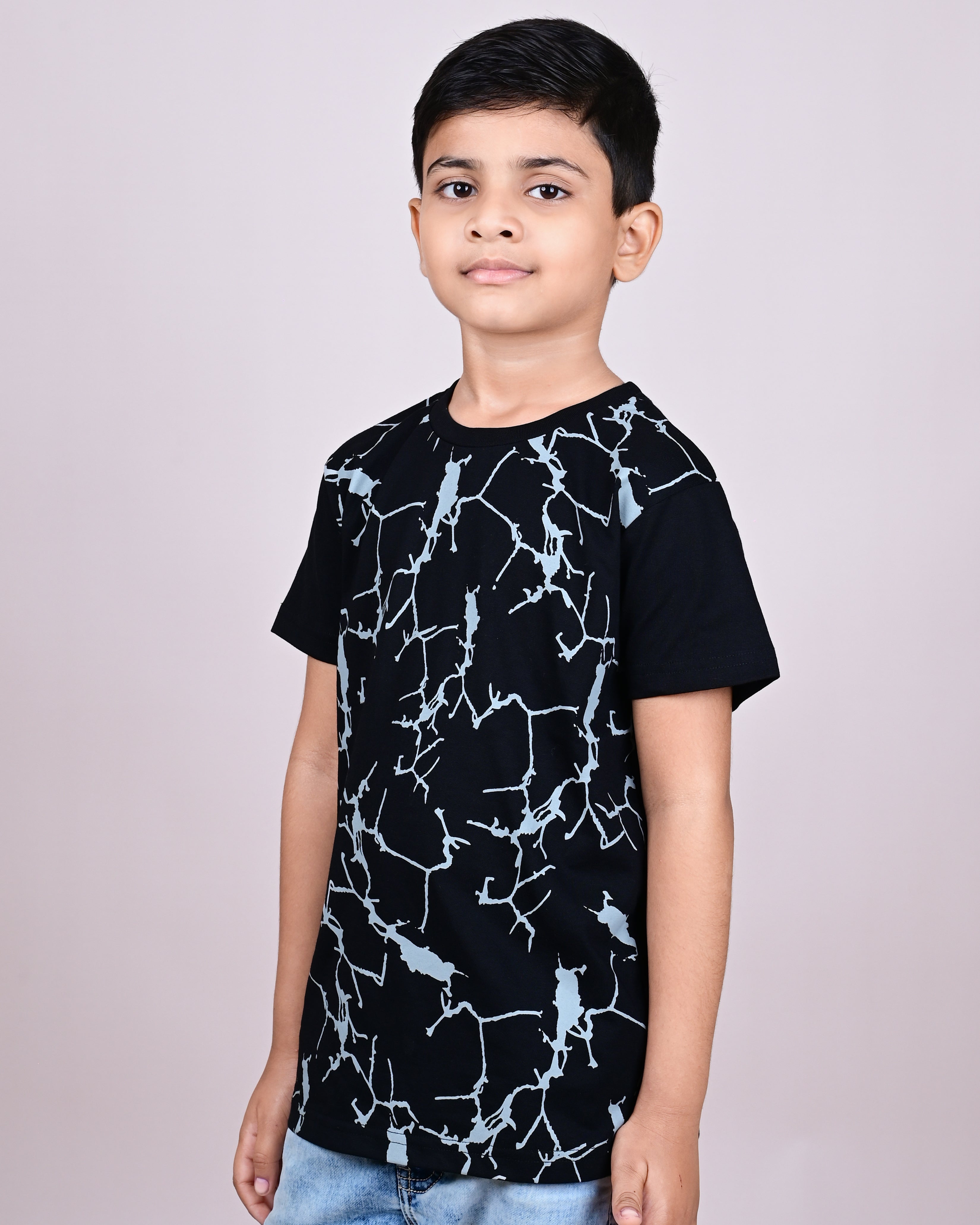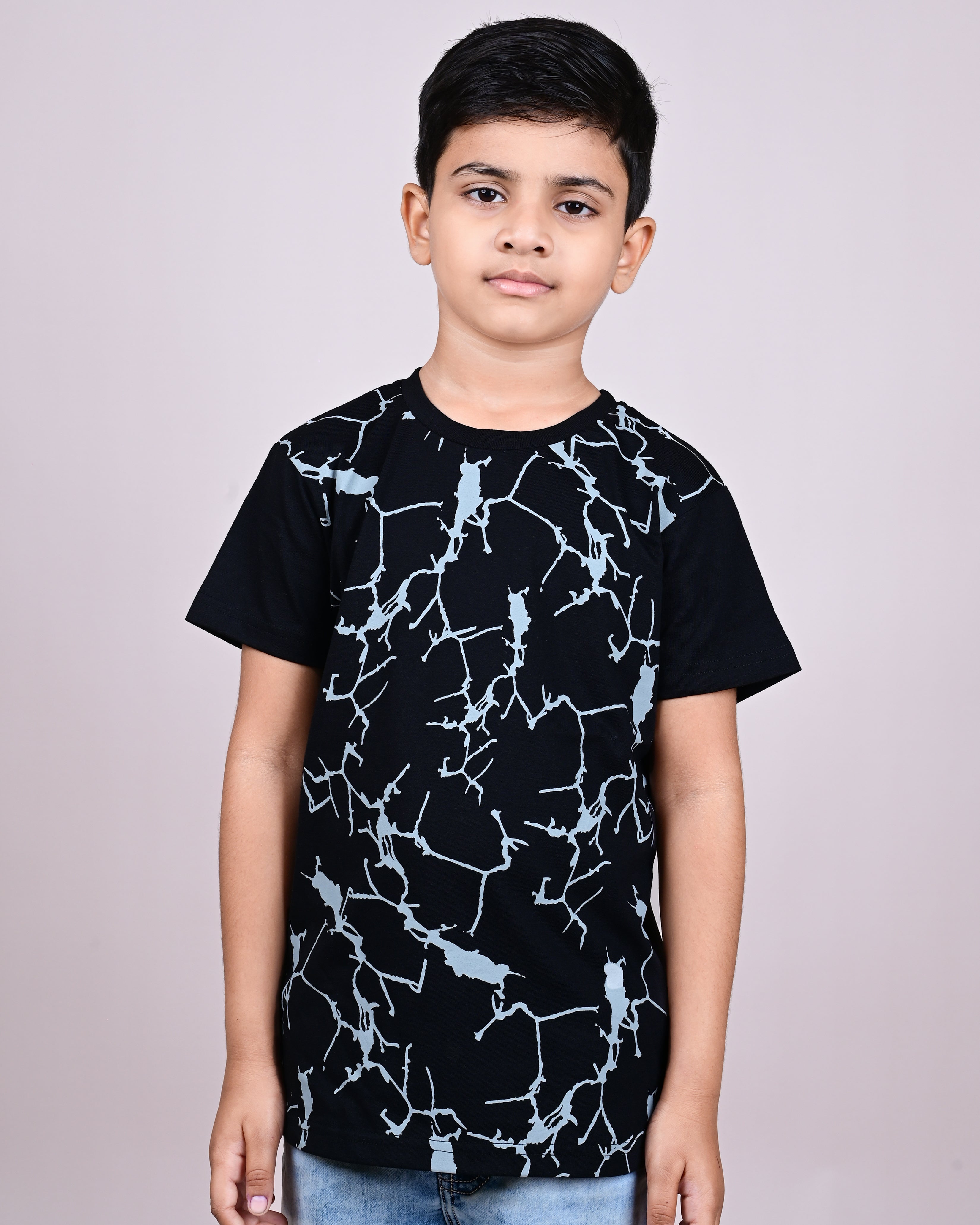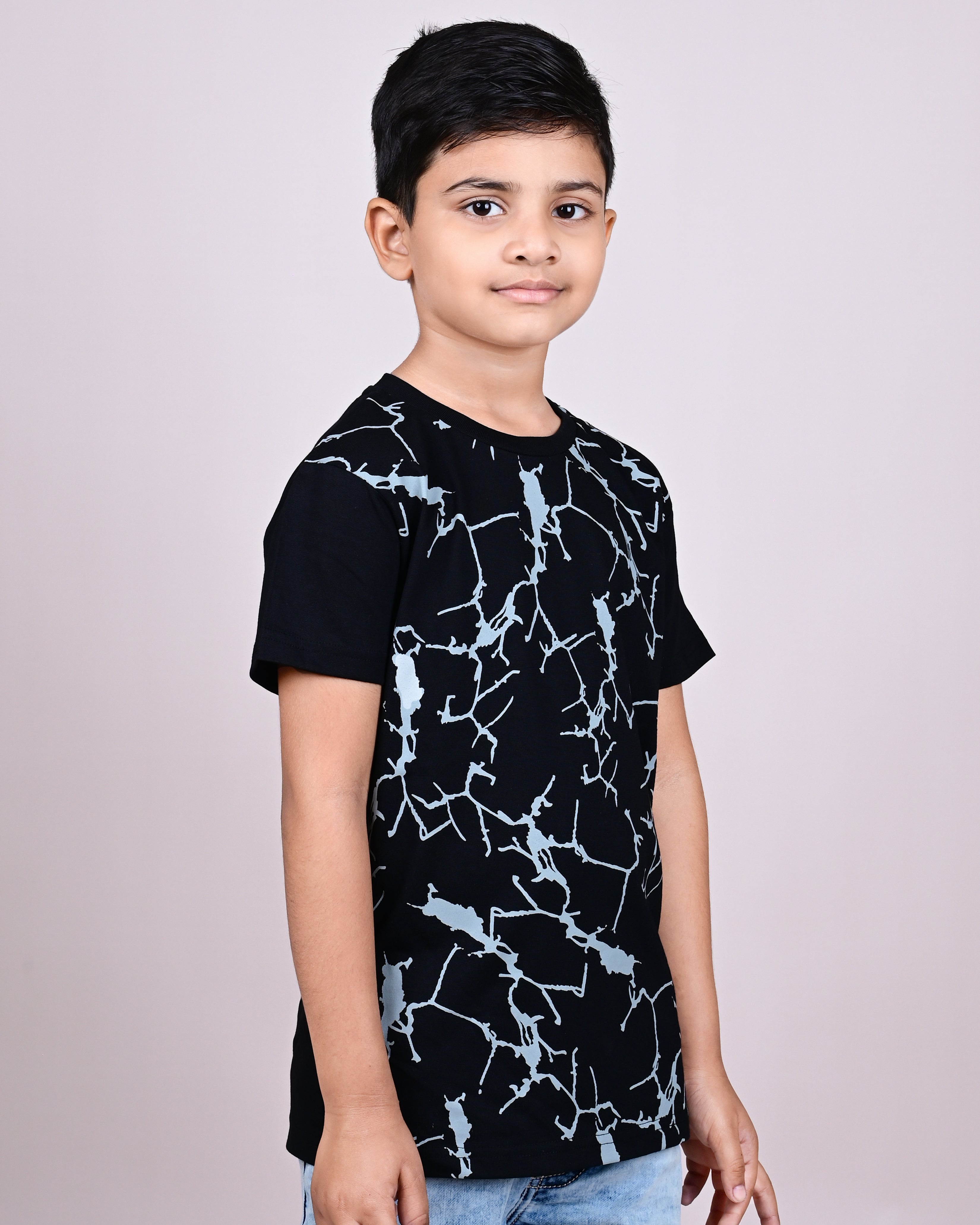 Youmaa 100% Cotton Half Sleeves Abstract Graphics Printed T-Shirt - Black