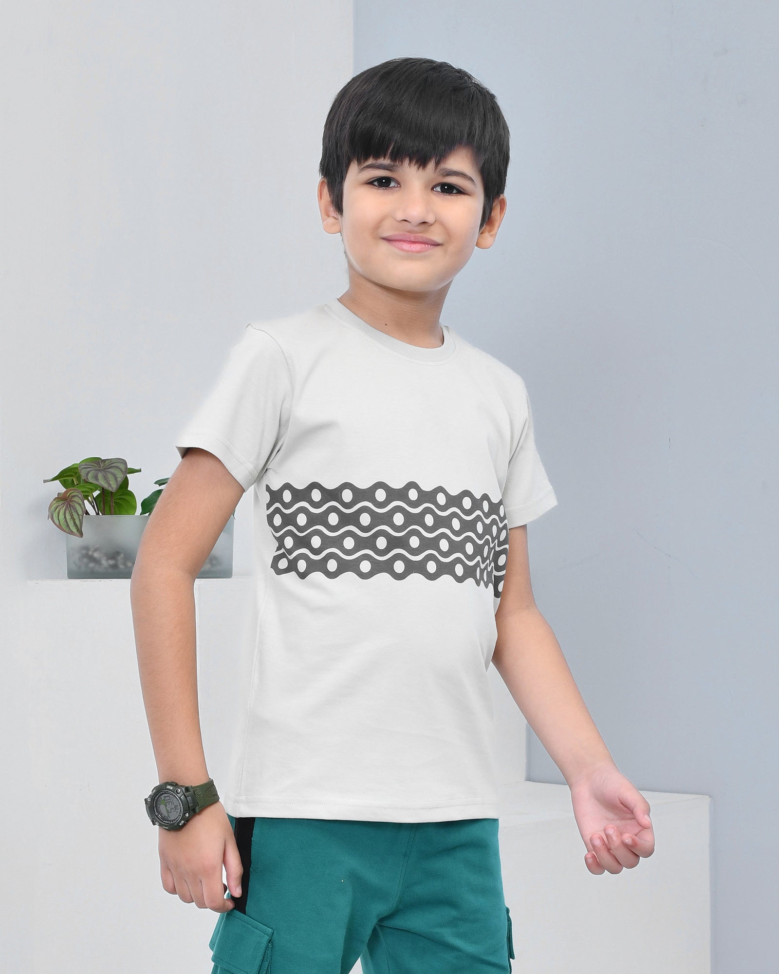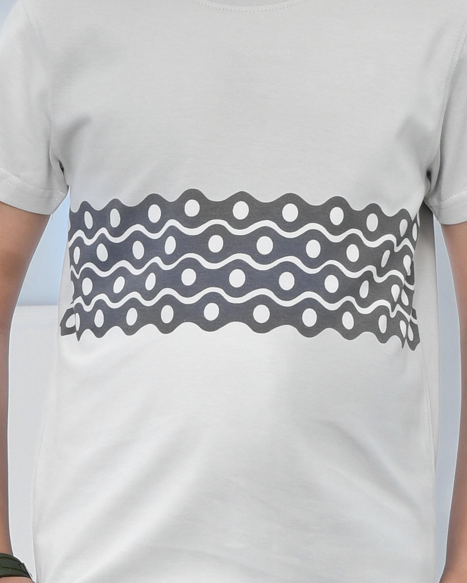 Youmaa 100% Cotton Half Sleeves Abstract Printed T-Shirt - Grey