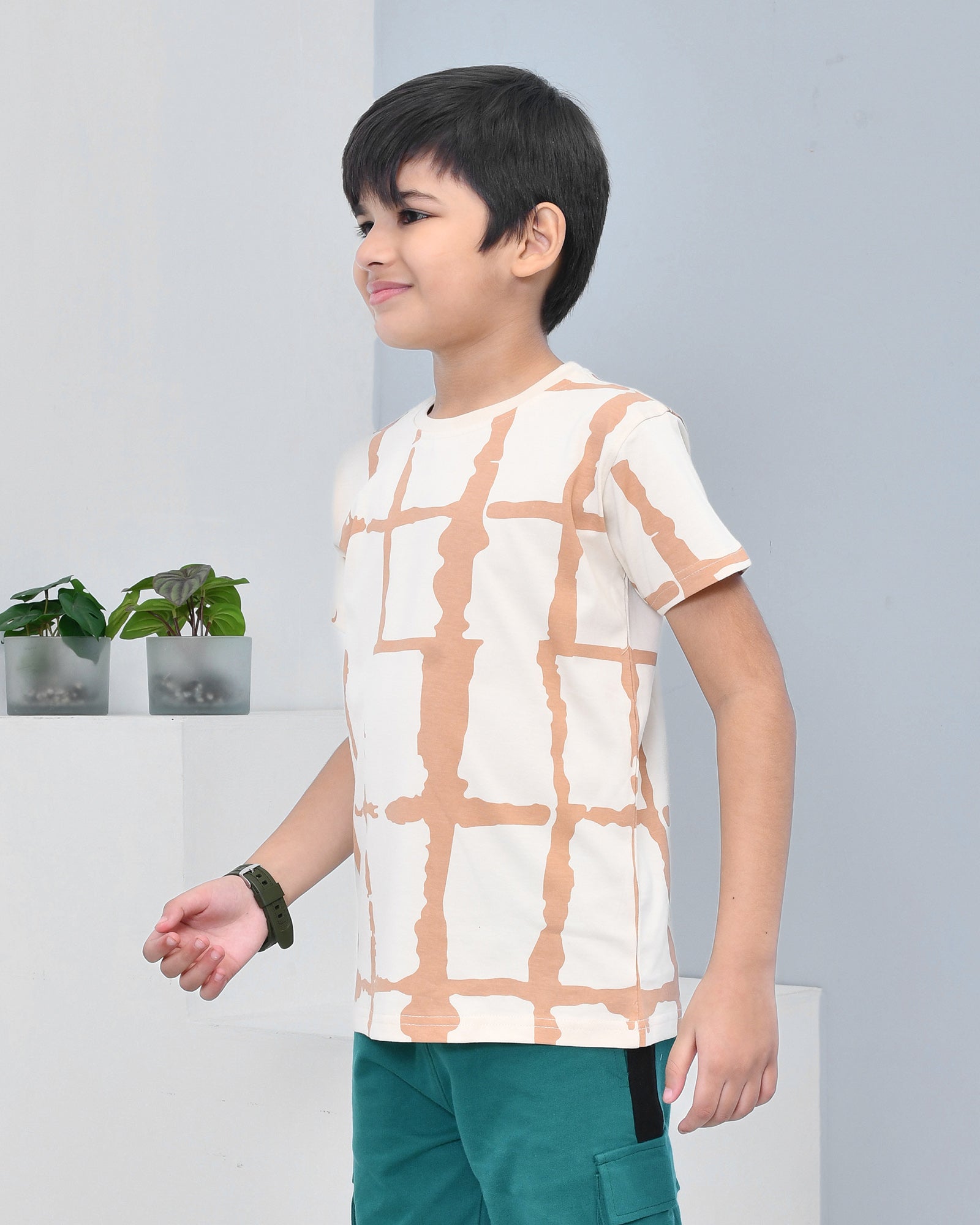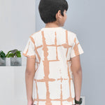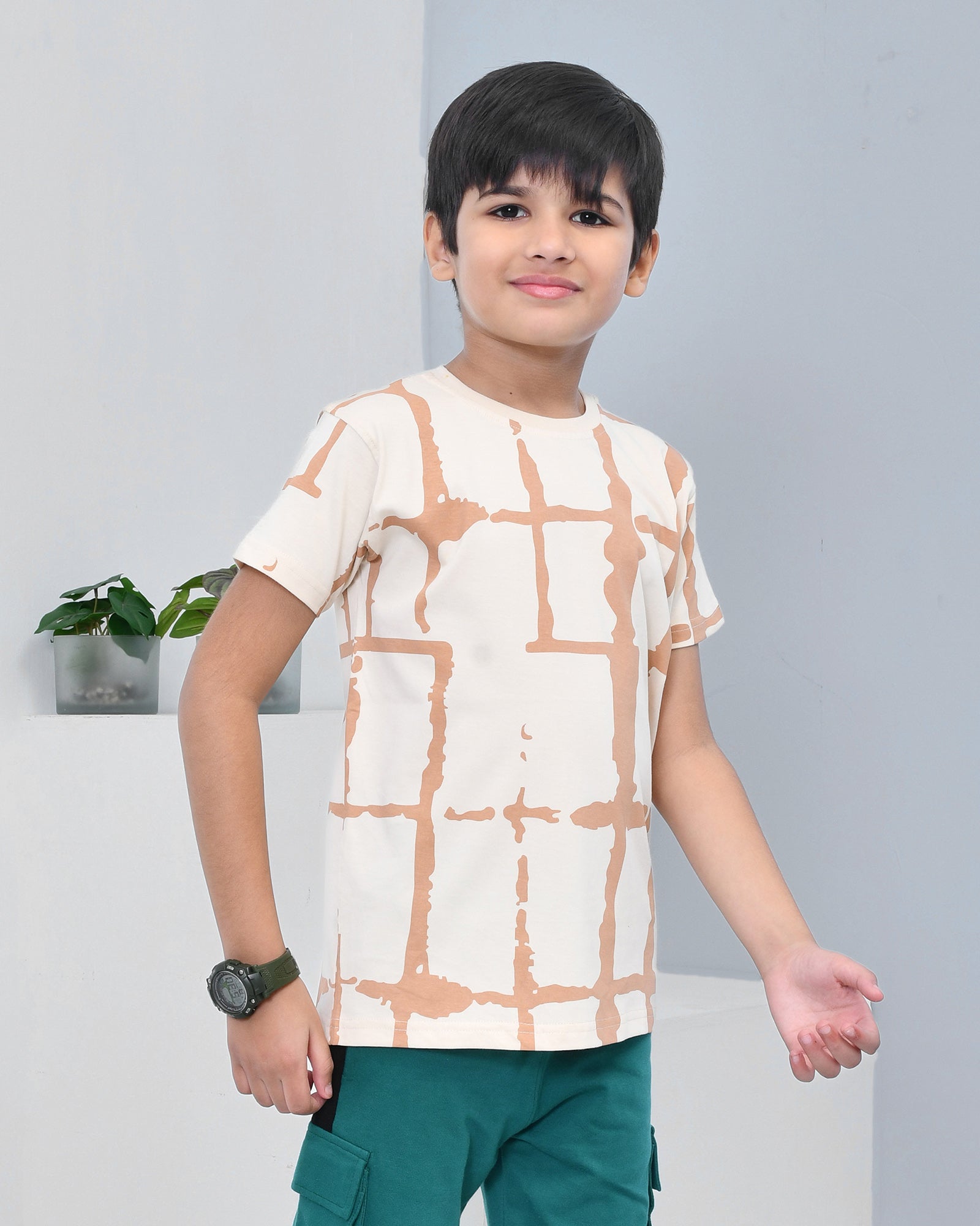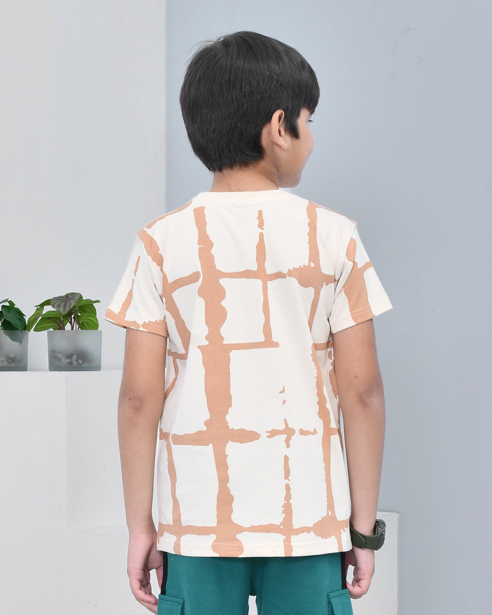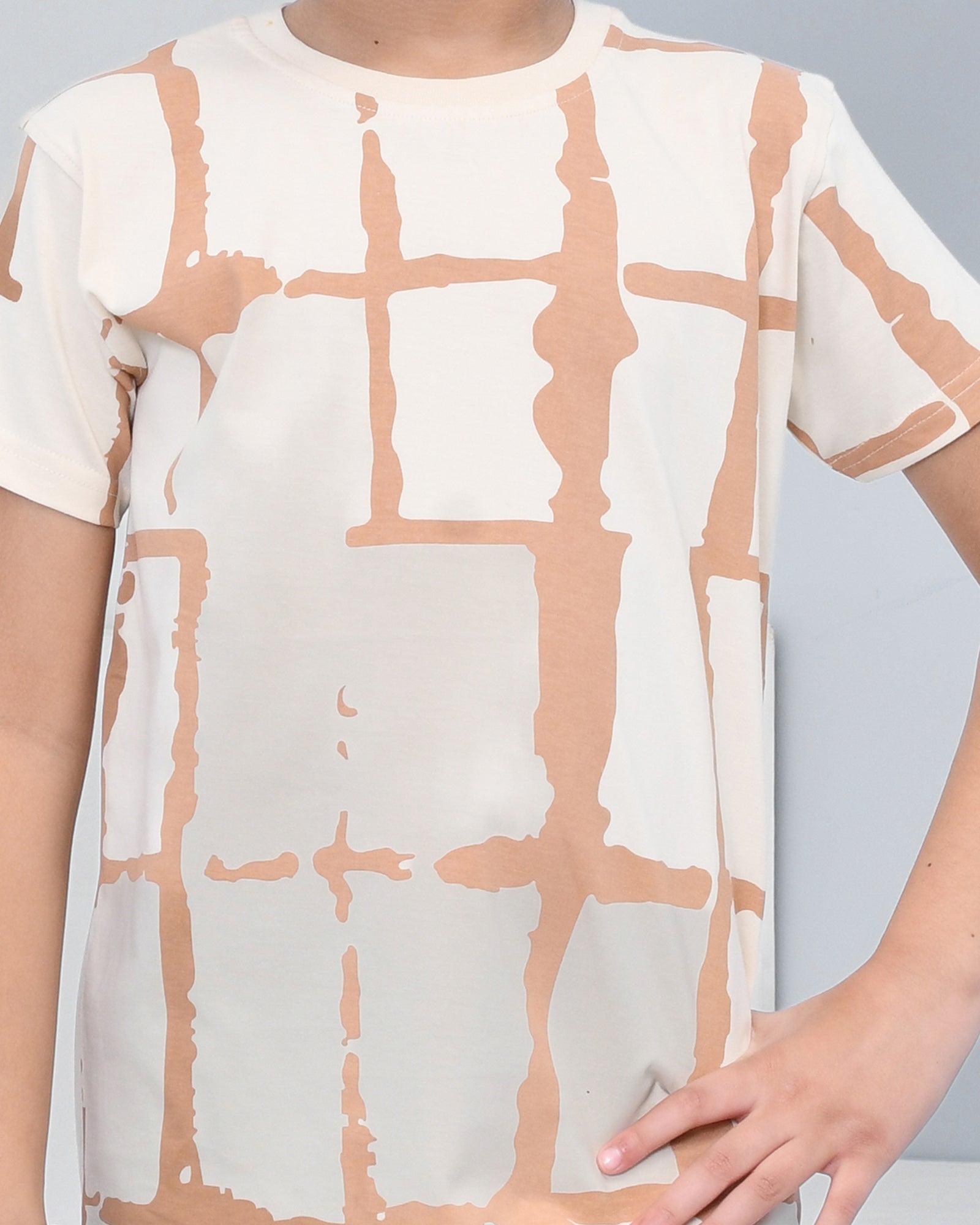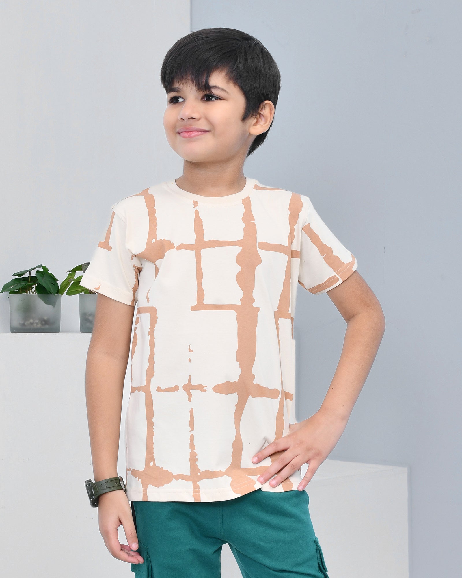 Youmaa 100% Cotton Half Sleeves Abstract Printed T-Shirt - Tofu