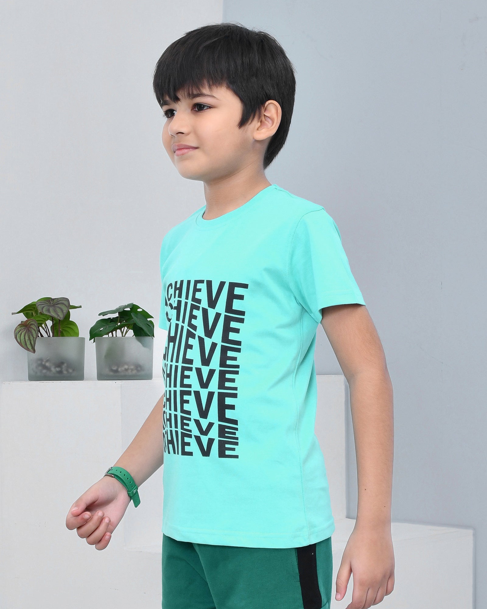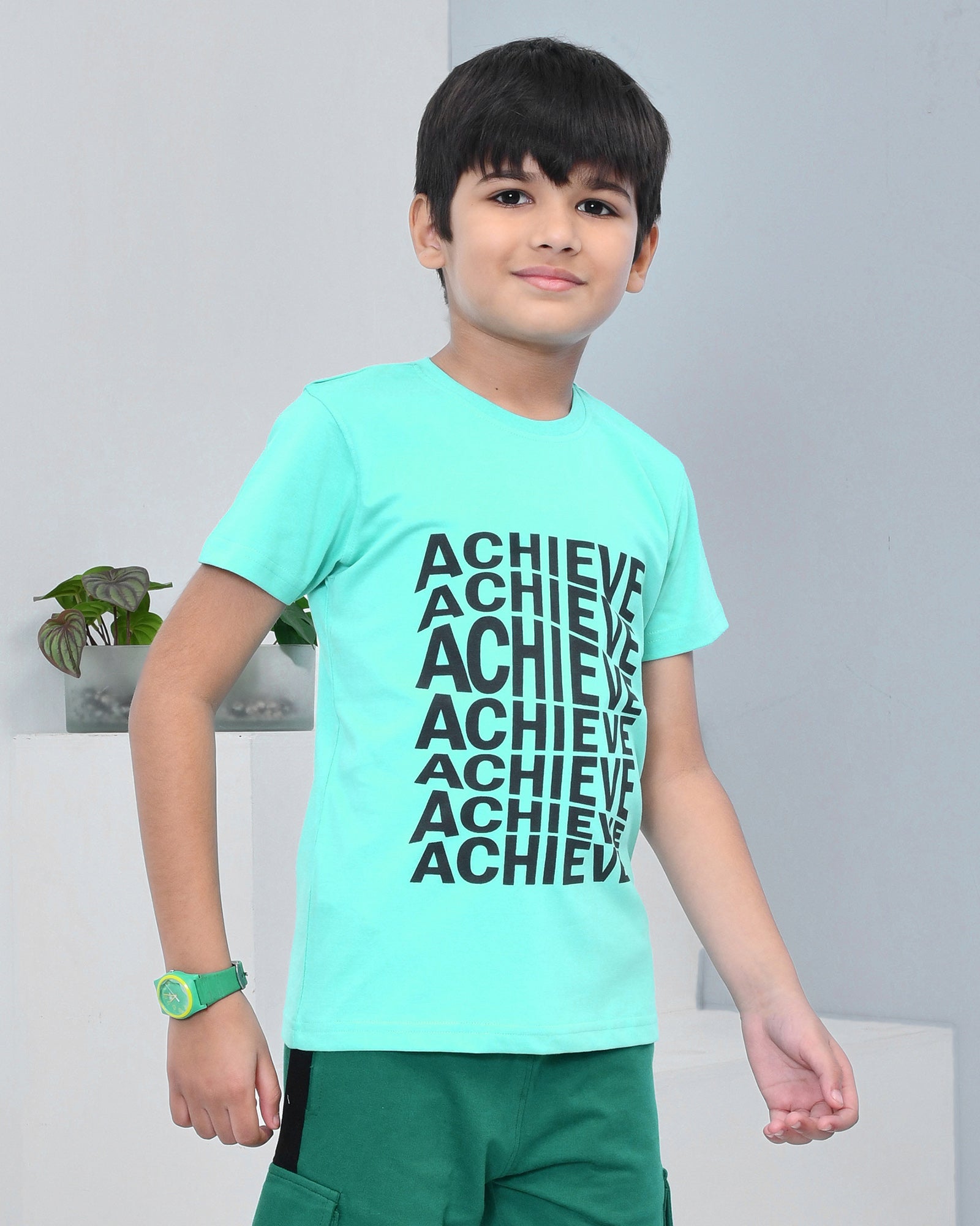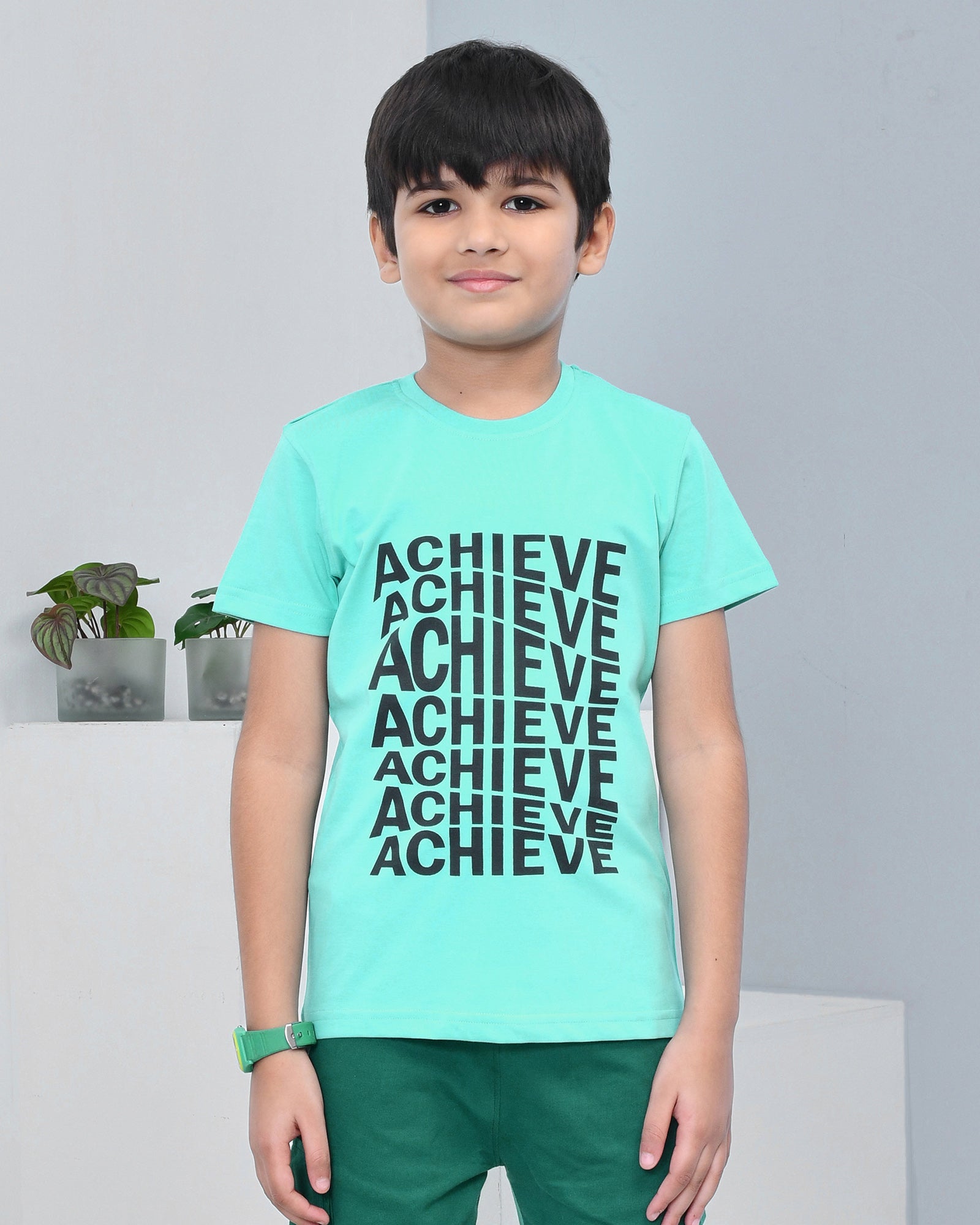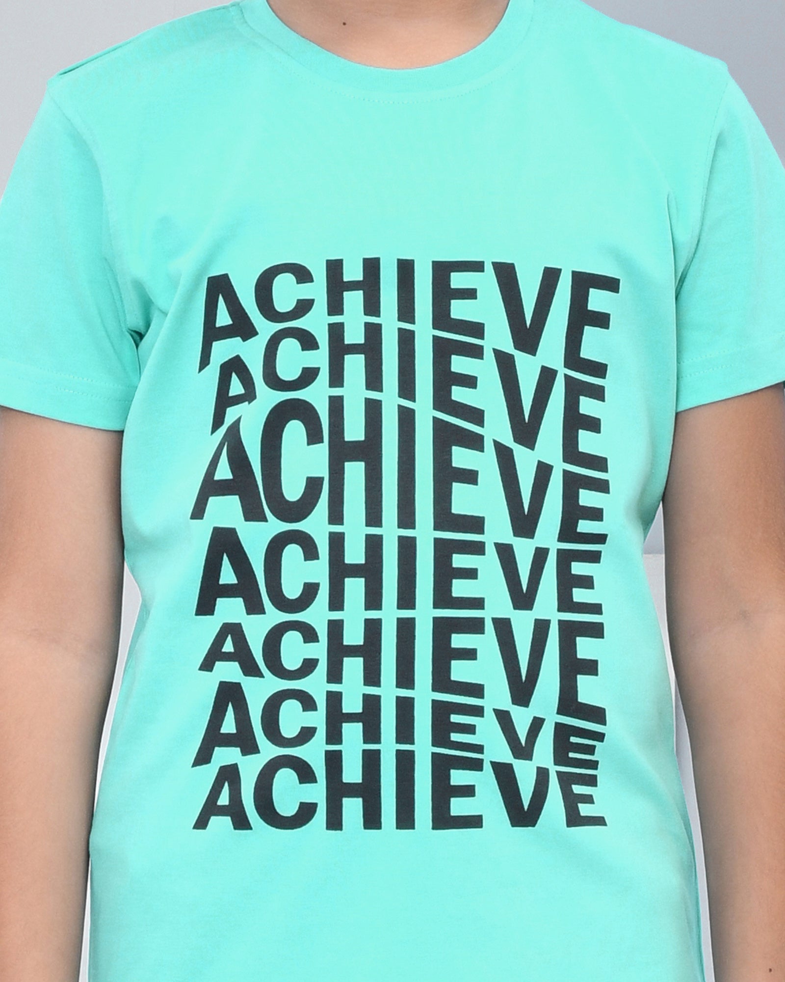 Youmaa 100% Cotton Half Sleeves Achieve Typography Printed T-Shirt - Green