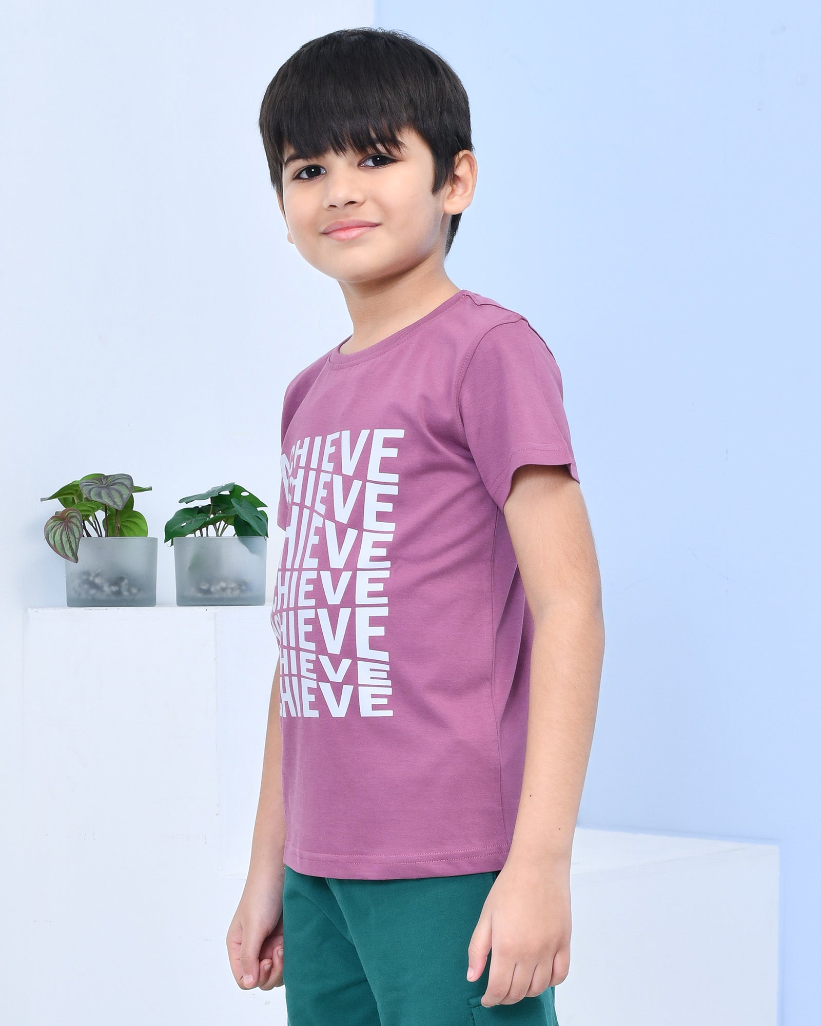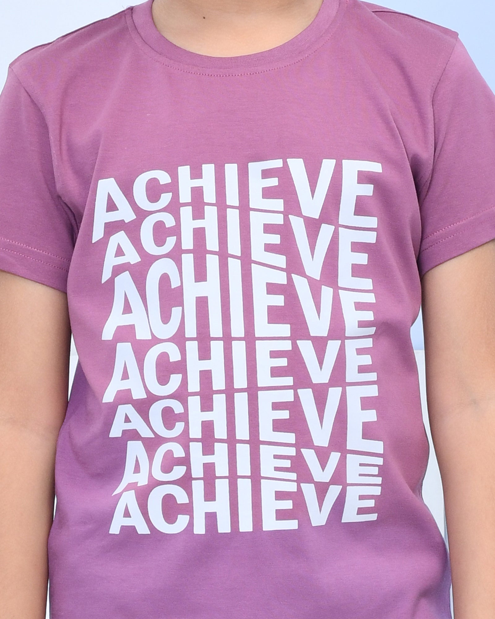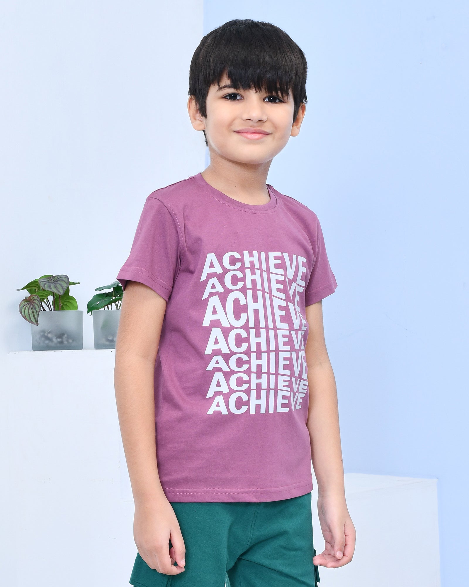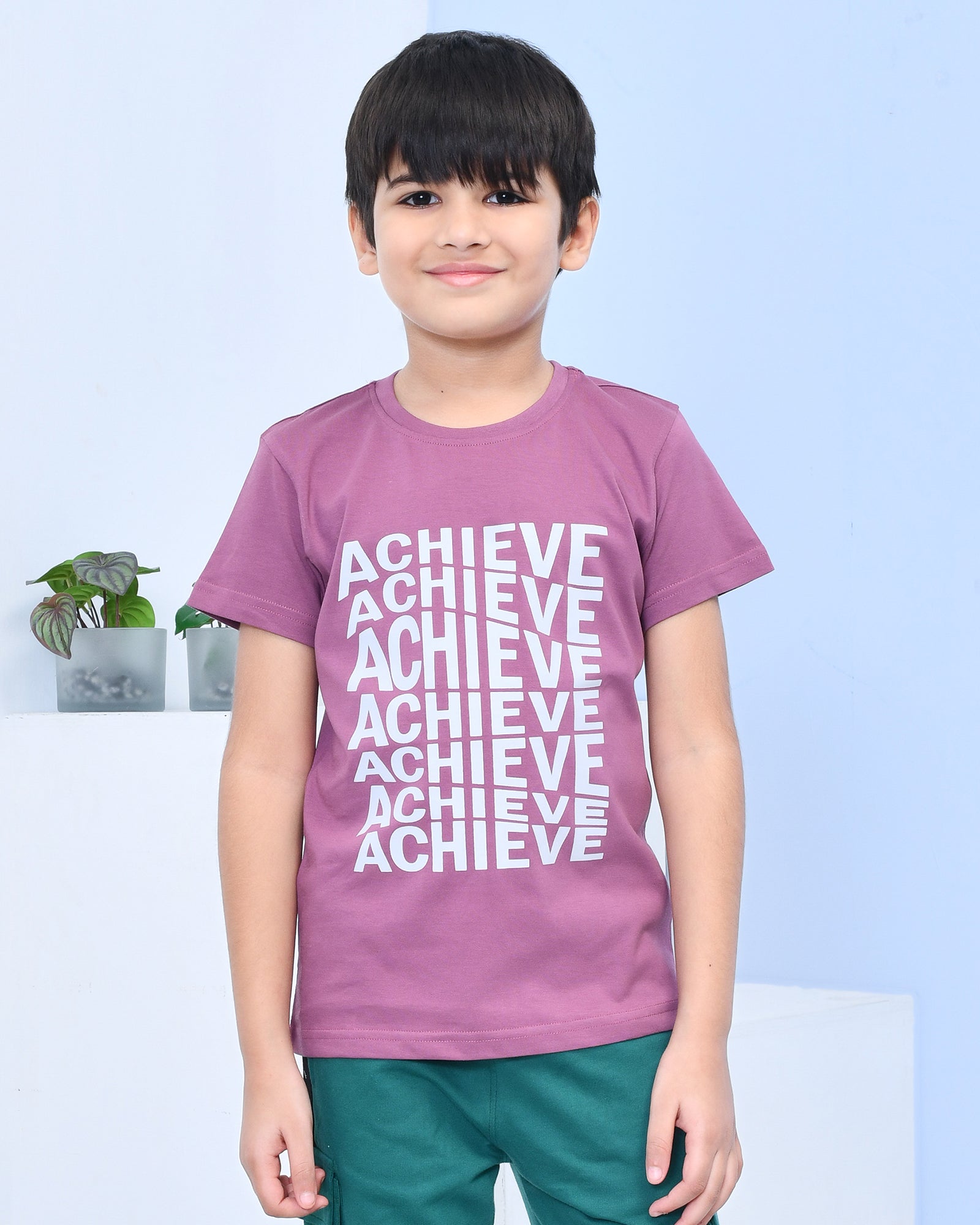 Youmaa 100% Cotton Half Sleeves Achieve Typography Printed T-Shirt - Purple
