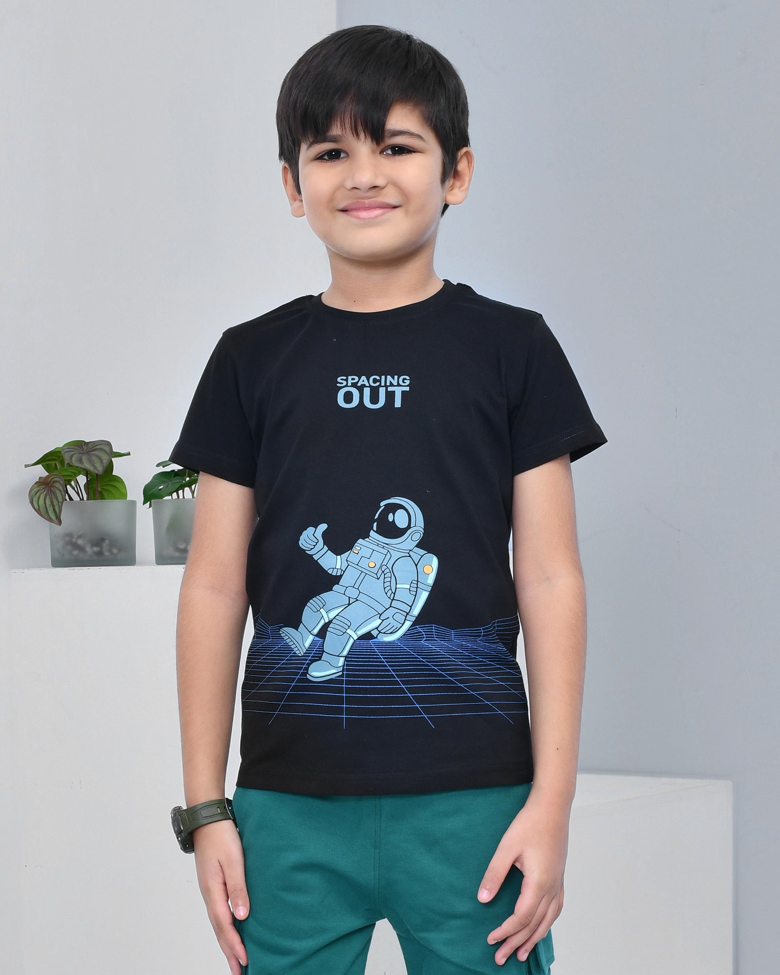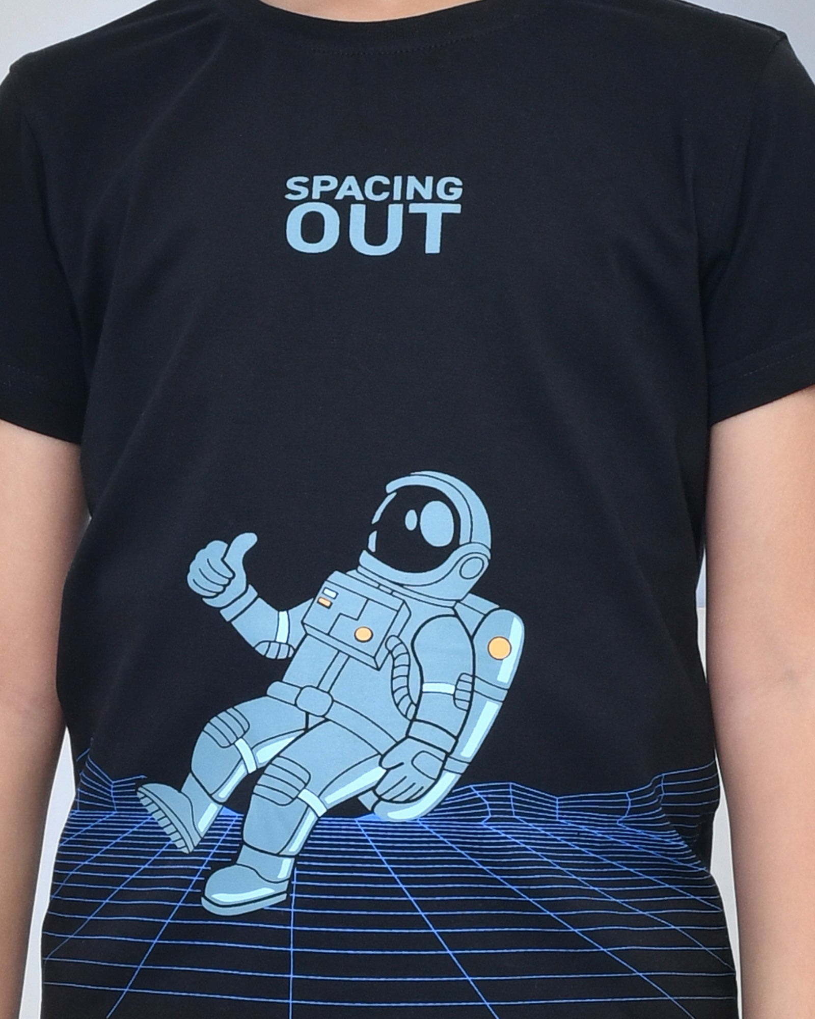 Youmaa 100% Cotton Half Sleeves Astronaut Graphics Printed T-Shirt - Black