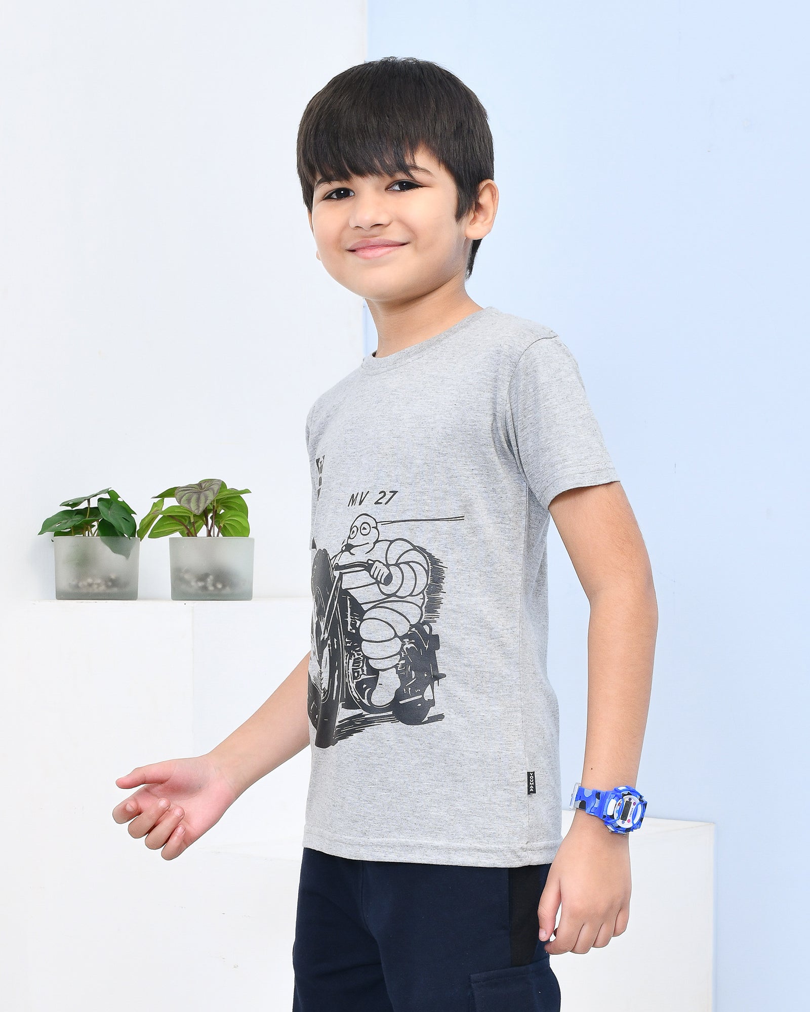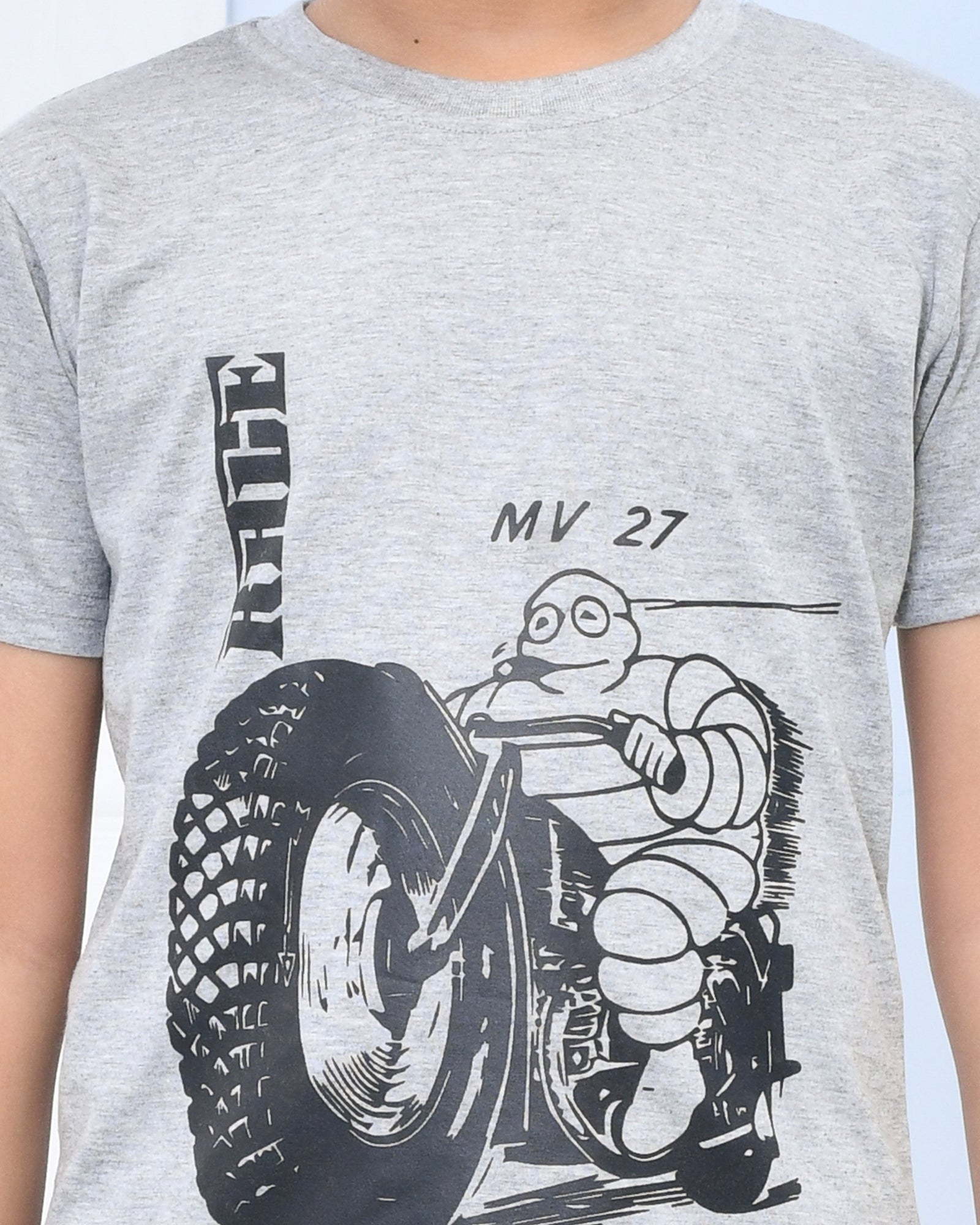 Youmaa 100% Cotton Half Sleeves Bike Graphics Printed T-Shirt - Grey