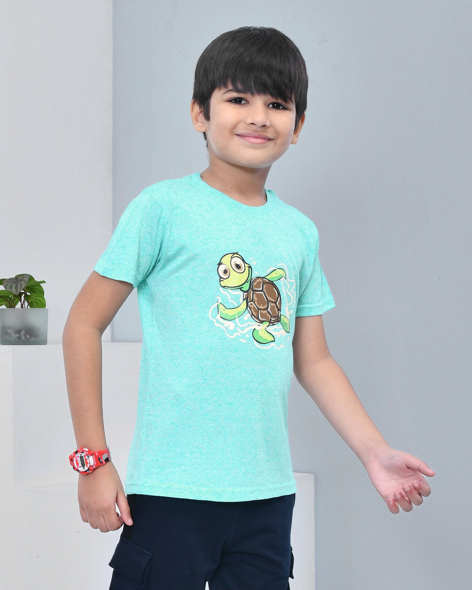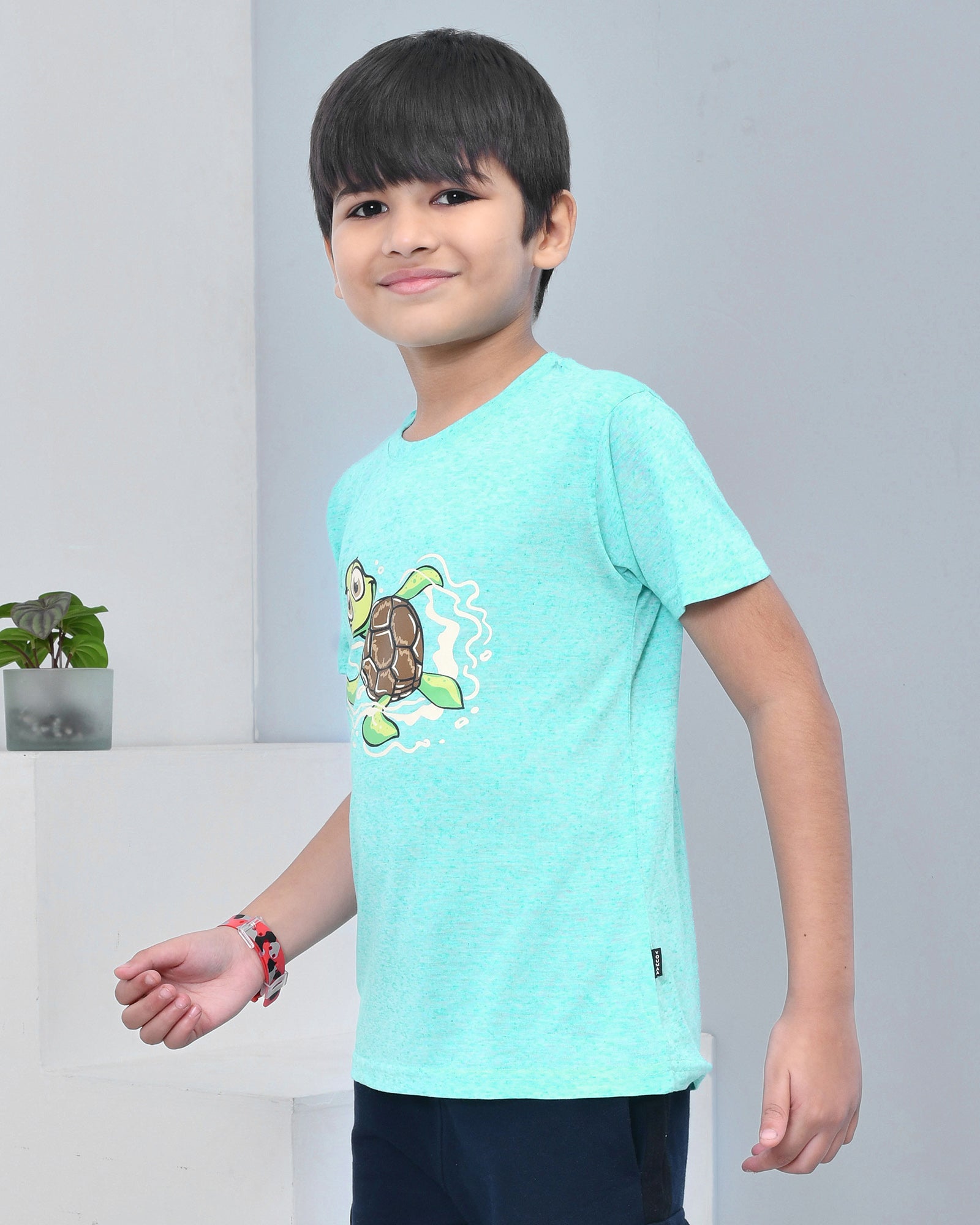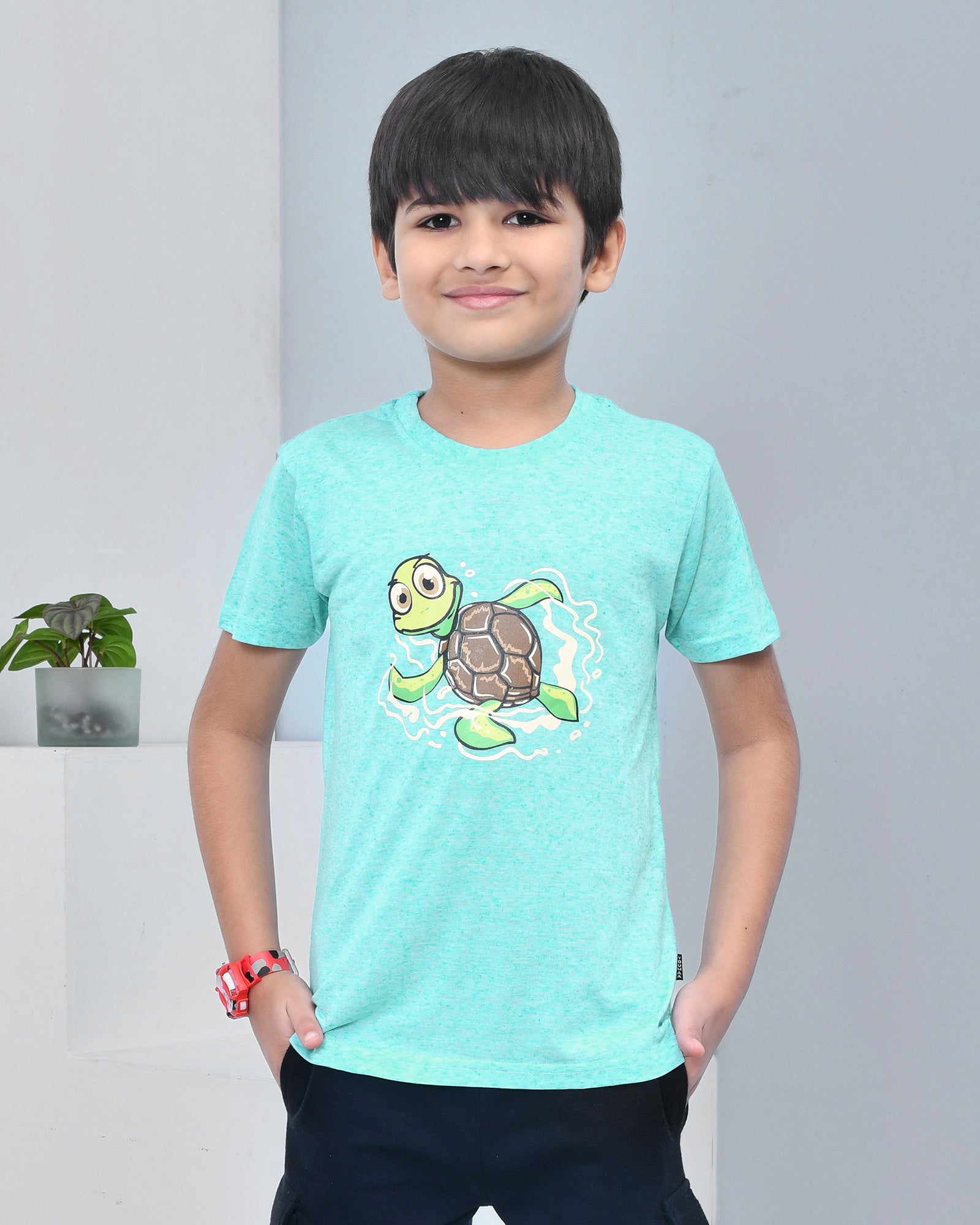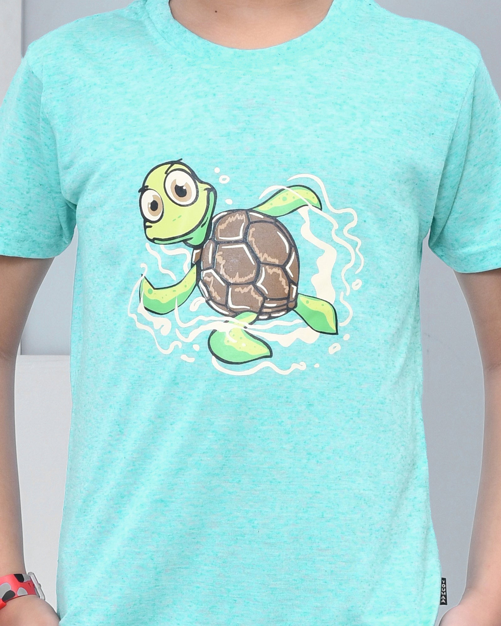 Youmaa 100% Cotton Half Sleeves Cartoon Turtle Graphics Printed T-Shirt - Green