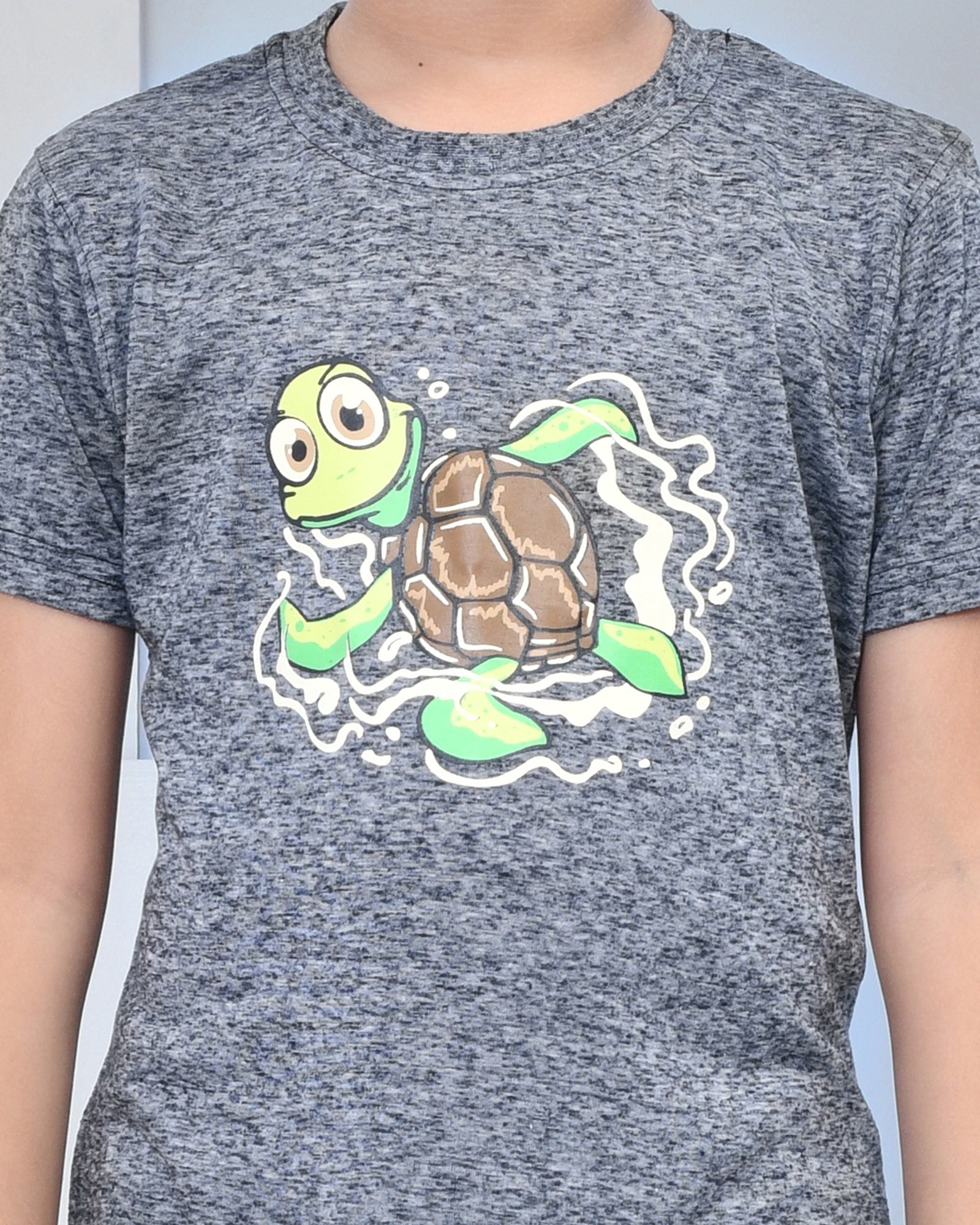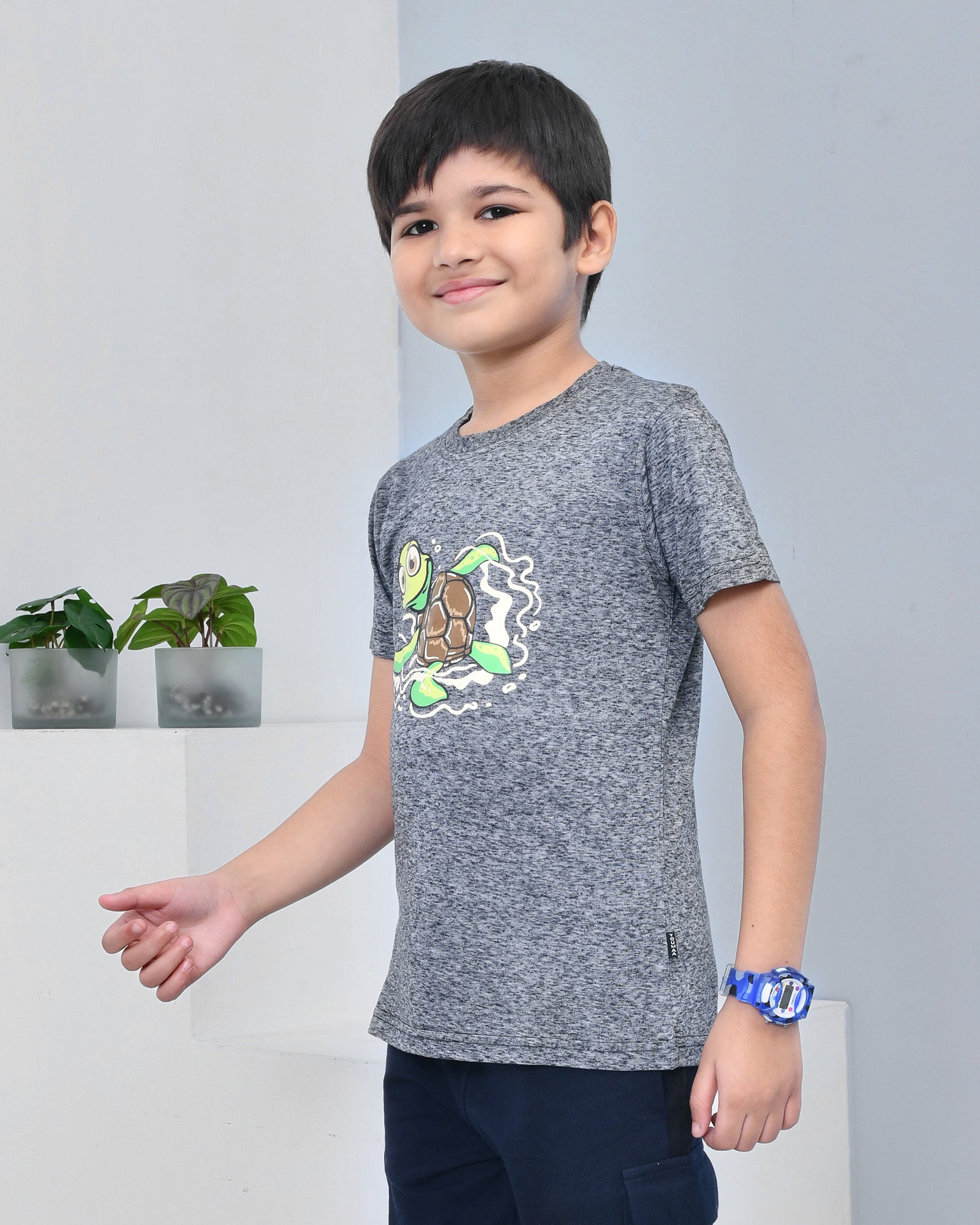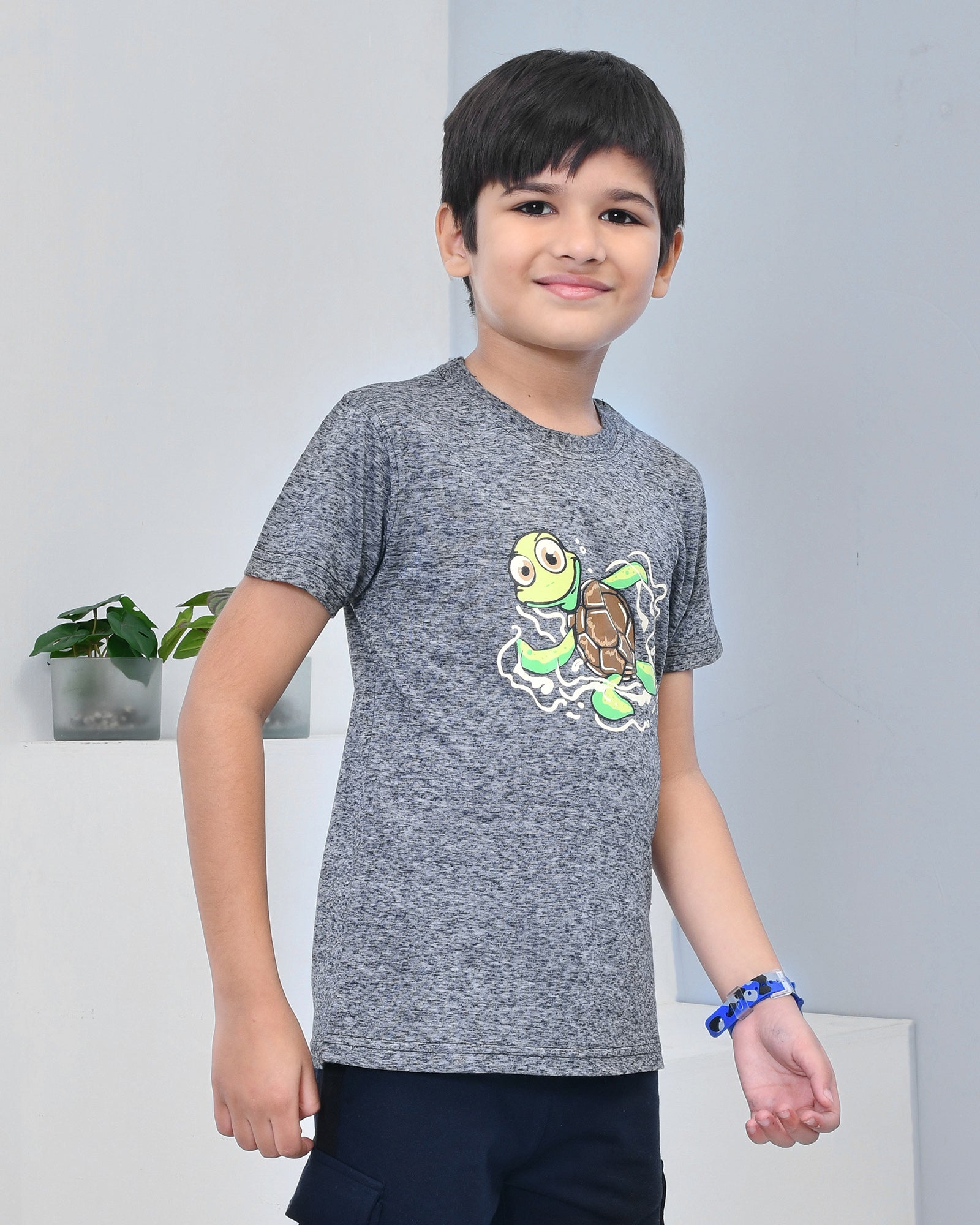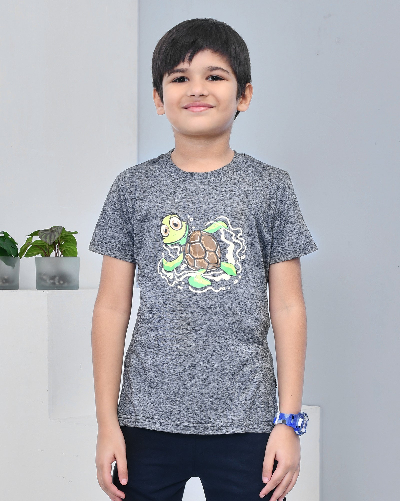 Youmaa 100% Cotton Half Sleeves Cartoon Turtle Graphics Printed T-Shirt - Grey