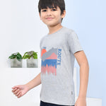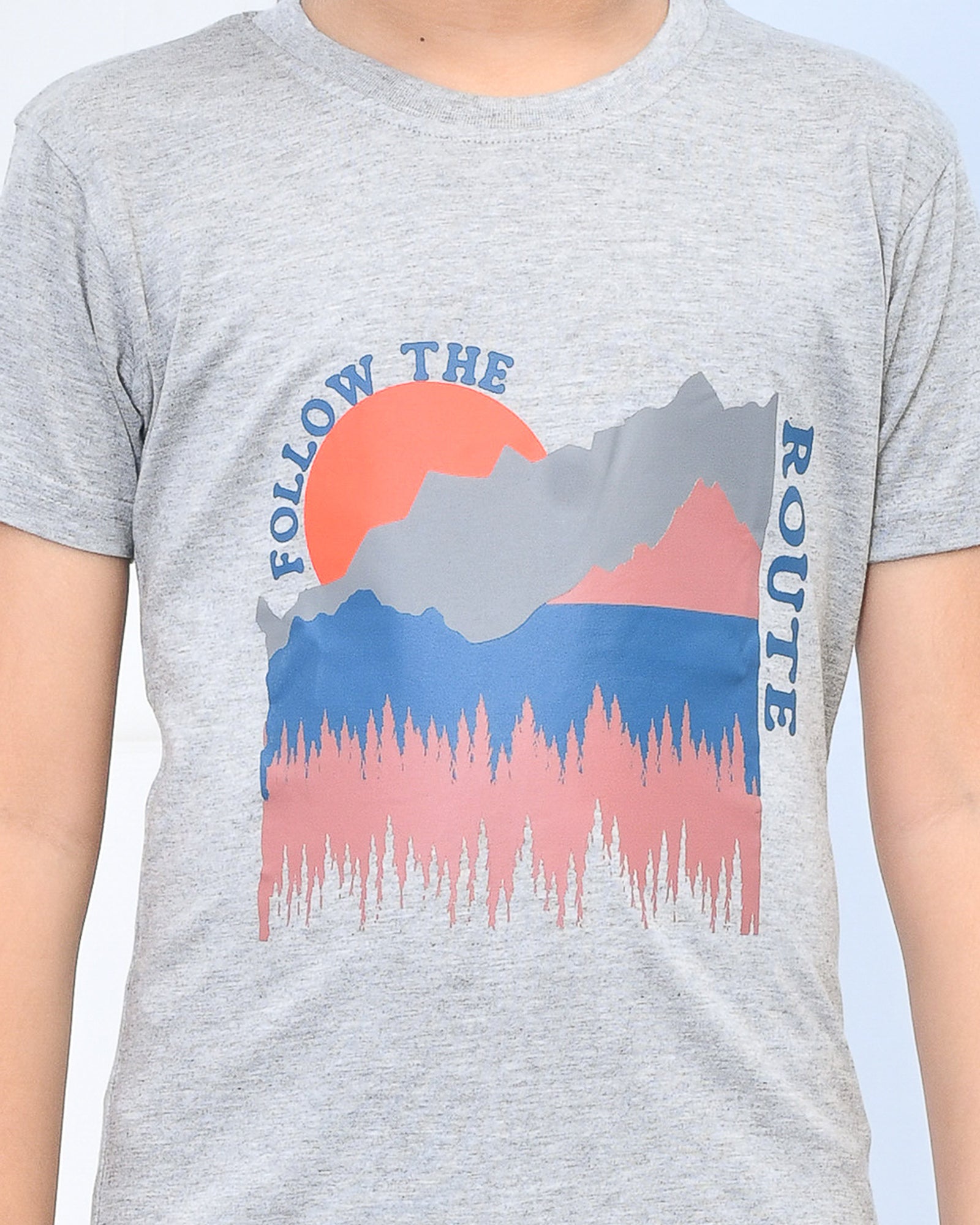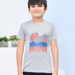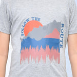 Youmaa 100% Cotton Half Sleeves Mountain Graphics Printed T-Shirt - Grey