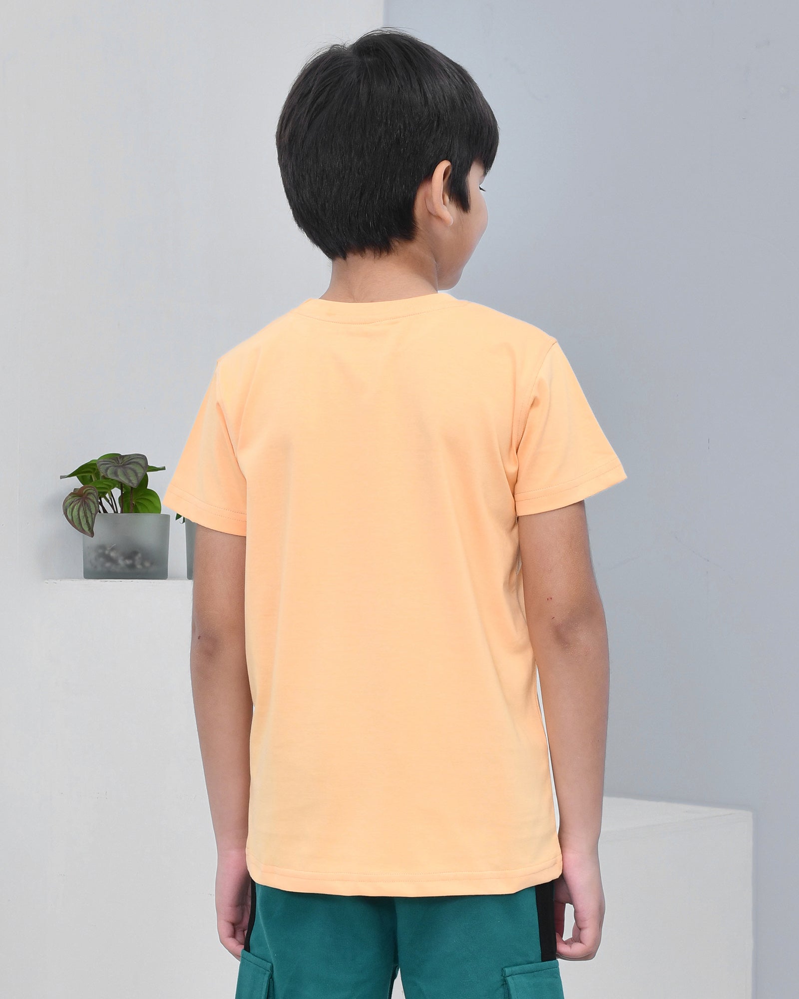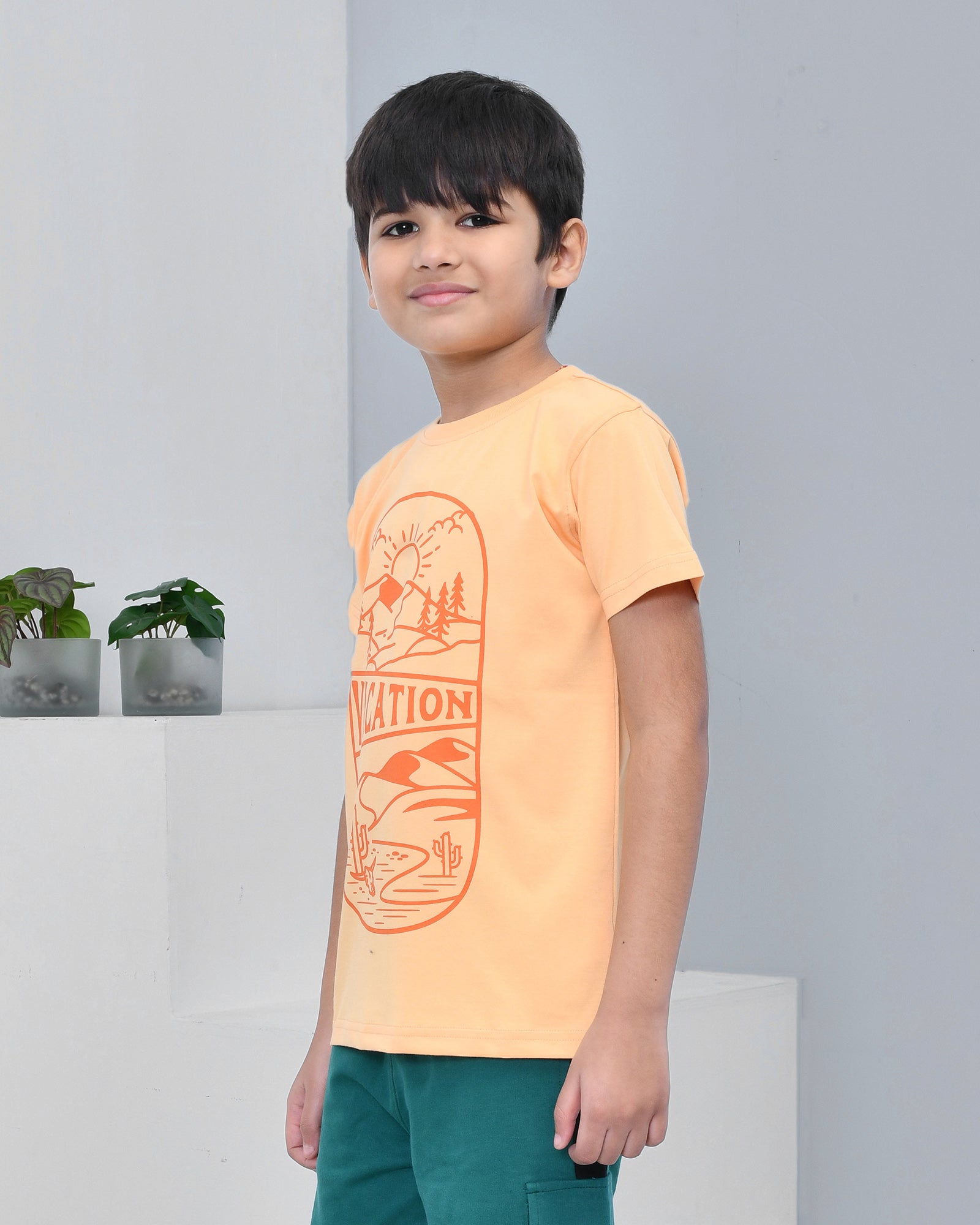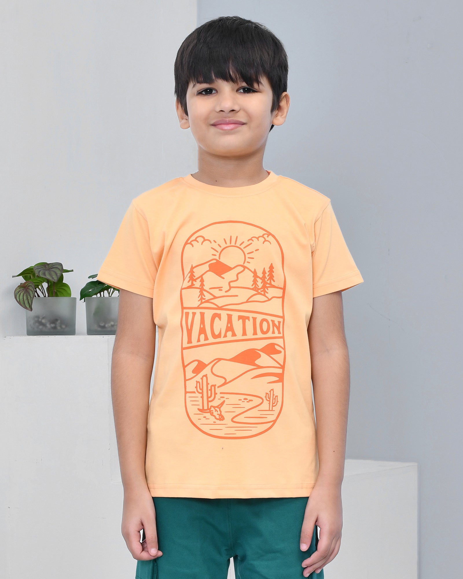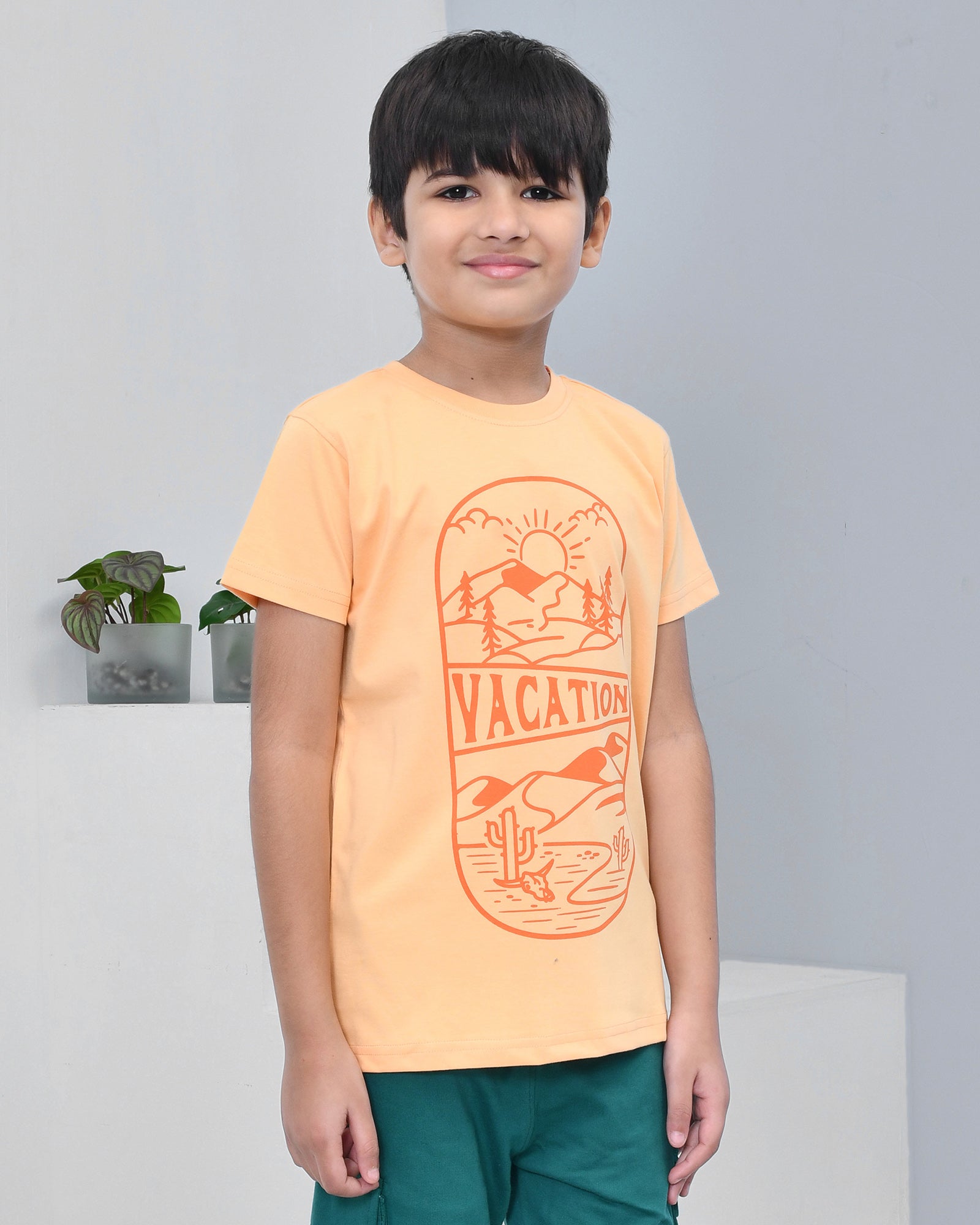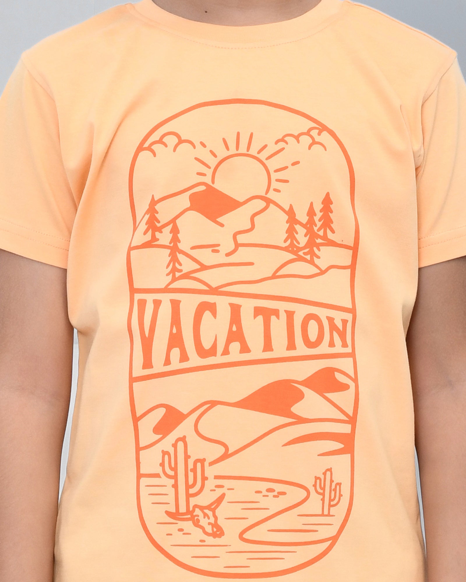 Youmaa 100% Cotton Half Sleeves Mountain Vacation Graphics Printed T-Shirt - Orange