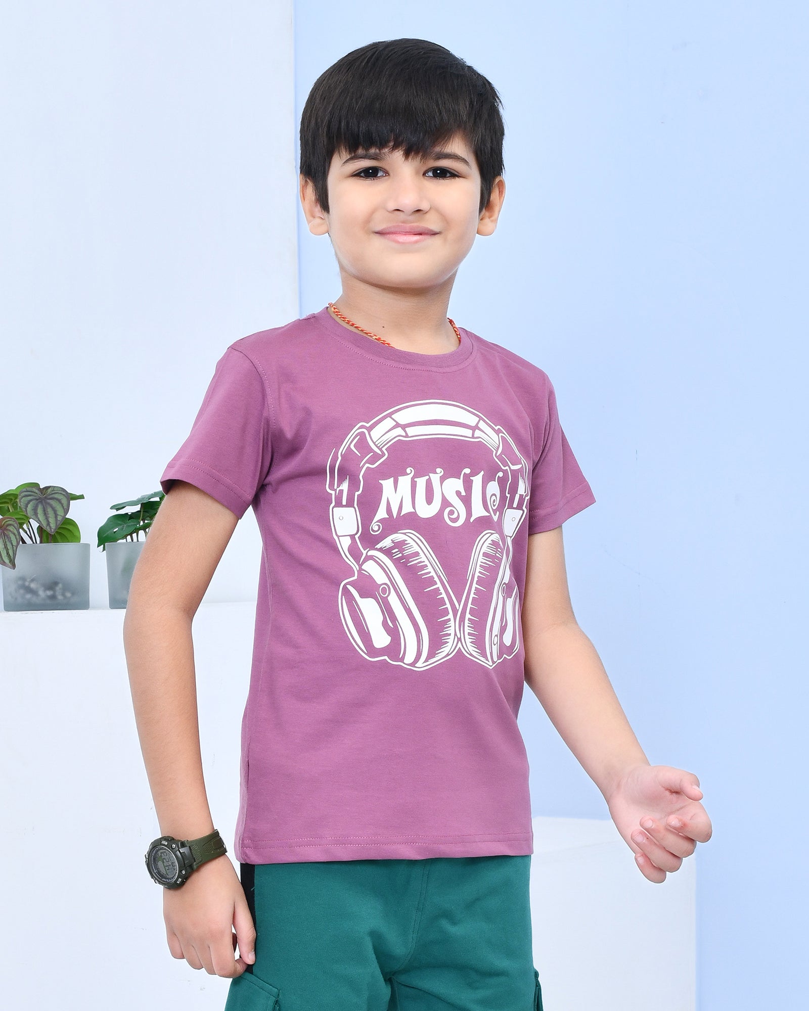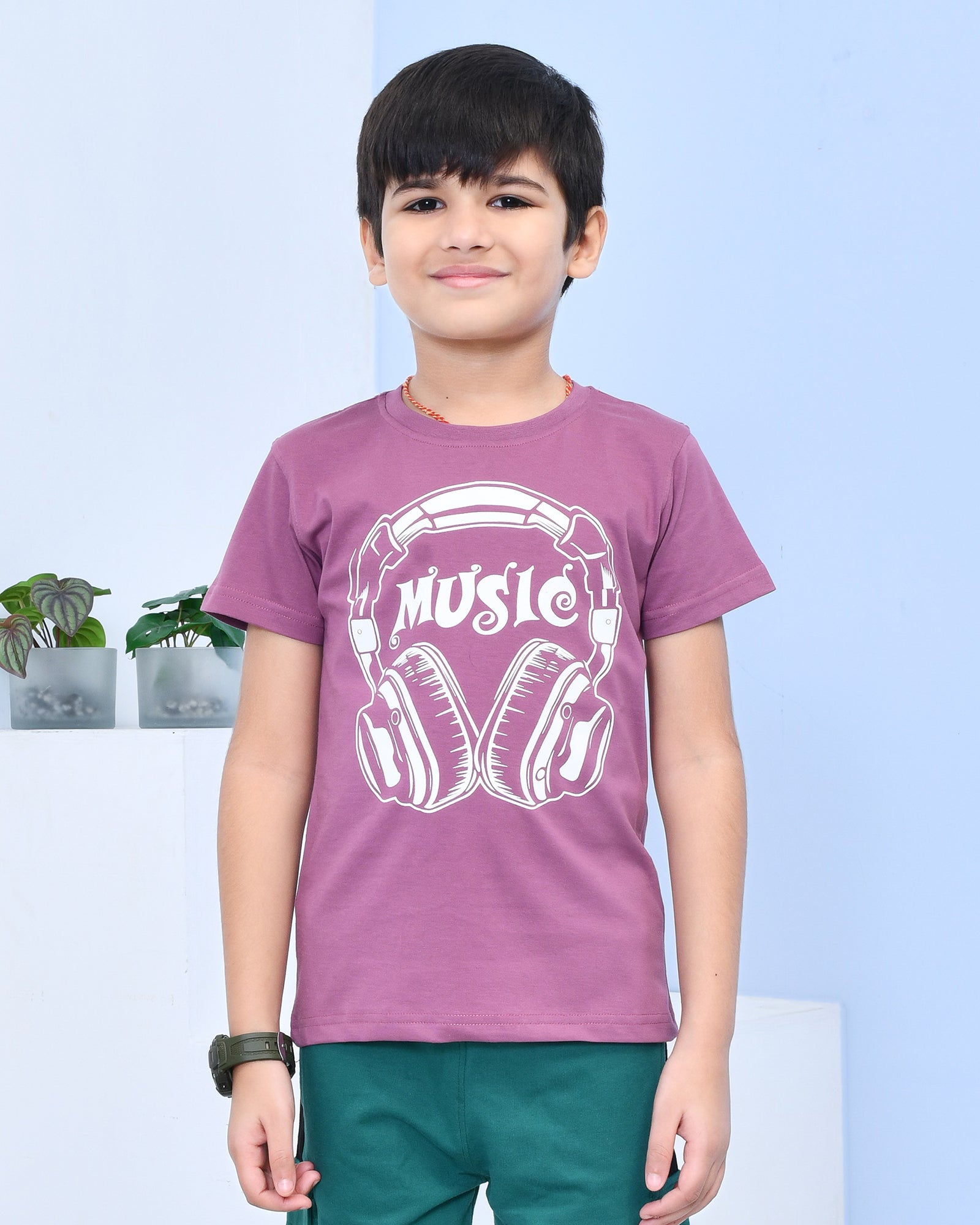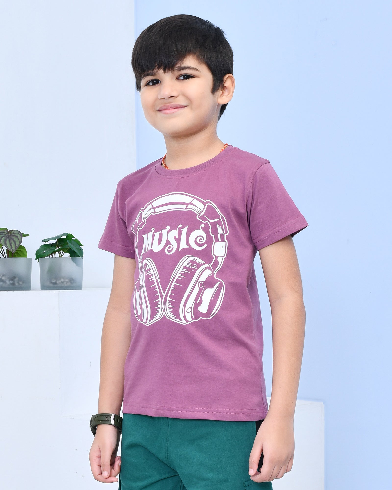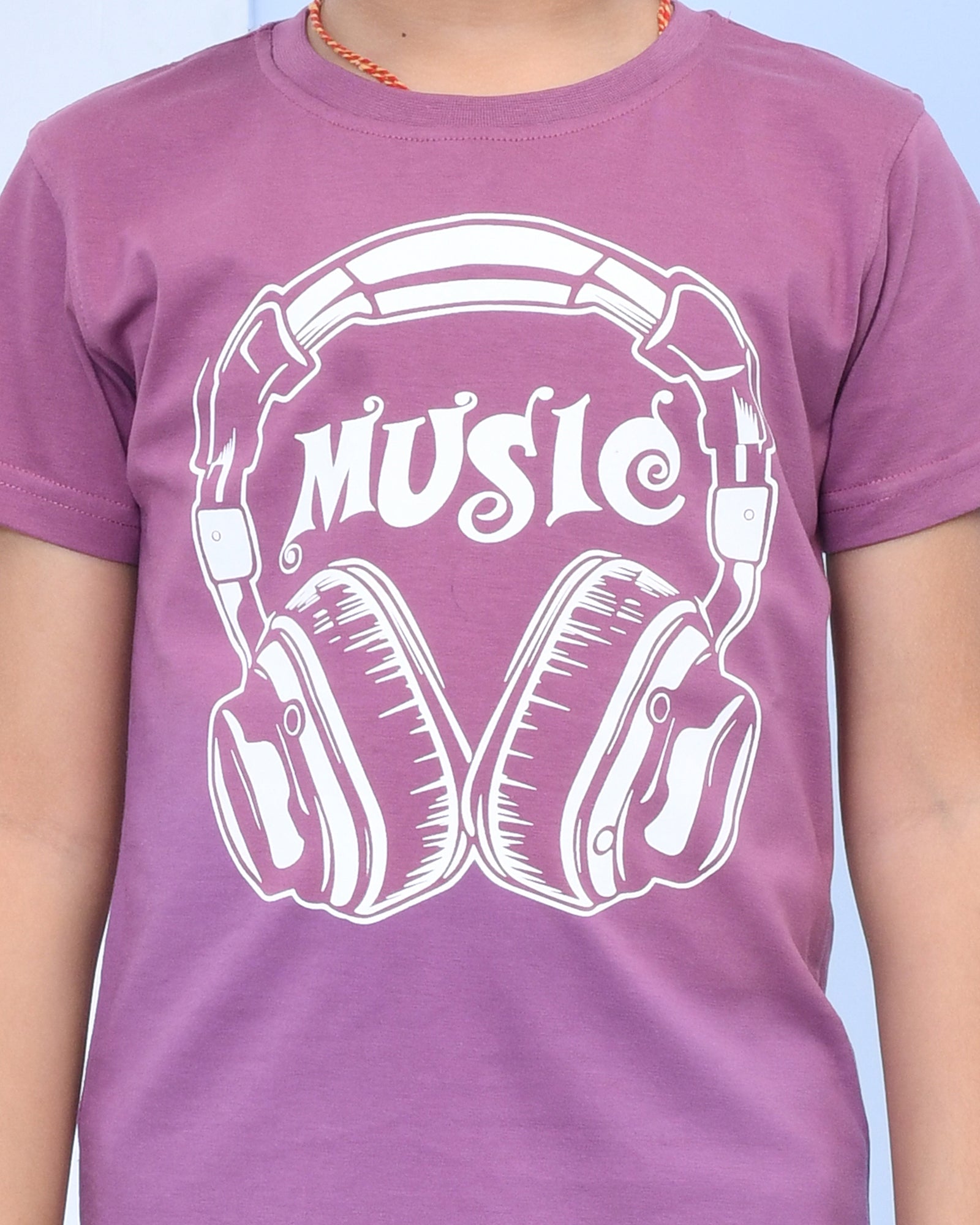 Youmaa 100% Cotton Half Sleeves Music Graphics Printed T-Shirt - Purple
