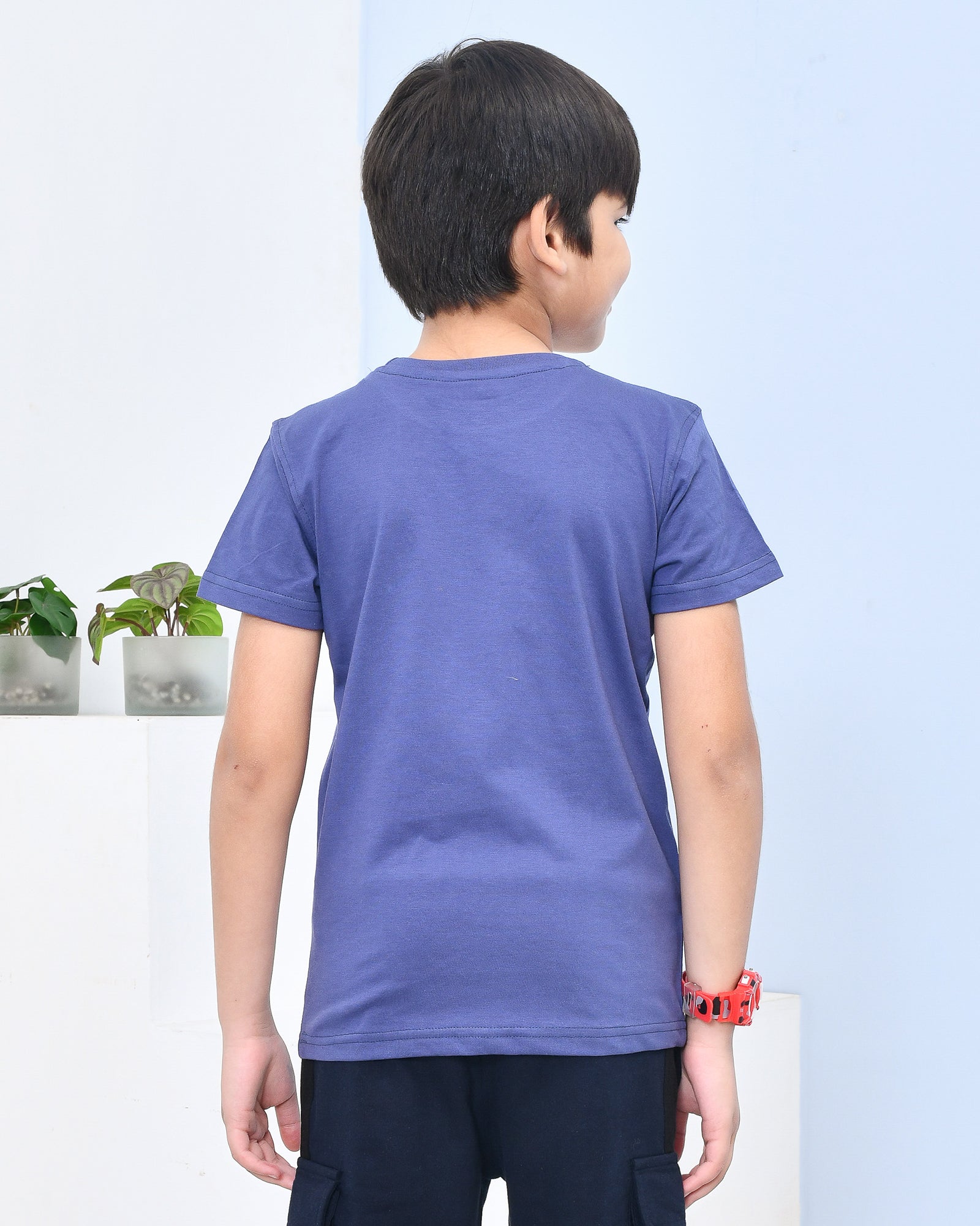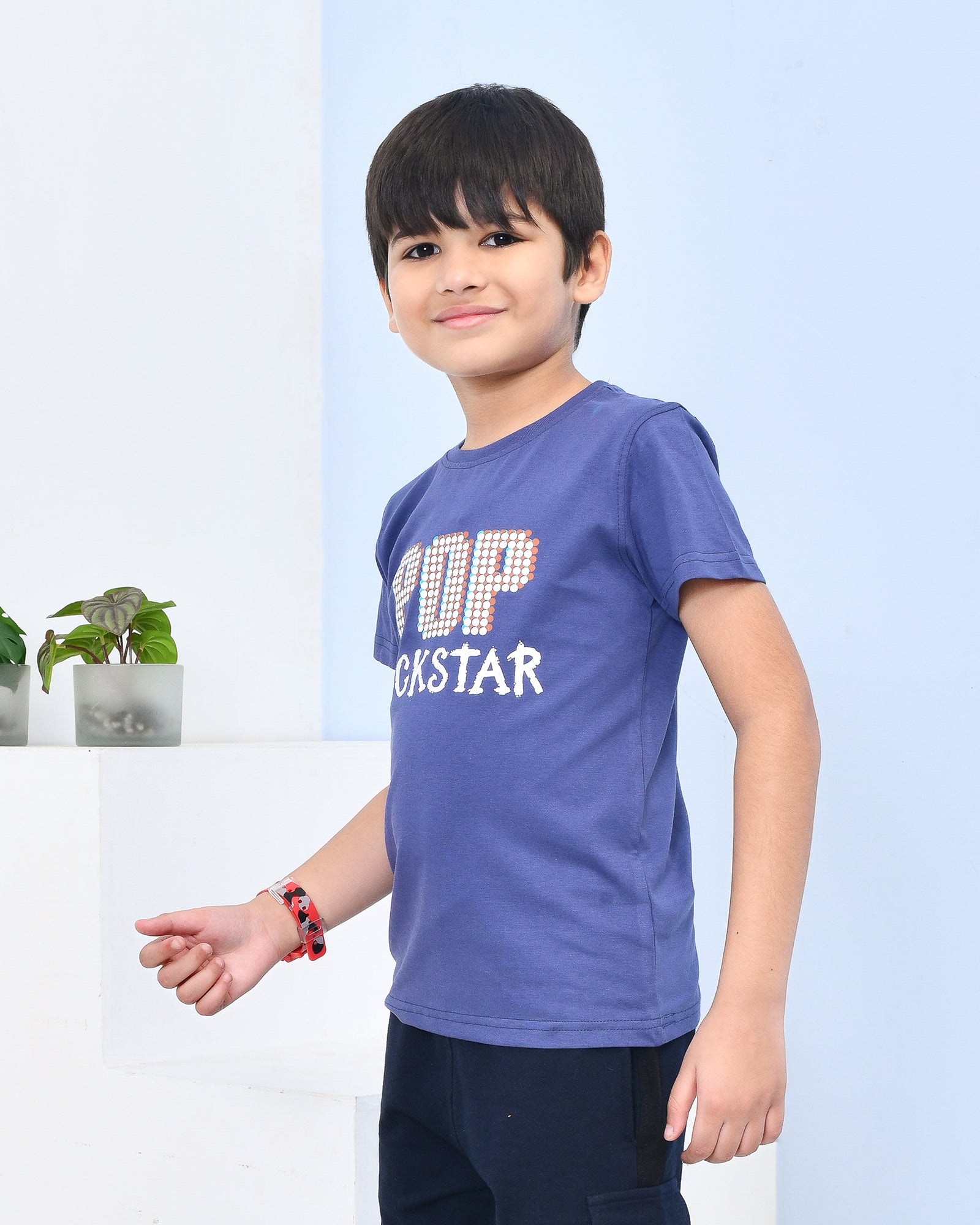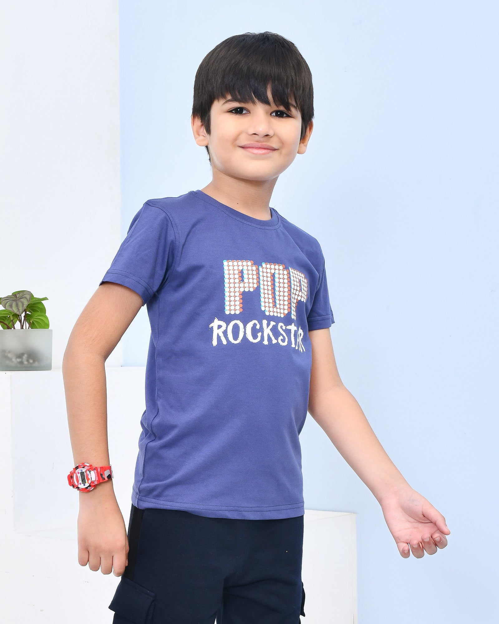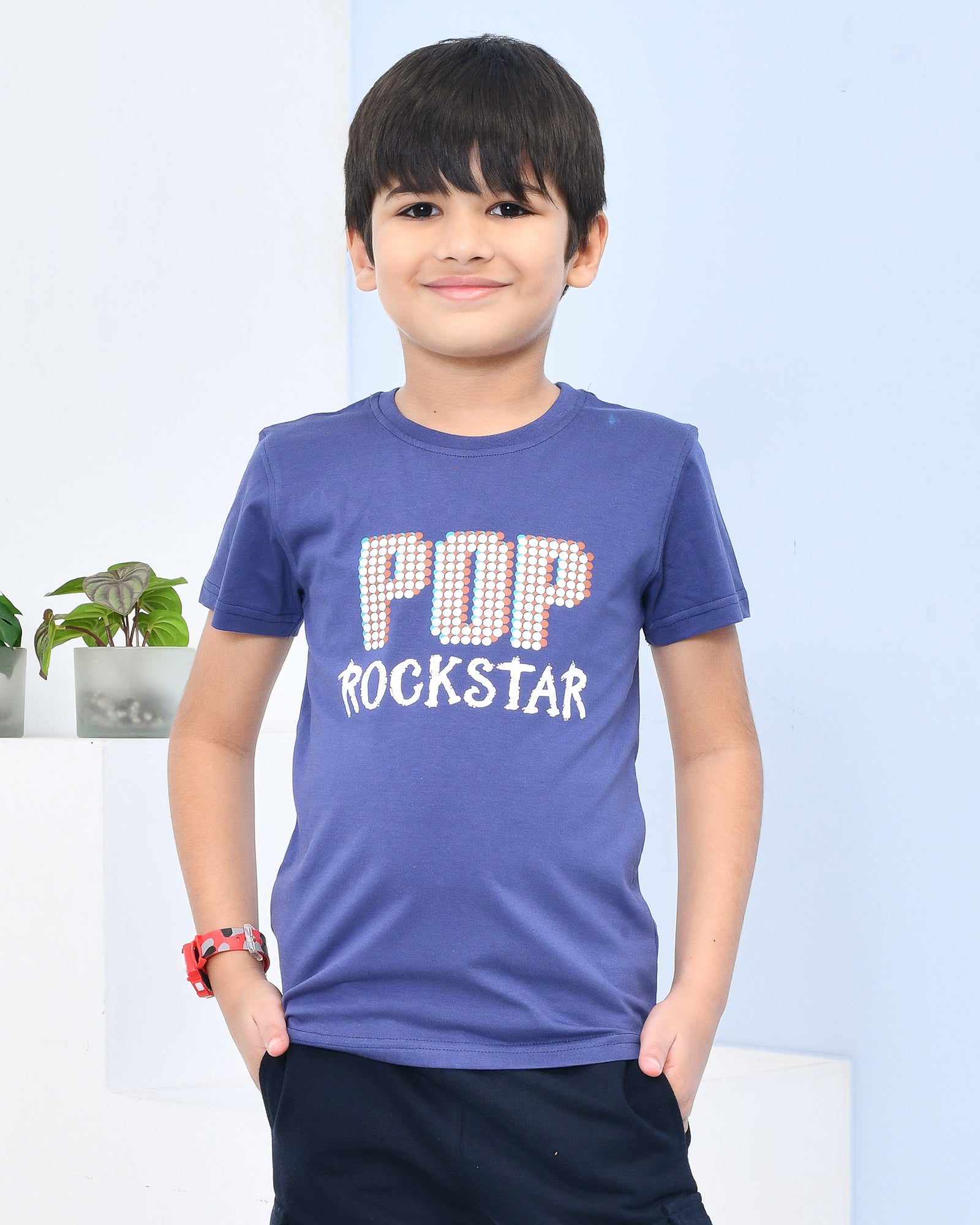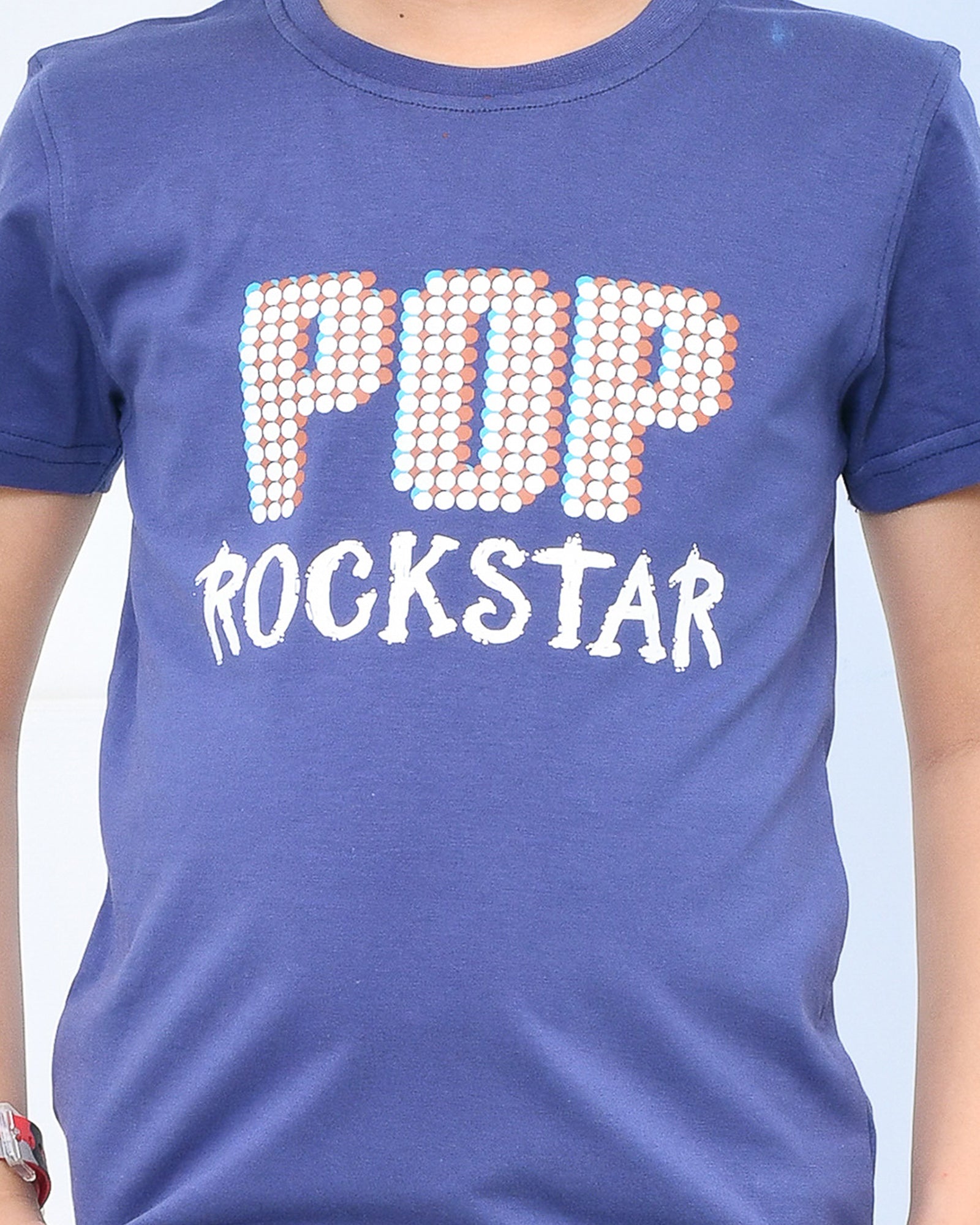 Youmaa 100% Cotton Half Sleeves POP Rockstar Printed T-Shirt - Blue
