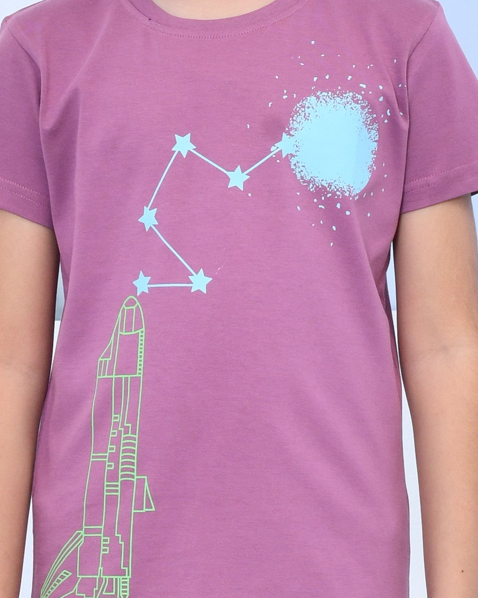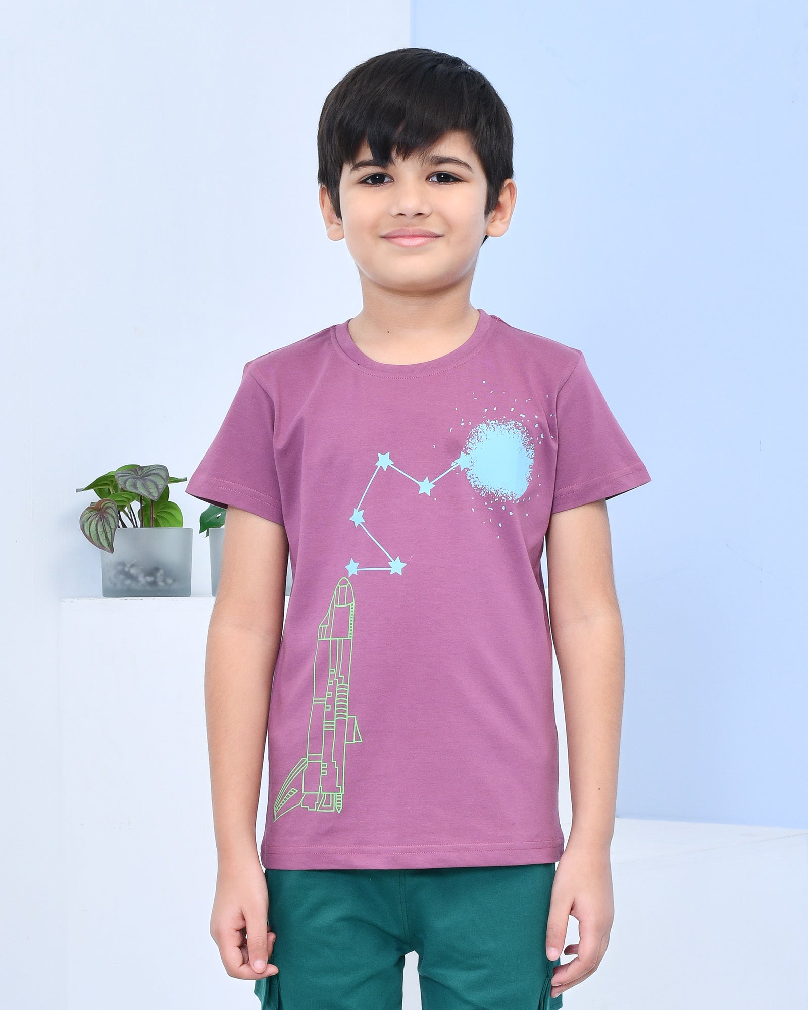 Youmaa 100% Cotton Half Sleeves Rocket Graphics Printed T-Shirt - Purple