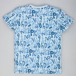 Youmaa 100% Cotton Half Sleeves Round Neck Alphabet Printed T-Shirt Light Blue