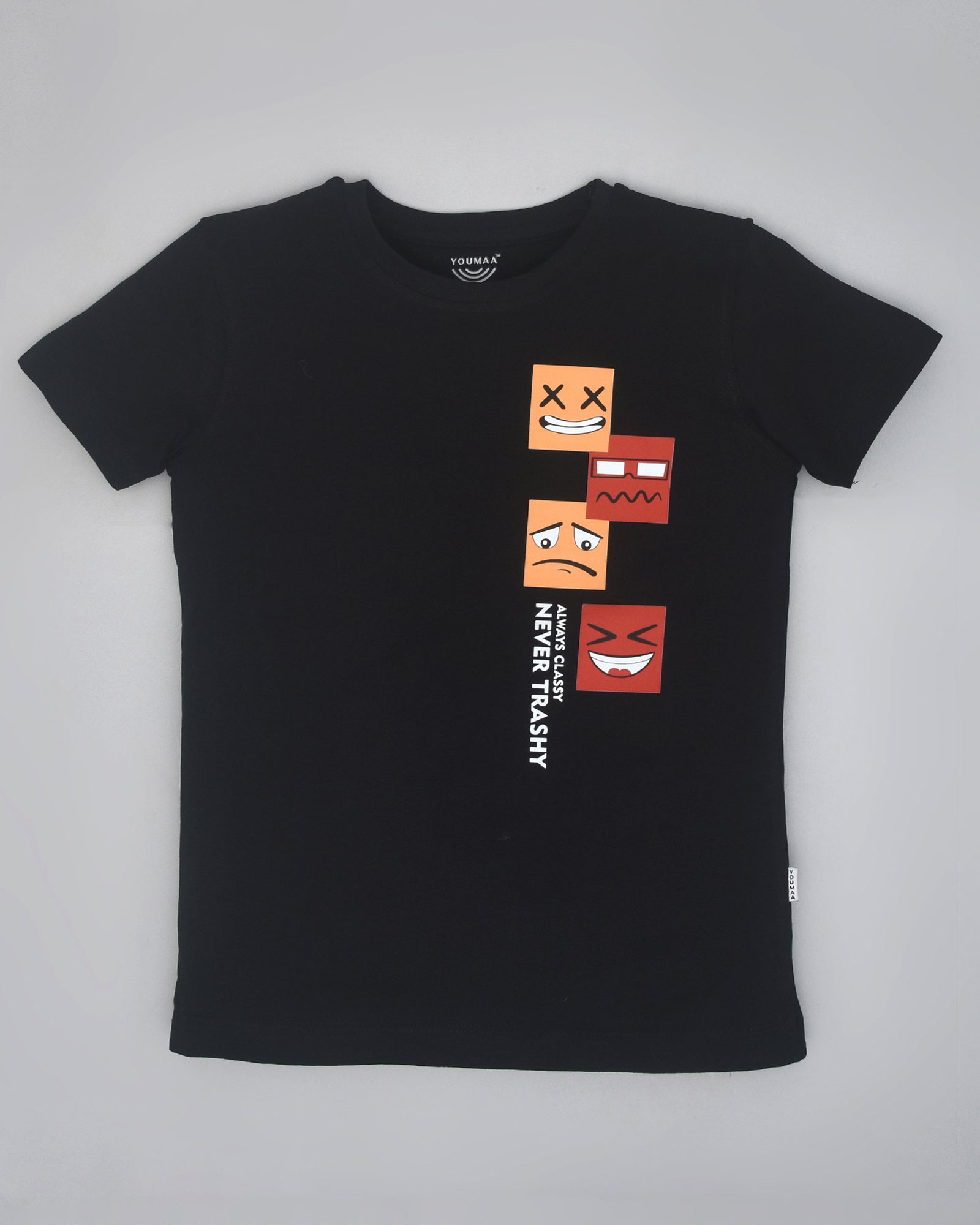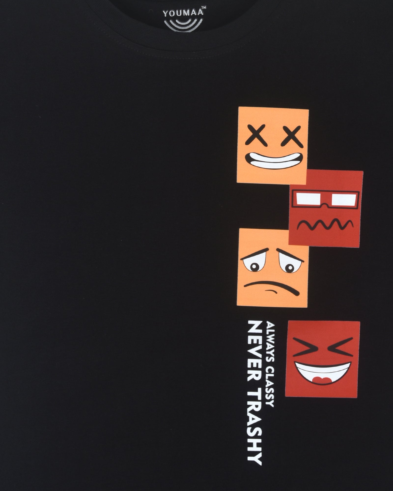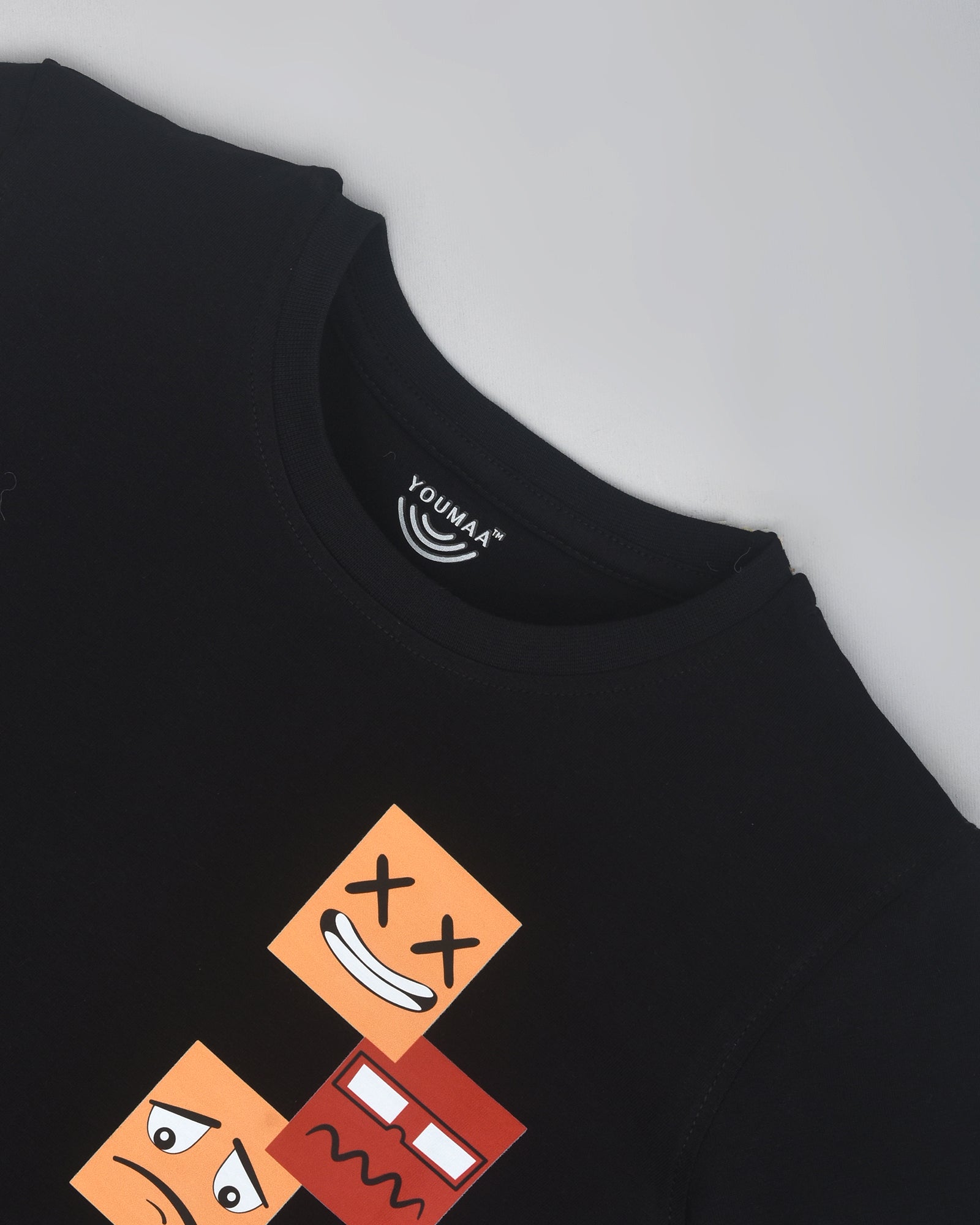 Youmaa 100% Cotton Half Sleeves Round Neck Graffiti Emoji Printed T-Shirt Black