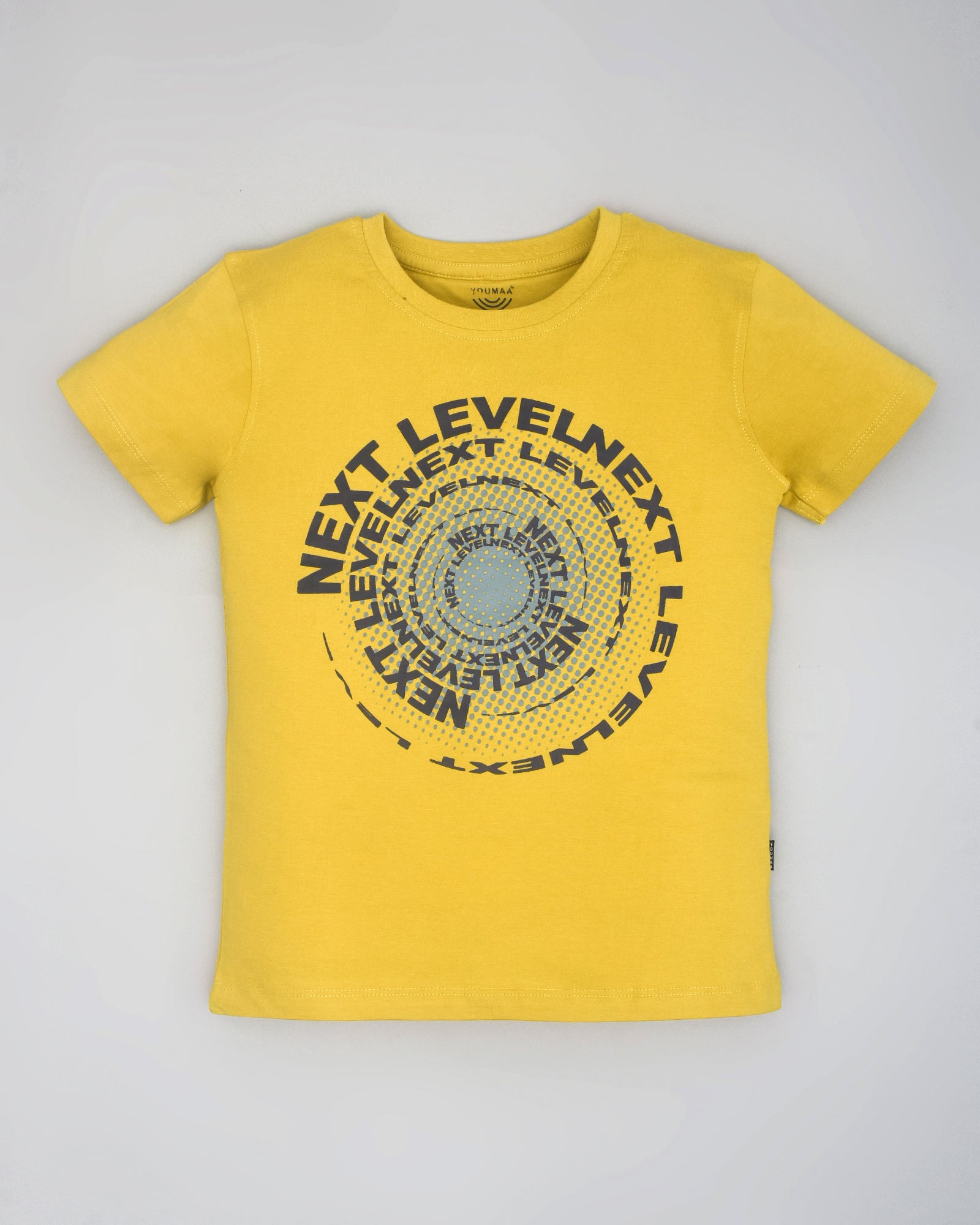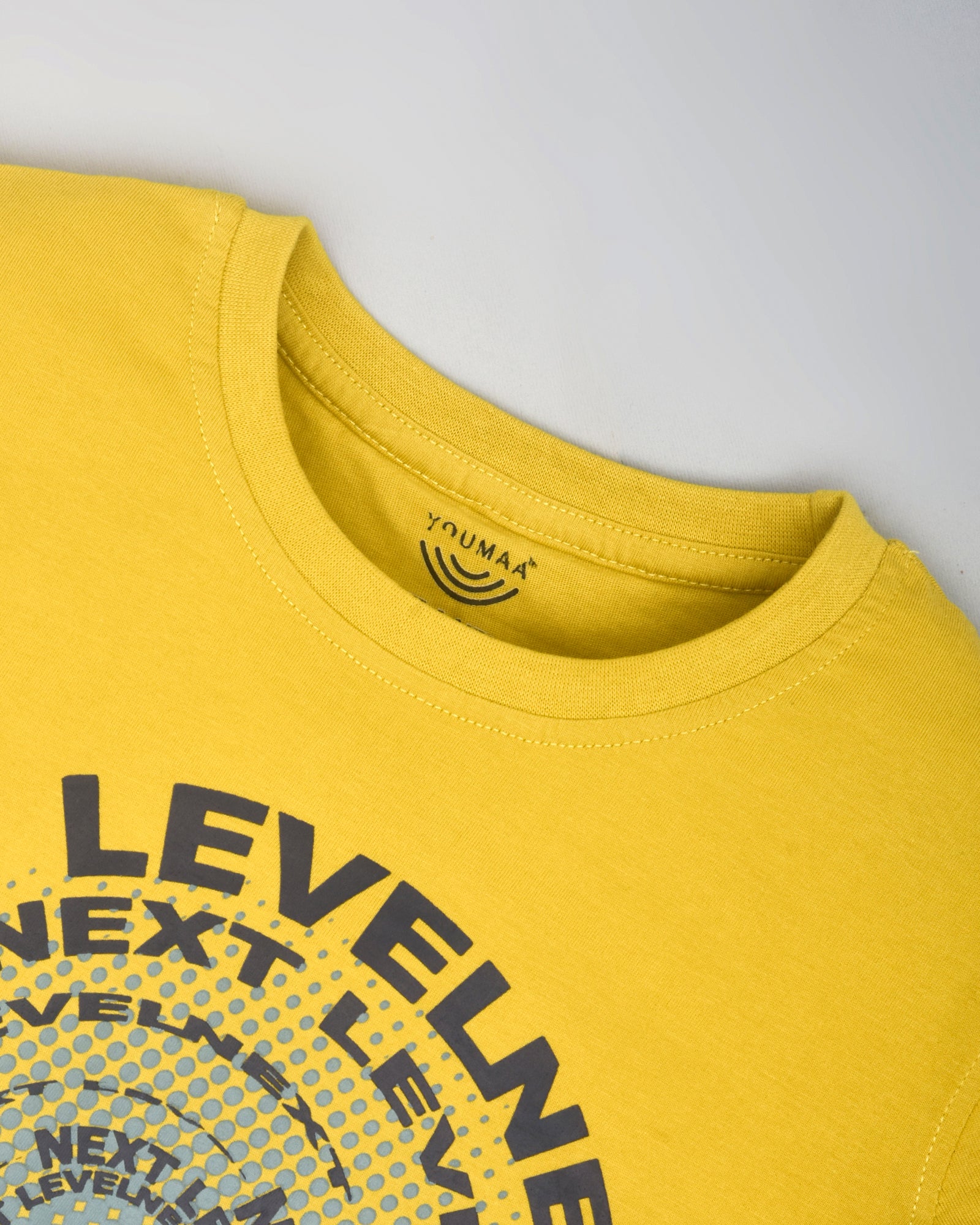 Youmaa 100% Cotton Half Sleeves Round Neck My Typographic World Printed T-Shirt Yellow