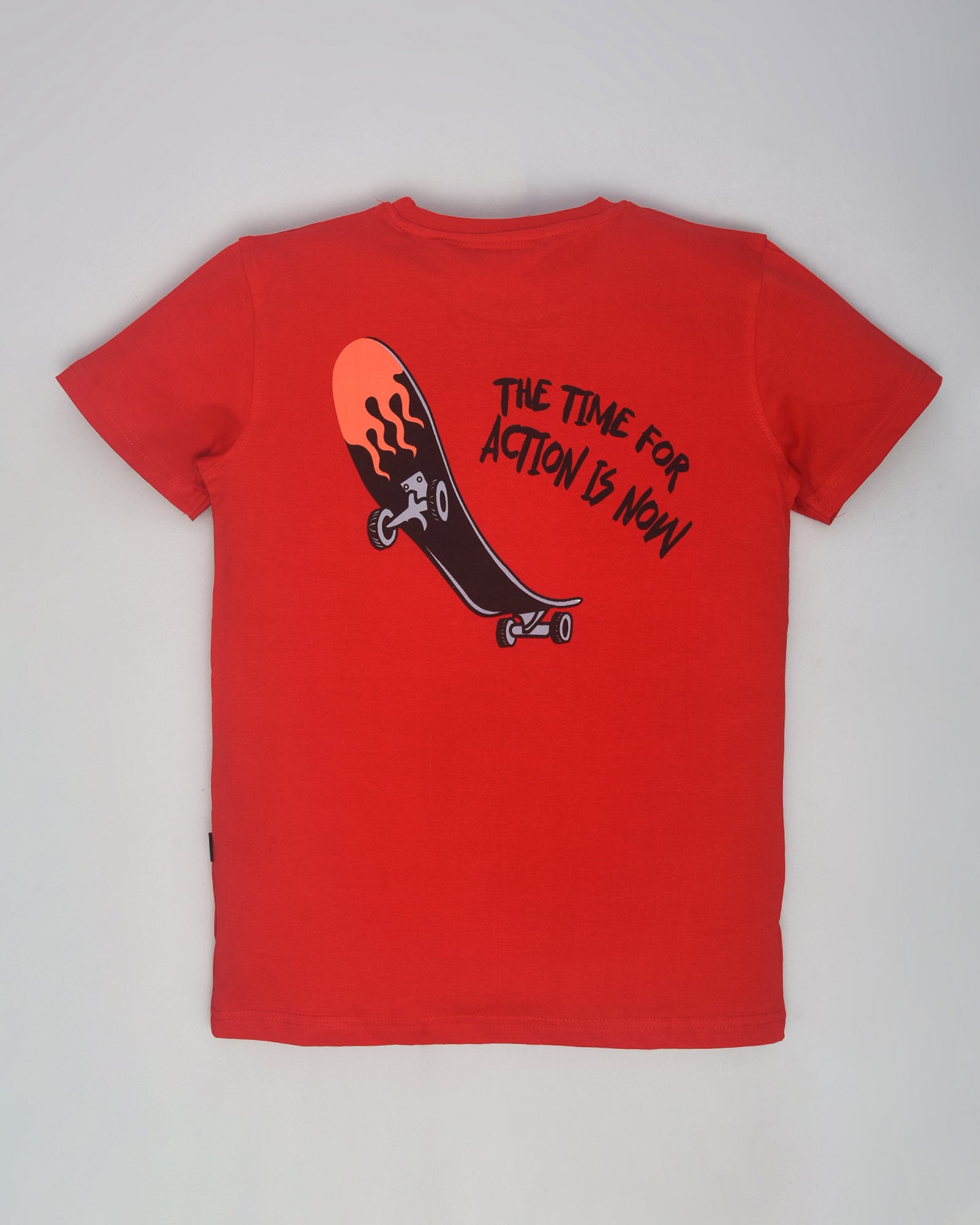 Youmaa 100% Cotton Half Sleeves Round Neck Skateboard Printed T-Shirt Red