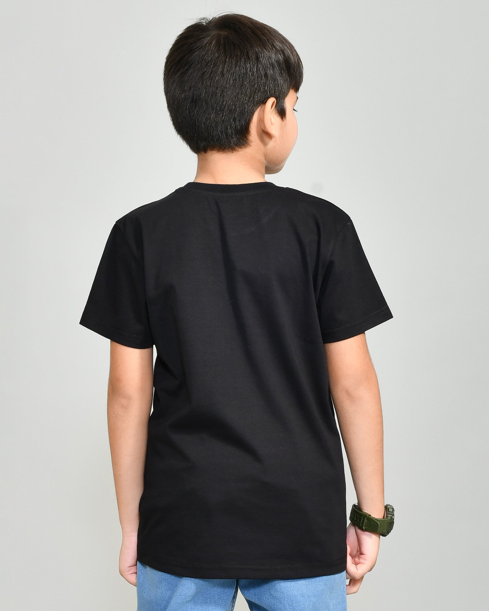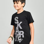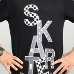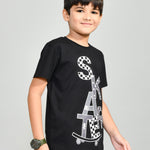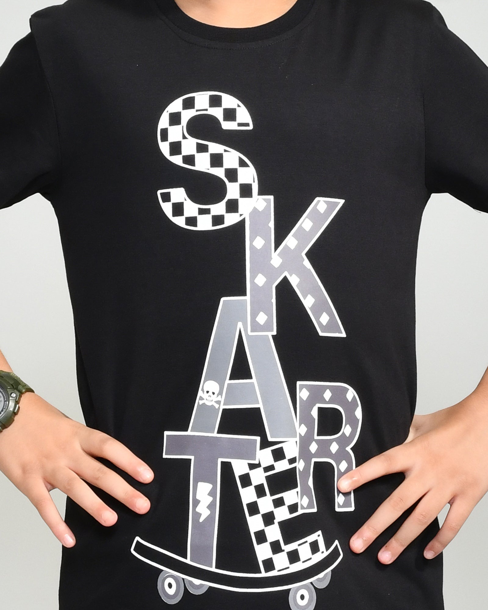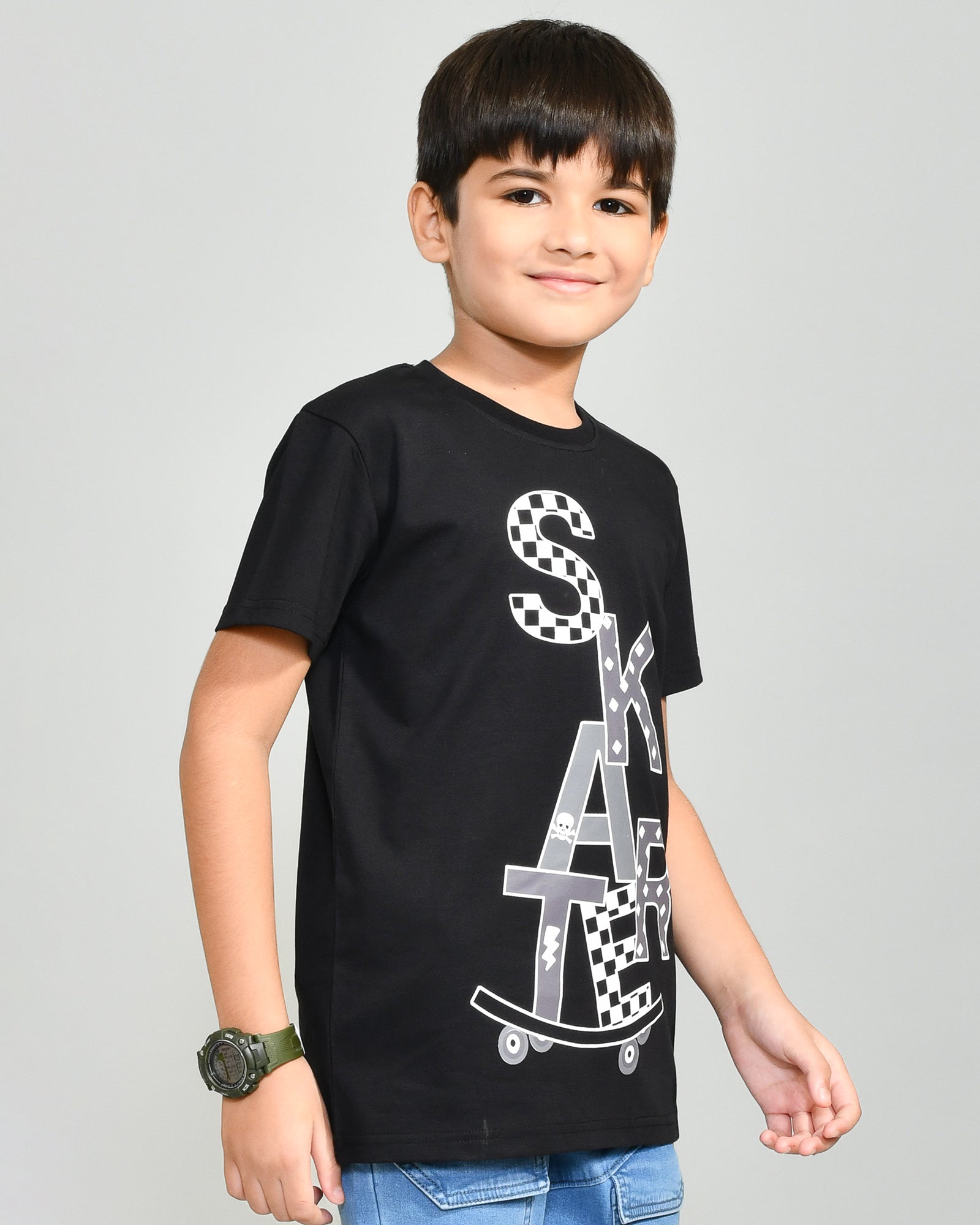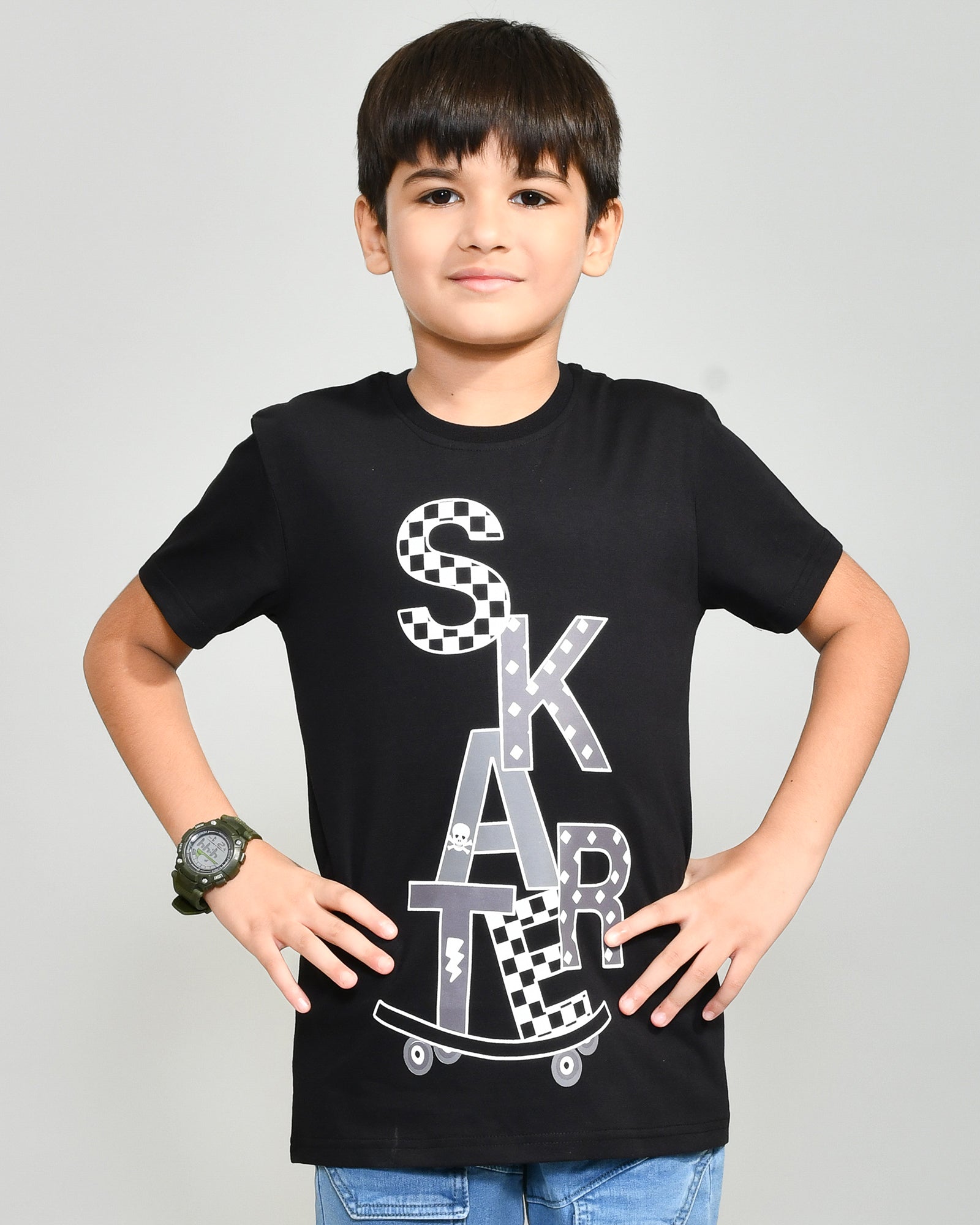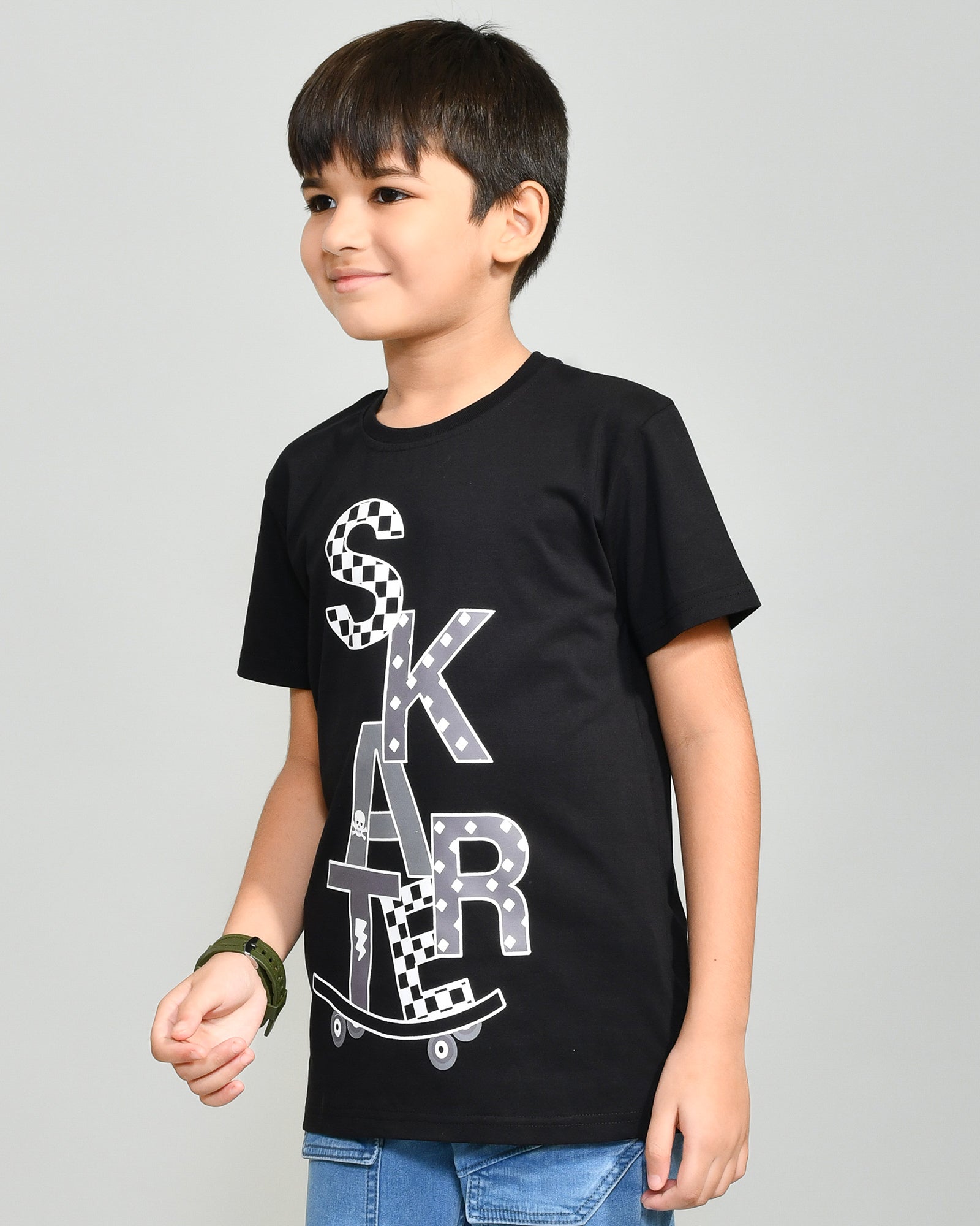 Youmaa 100% Cotton Half Sleeves Round Neck Skaters Text Printed T-Shirt Black