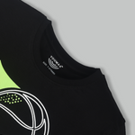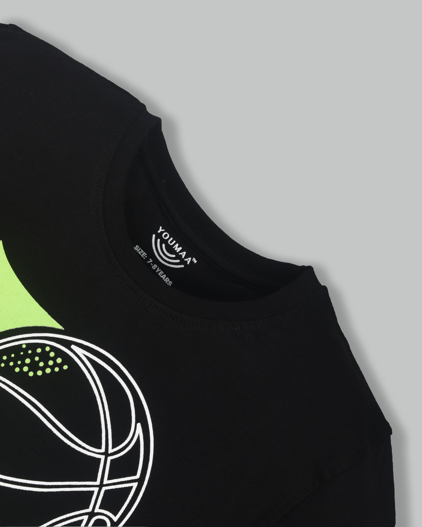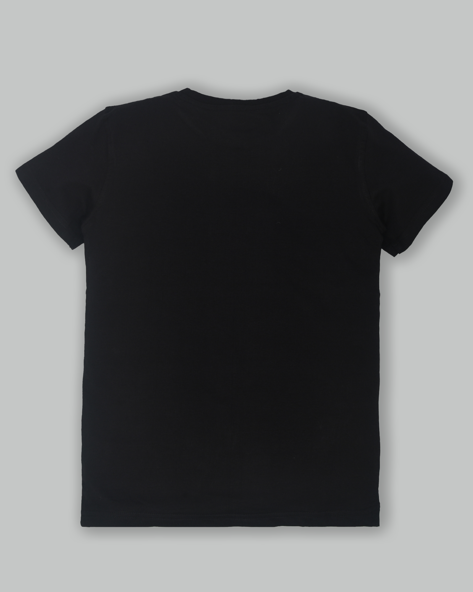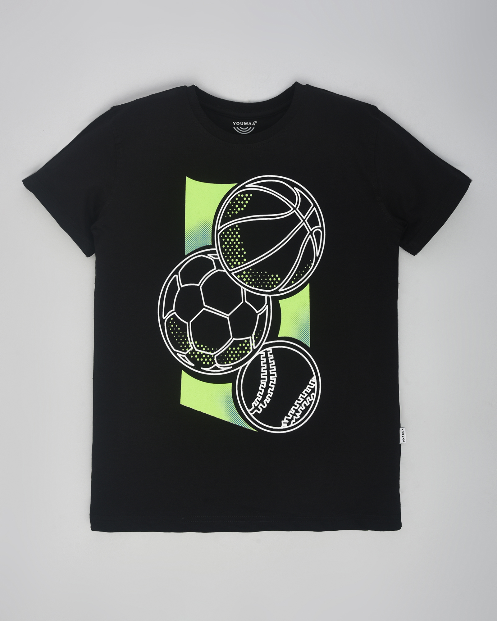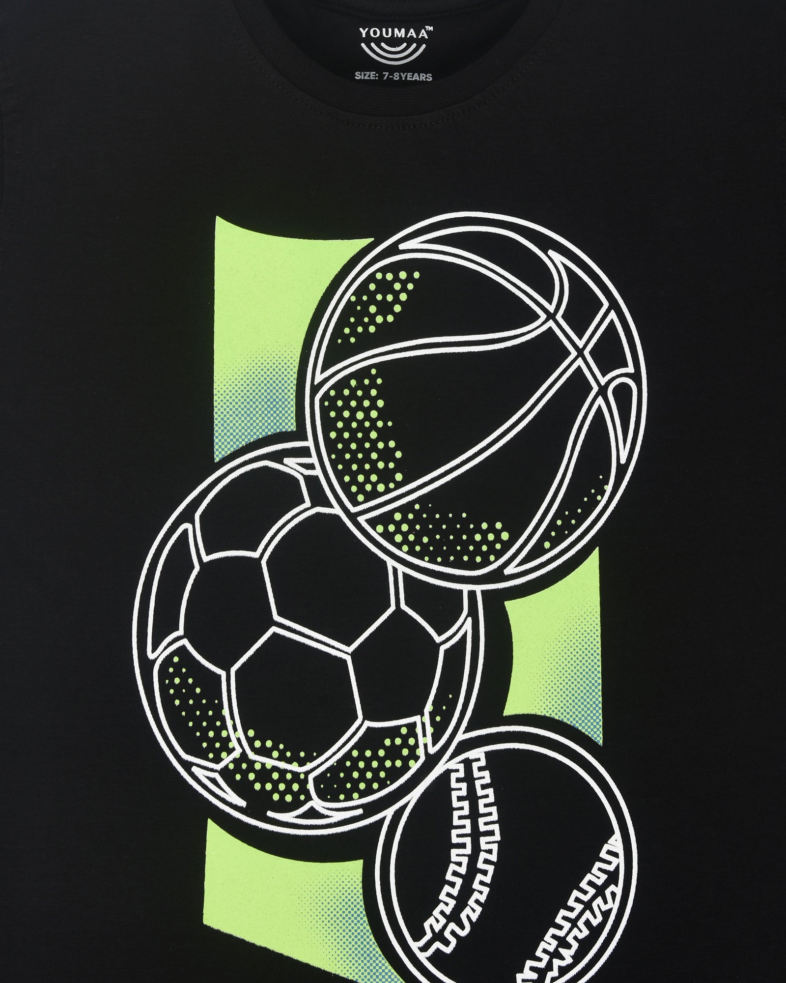 Youmaa 100% Cotton Half Sleeves Round Neck Sports Printed T-Shirt Black