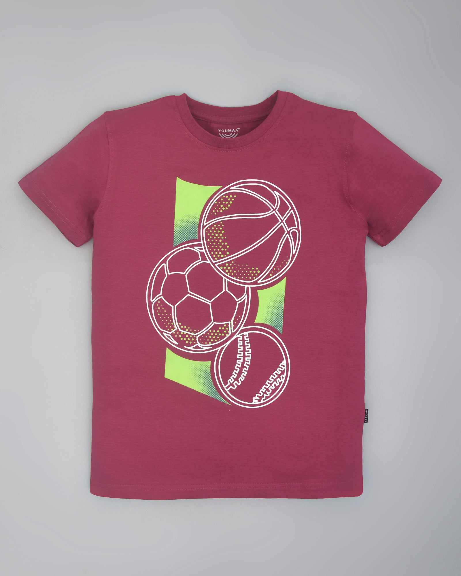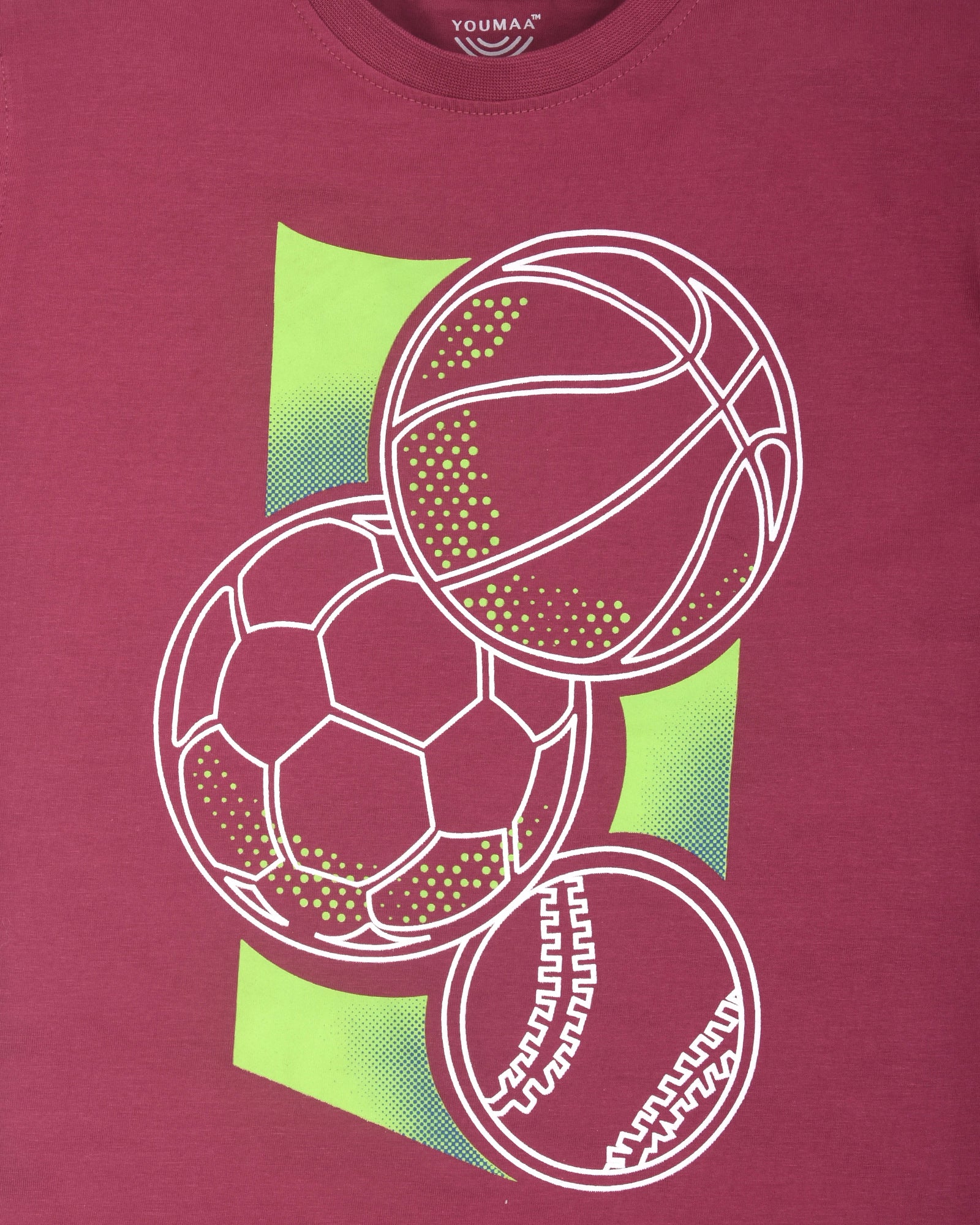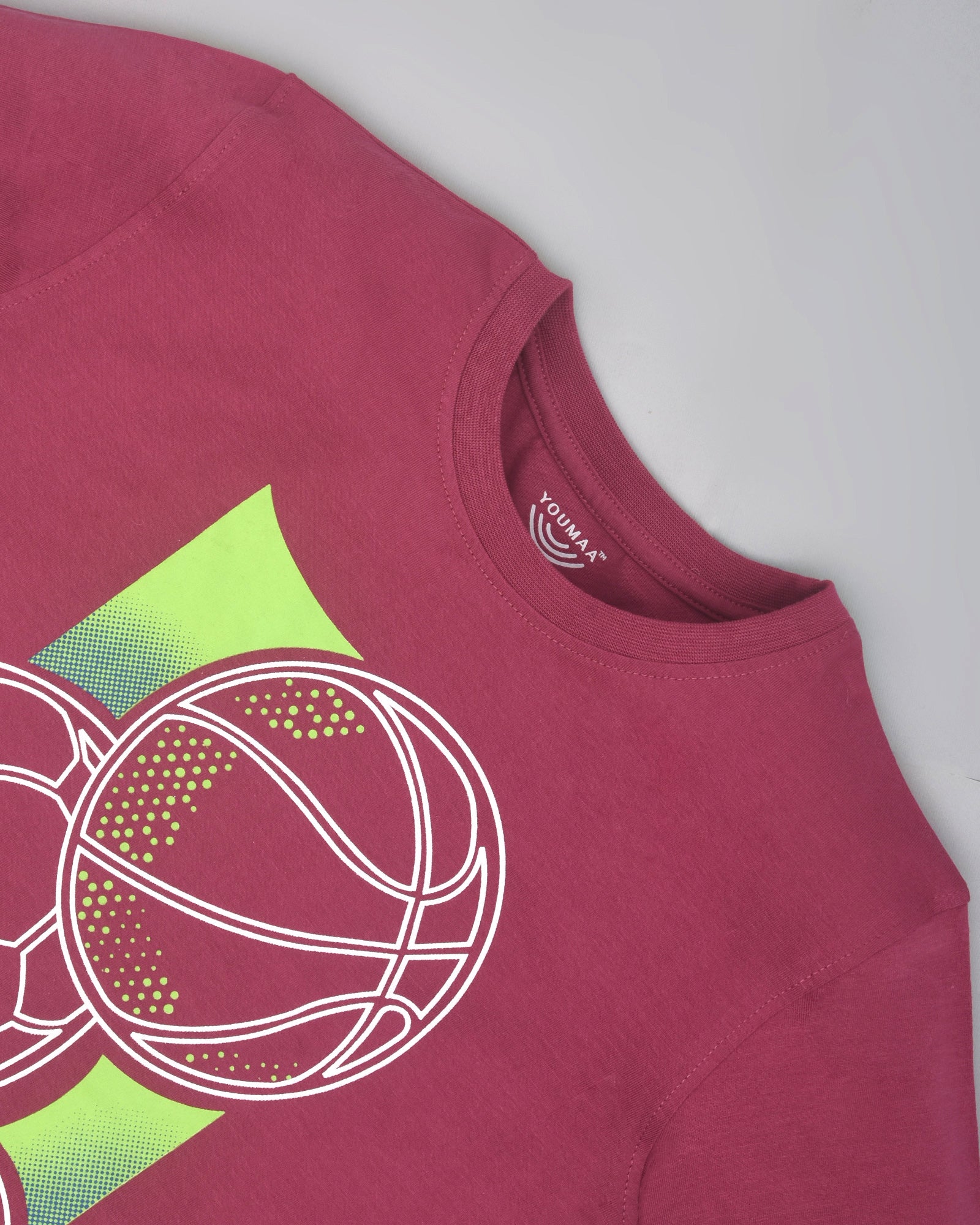 Youmaa 100% Cotton Half Sleeves Round Neck Sports Printed T-Shirt Wine