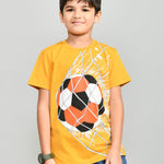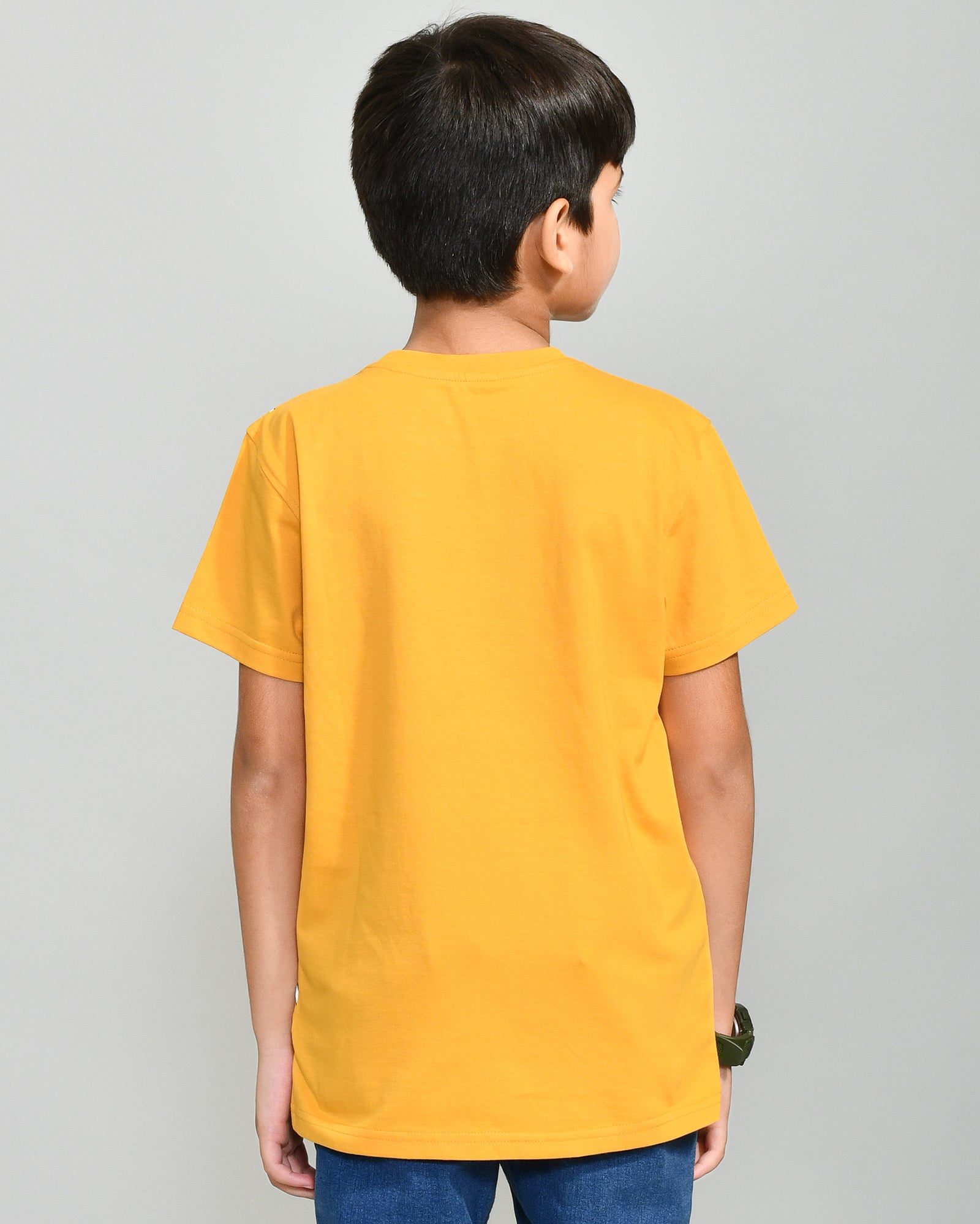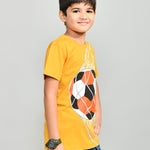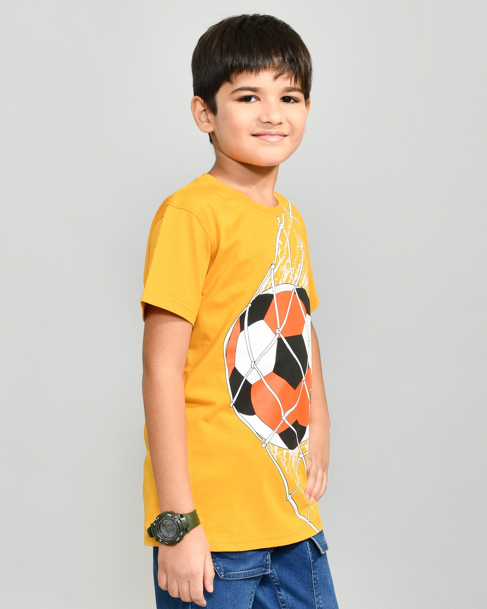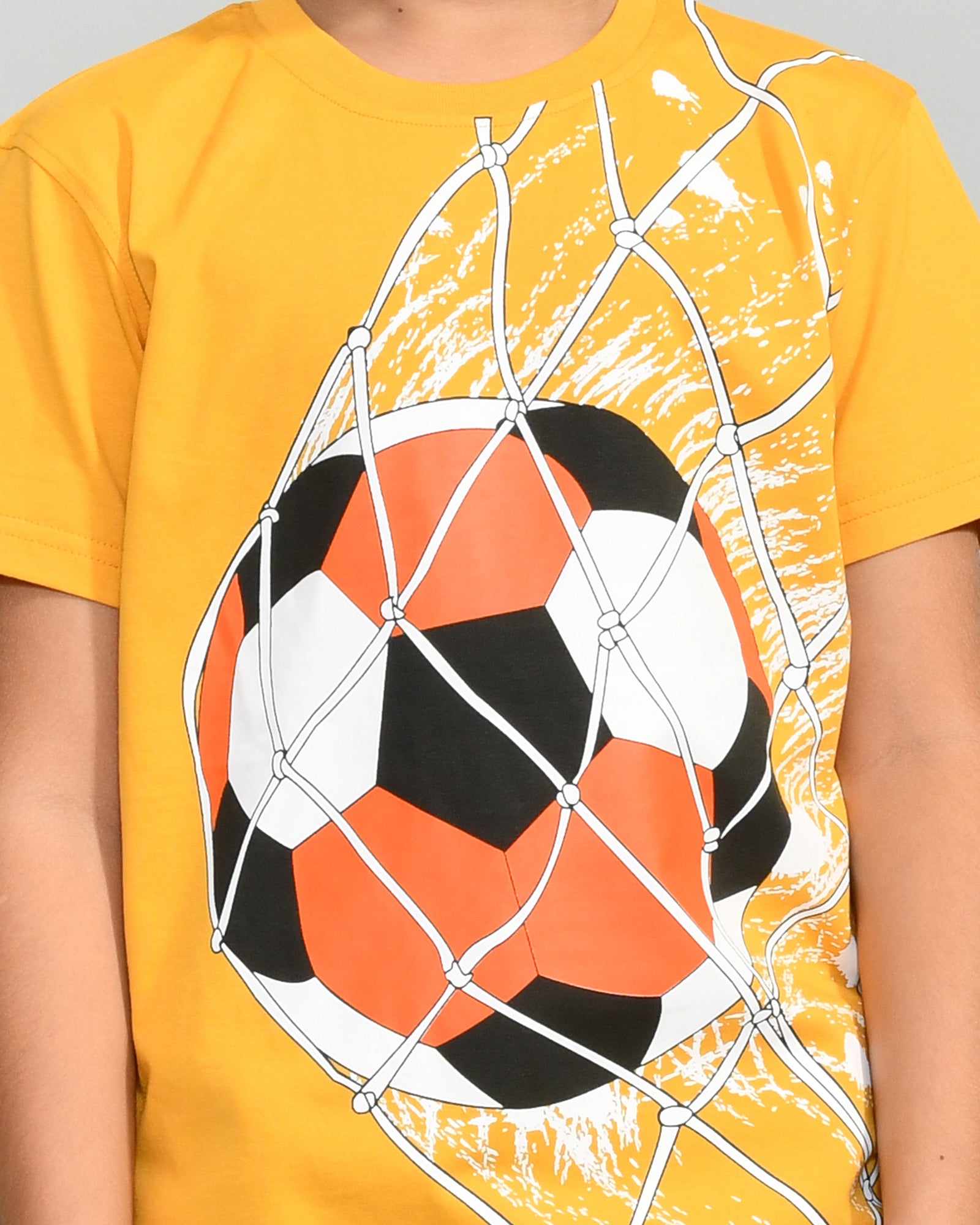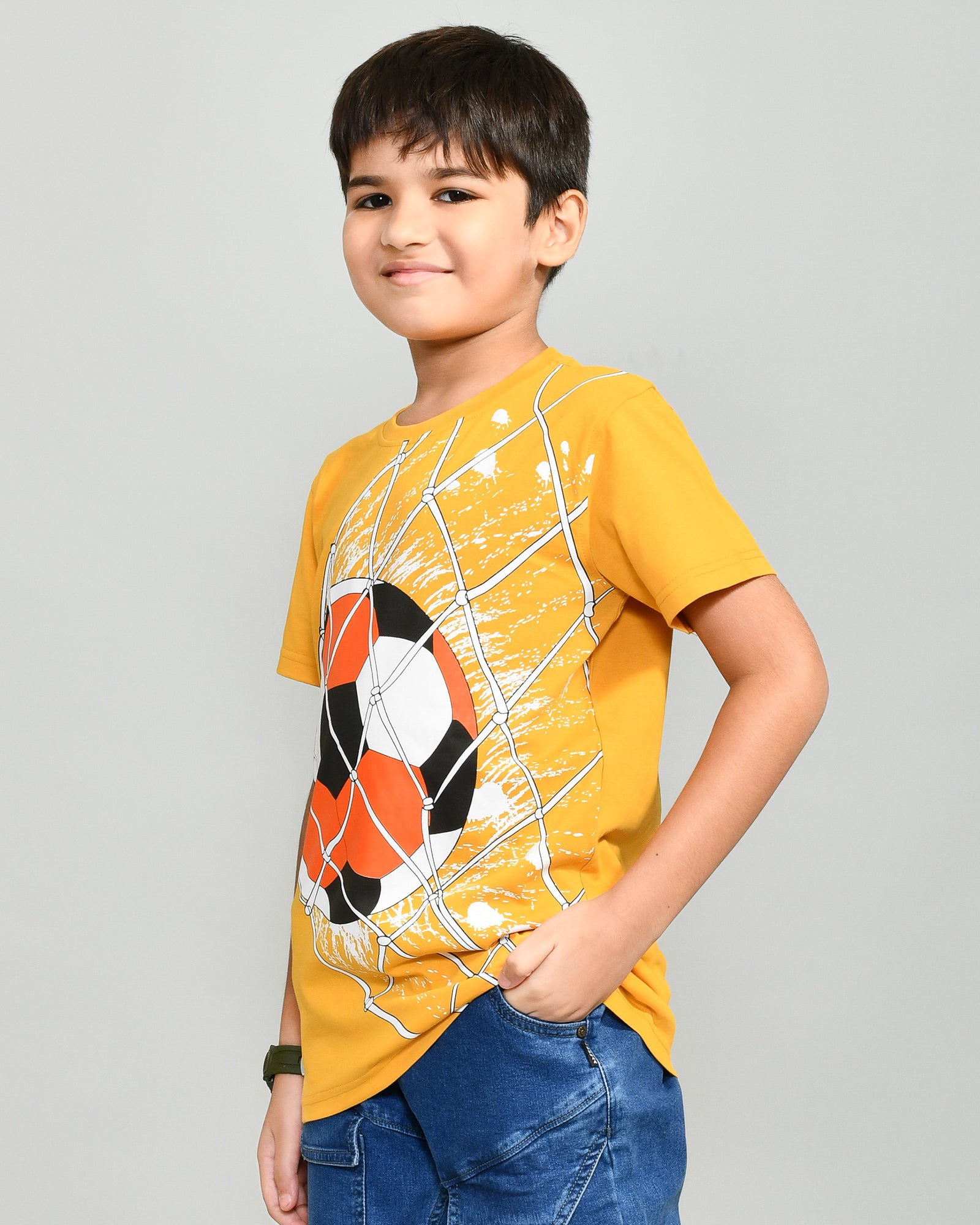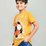 Youmaa 100% Cotton Half Sleeves Round Neck Sports Printed T-Shirt Yellow