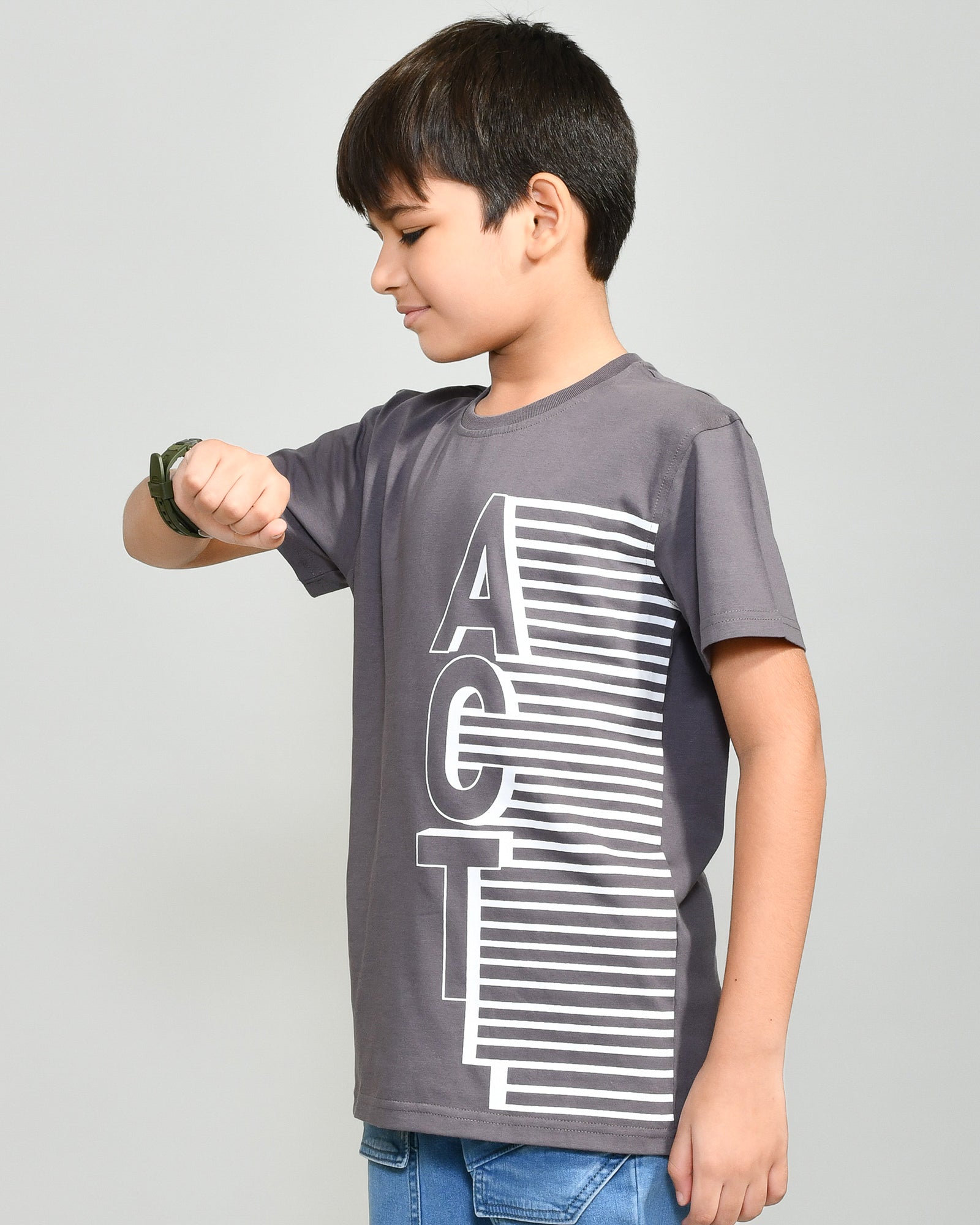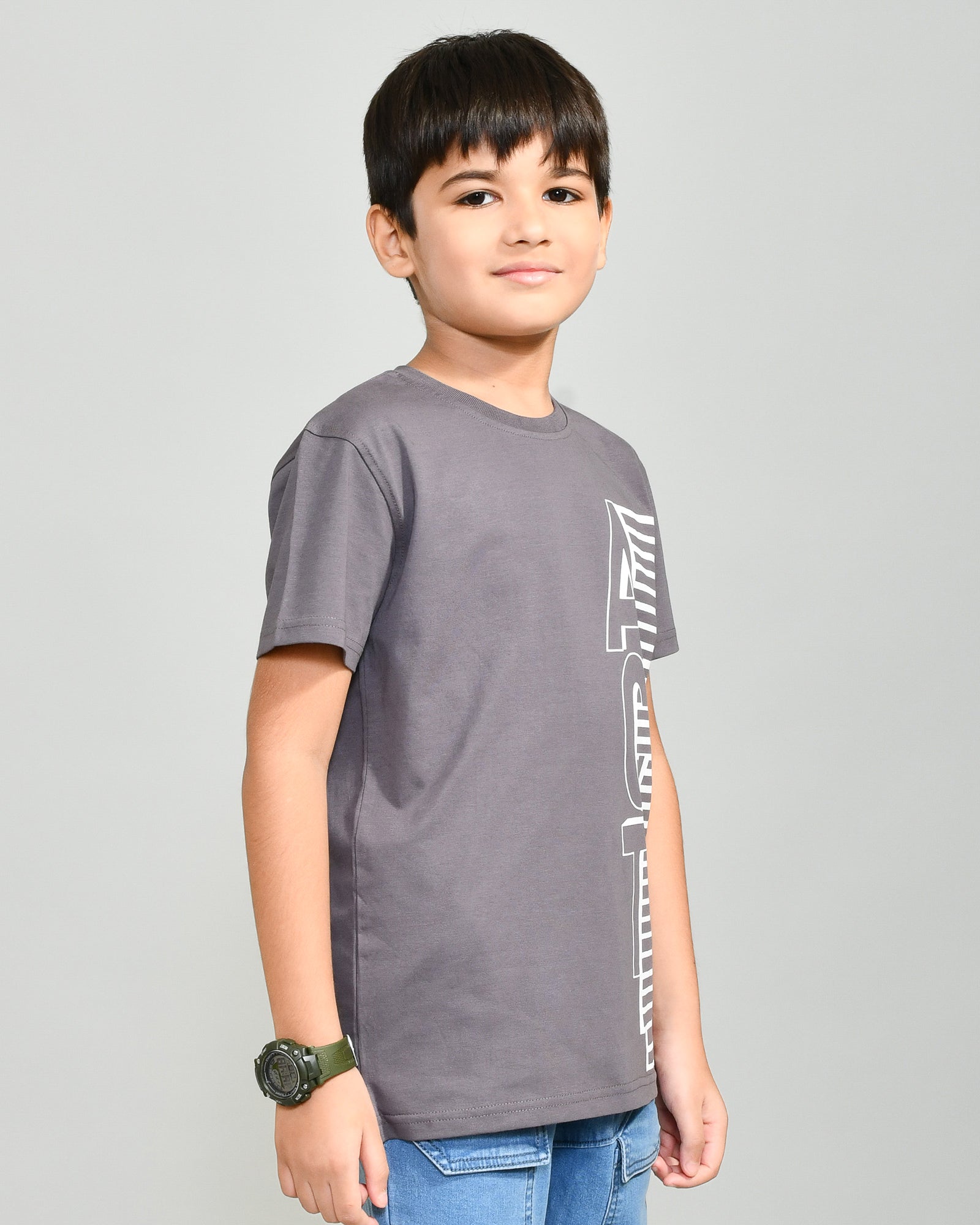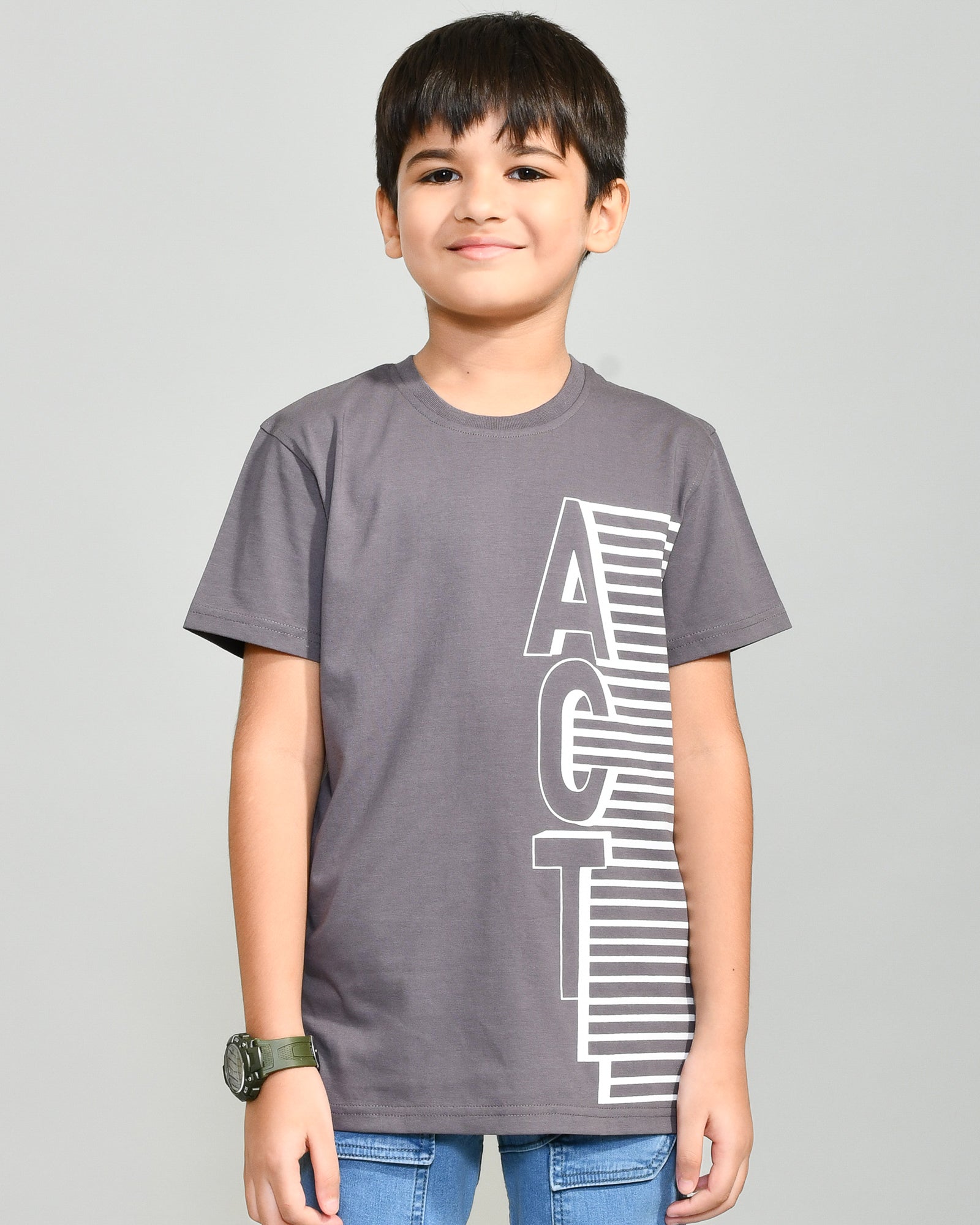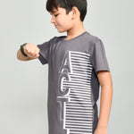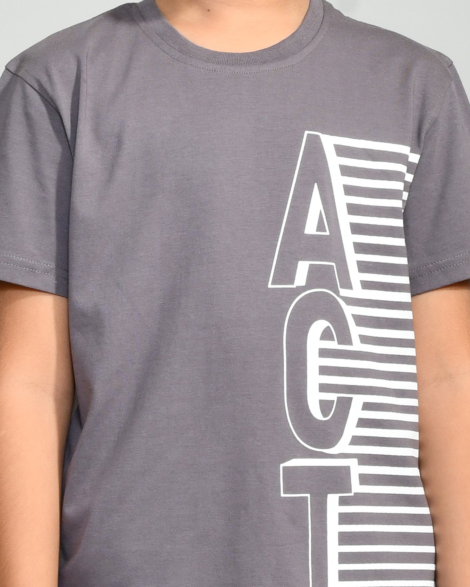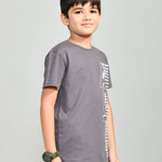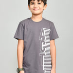 Youmaa 100% Cotton Half Sleeves Round Neck Typographic Printed T-Shirt Grey