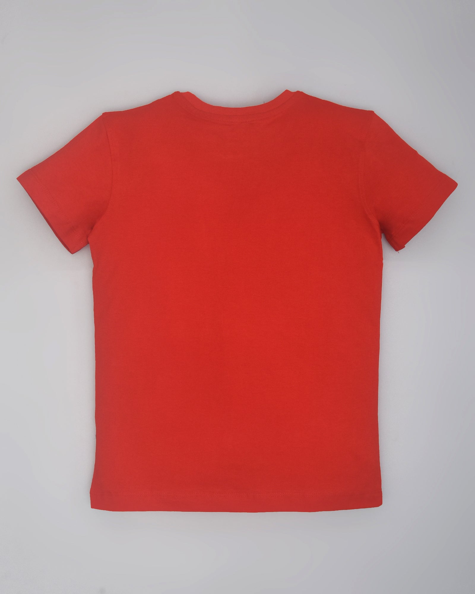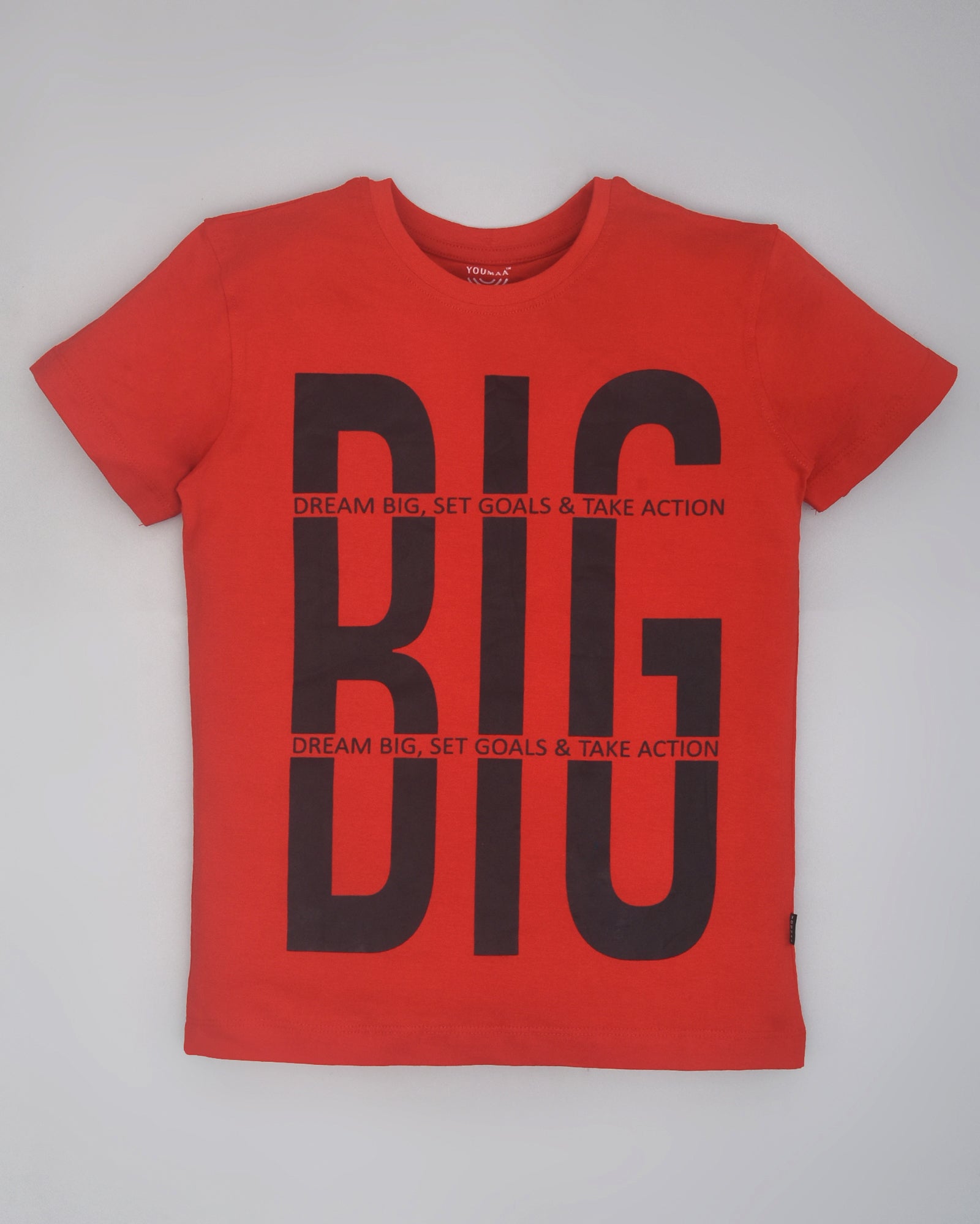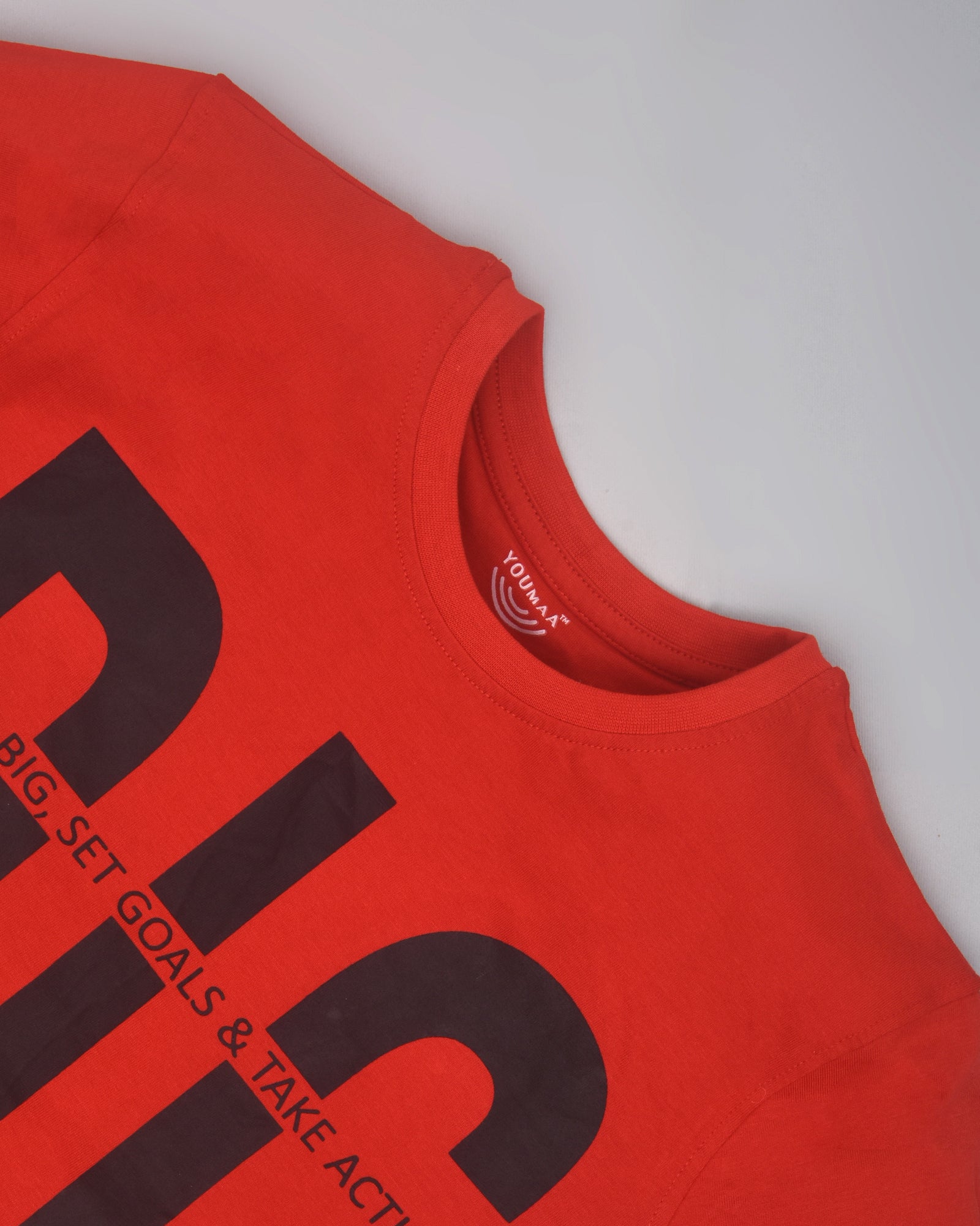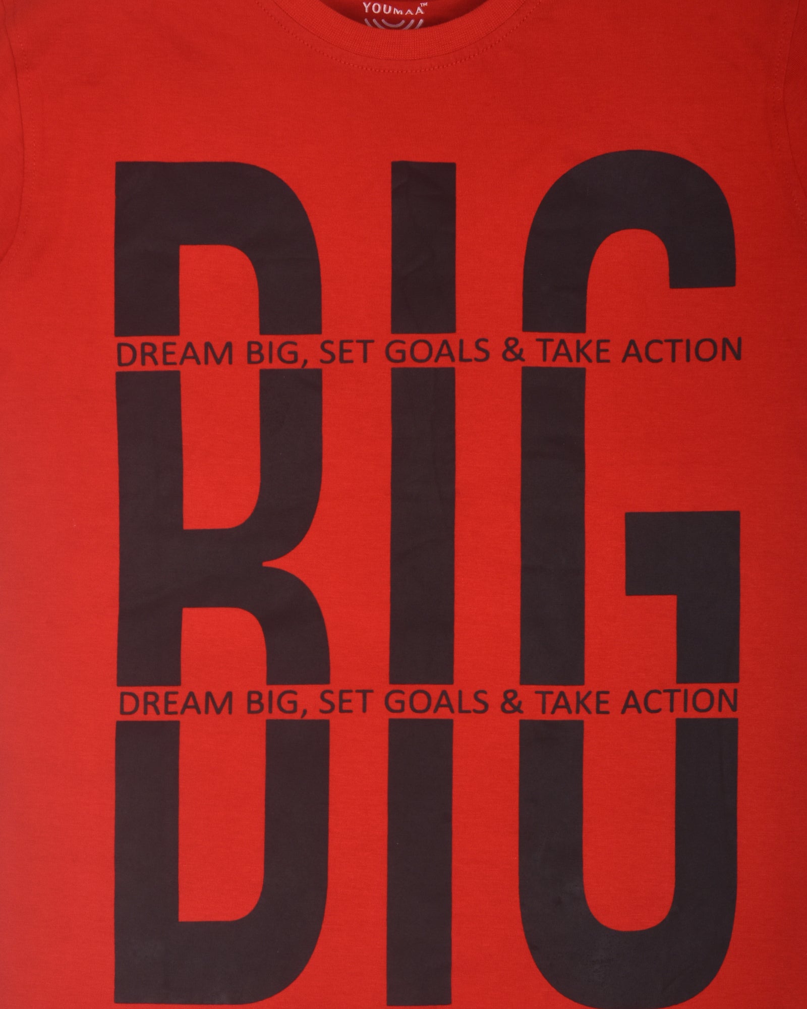 Youmaa 100% Cotton Half Sleeves Round Neck Typographic Printed T-Shirt Red