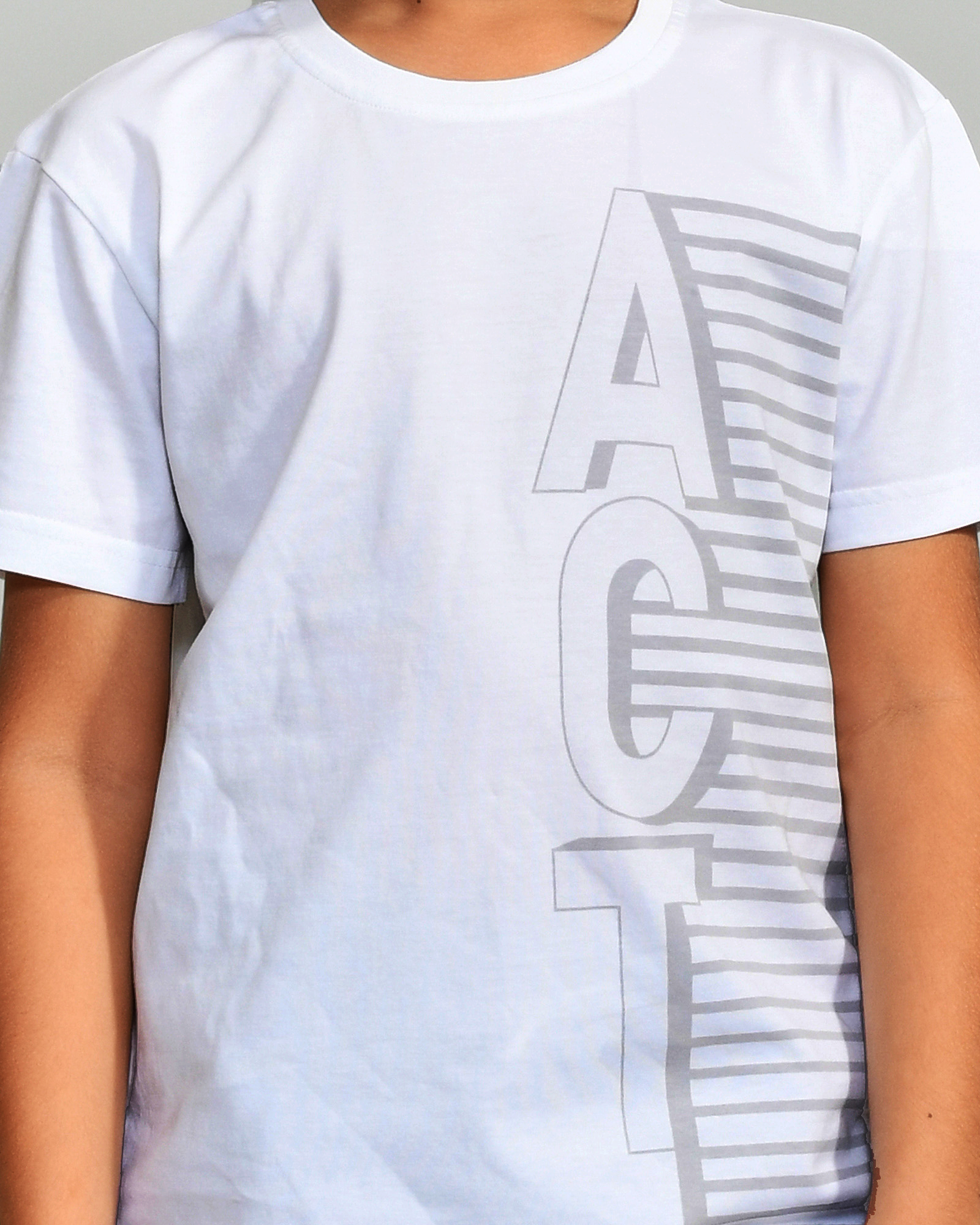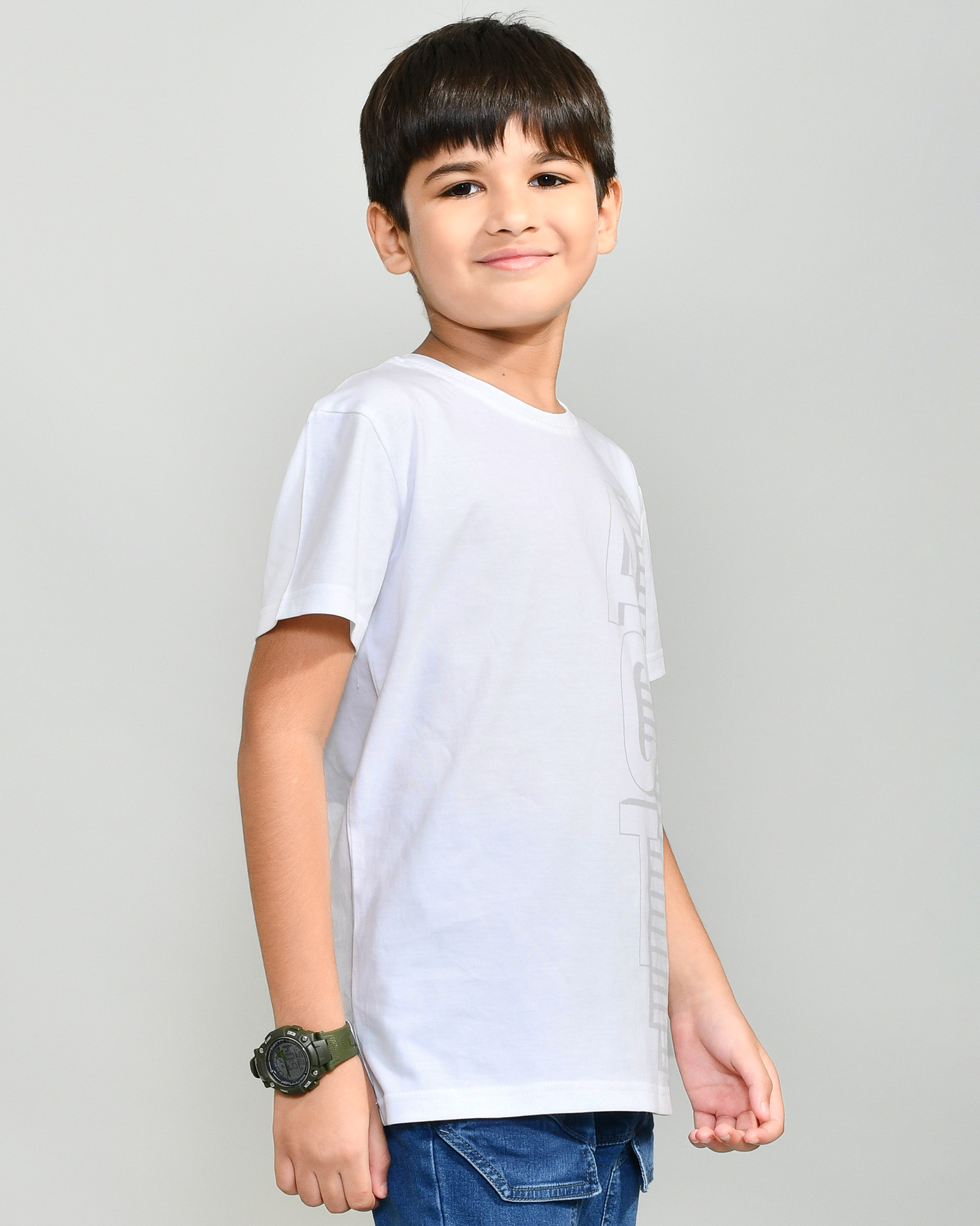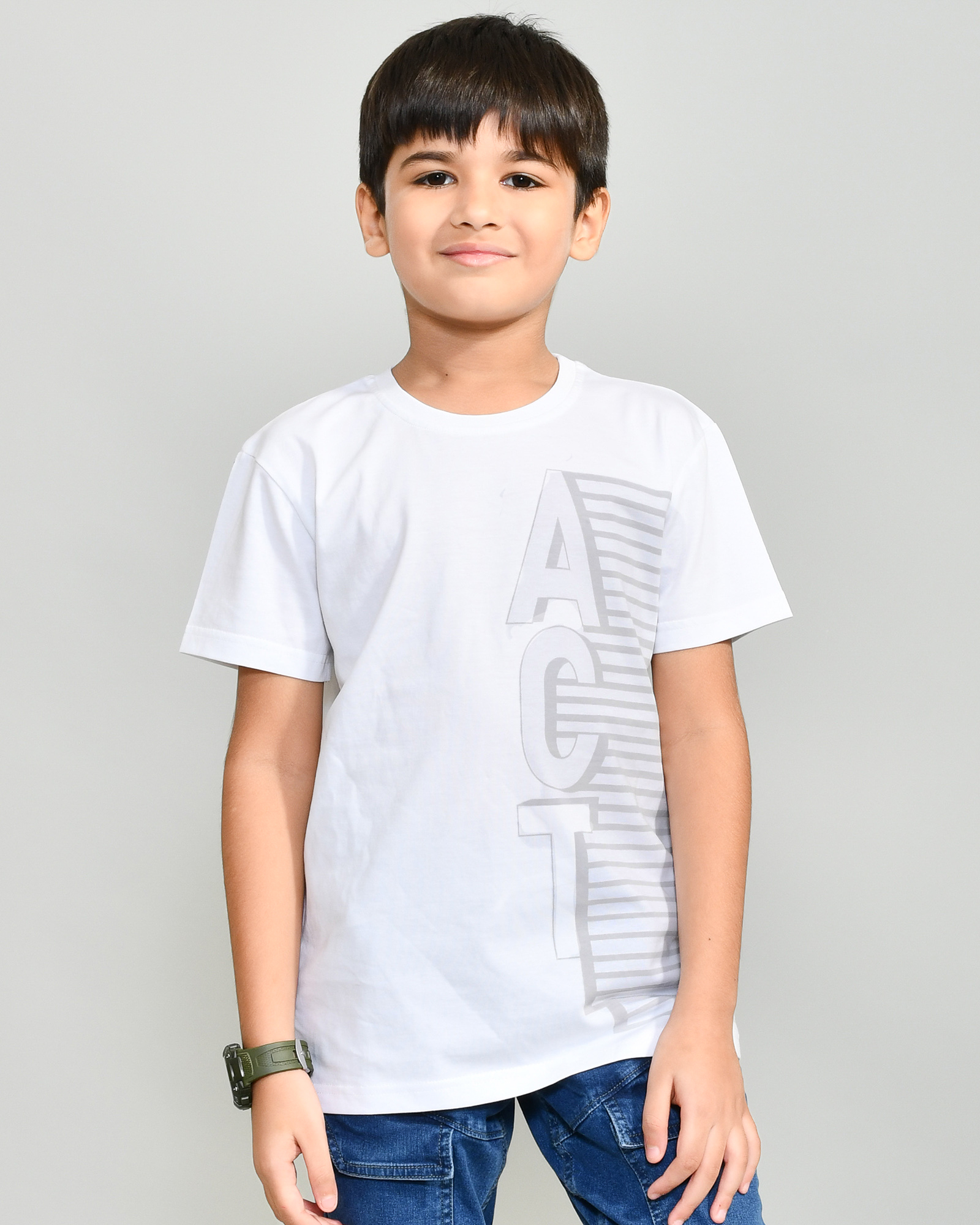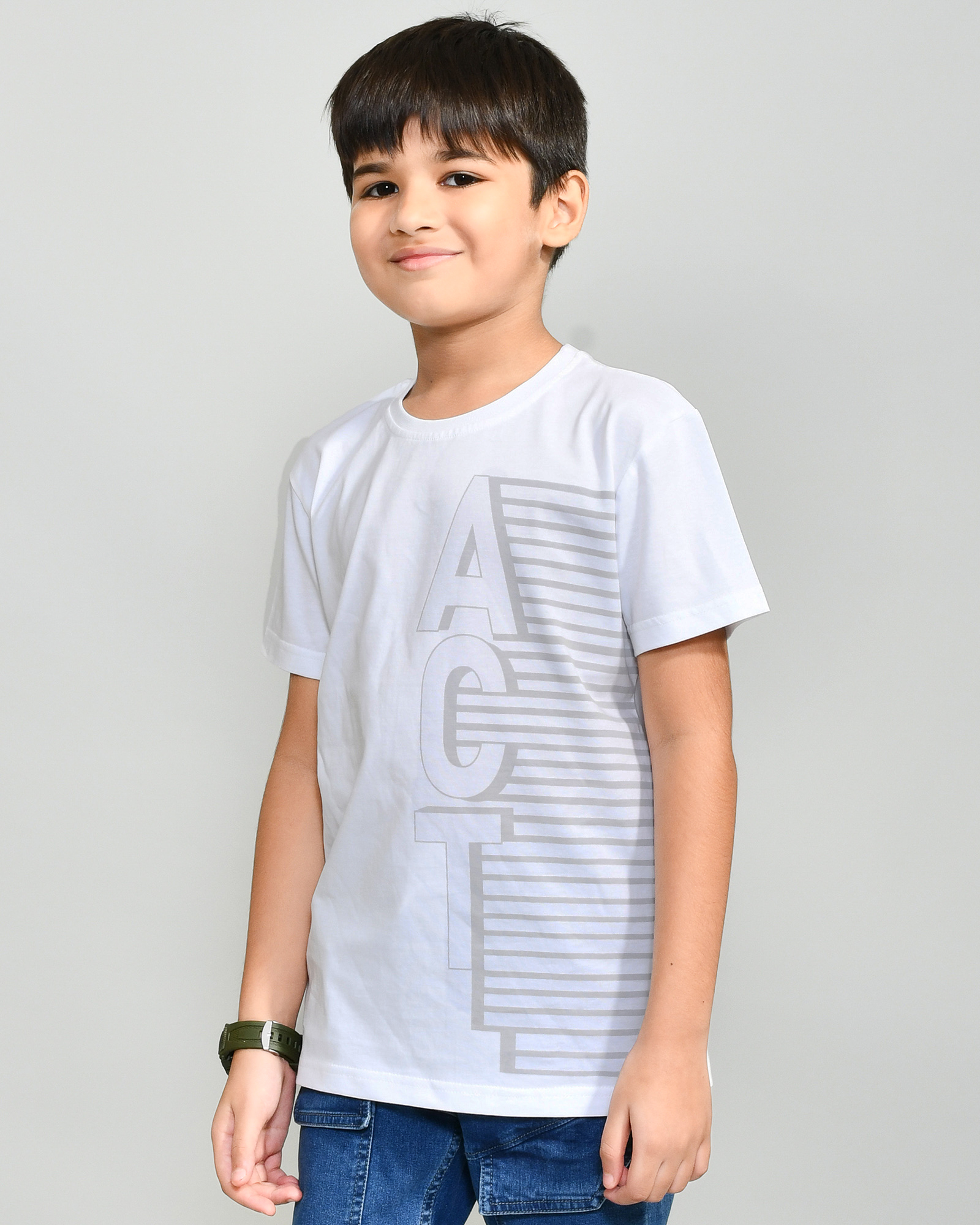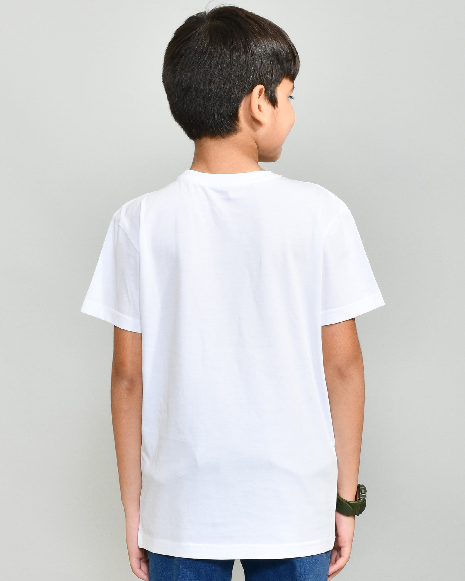 Youmaa 100% Cotton Half Sleeves Round Neck Typographic Printed T-Shirt White