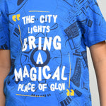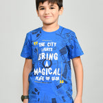 Youmaa 100% Cotton Half Sleeves Round Neck Typographic World Printed T-Shirt Blue