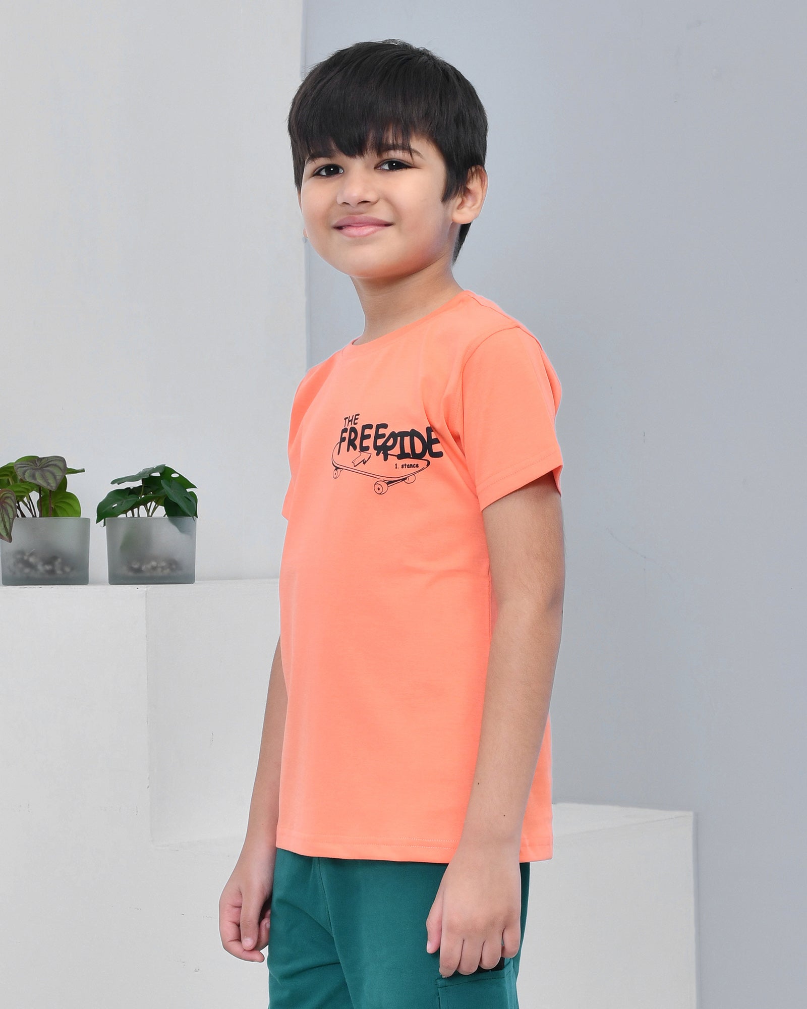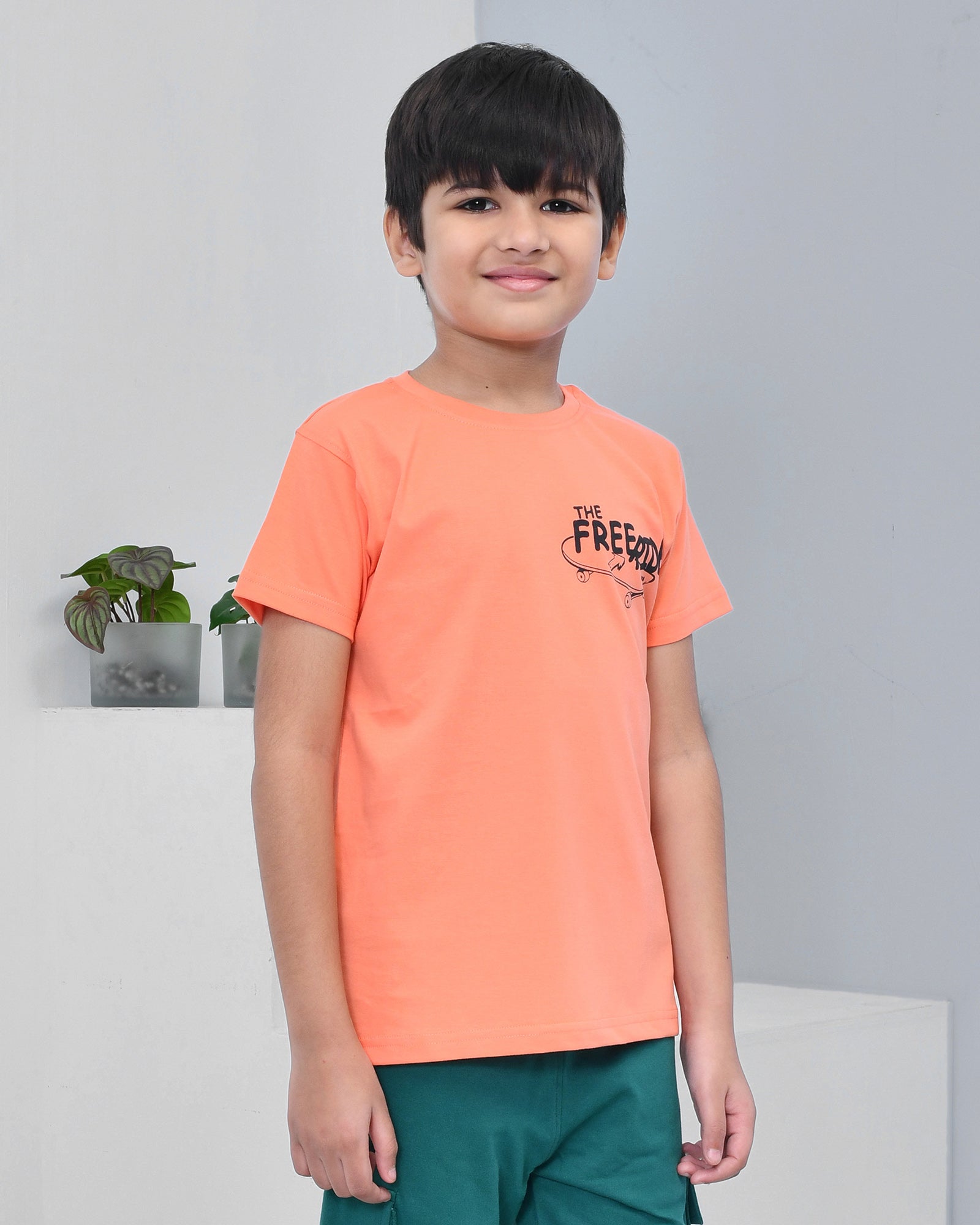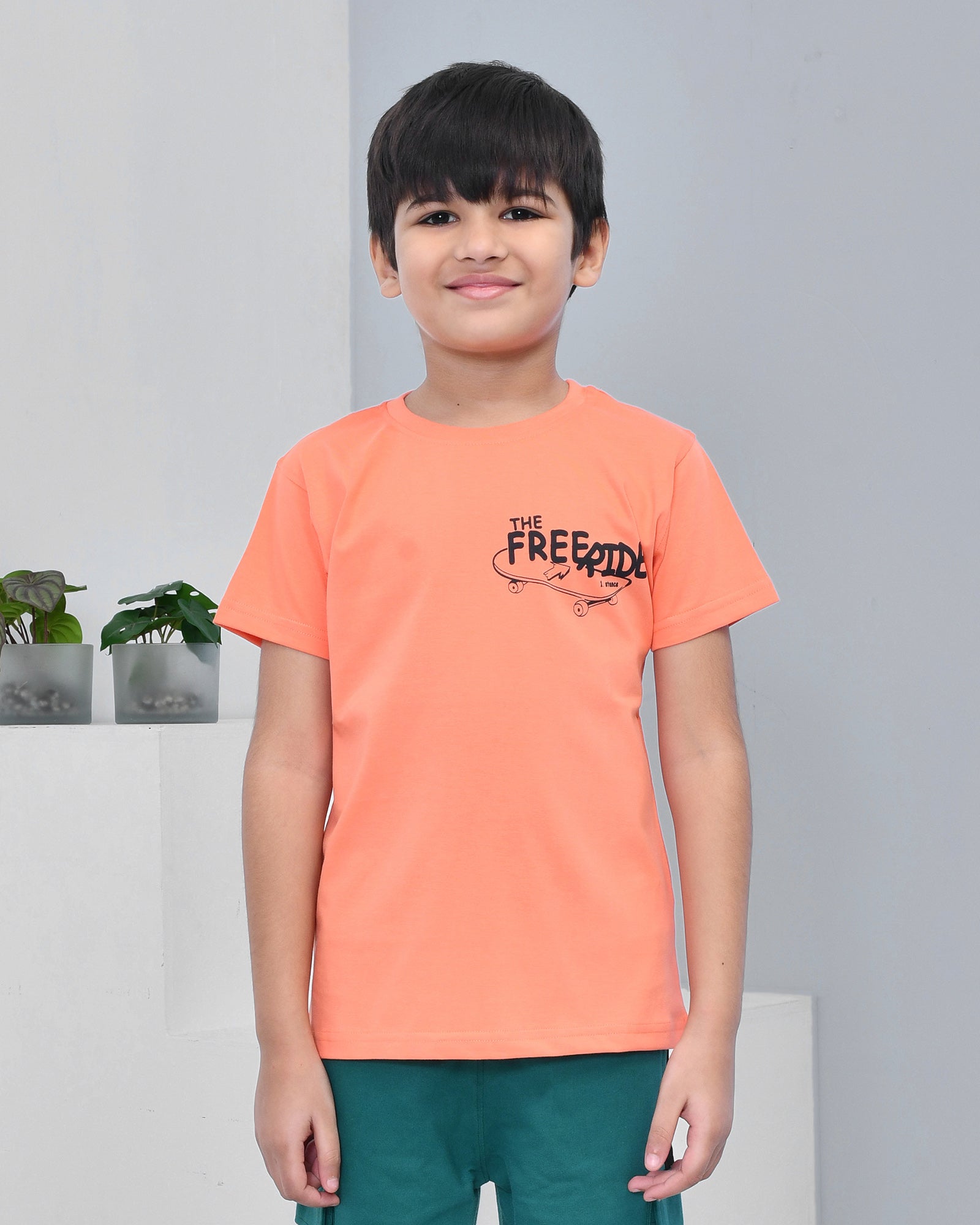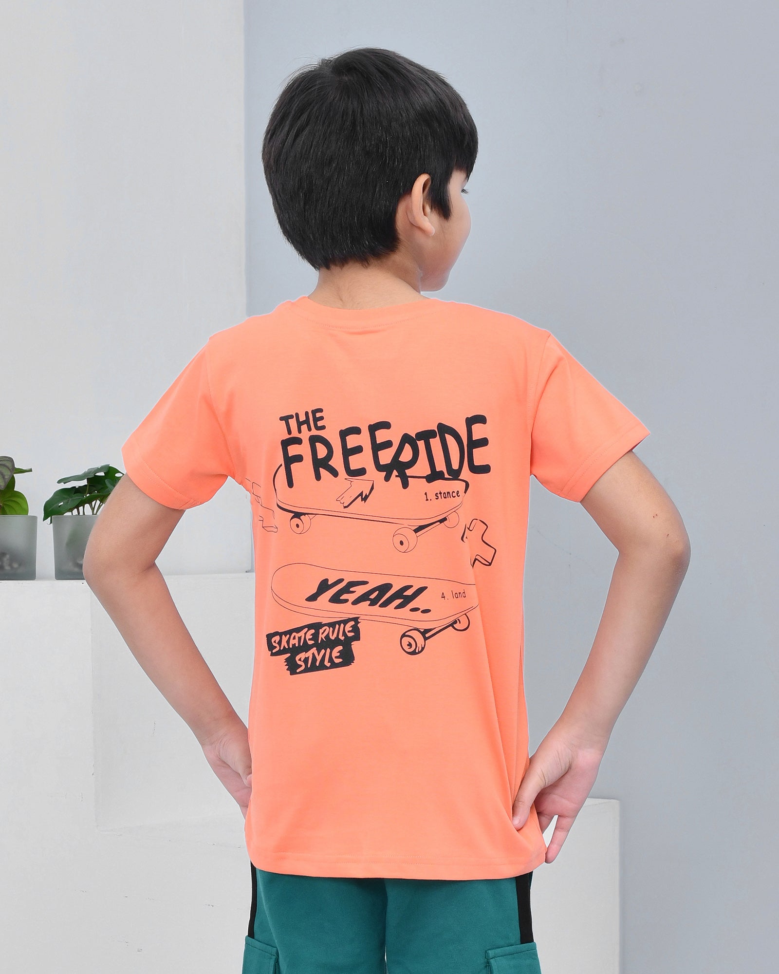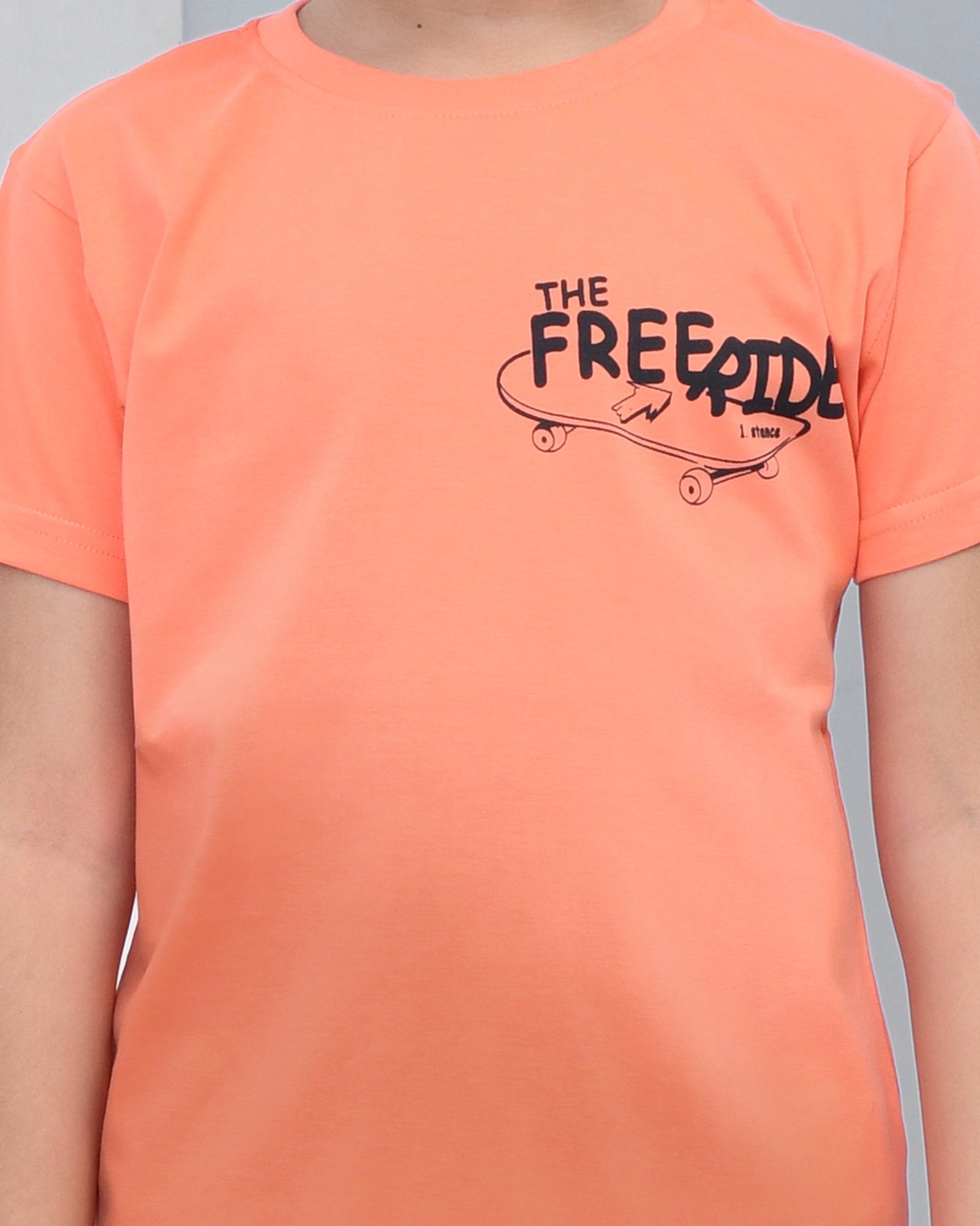 Youmaa 100% Cotton Half Sleeves Skating Graphics Printed T-Shirt - Orange