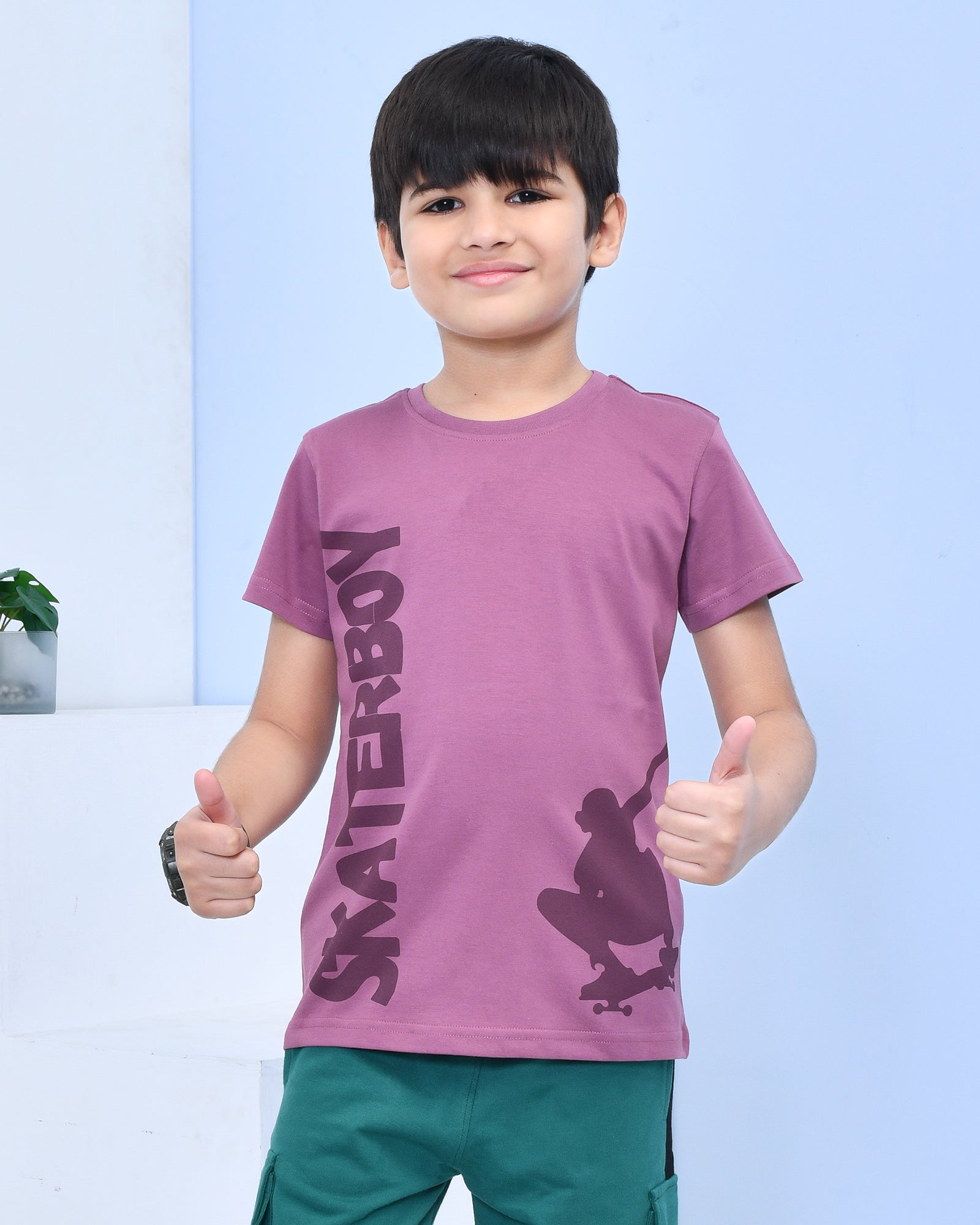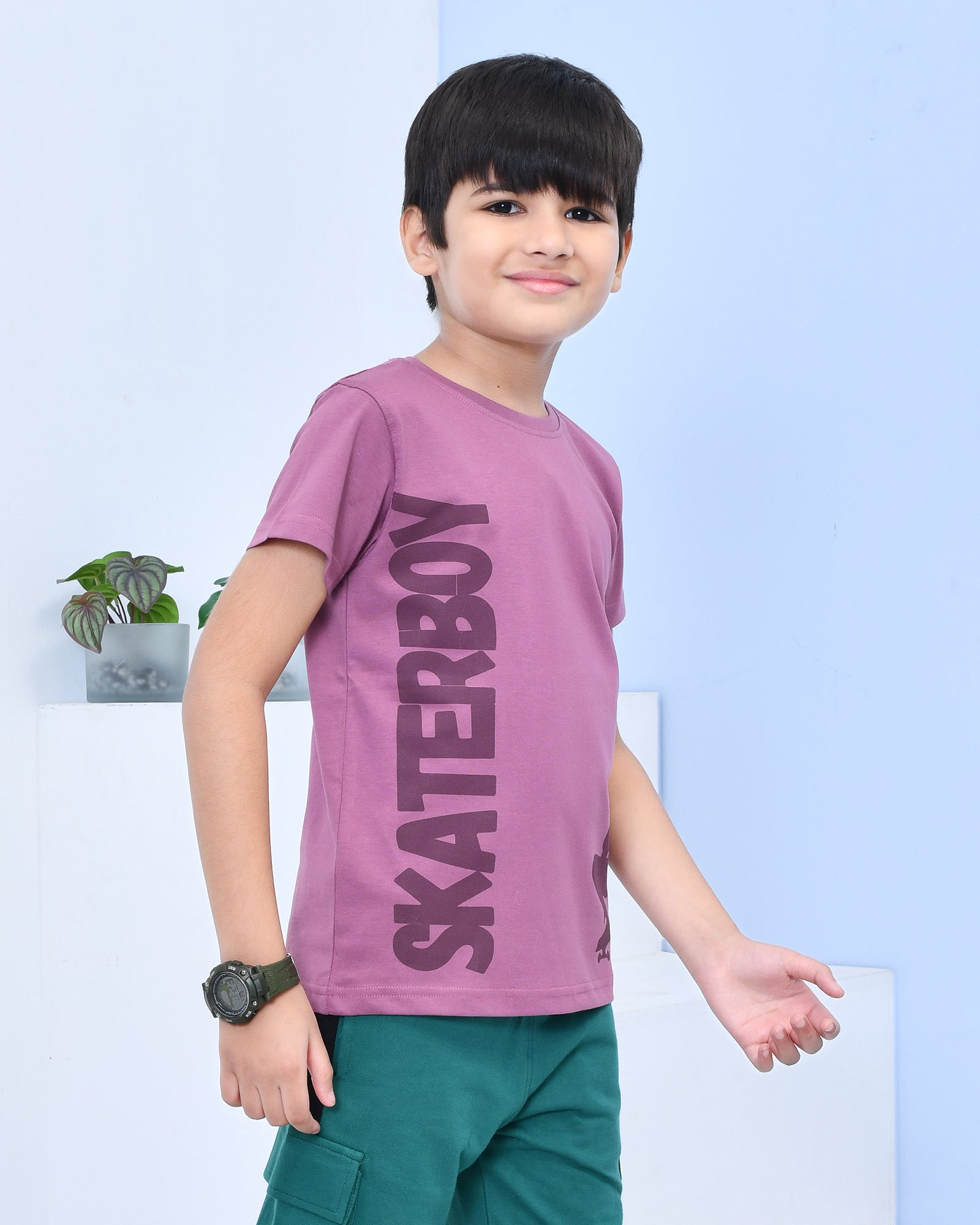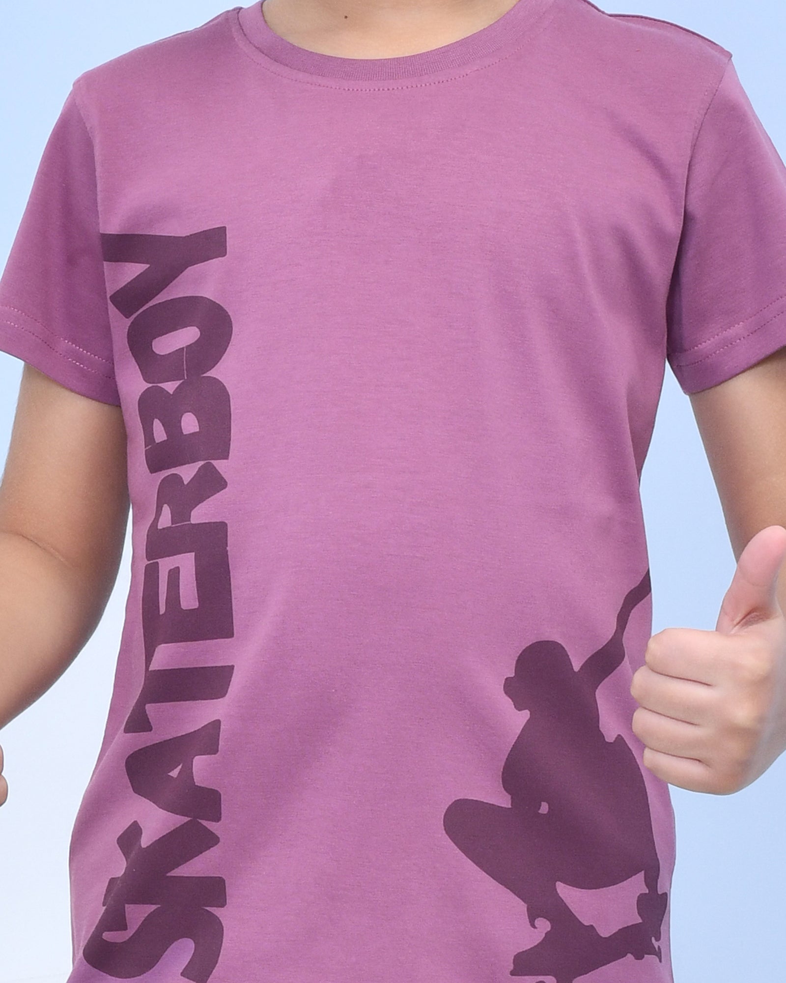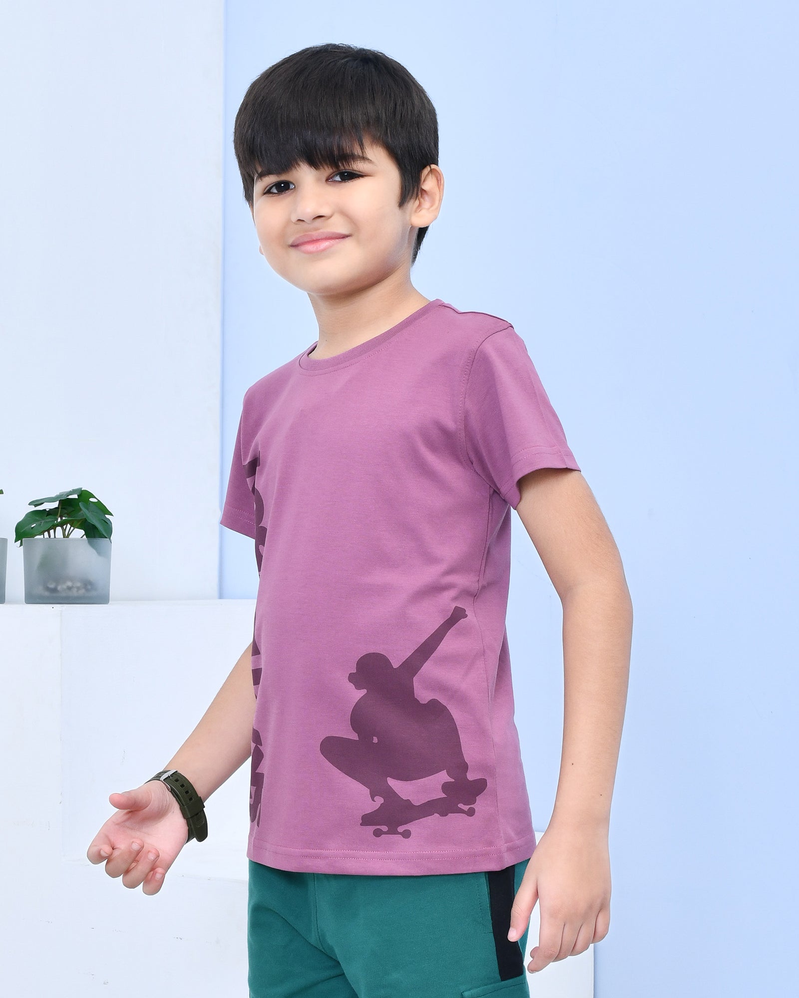 Youmaa 100% Cotton Half Sleeves Skating Graphics Printed T-Shirt - Purple