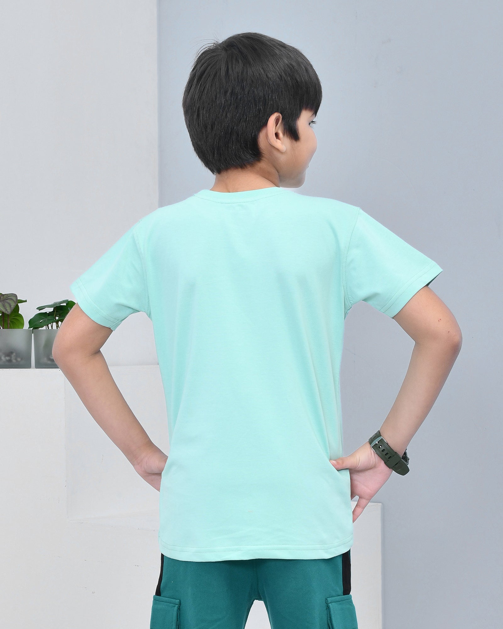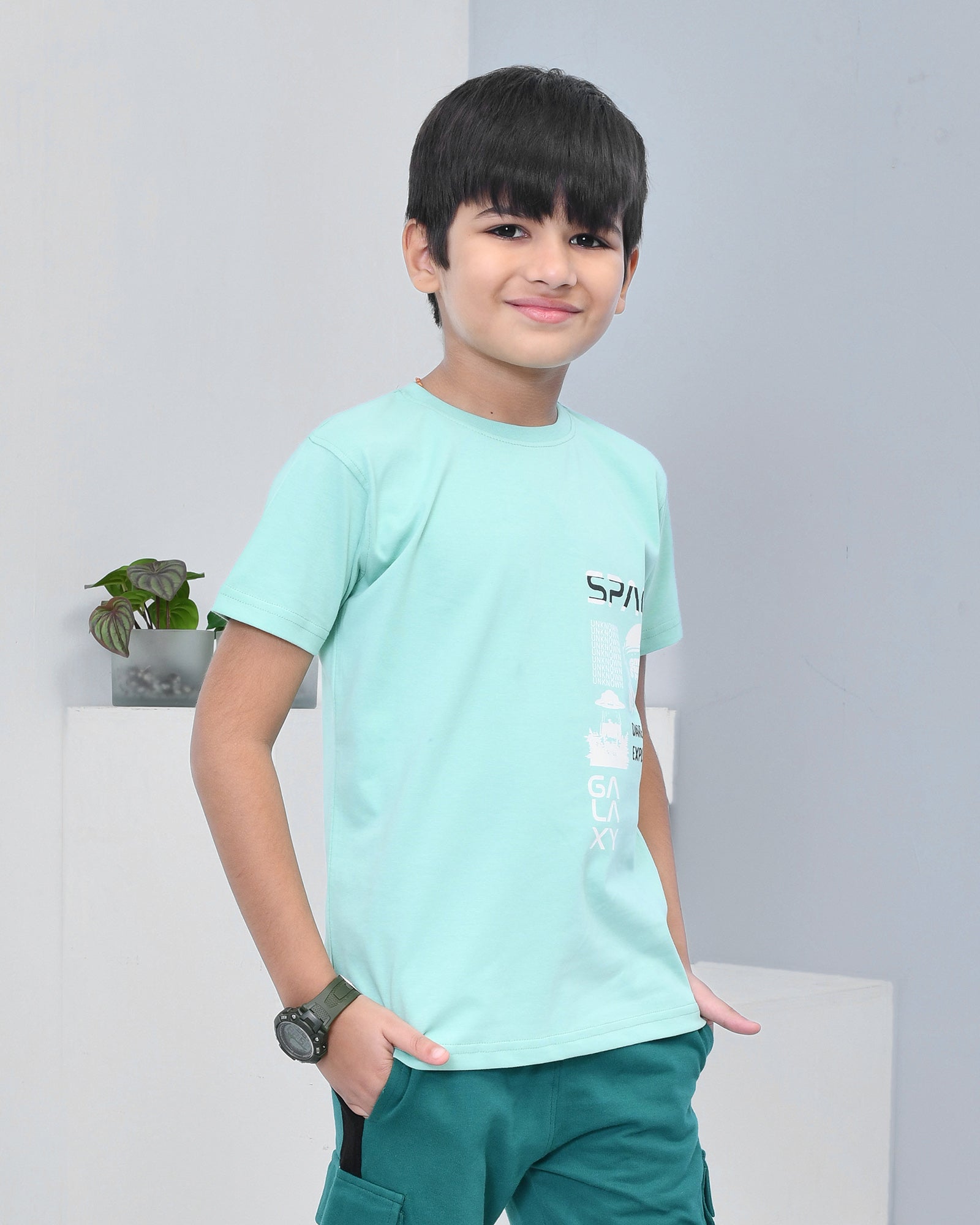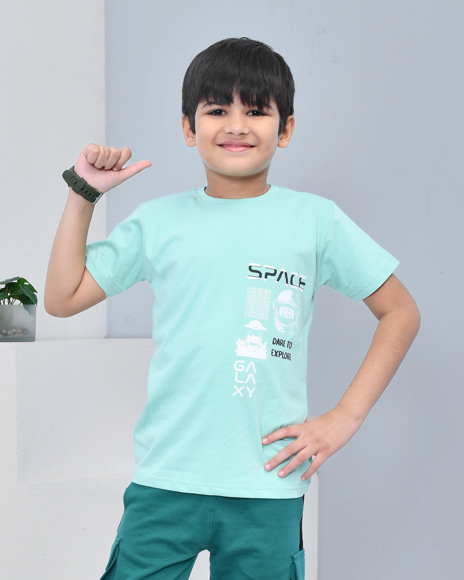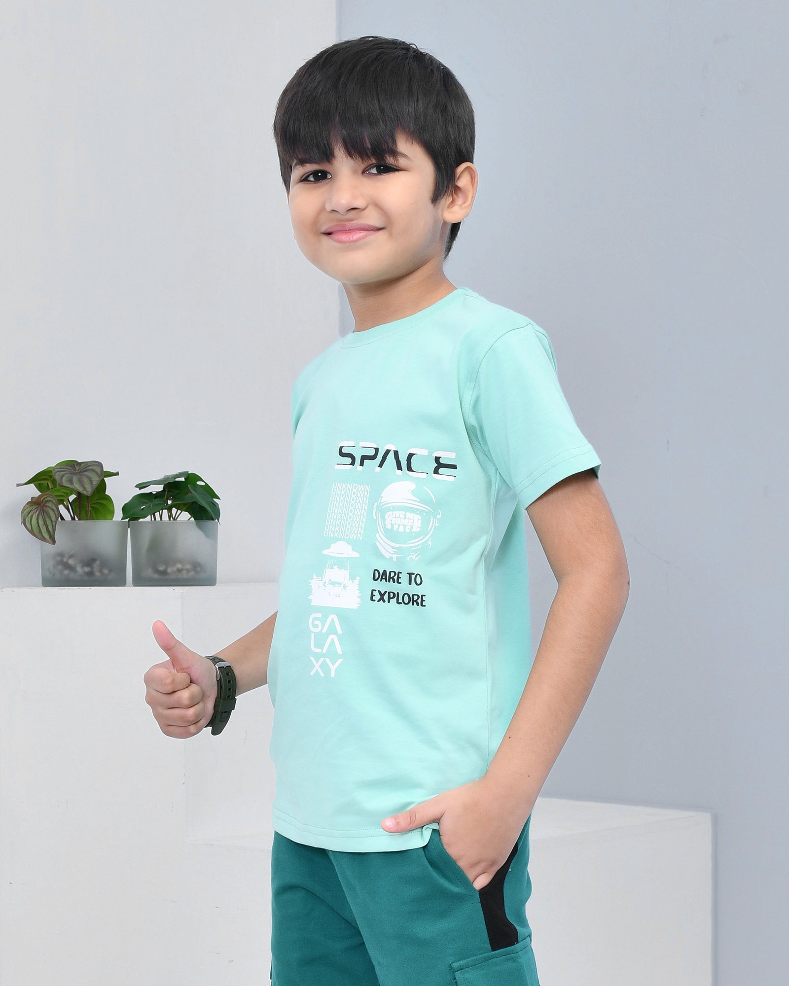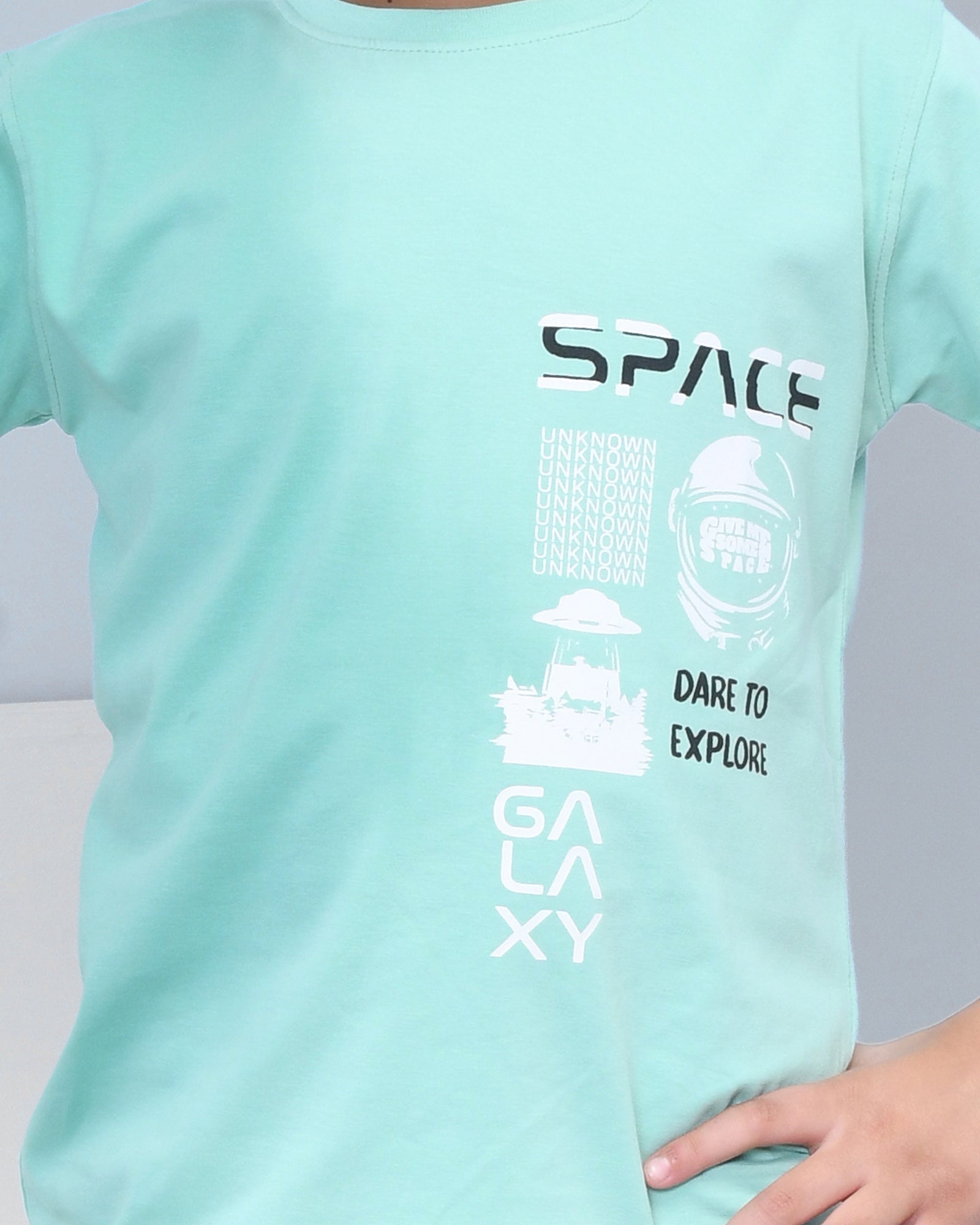Youmaa 100% Cotton Half Sleeves Spaceship Graphics Printed T-Shirt - Green