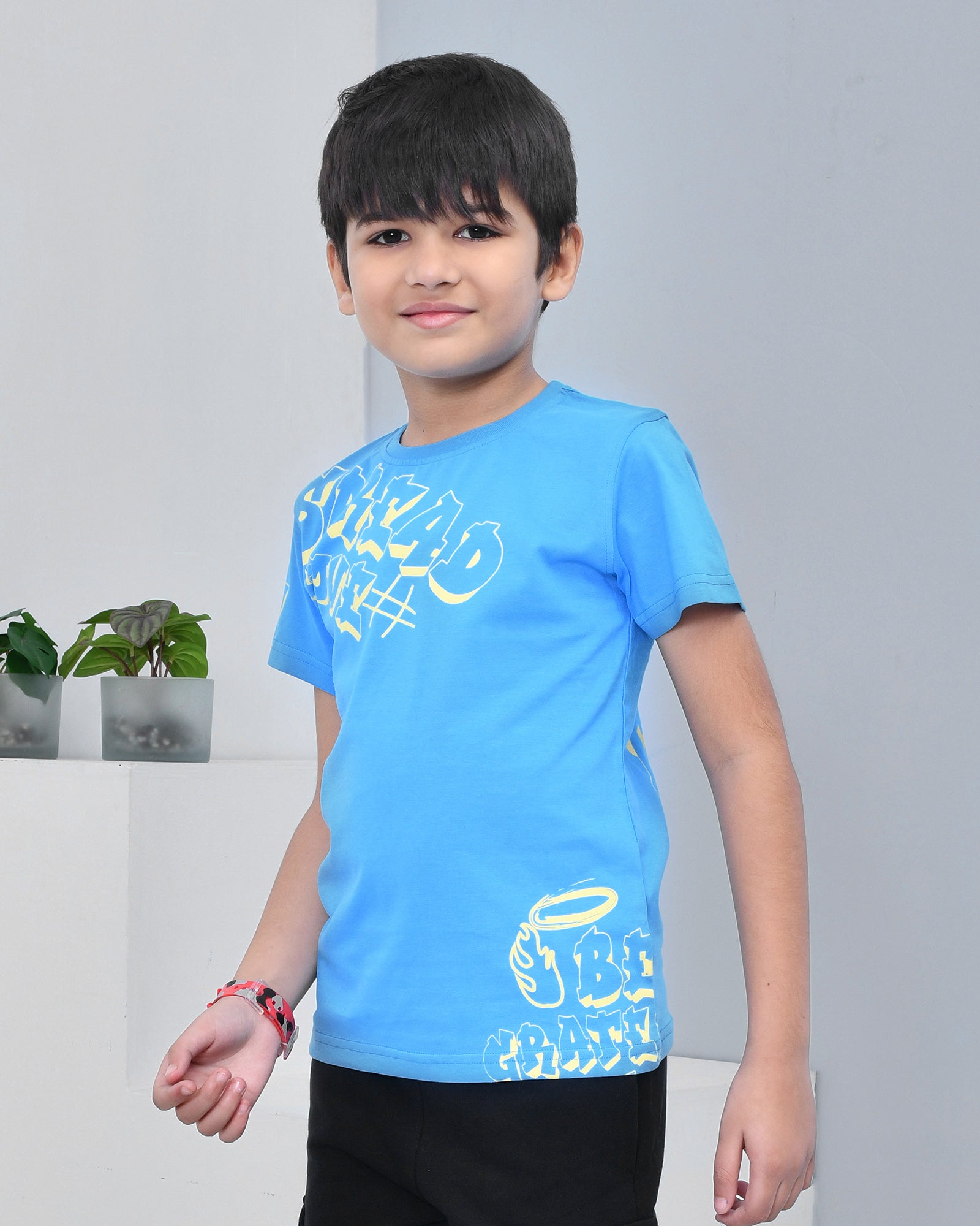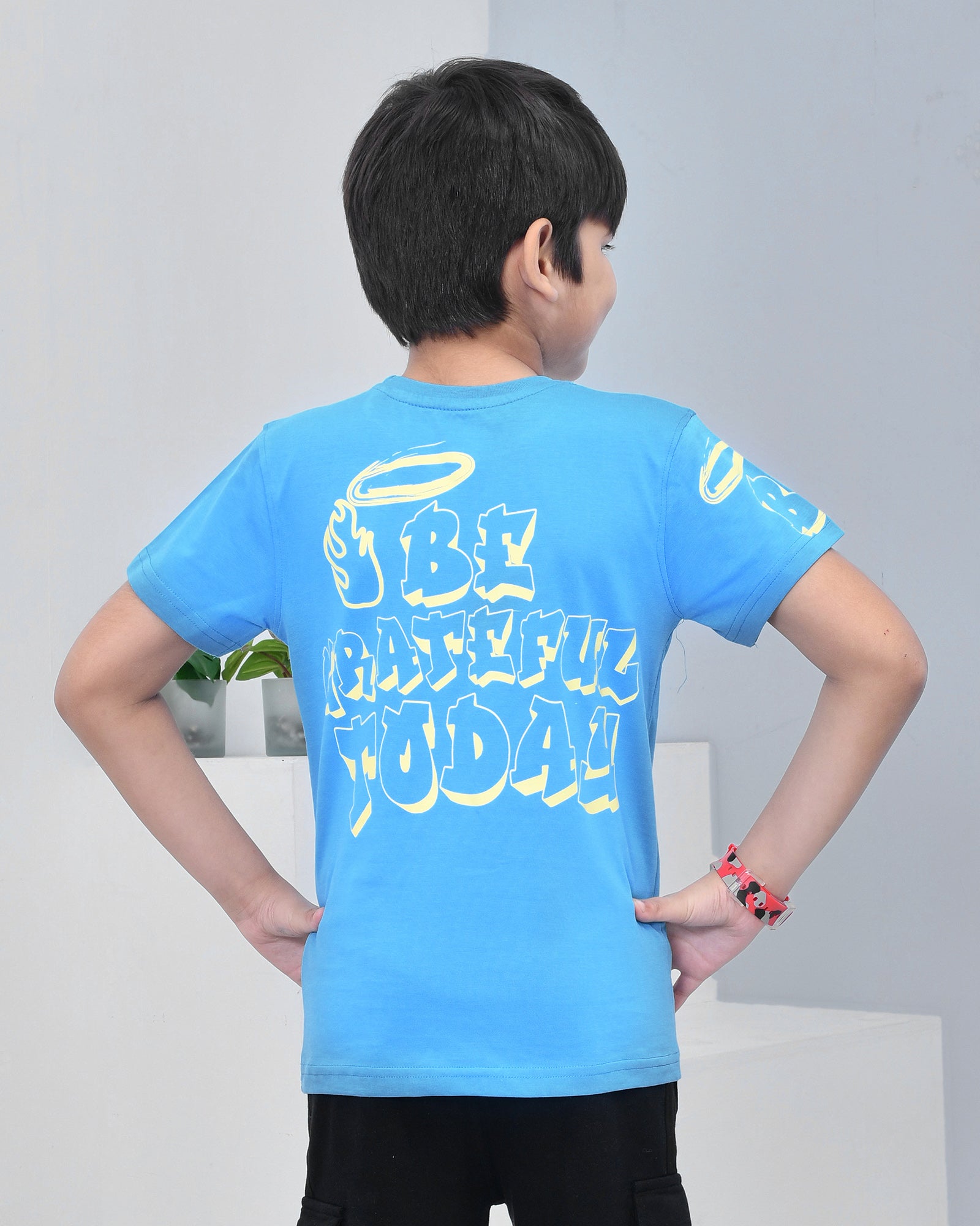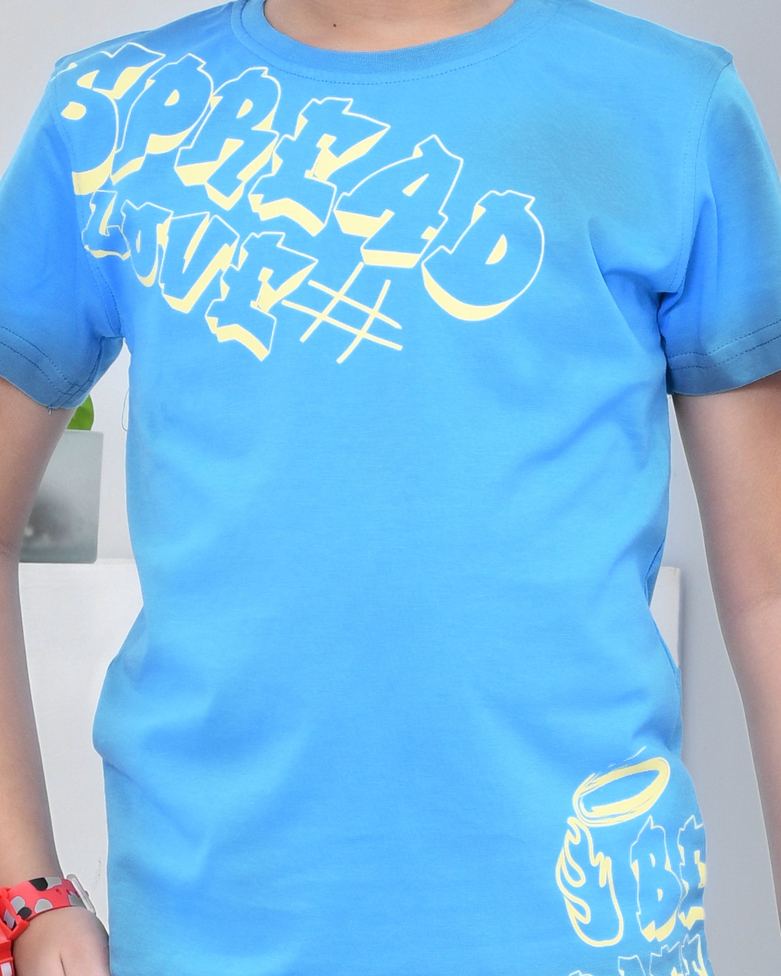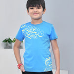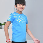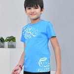 Youmaa 100% Cotton Half Sleeves Typography Printed T-Shirt - Blue