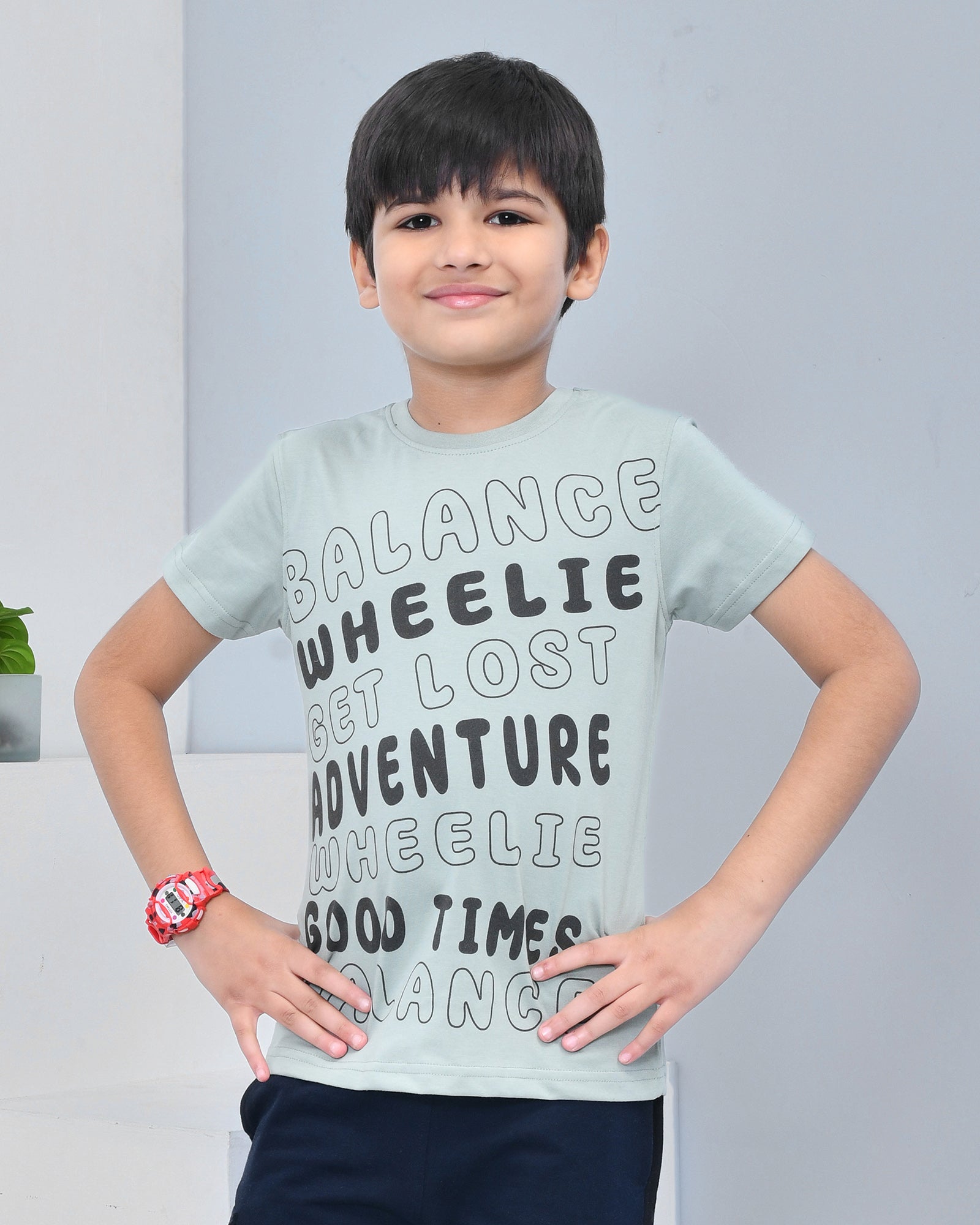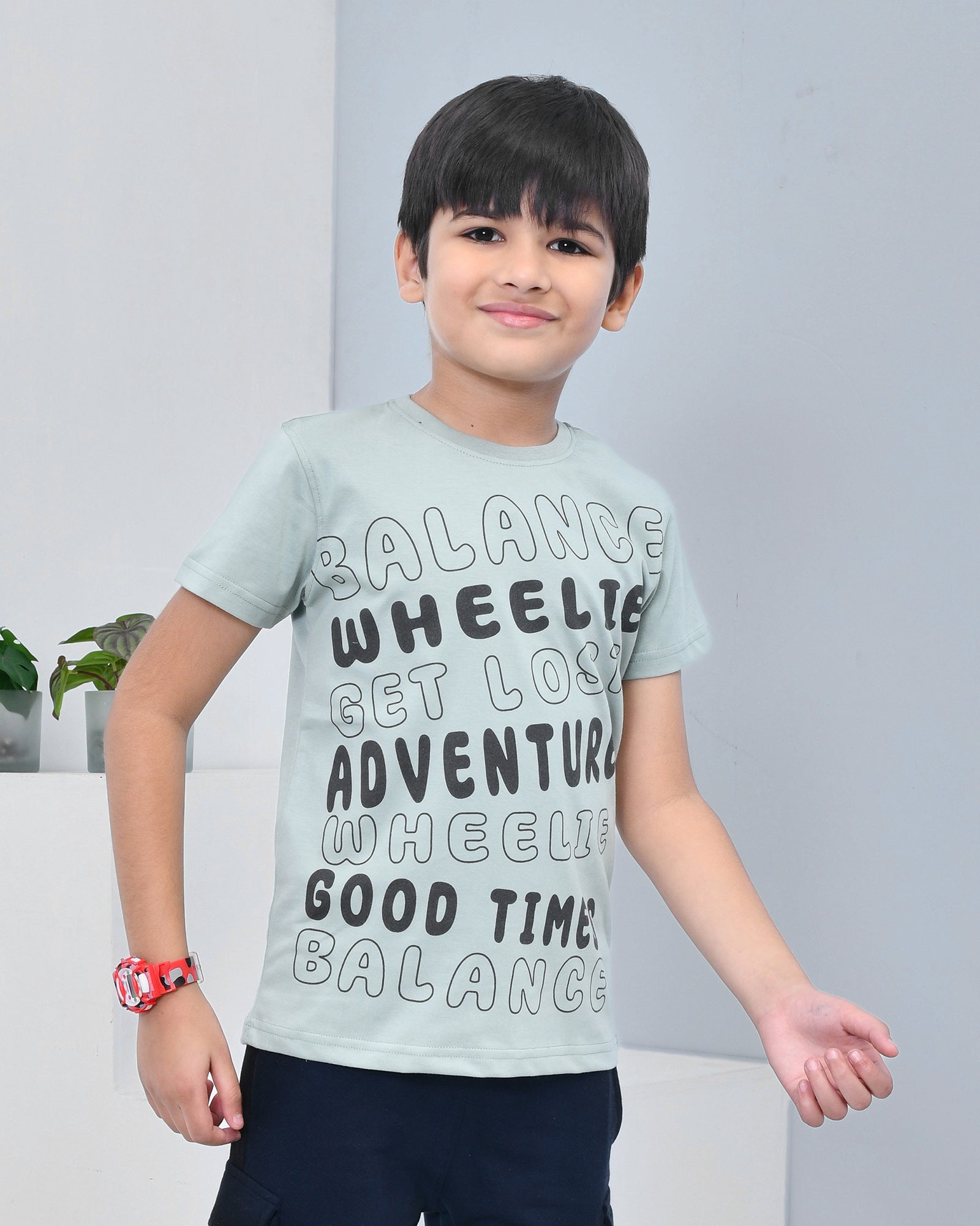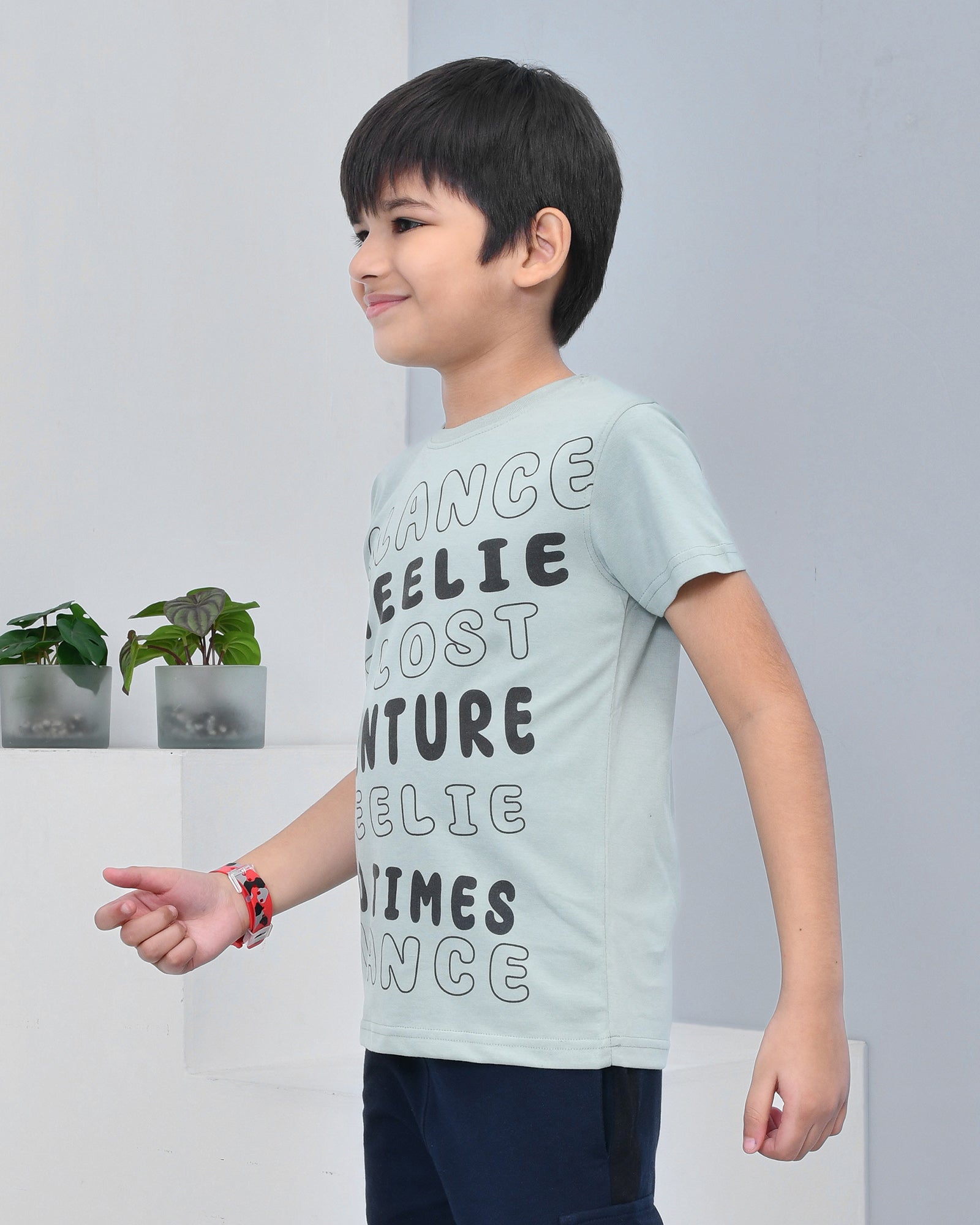 Youmaa 100% Cotton Half Sleeves Typography Printed T-Shirt - Green