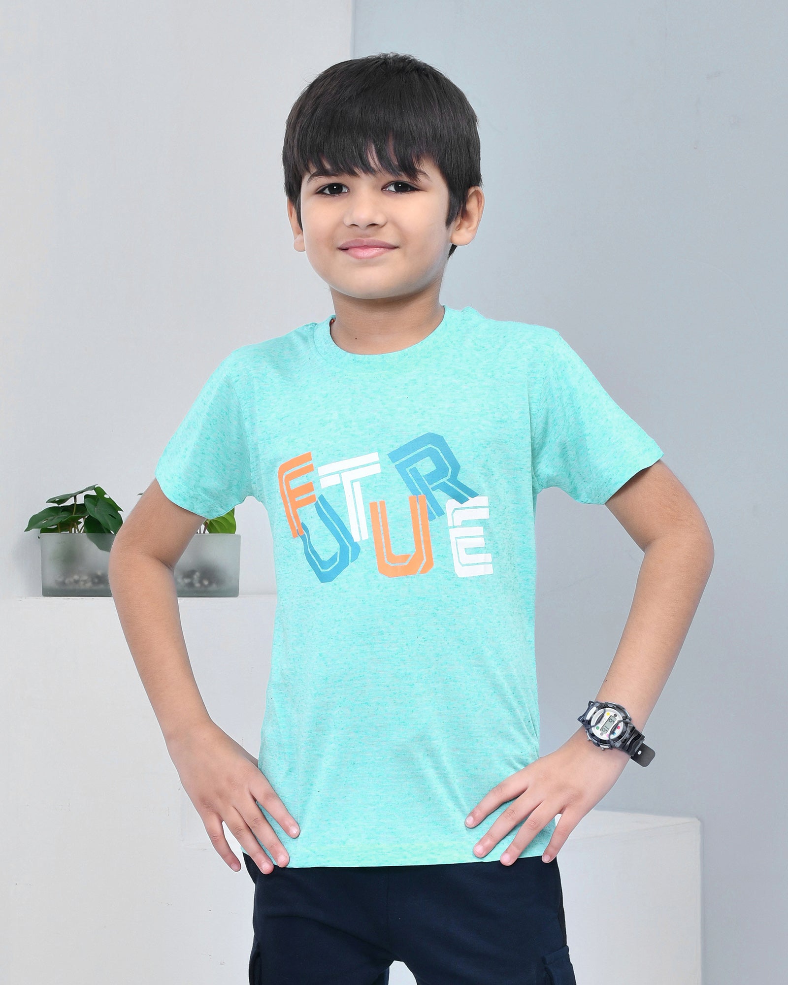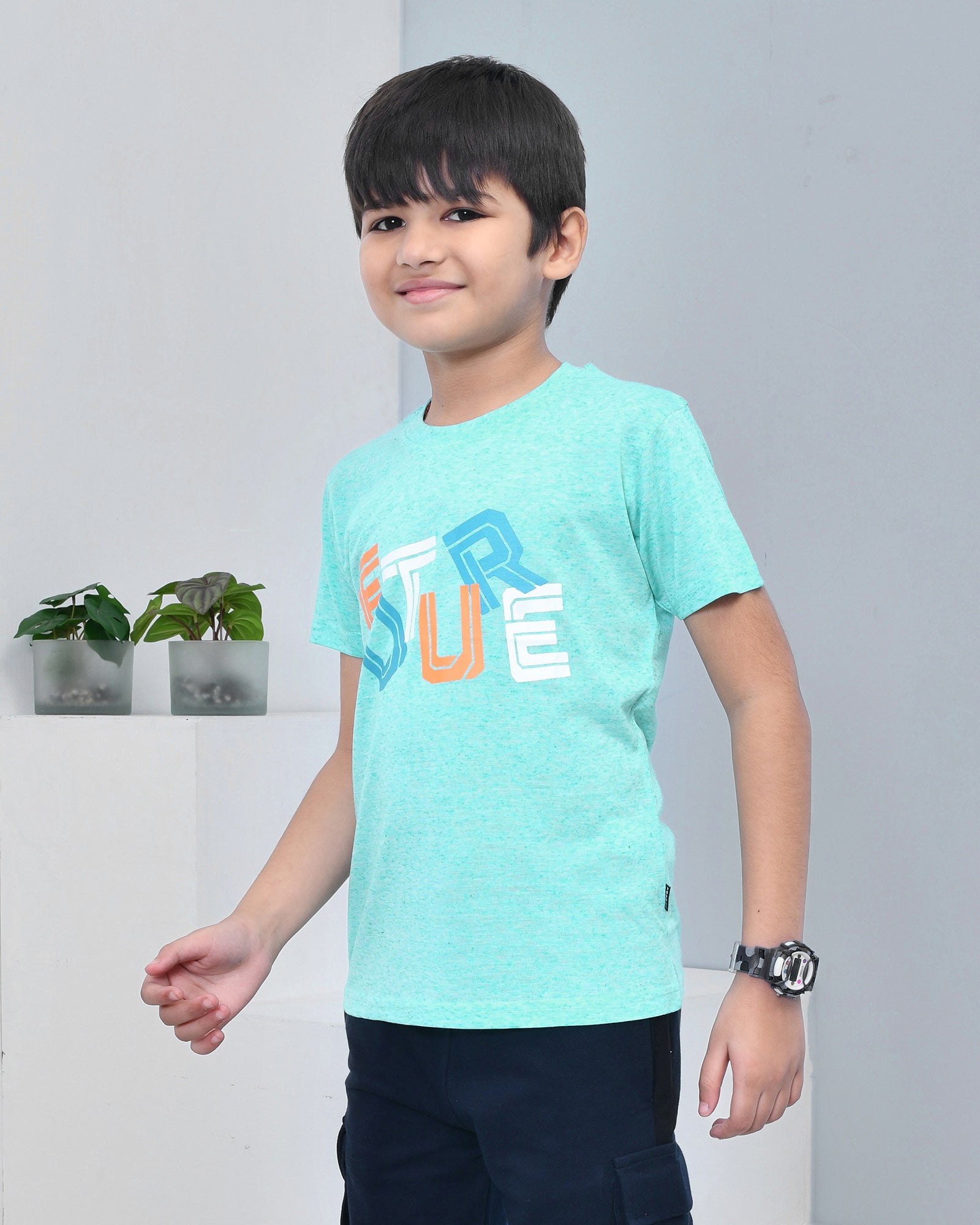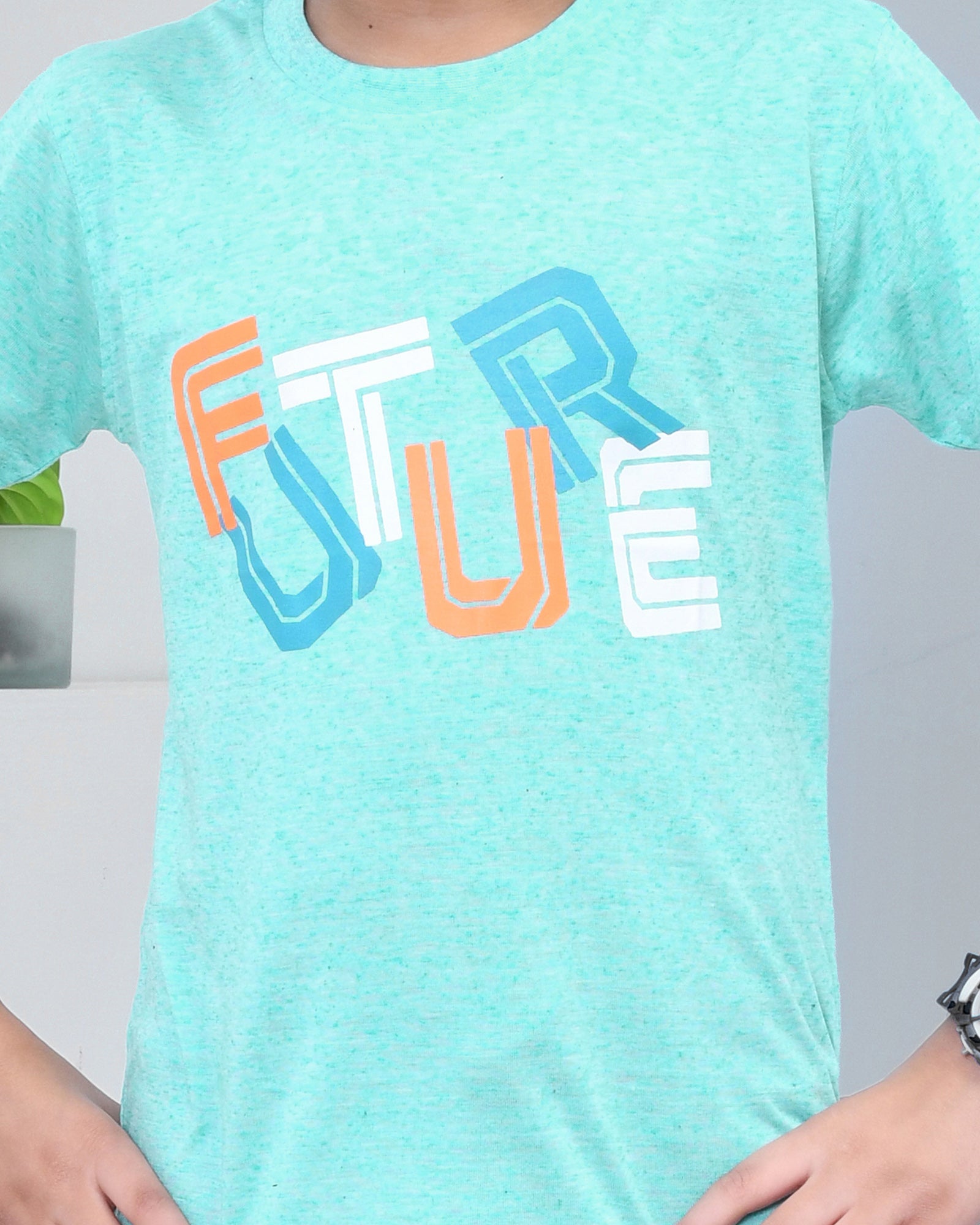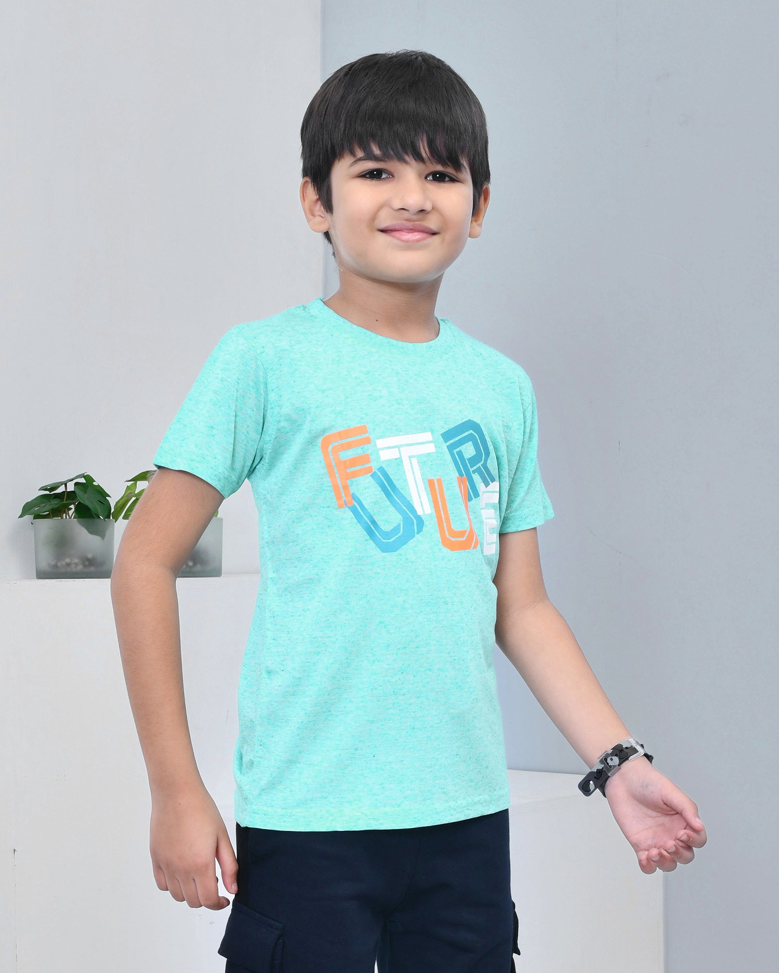 Youmaa 100% Cotton Half Sleeves Typography Printed T-Shirt - Green