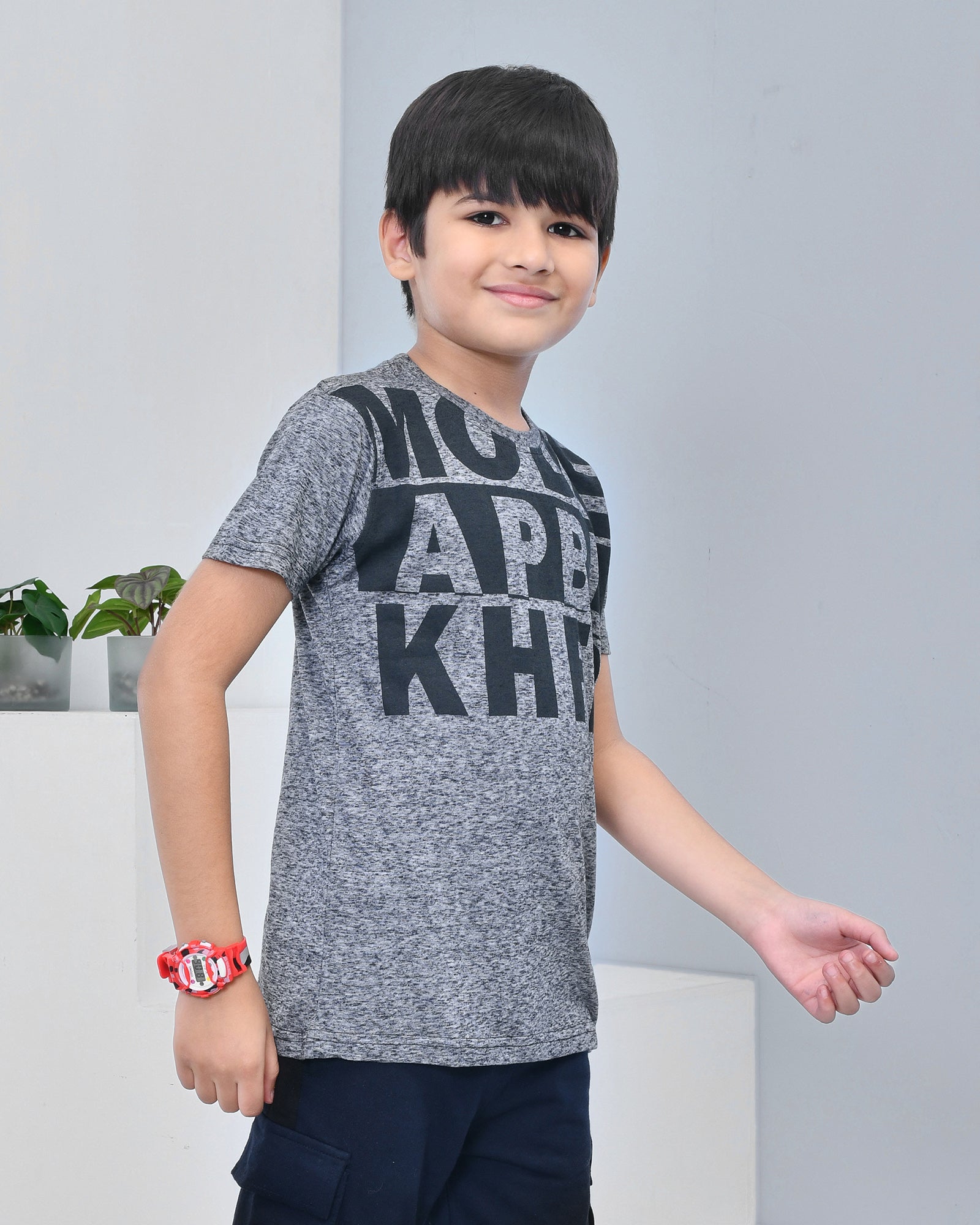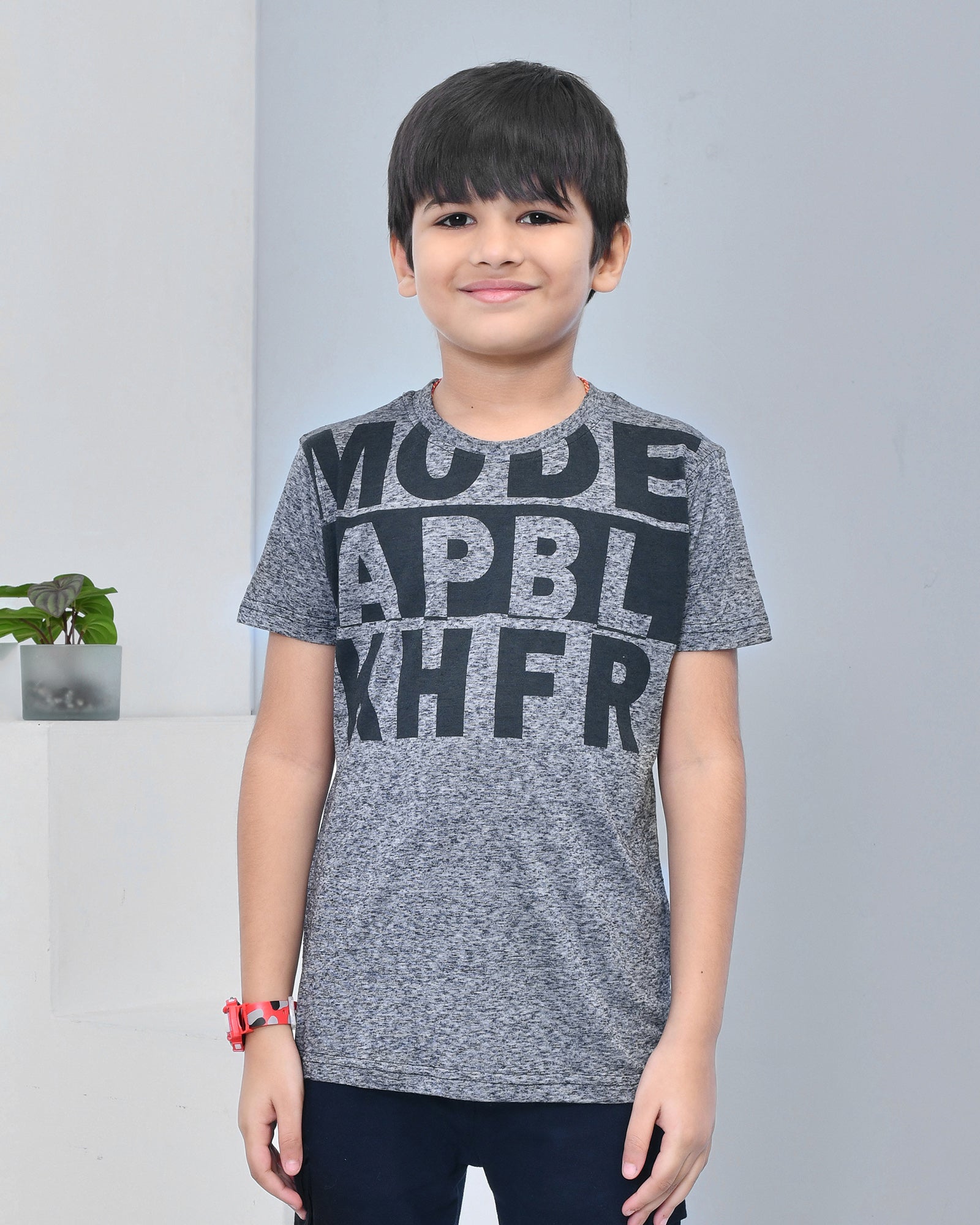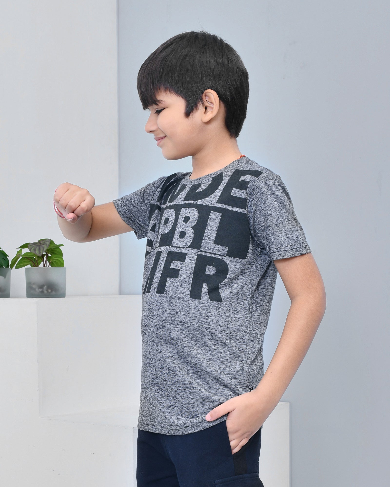 Youmaa 100% Cotton Half Sleeves Typography Printed T-Shirt - Grey