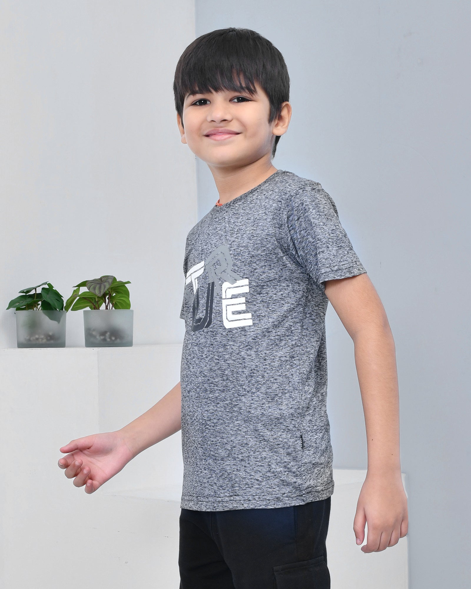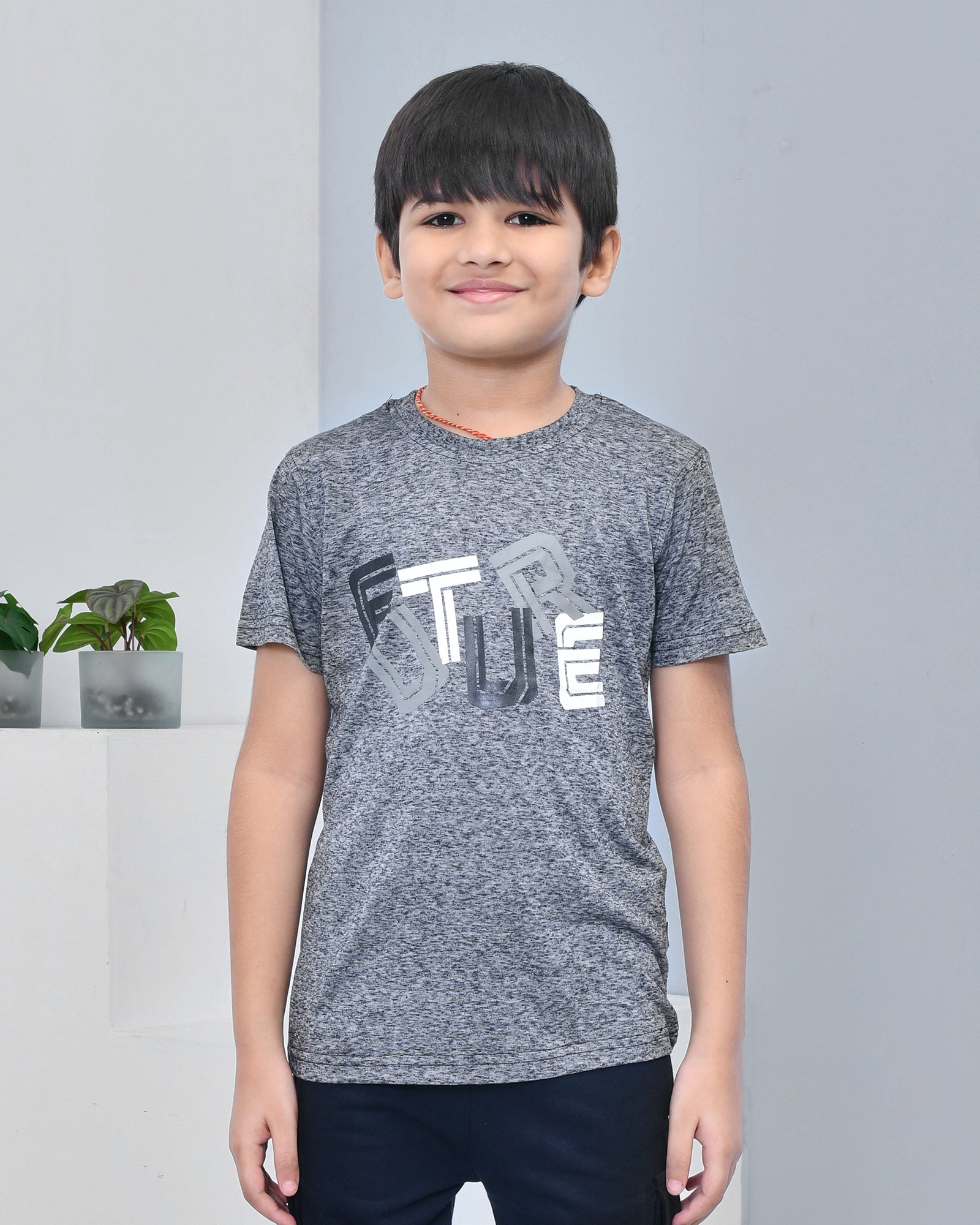 Youmaa 100% Cotton Half Sleeves Typography Printed T-Shirt - Grey