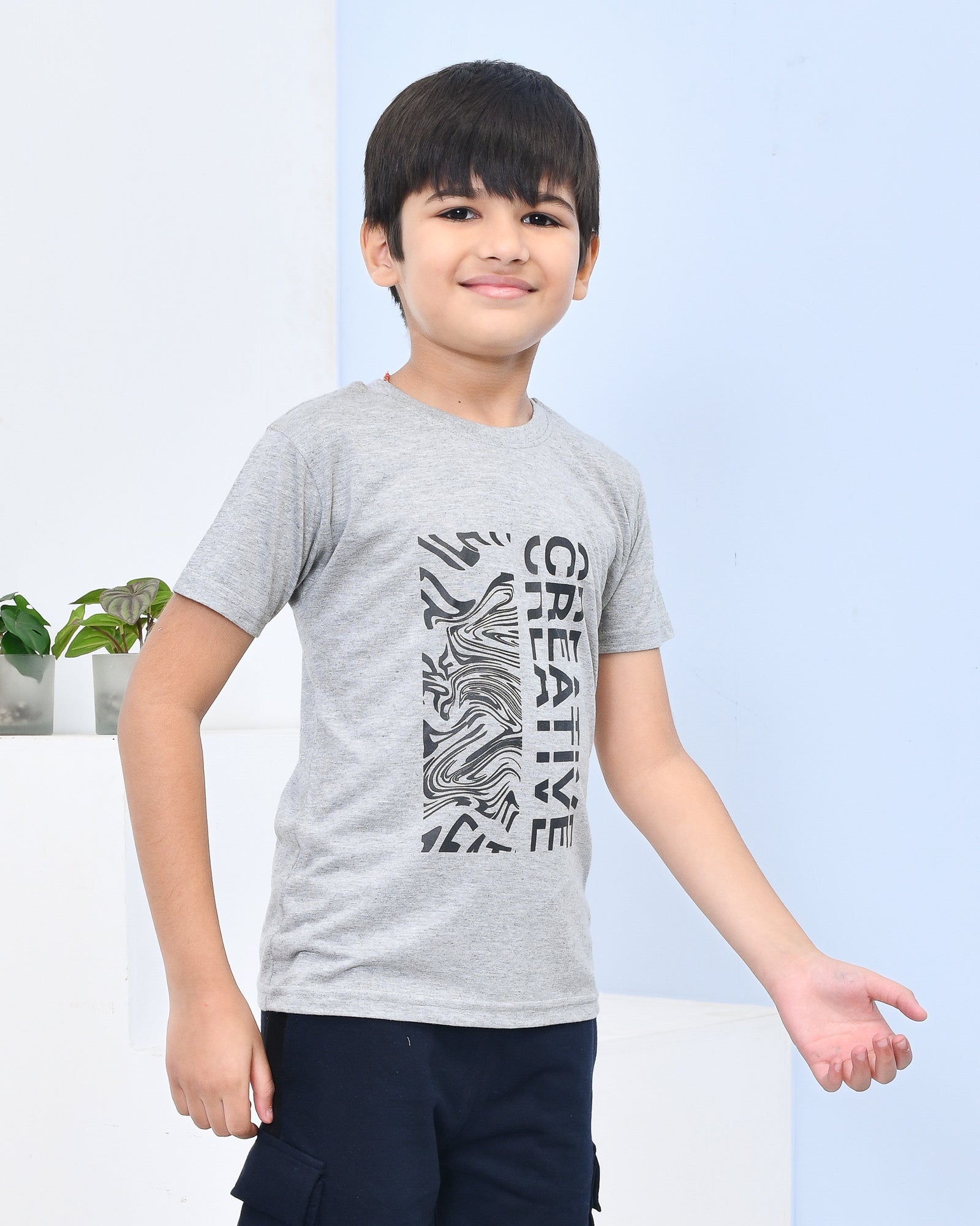 Youmaa 100% Cotton Half Sleeves Typography Printed T-Shirt - Grey