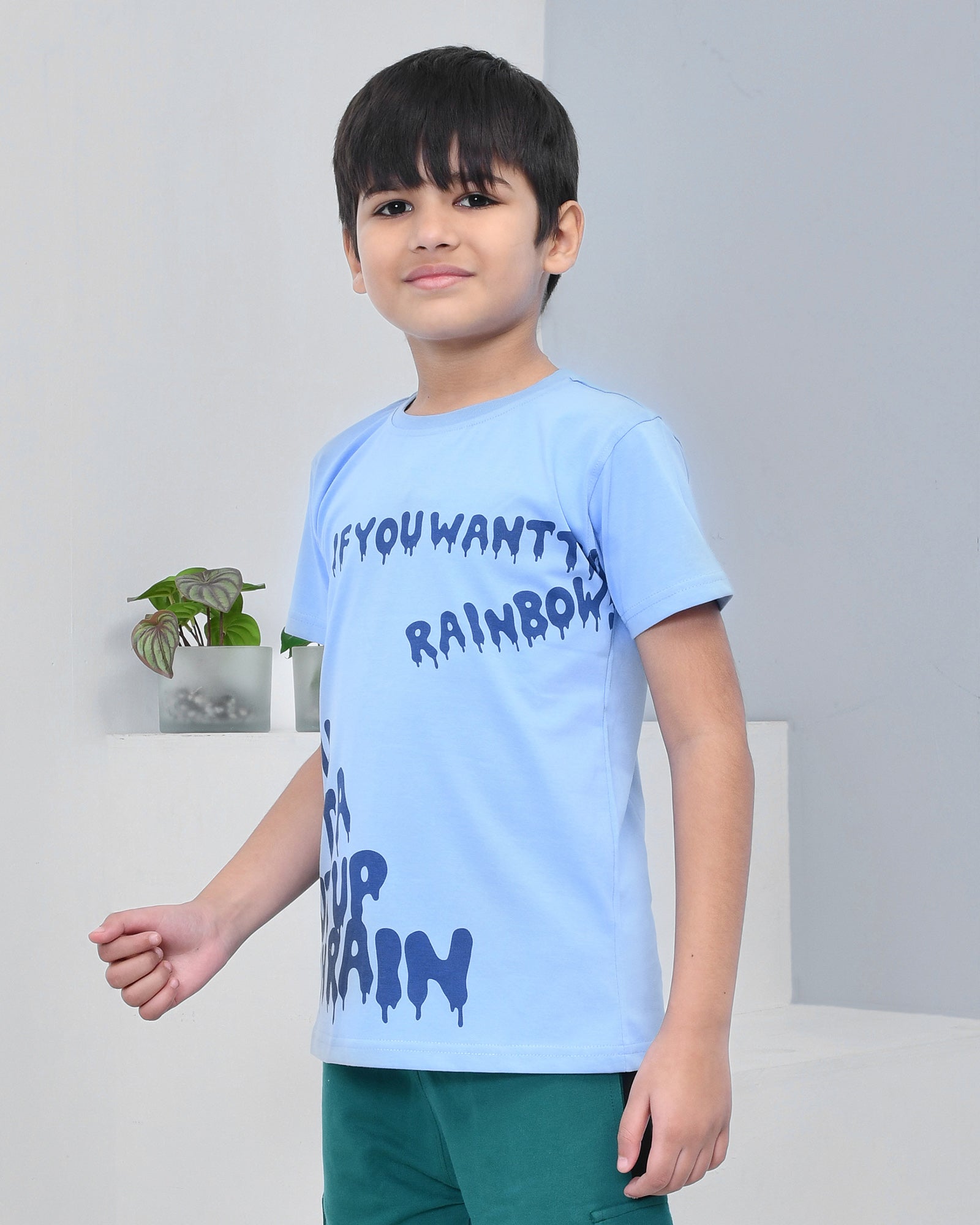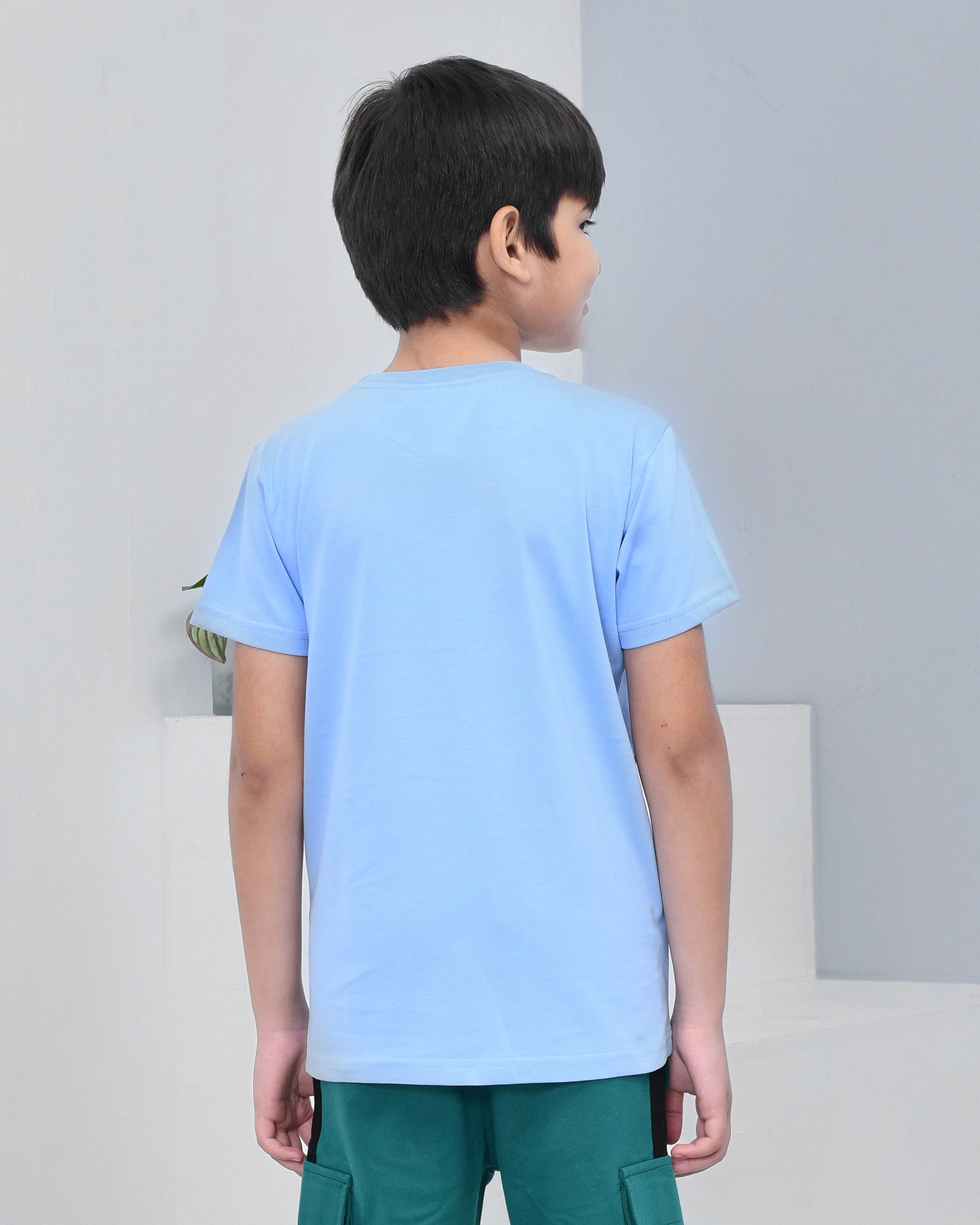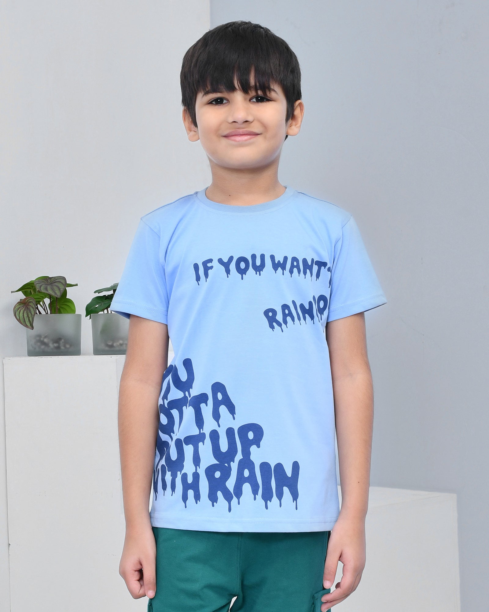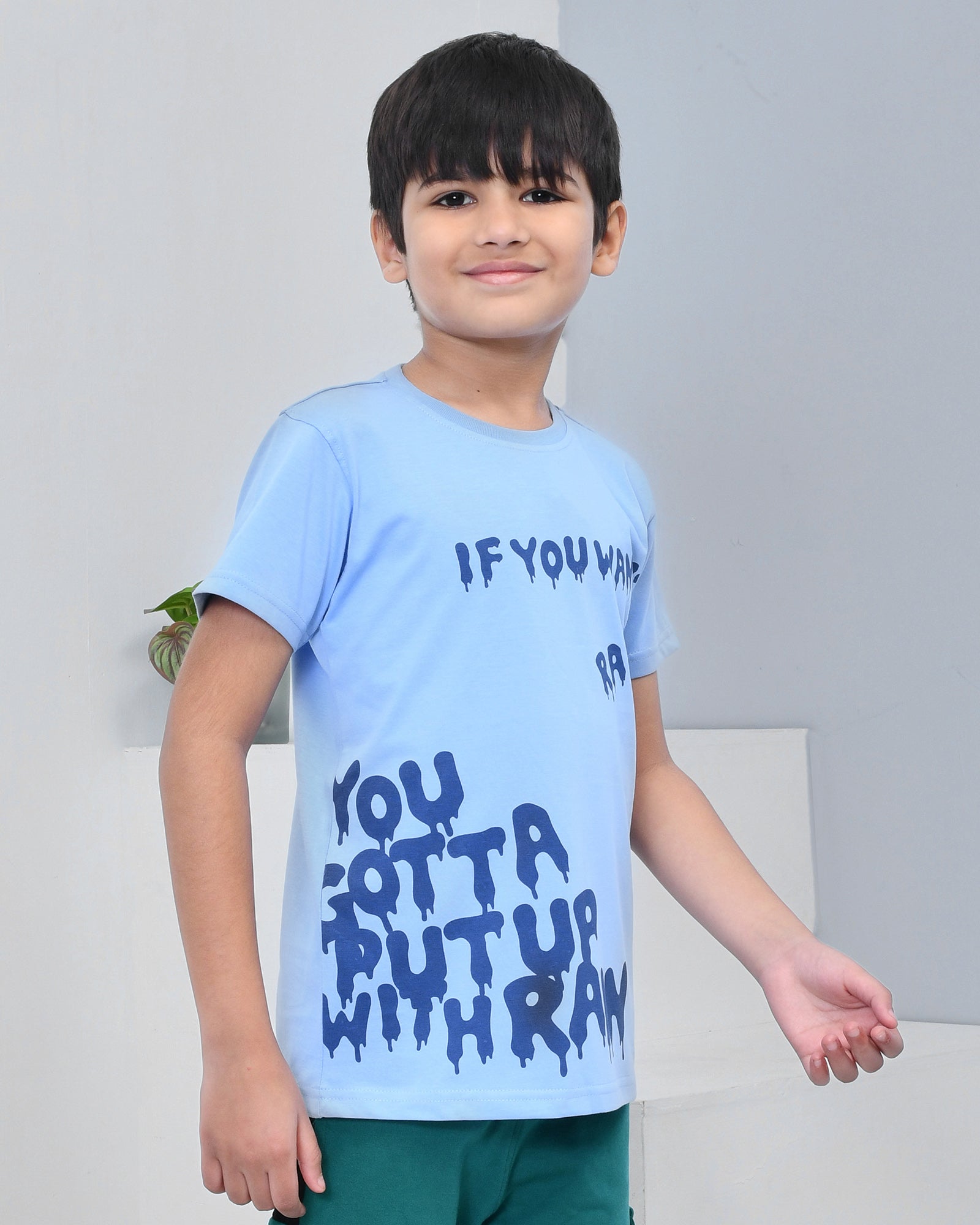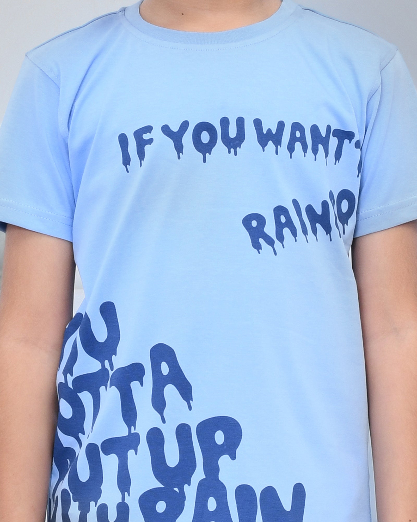 Youmaa 100% Cotton Half Sleeves Typography Printed T-Shirt - Light Blue