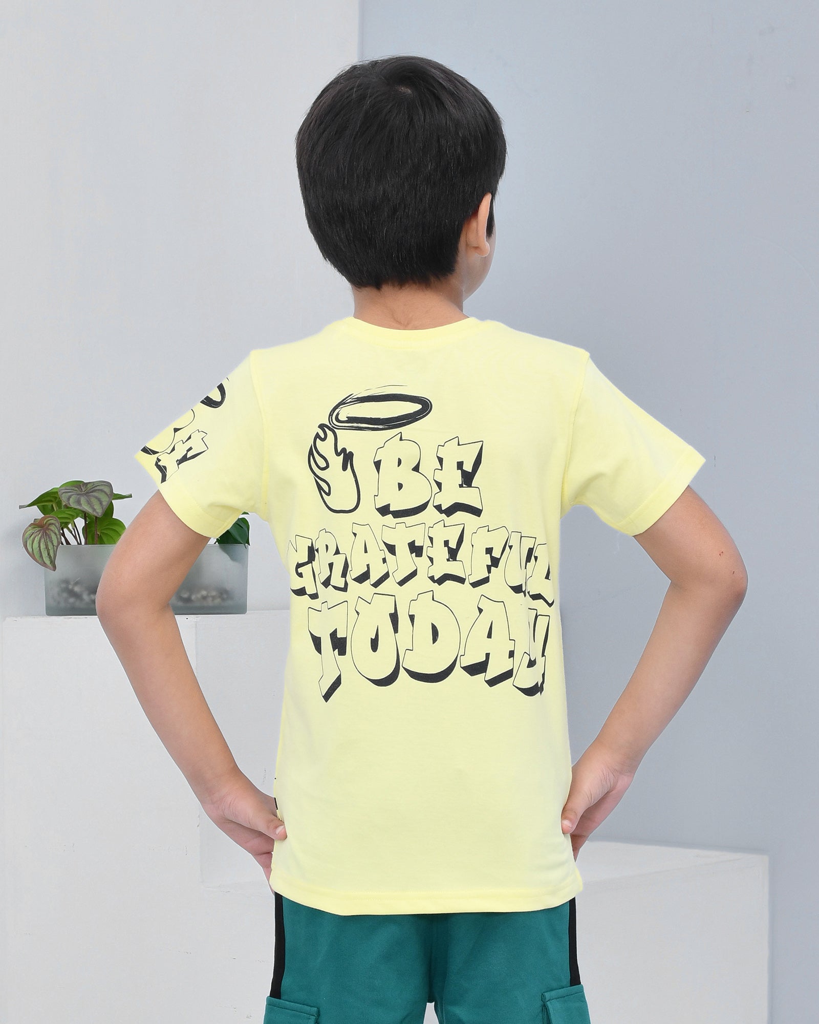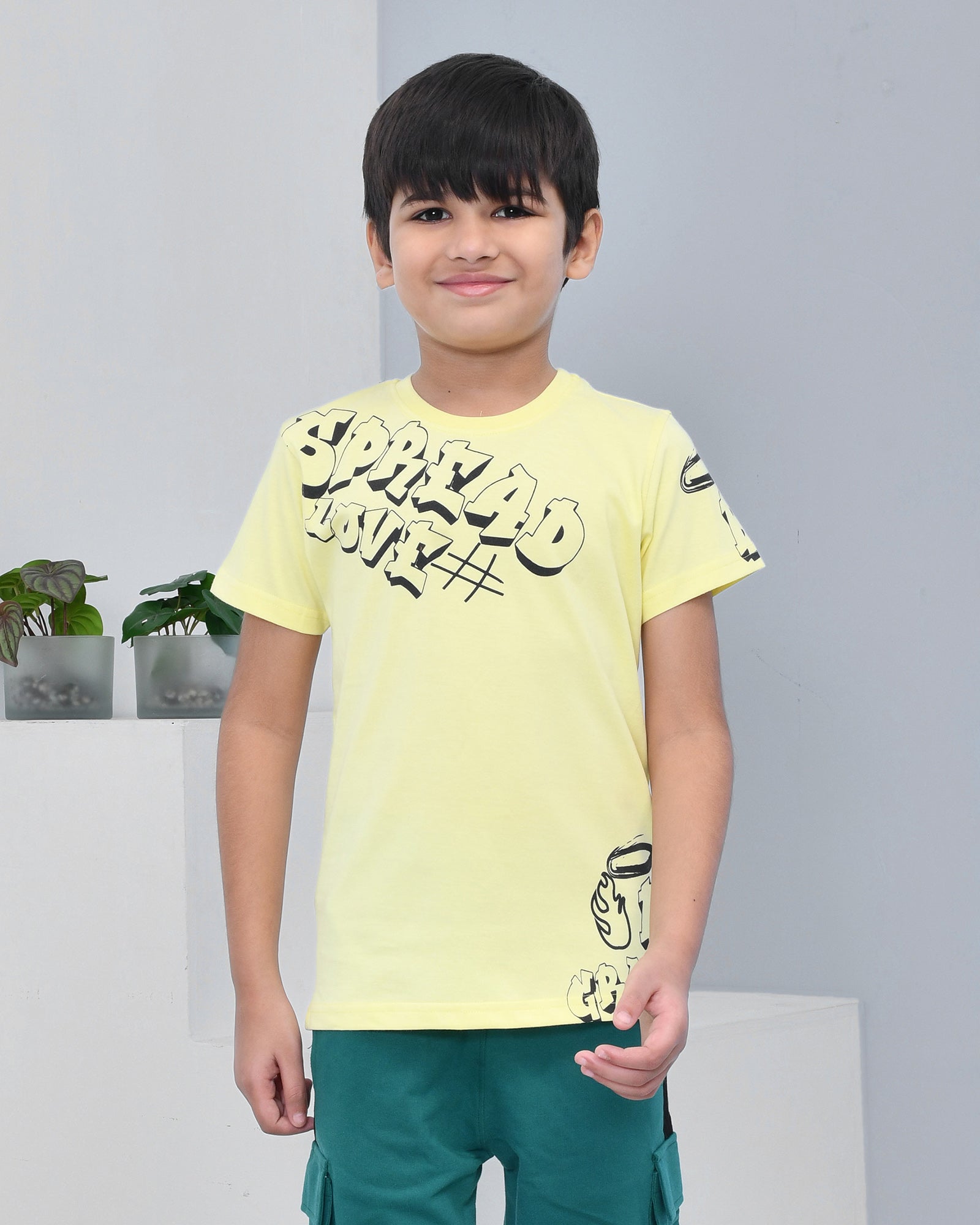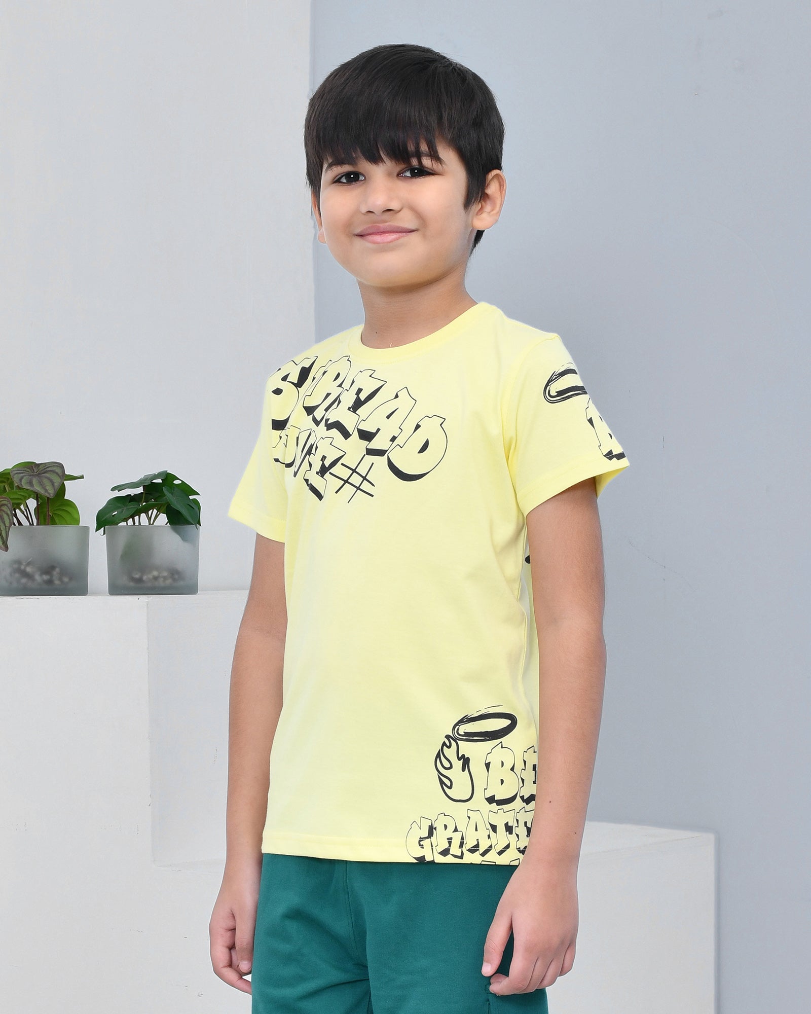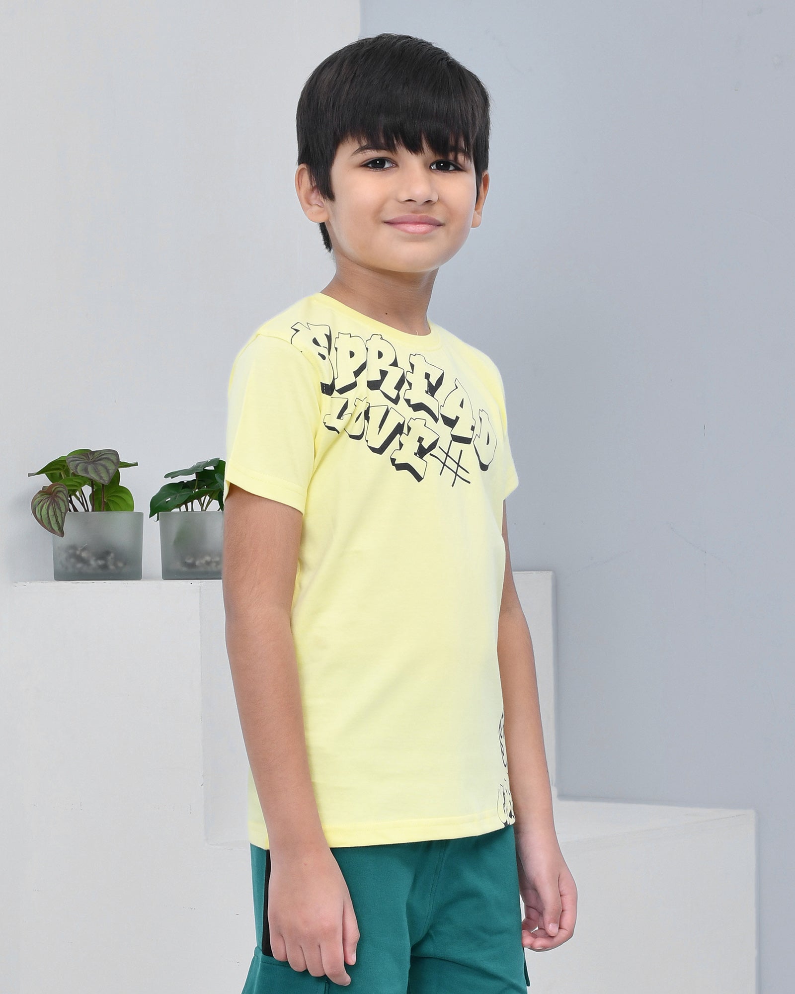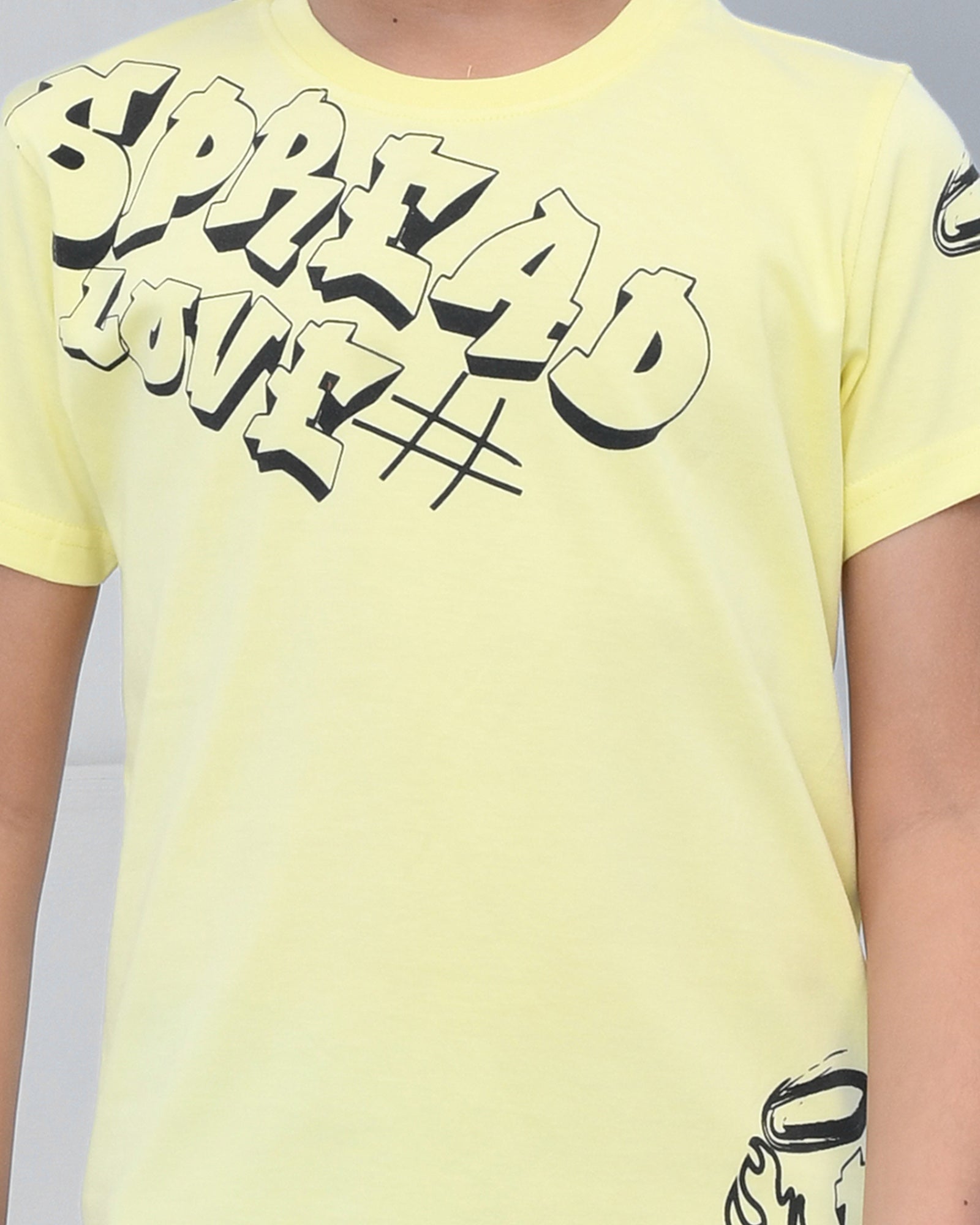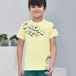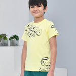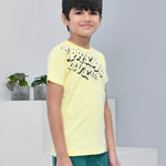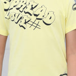 Youmaa 100% Cotton Half Sleeves Typography Printed T-Shirt - Yellow