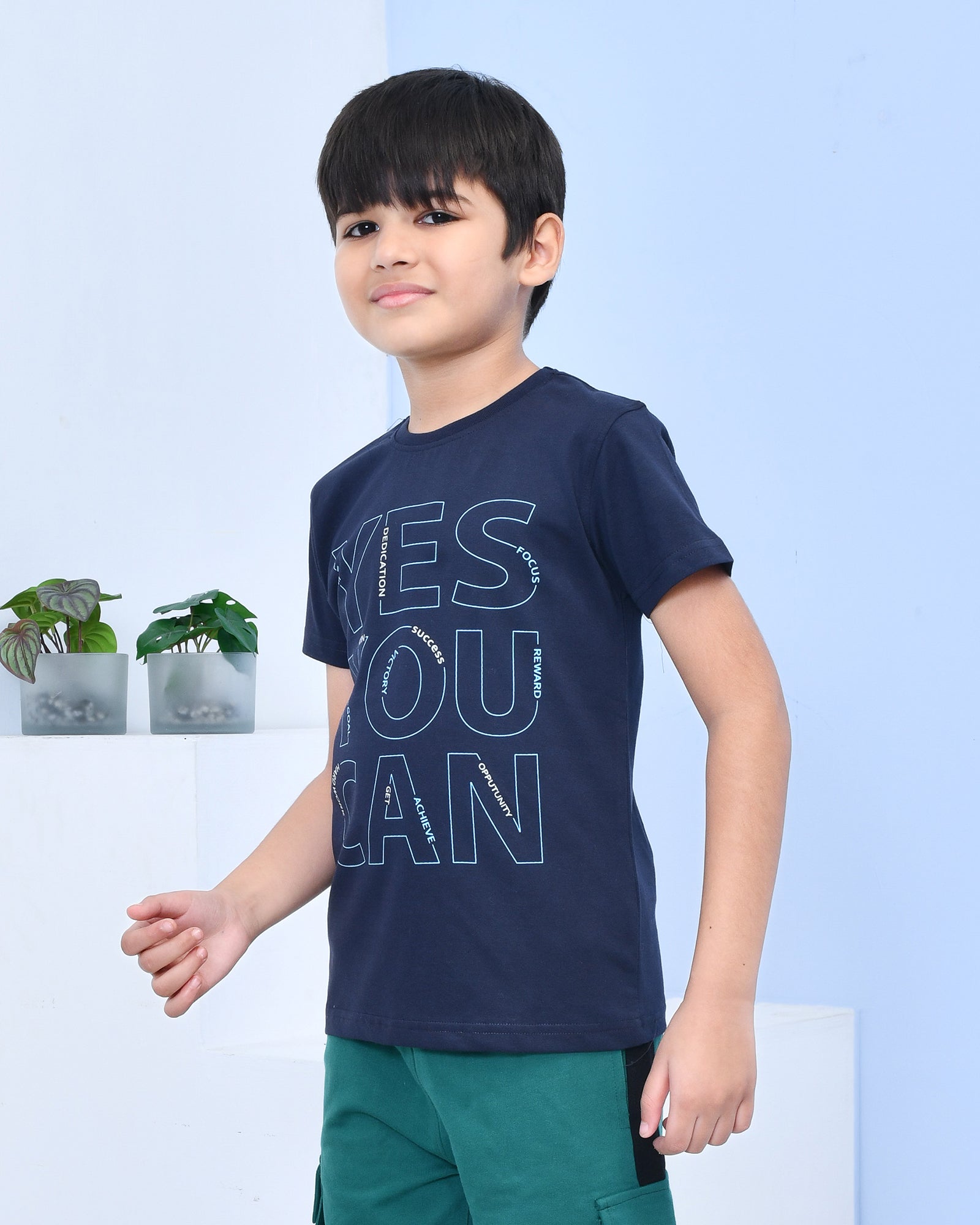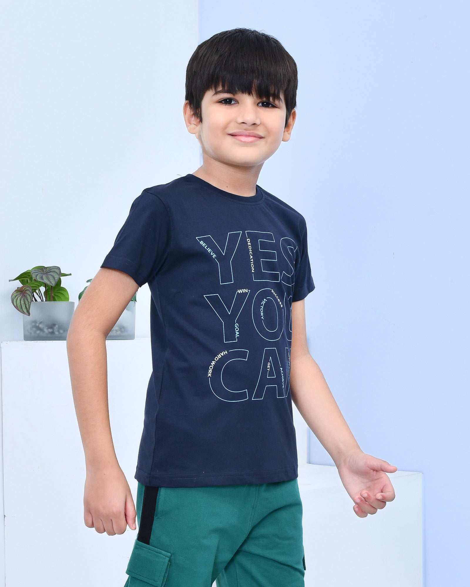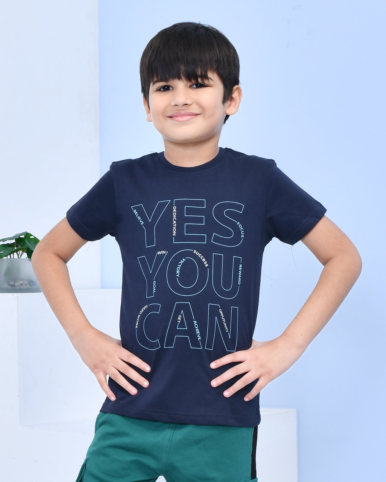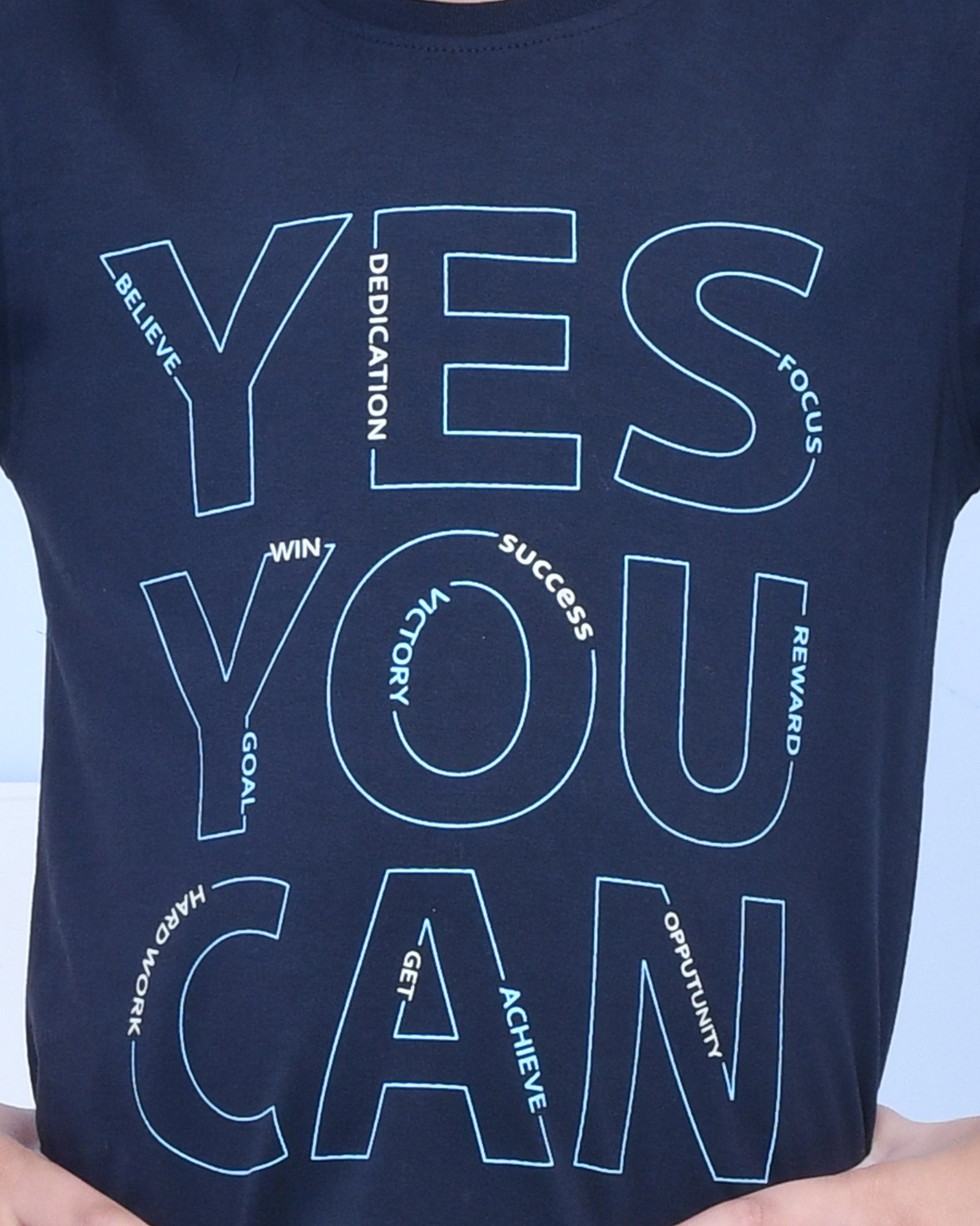 Youmaa 100% Cotton Half Sleeves Yes You Can Typography Printed T-Shirt - Blue