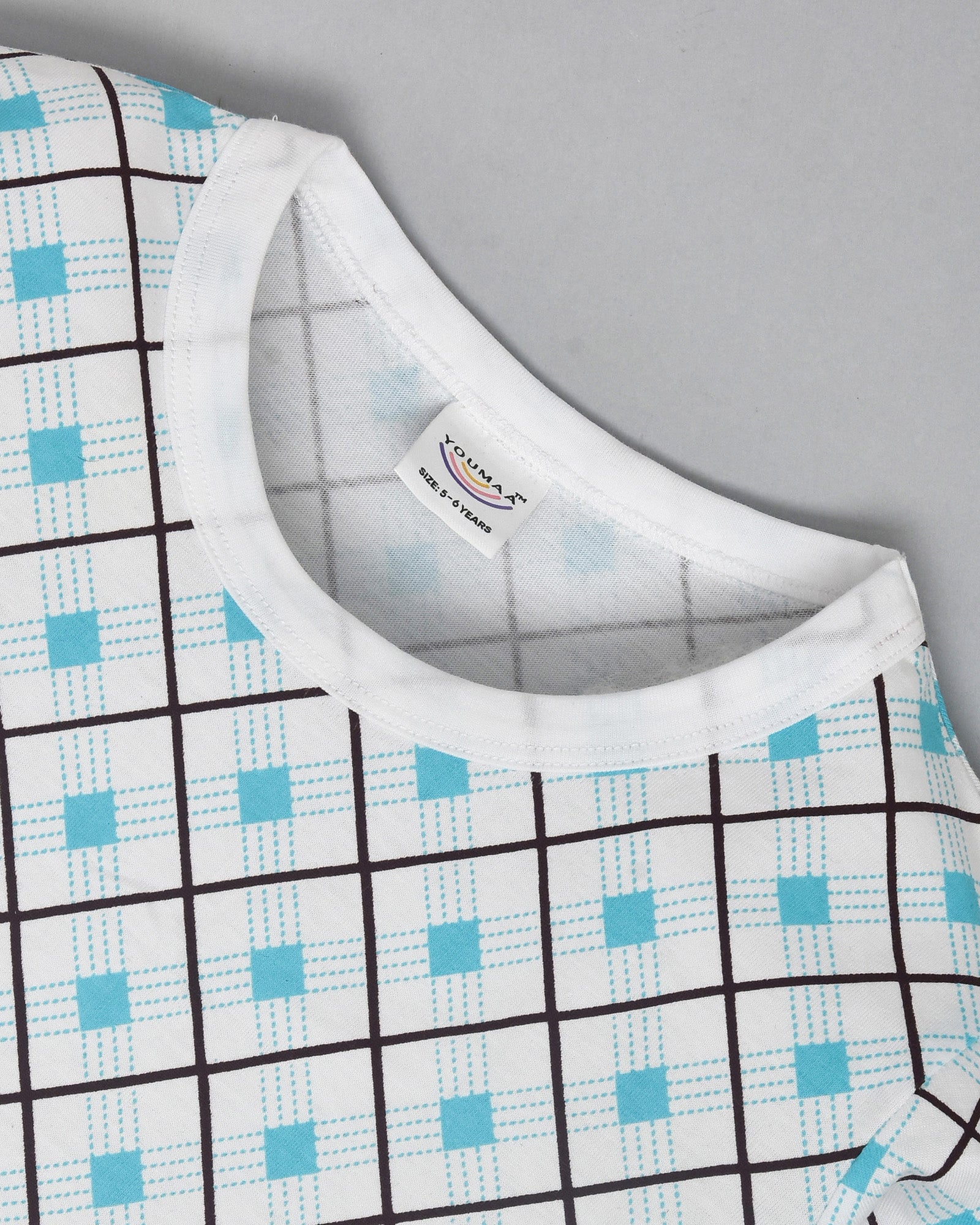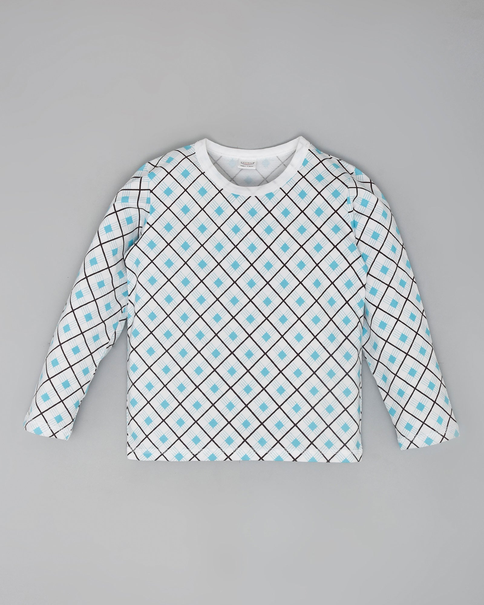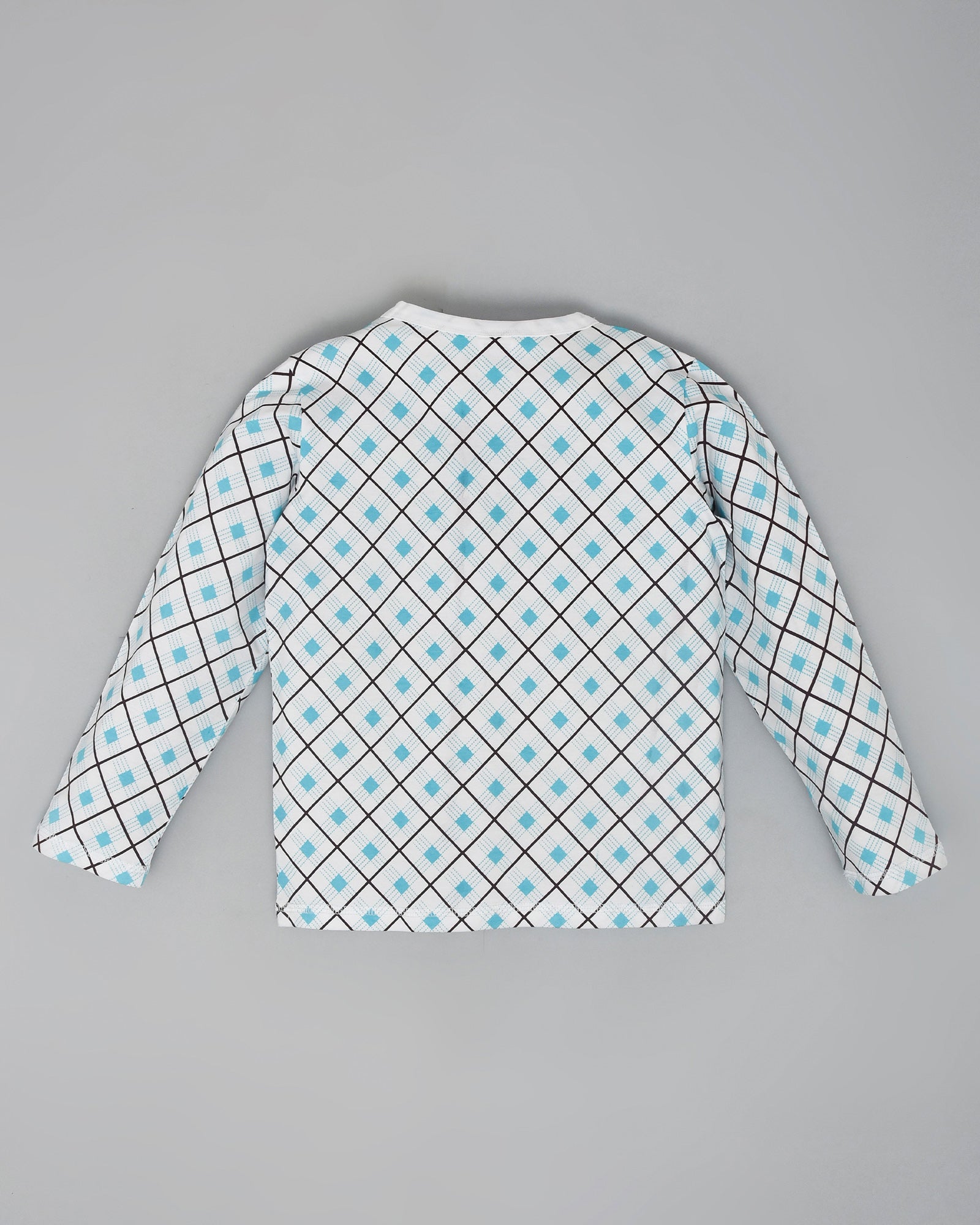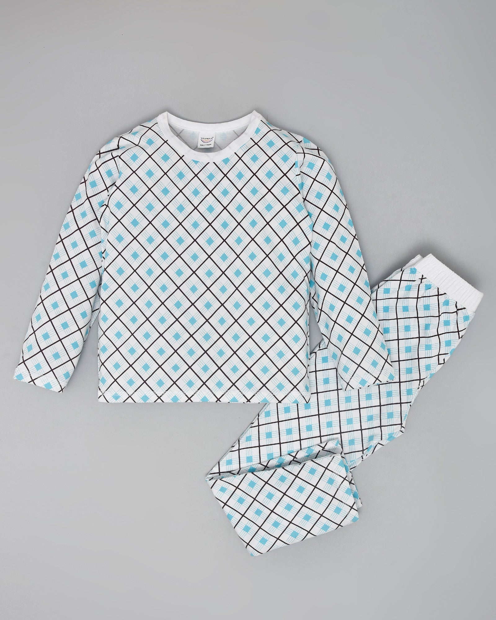 Youmaa 100% Cotton - Unisex Full Lenght Diamond Checked T-Shirt & Pant Set - Blue