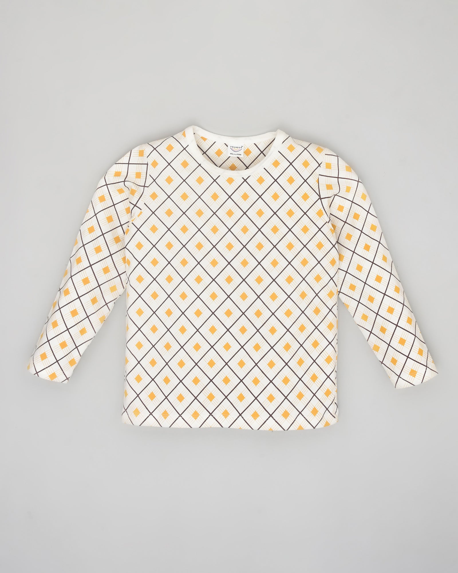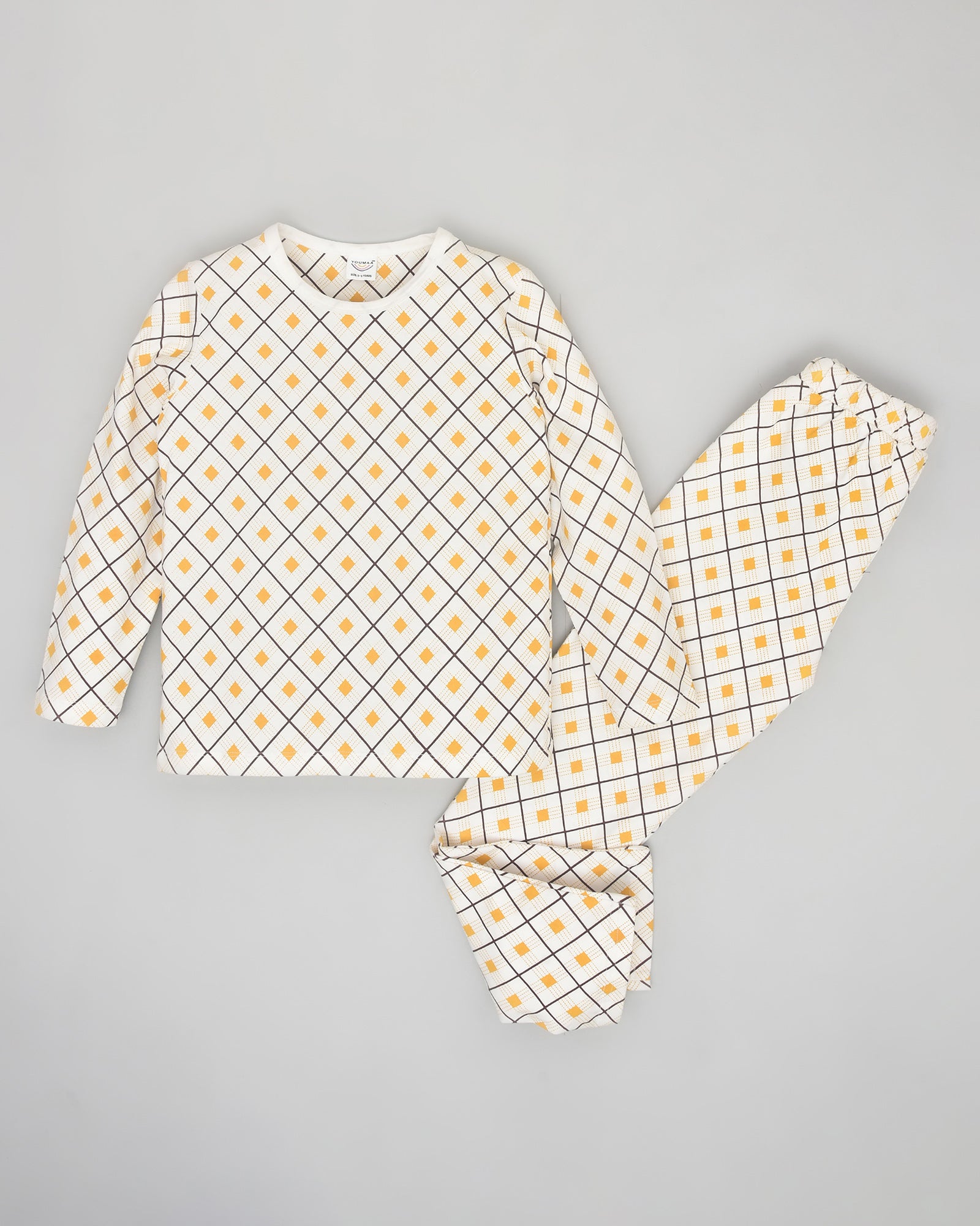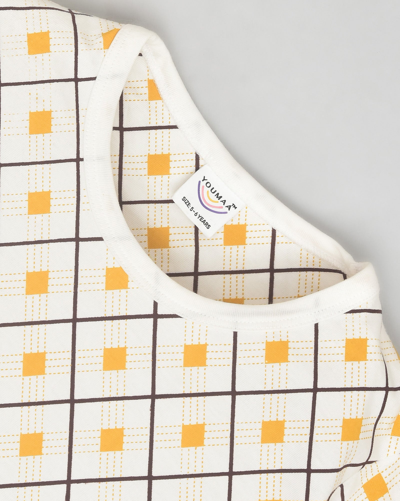 Youmaa 100% Cotton - Unisex Full Length Diamond Checked T-Shirt & Pant Set - Yellow