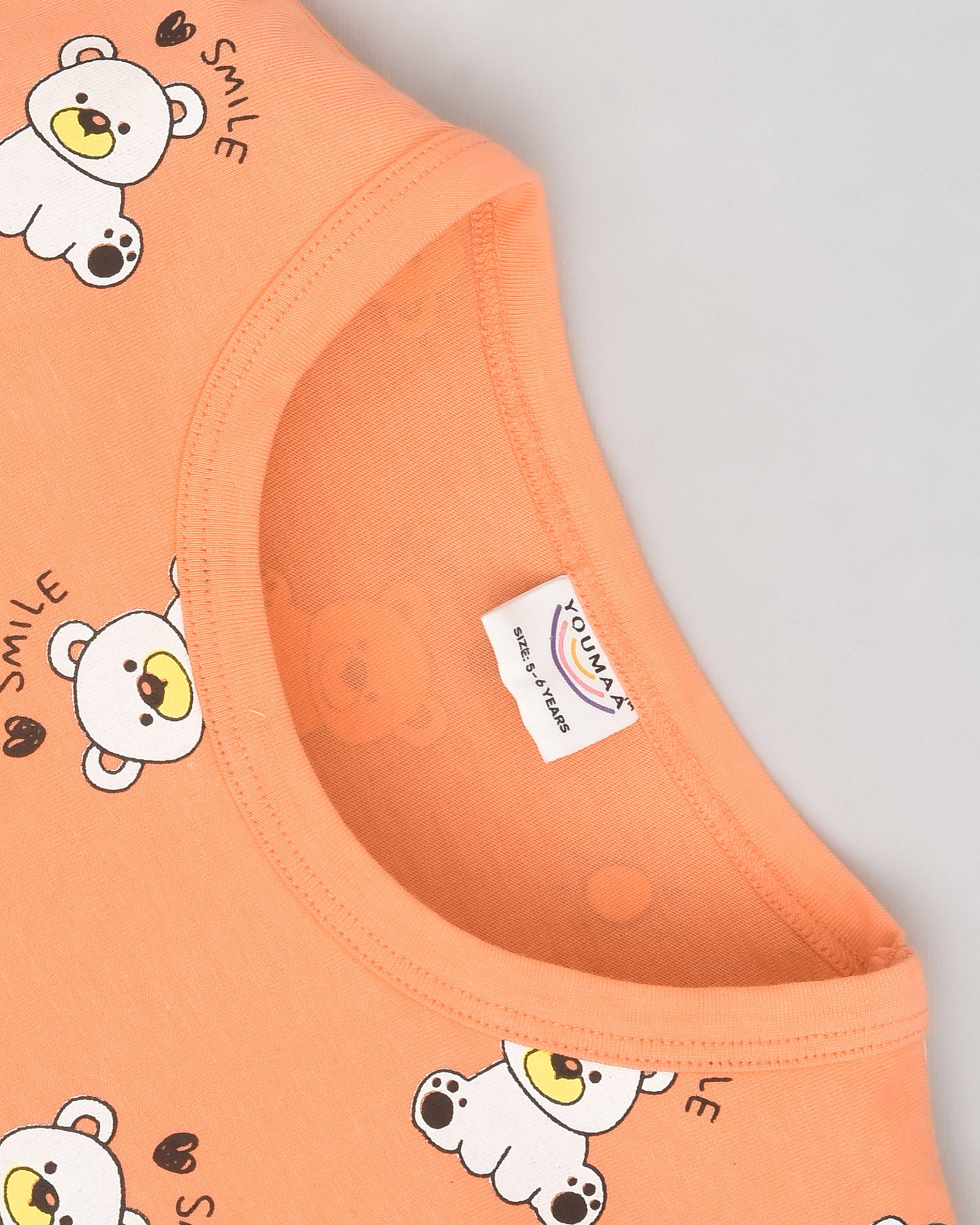 Youmaa 100% Cotton - Unisex Half Sleeves Dog Printed T-Shirt & Pant Set - Orange