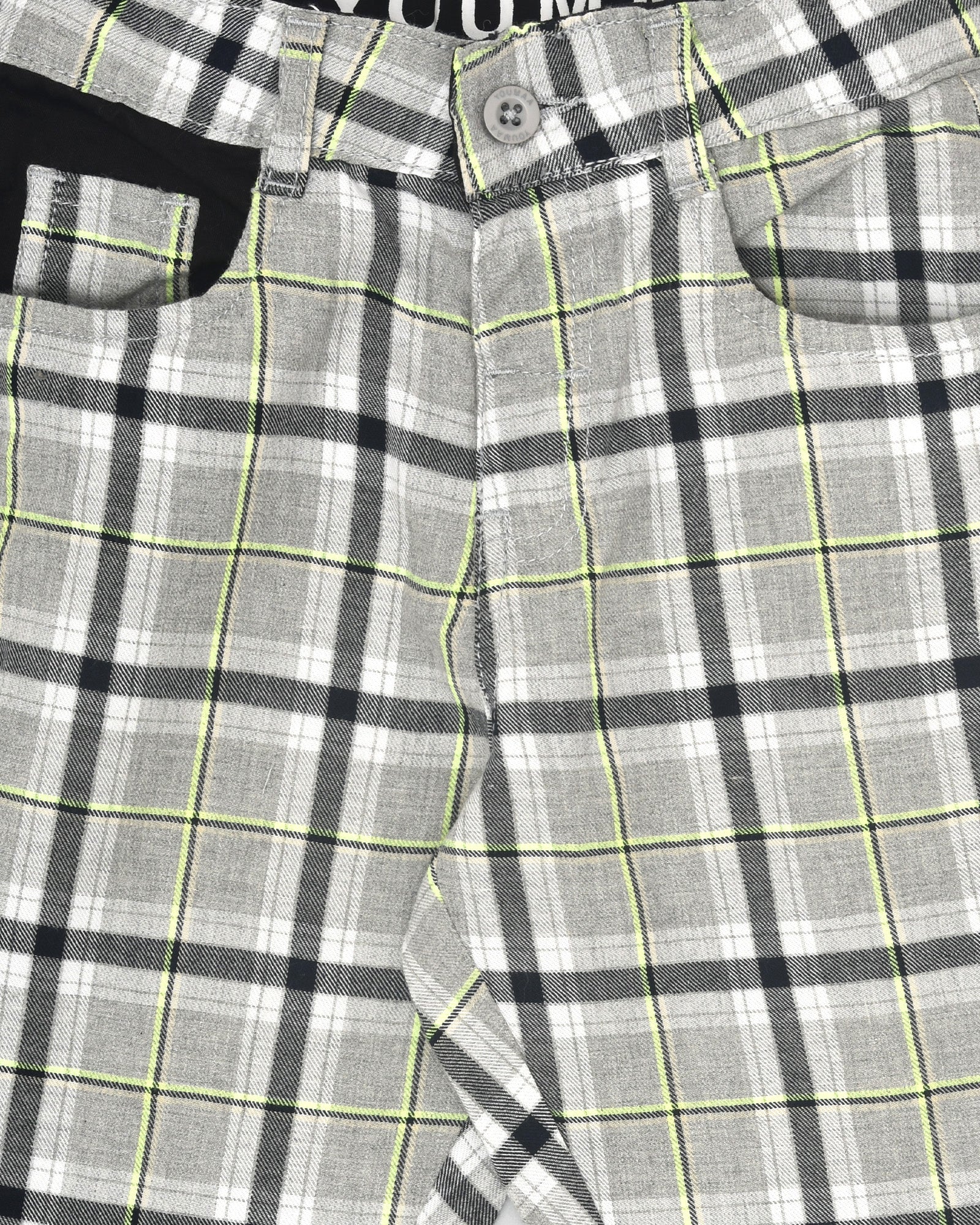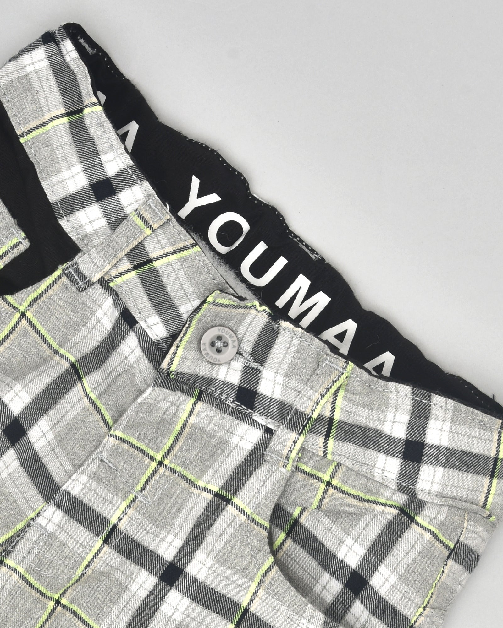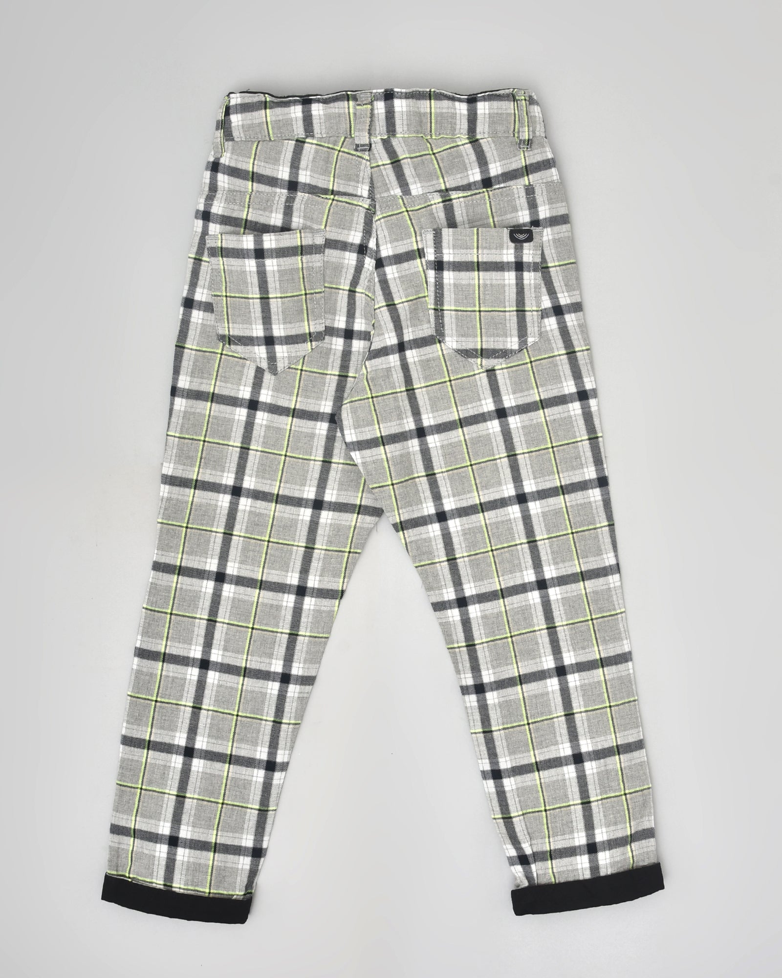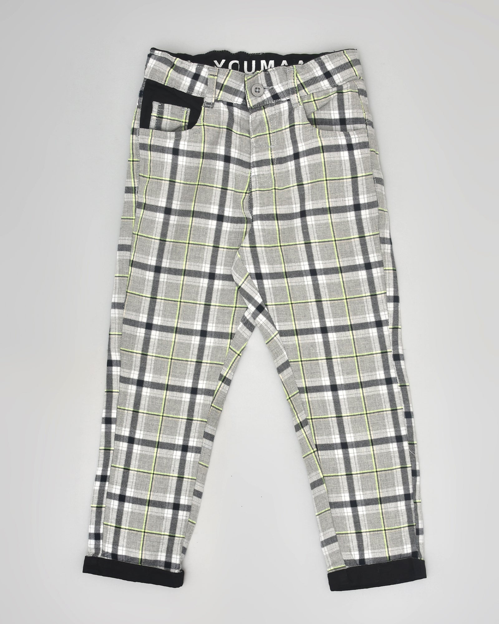 Youmaa Boys -100% Cotton Checks Textured Chinos -Fixed Waist Band - Elasticated -Pockets -RegularLength- Turn Up Fit- Micro Fibre Cloud Wash Softness-Green