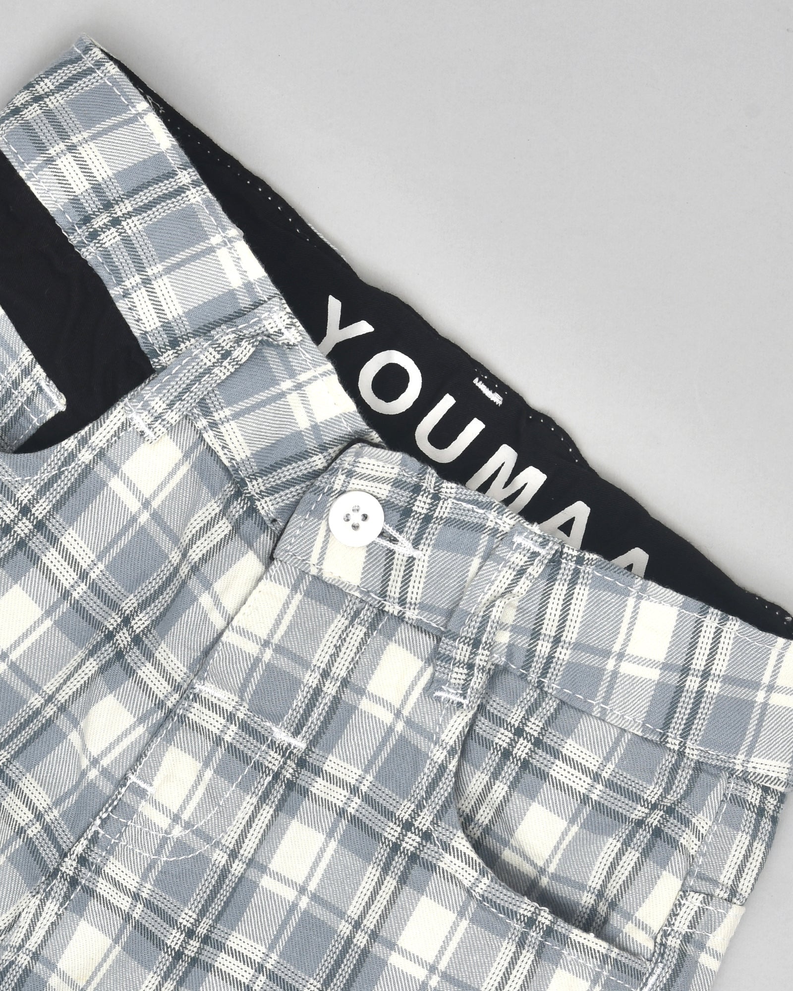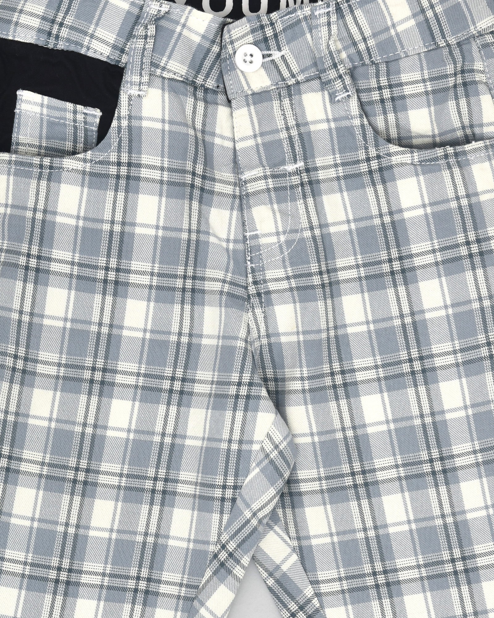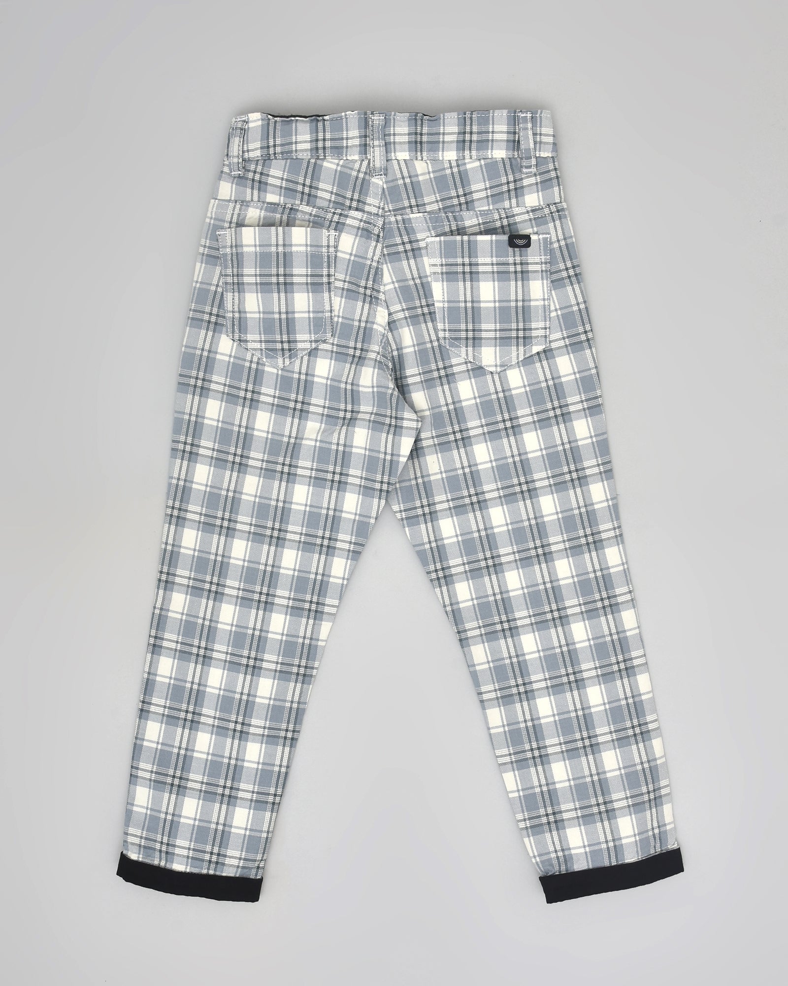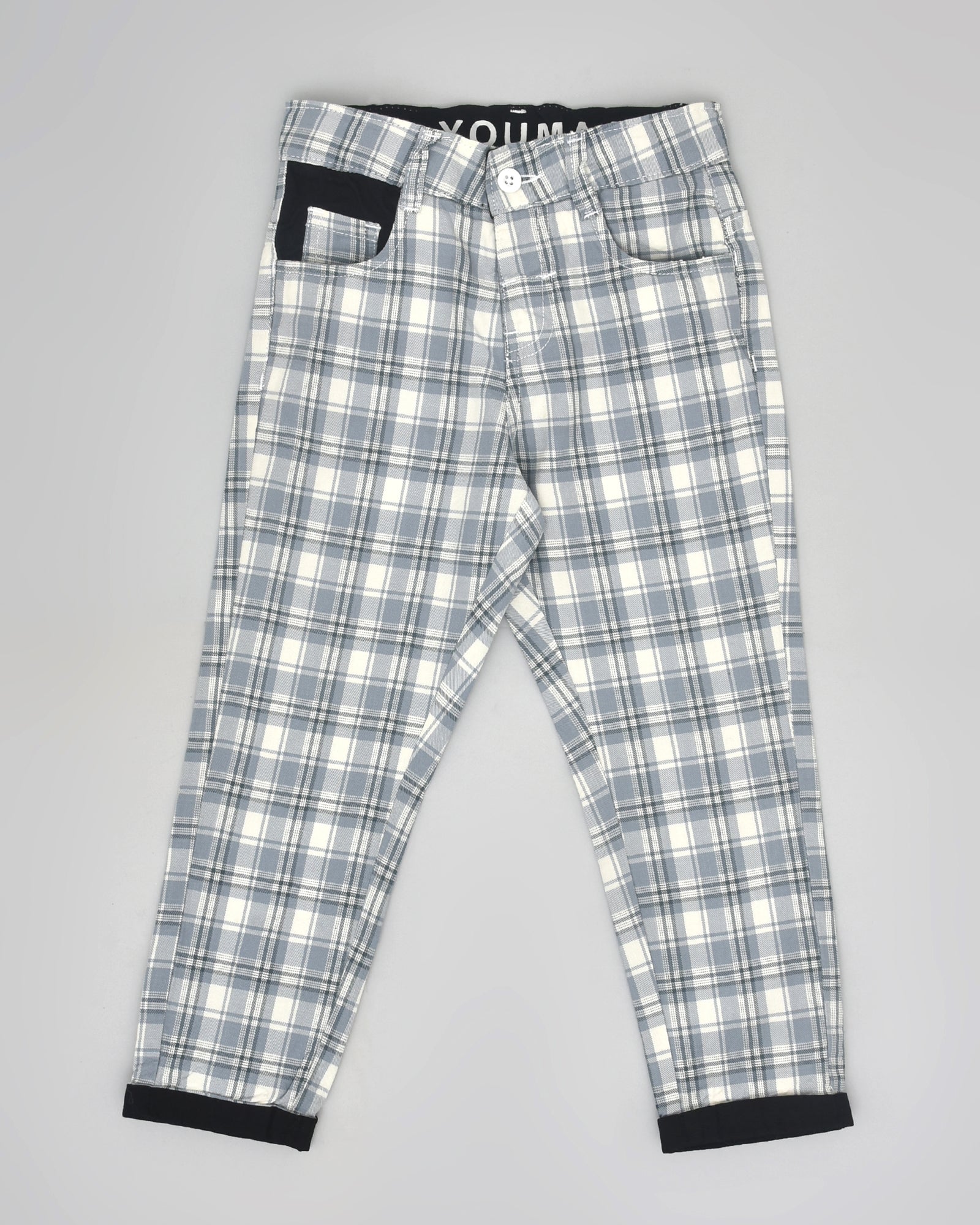 Youmaa Boys -100% Cotton Checks Textured Chinos -Fixed Waist Band - Elasticated -Pockets -RegularLength- Turn Up Fit- Micro Fibre Cloud Wash Softness-Grey