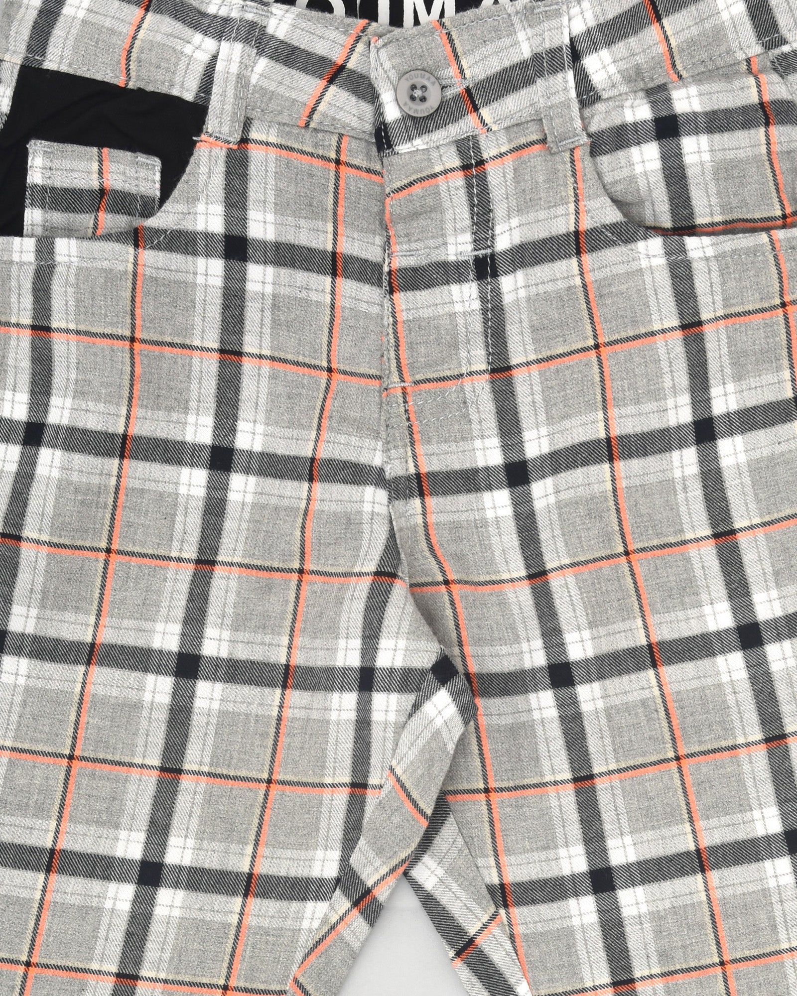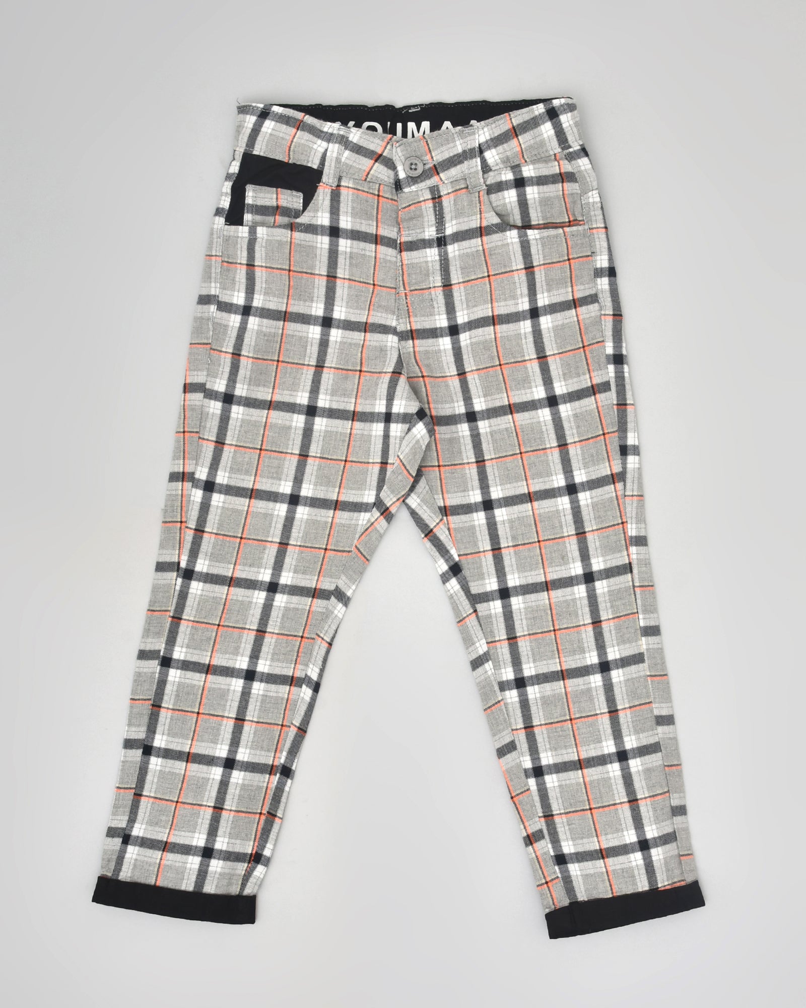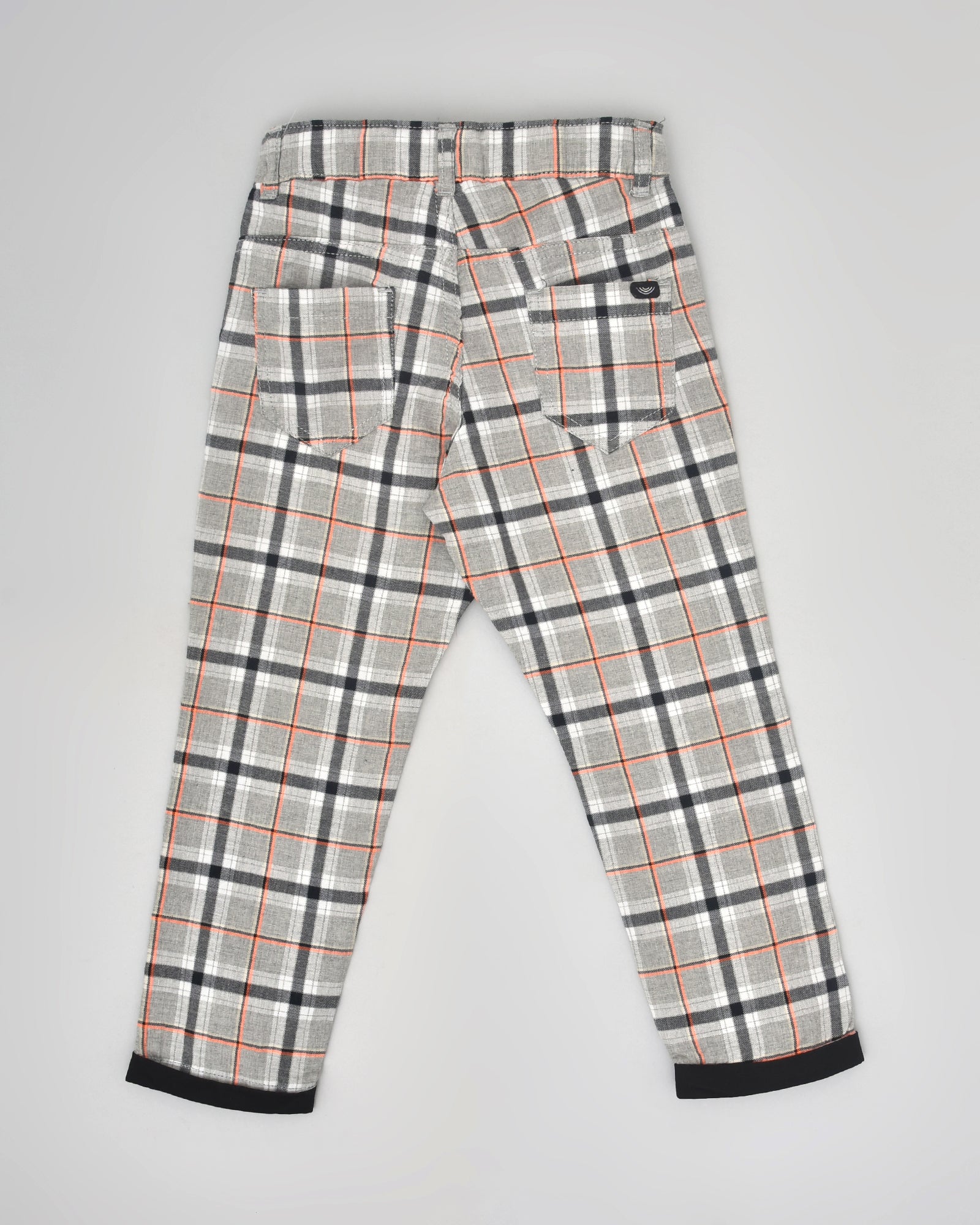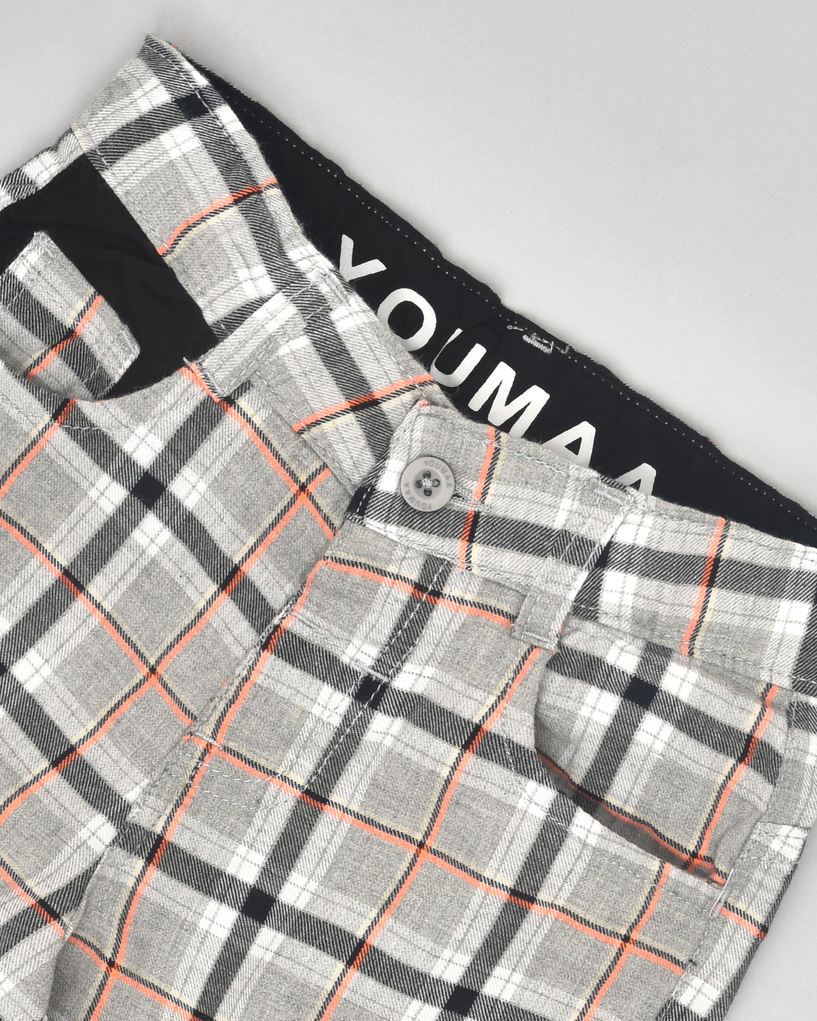 Youmaa Boys -100% Cotton Checks Textured Chinos -Fixed Waist Band - Elasticated -Pockets -RegularLength- Turn Up Fit- Micro Fibre Cloud Wash Softness-Orange