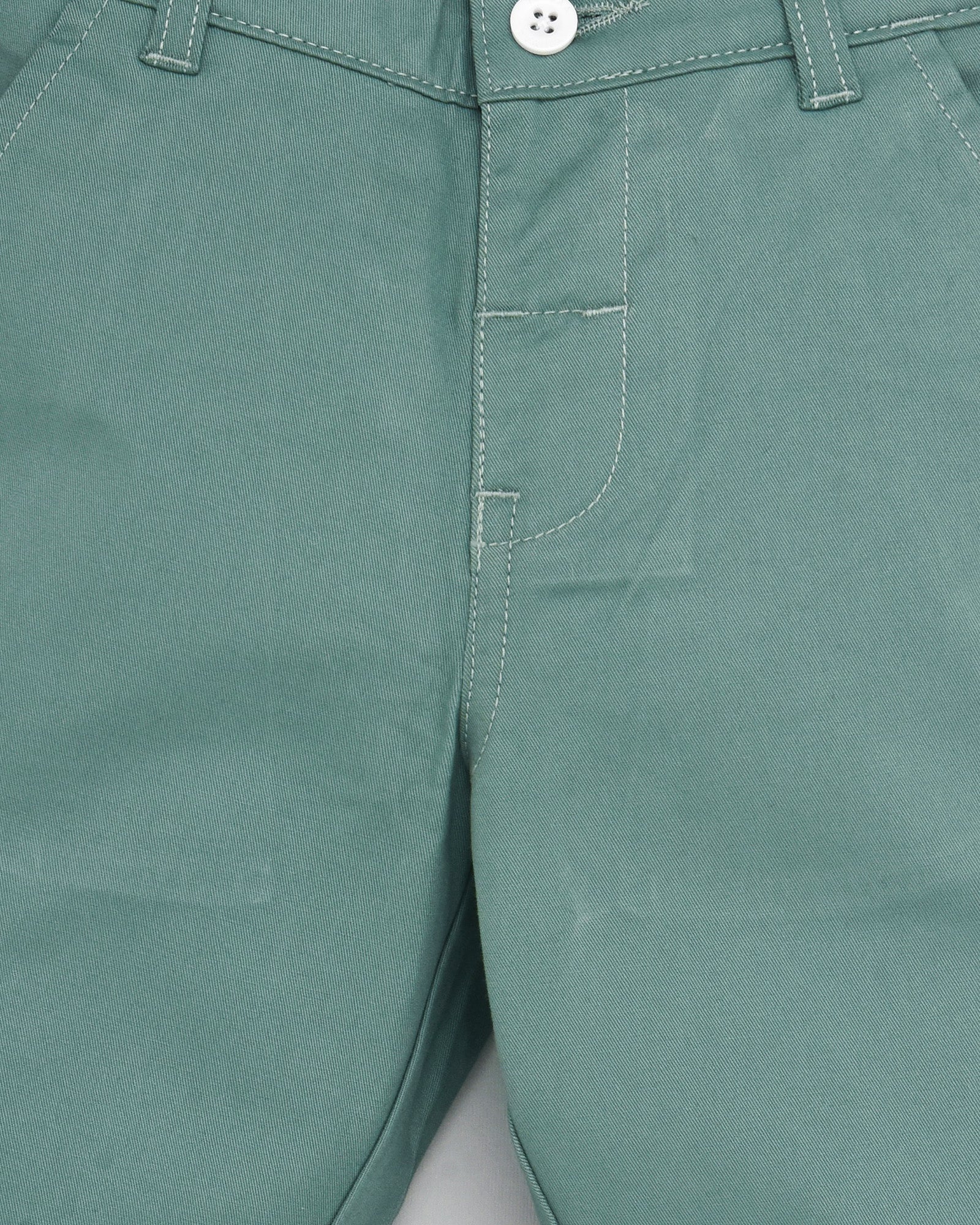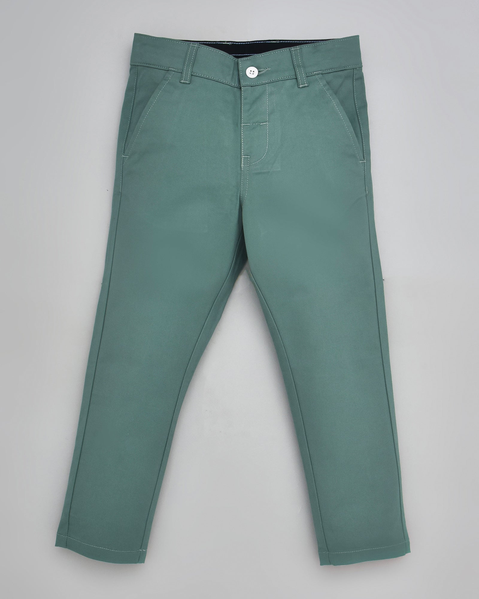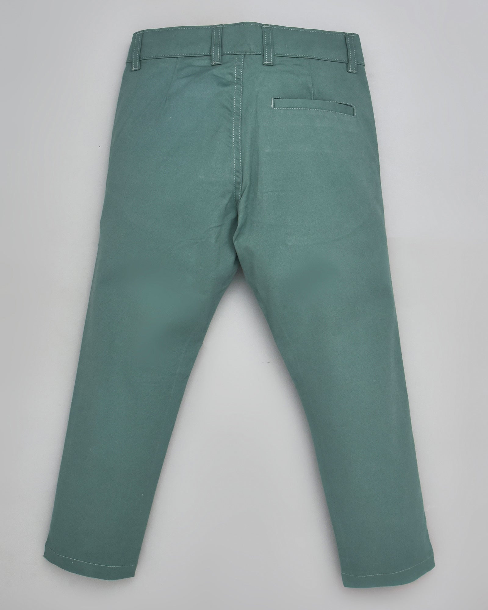 Youmaa Boys -100% Cotton Chinos -Fixed Waist Band - Elasticated -Pockets -RegularLength- Fit- Micro Fibre Cloud Wash Softness-Green